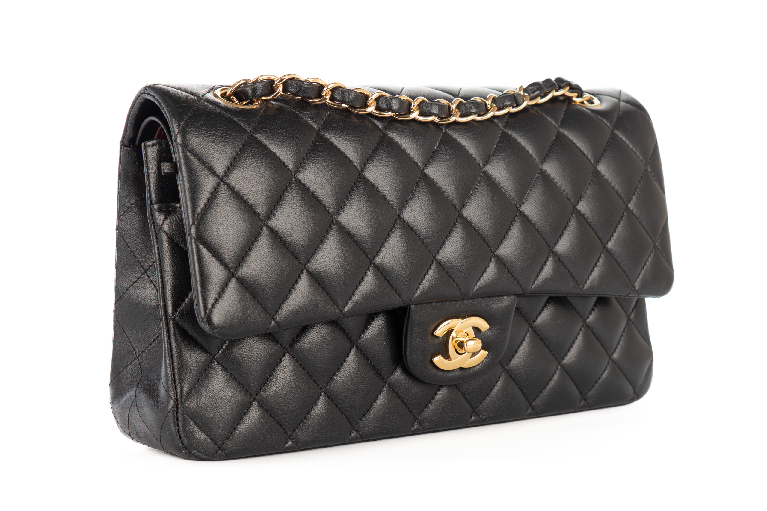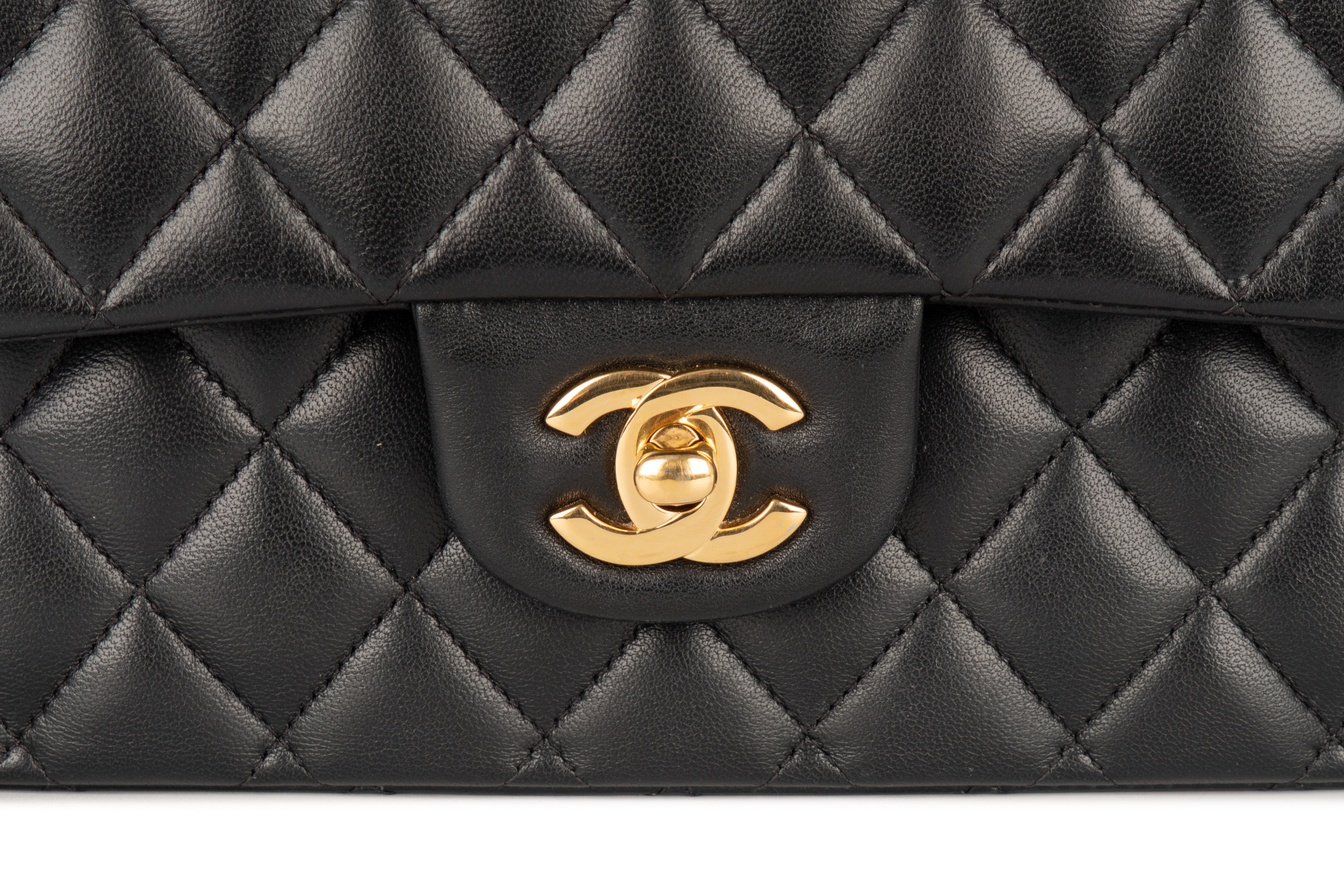 Chanel Medium Double Classic Flap Black Lambskin Gold Hardware / Microchipped 2021, Excellent Preloved