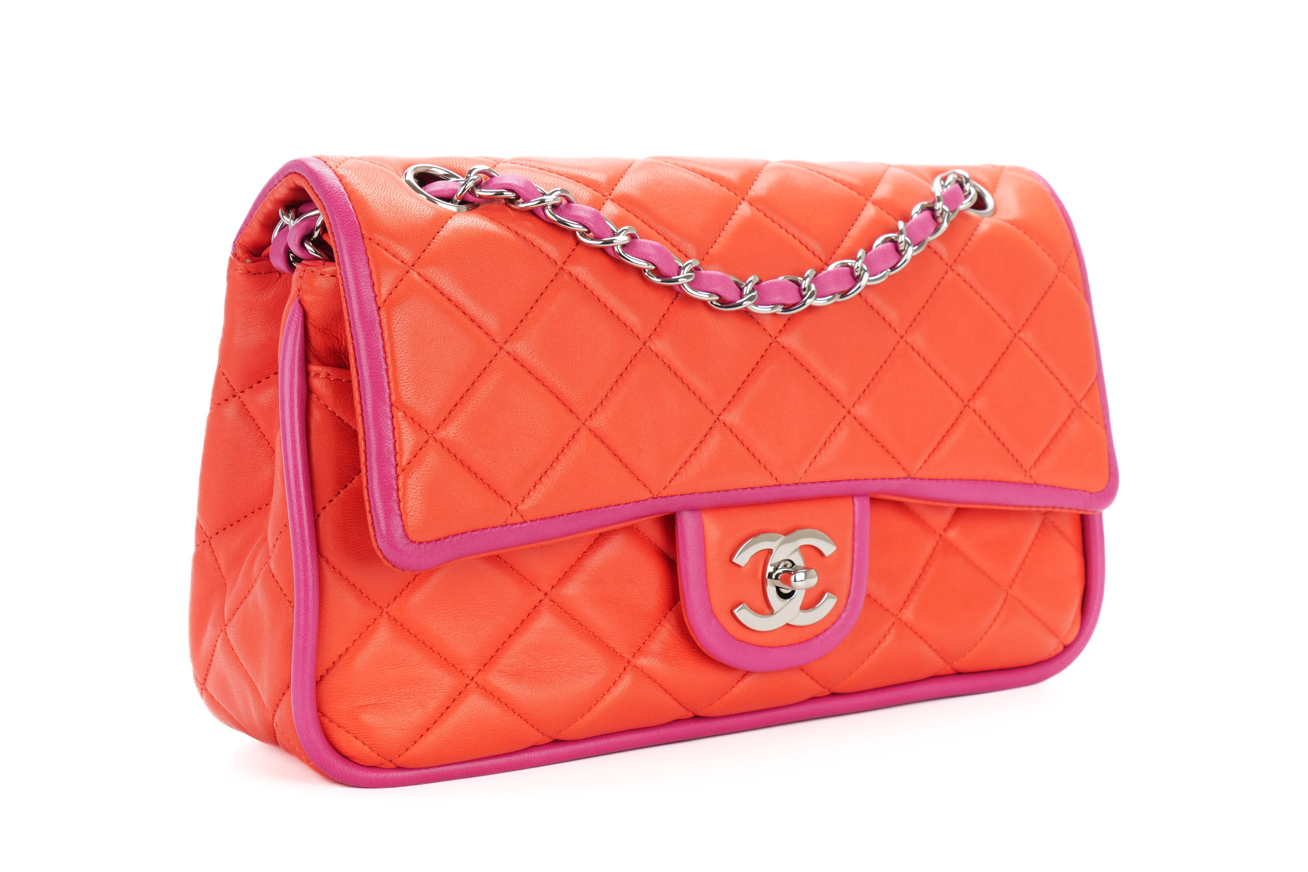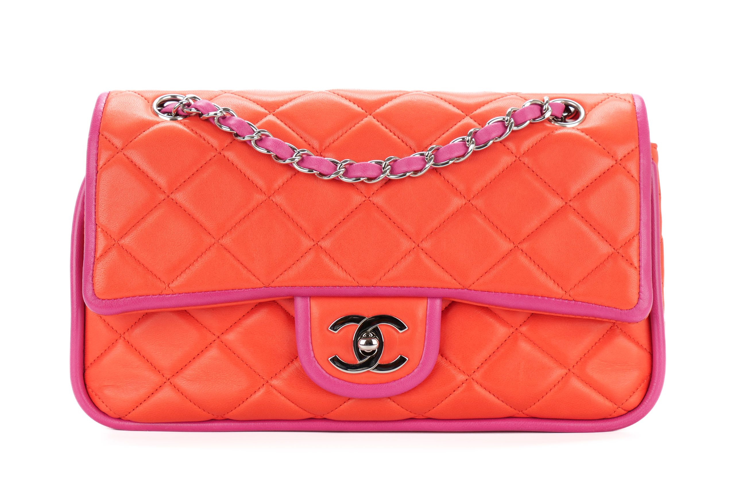 Chanel Medium Double Flap Bicolor Lambskin Silver Hardware