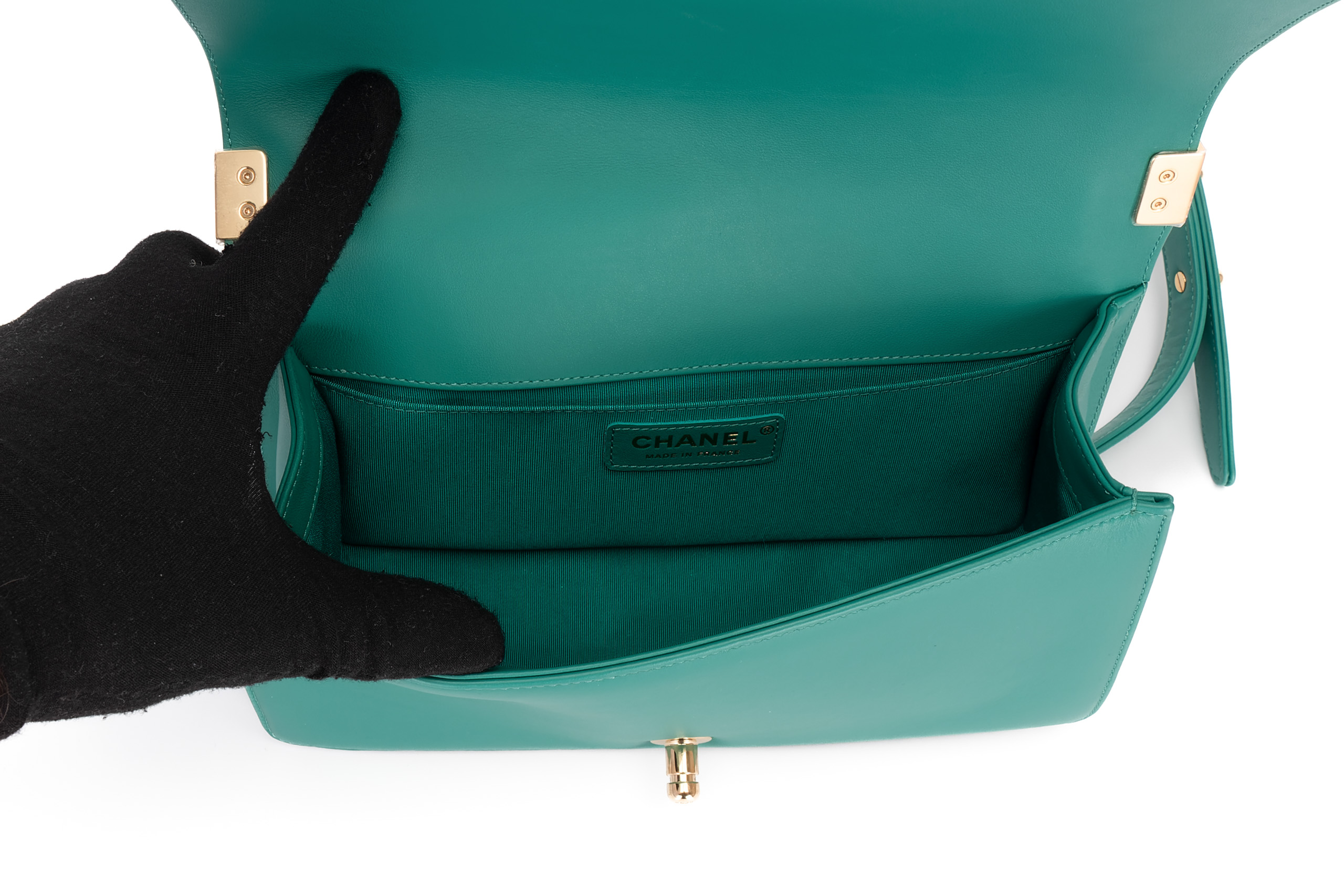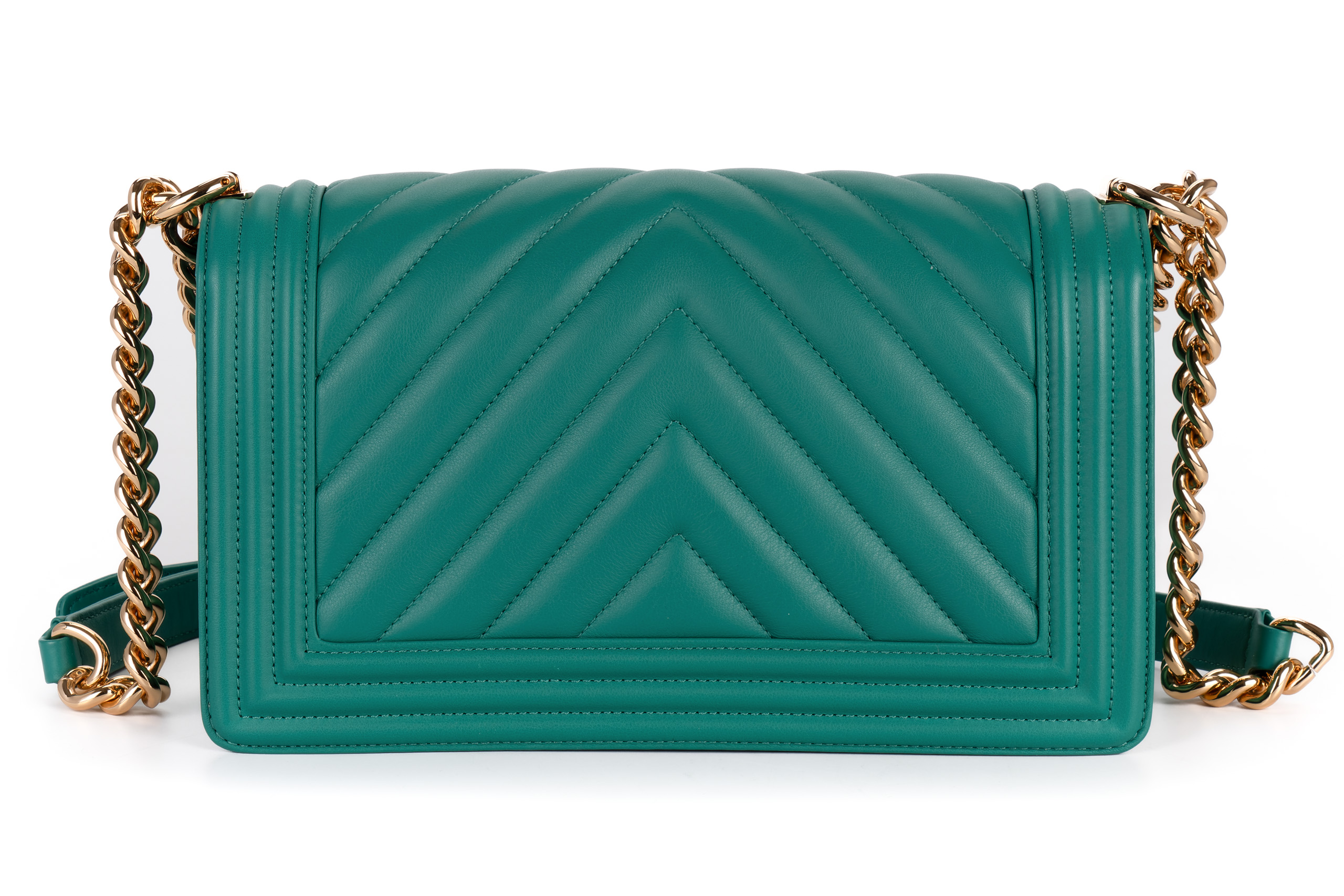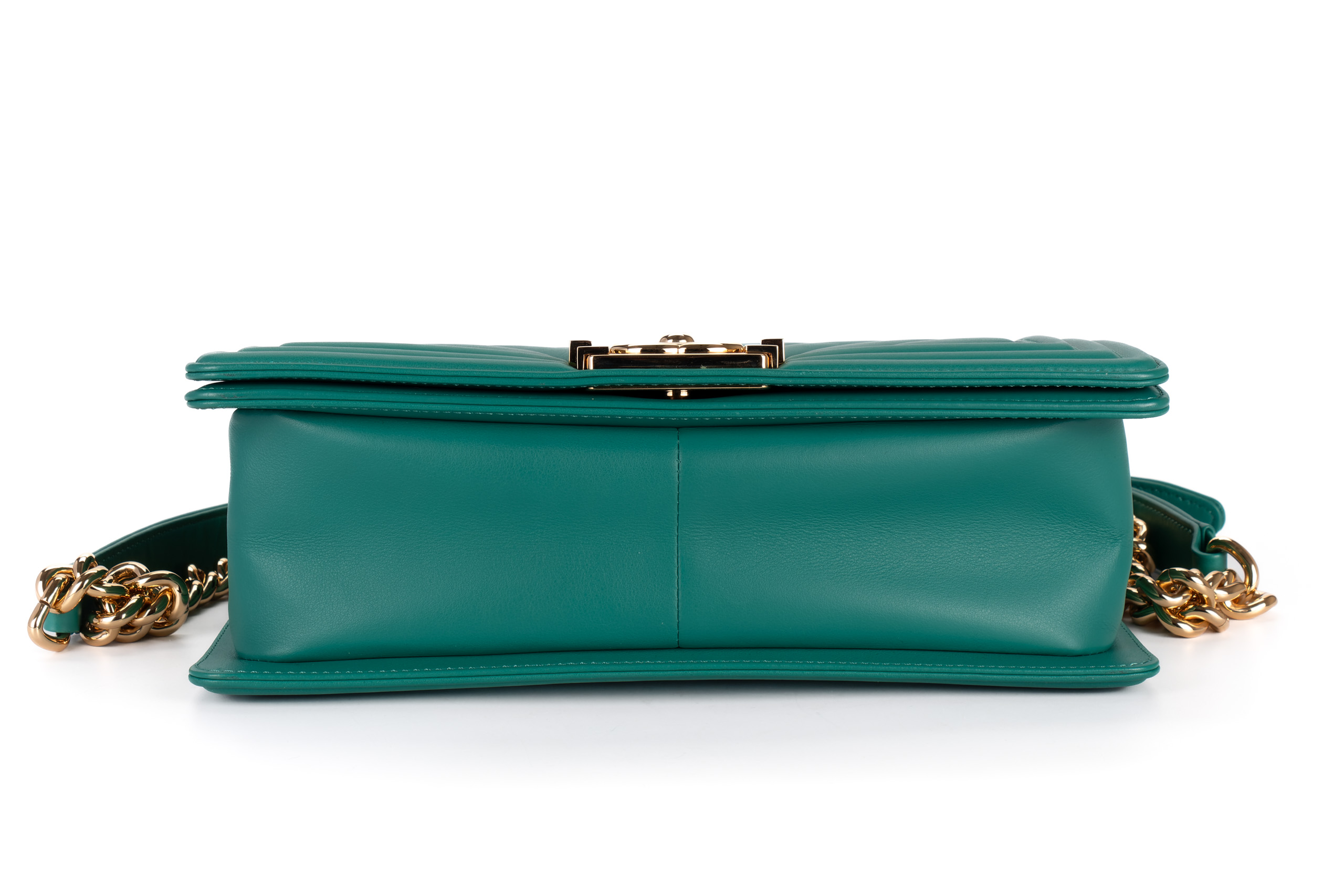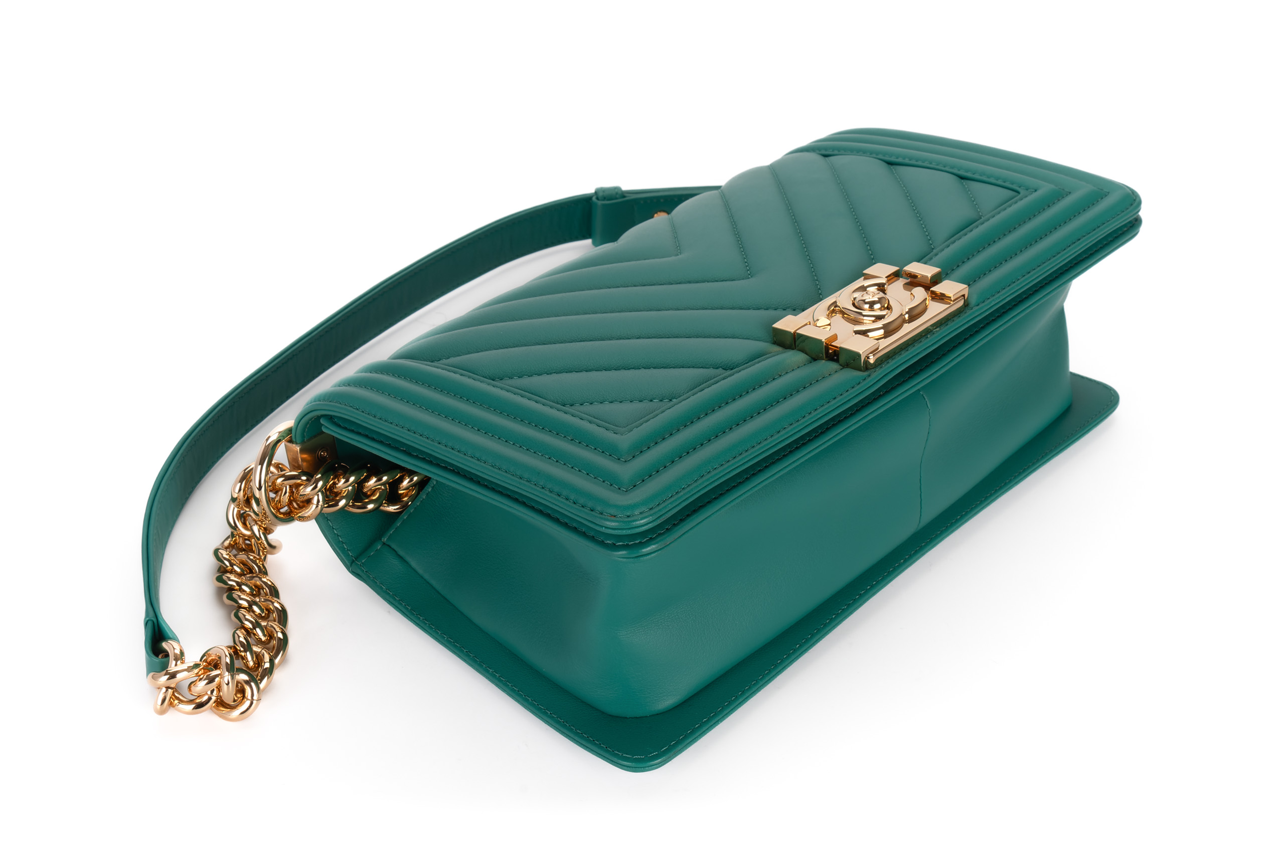 Chanel Medium Green Boy Bag Chevron Lambskin Gold Hardware / 28 series 2019 Box Fresh Condition