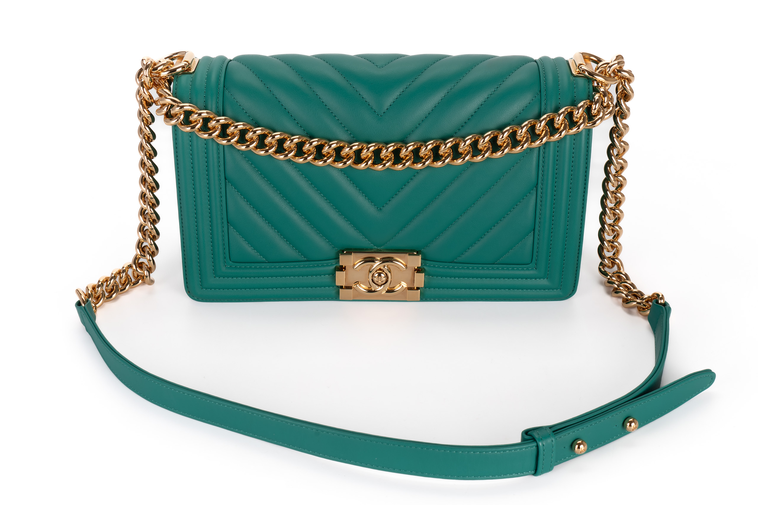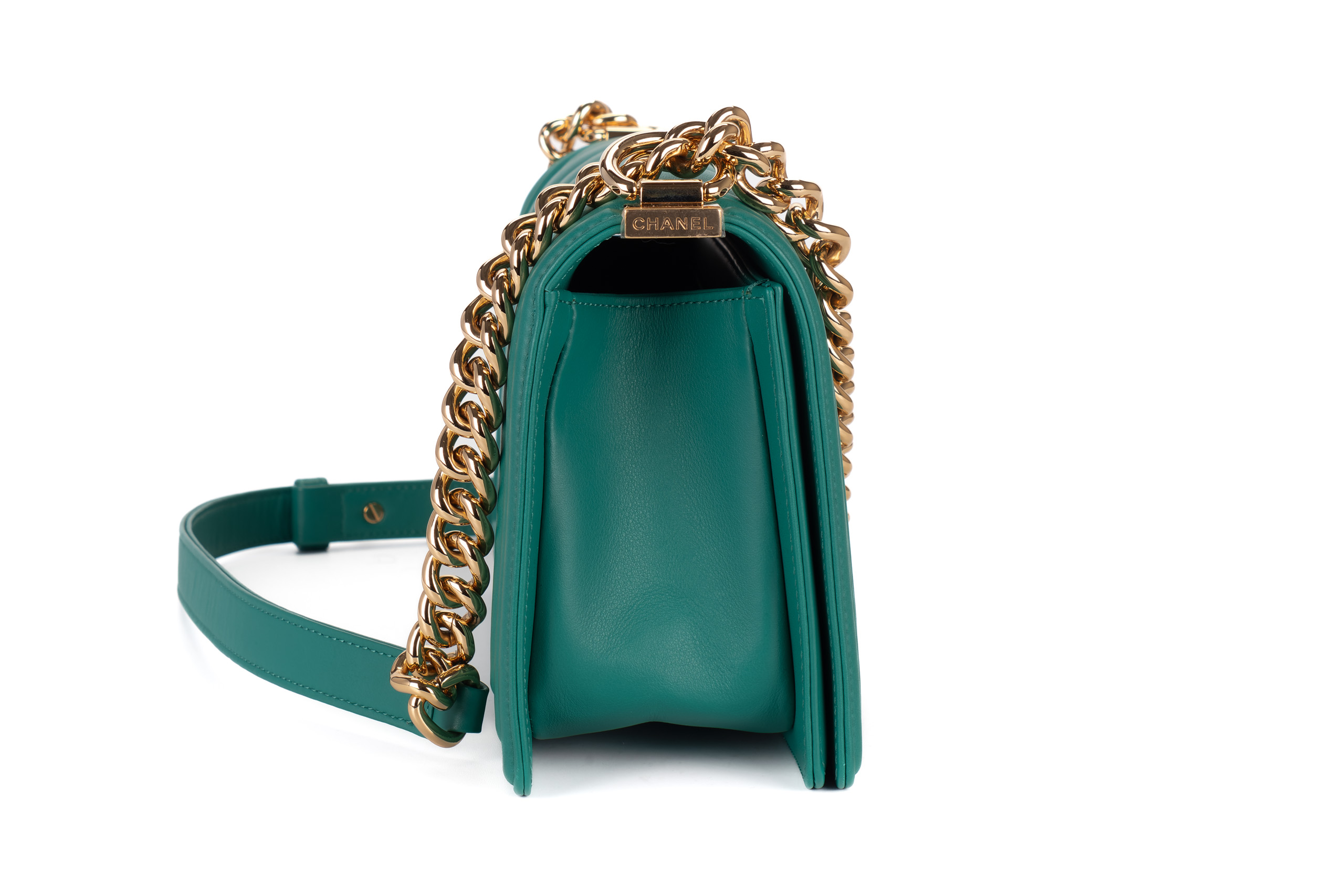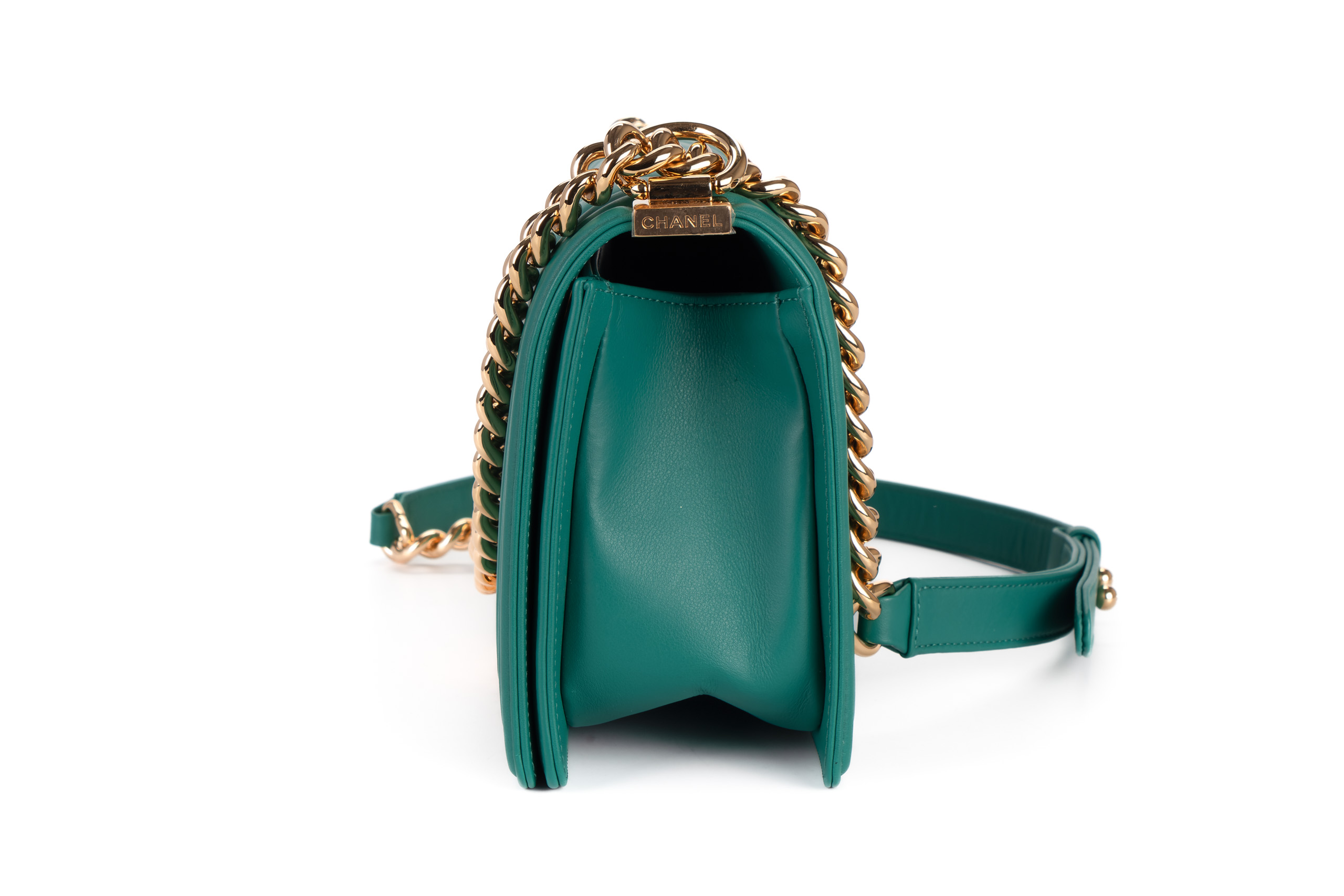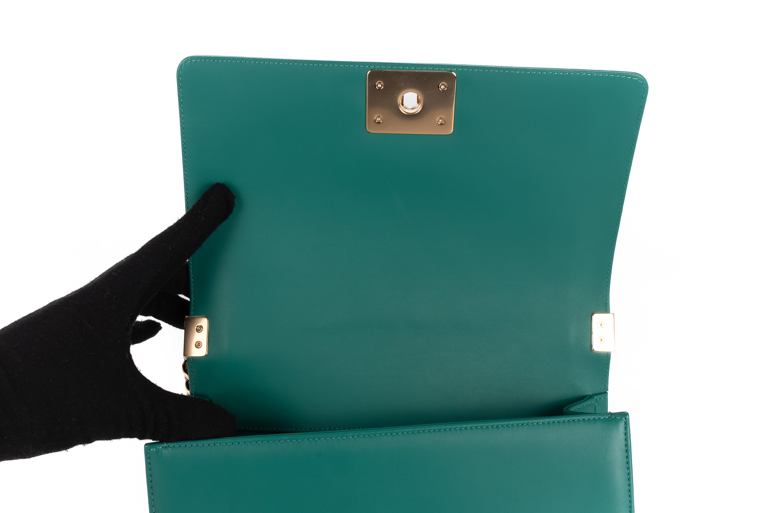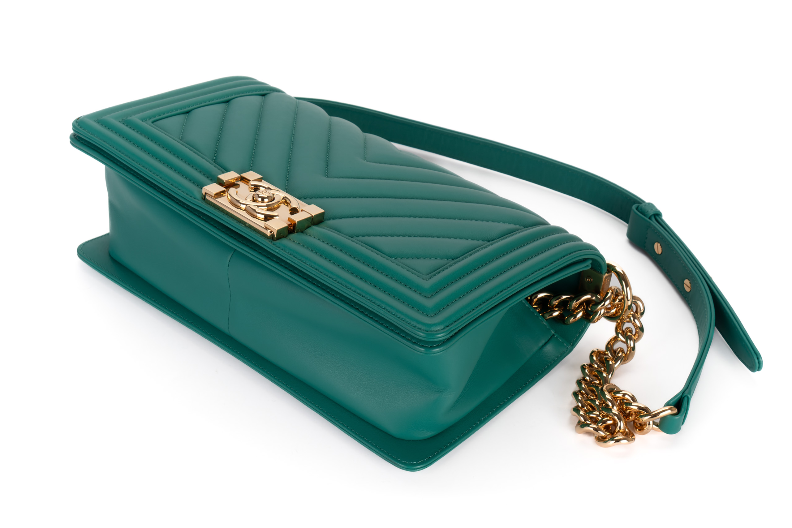 Chanel Medium Green Boy Bag Chevron Lambskin Gold Hardware / 28 series 2019 Box Fresh Condition