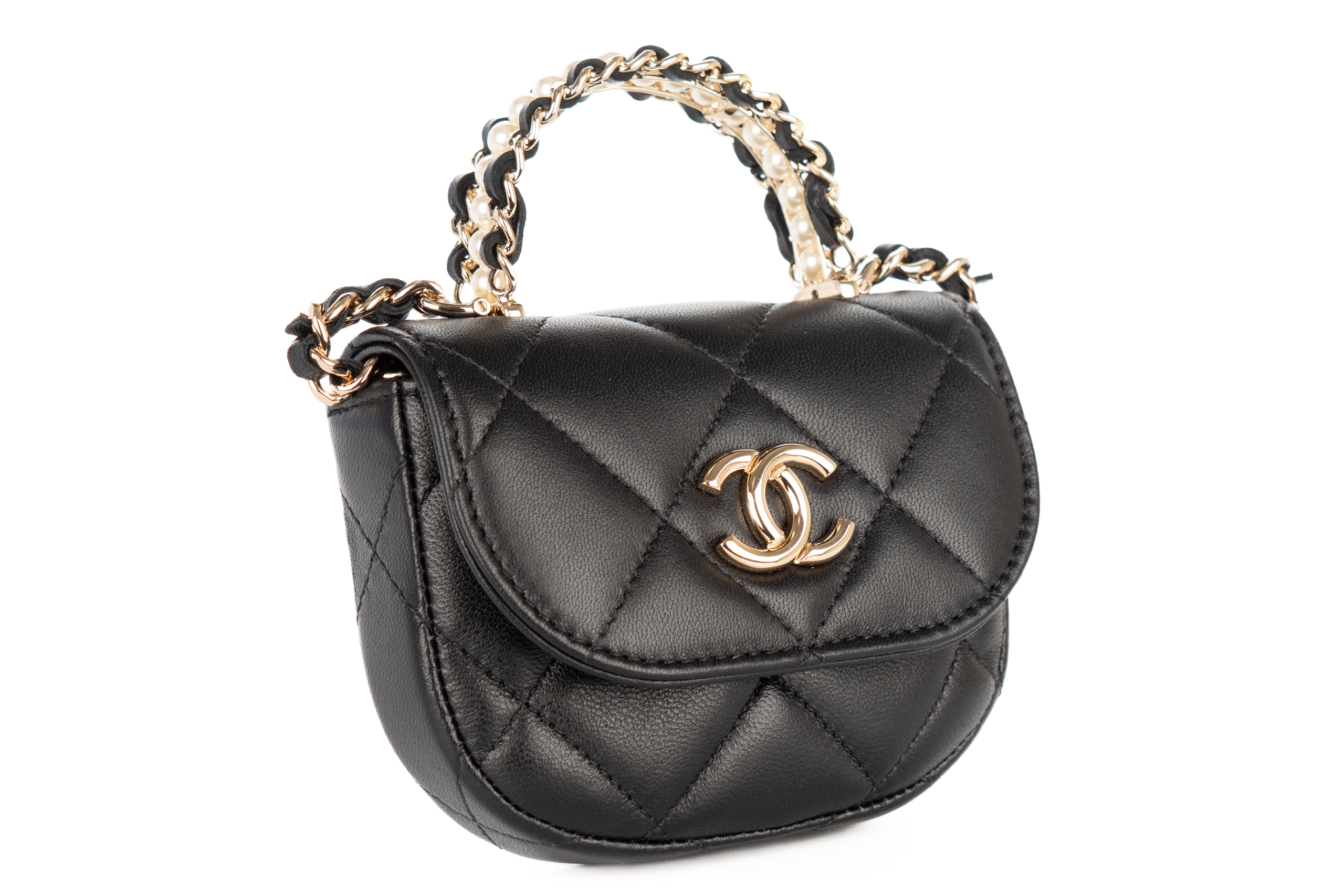 Chanel Micro Top Handle CC Pearl Black Lambskin Gold Hardware / Microchipped, Unworn