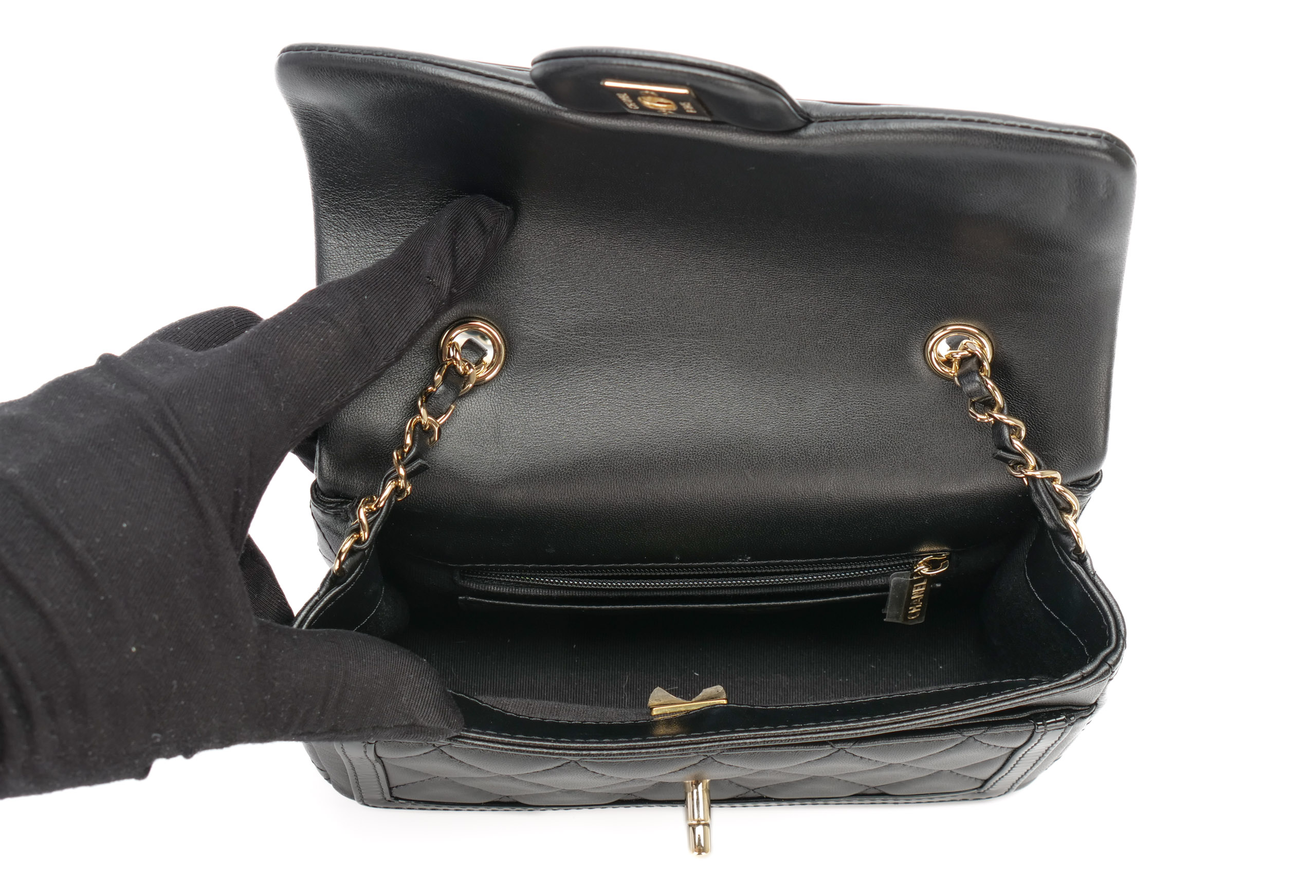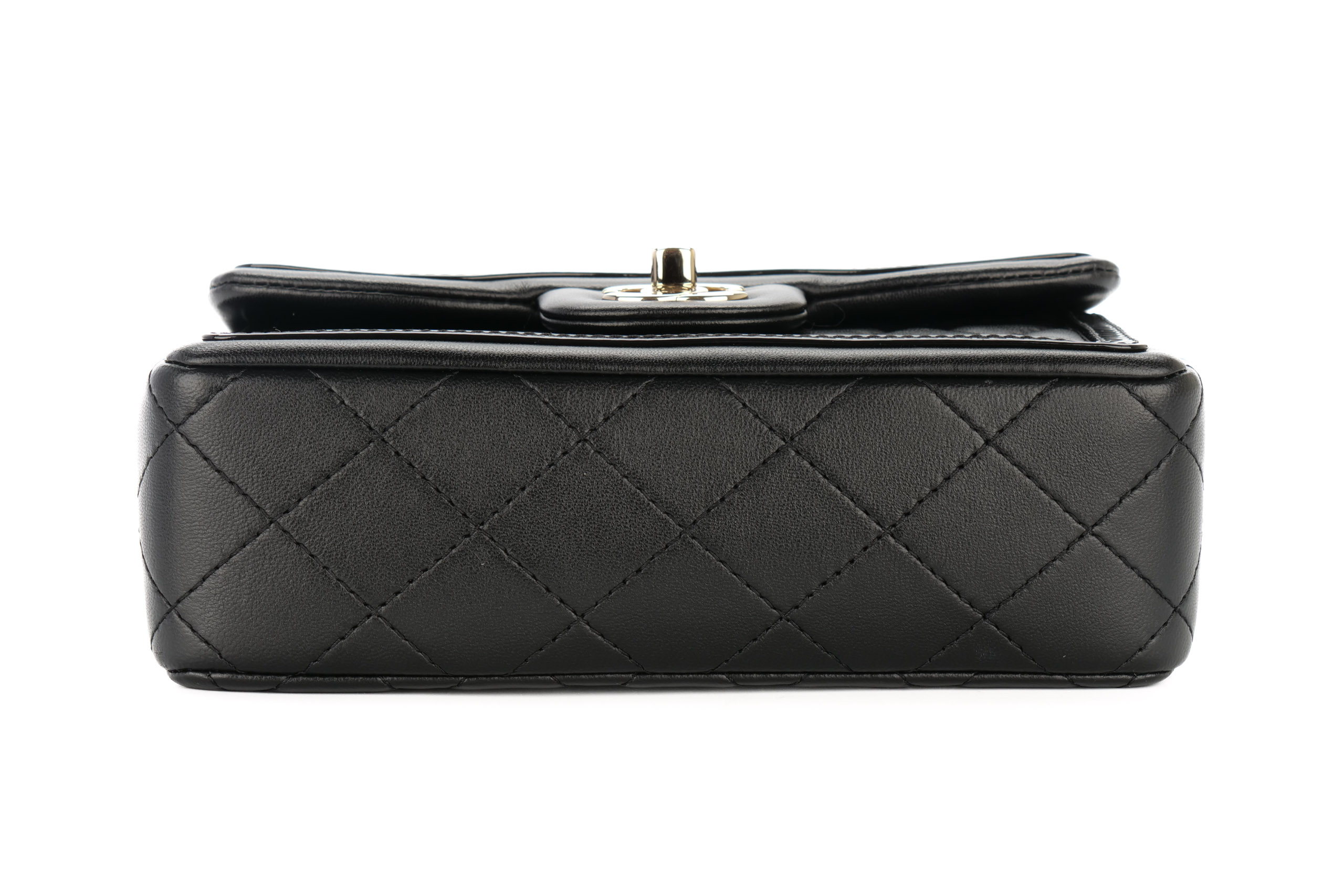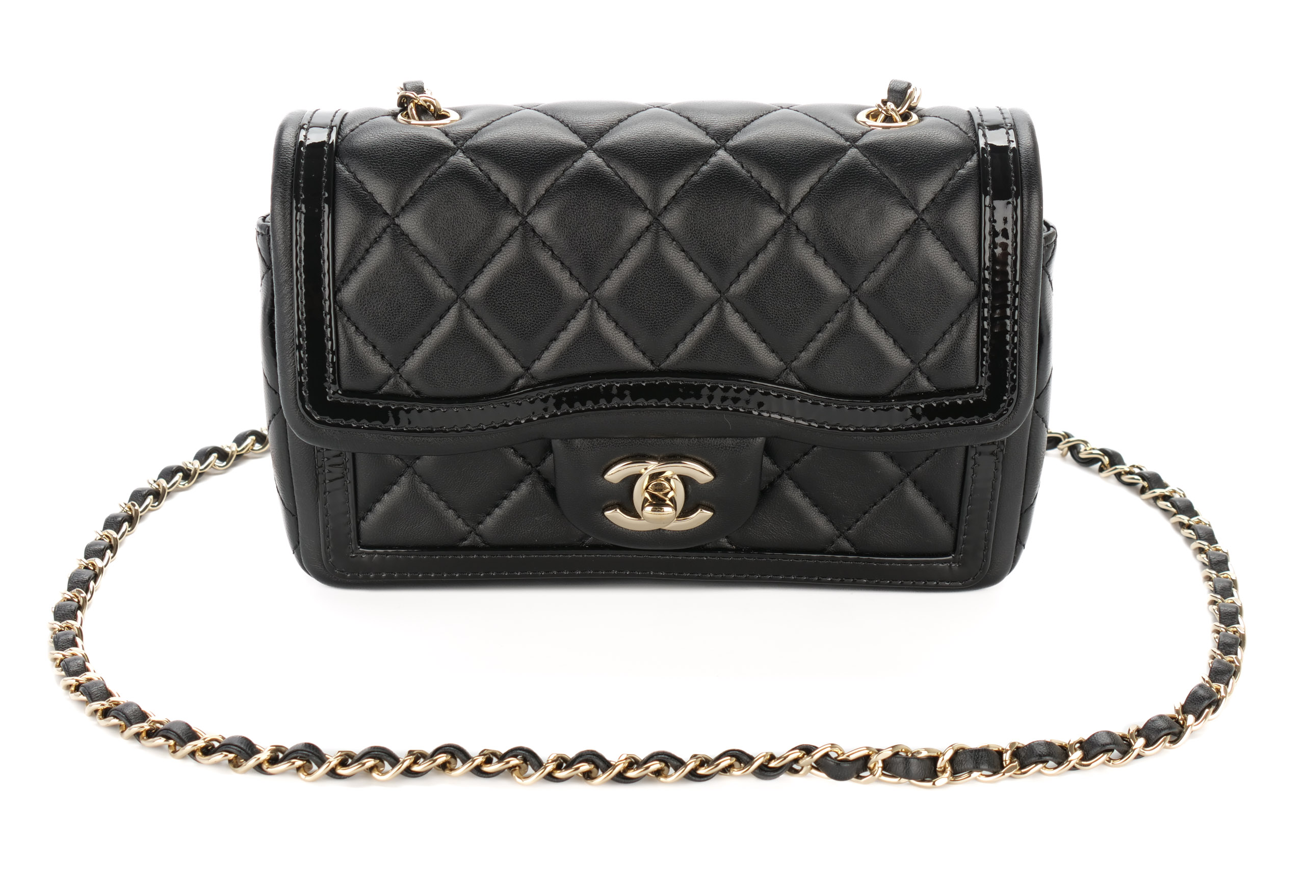 Chanel Mini Flap Black Lambskin / Patent Light Gold Hardware