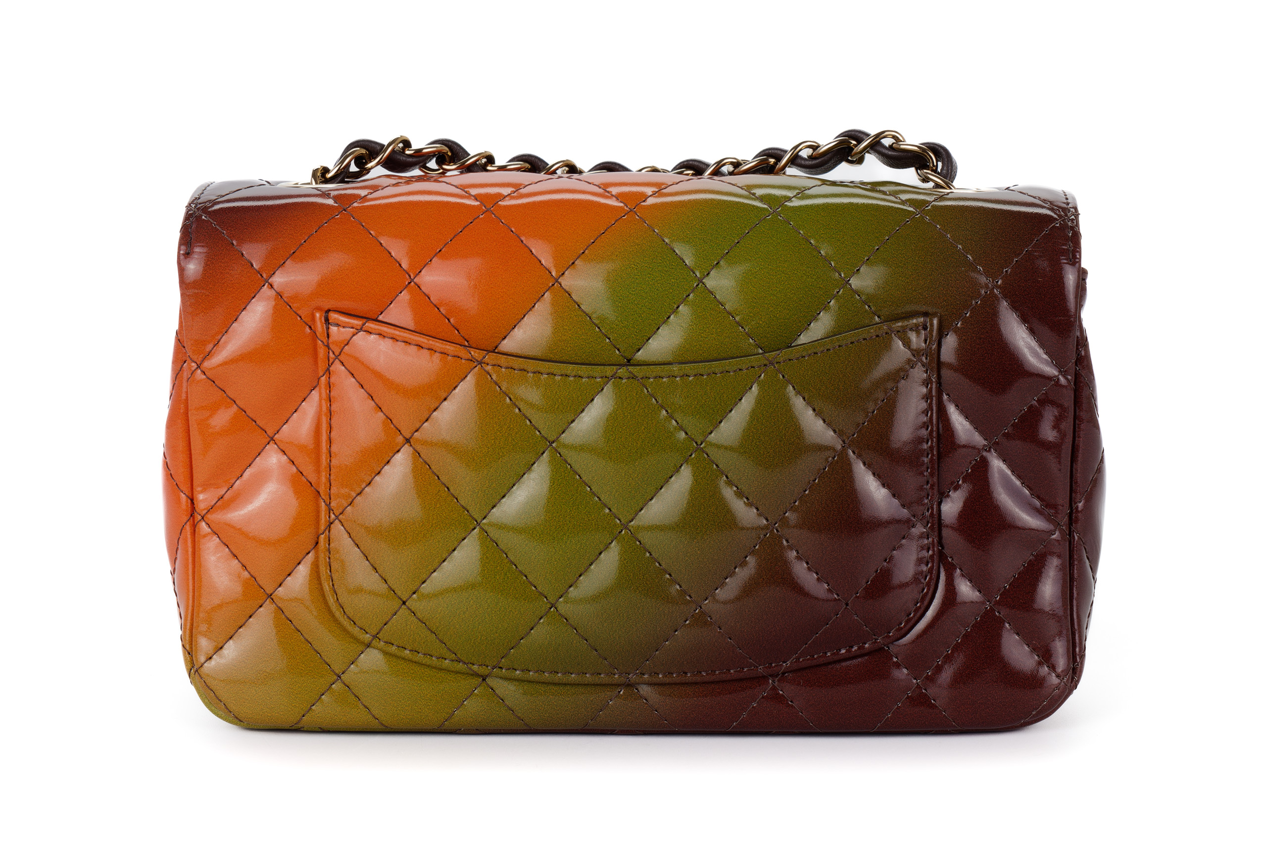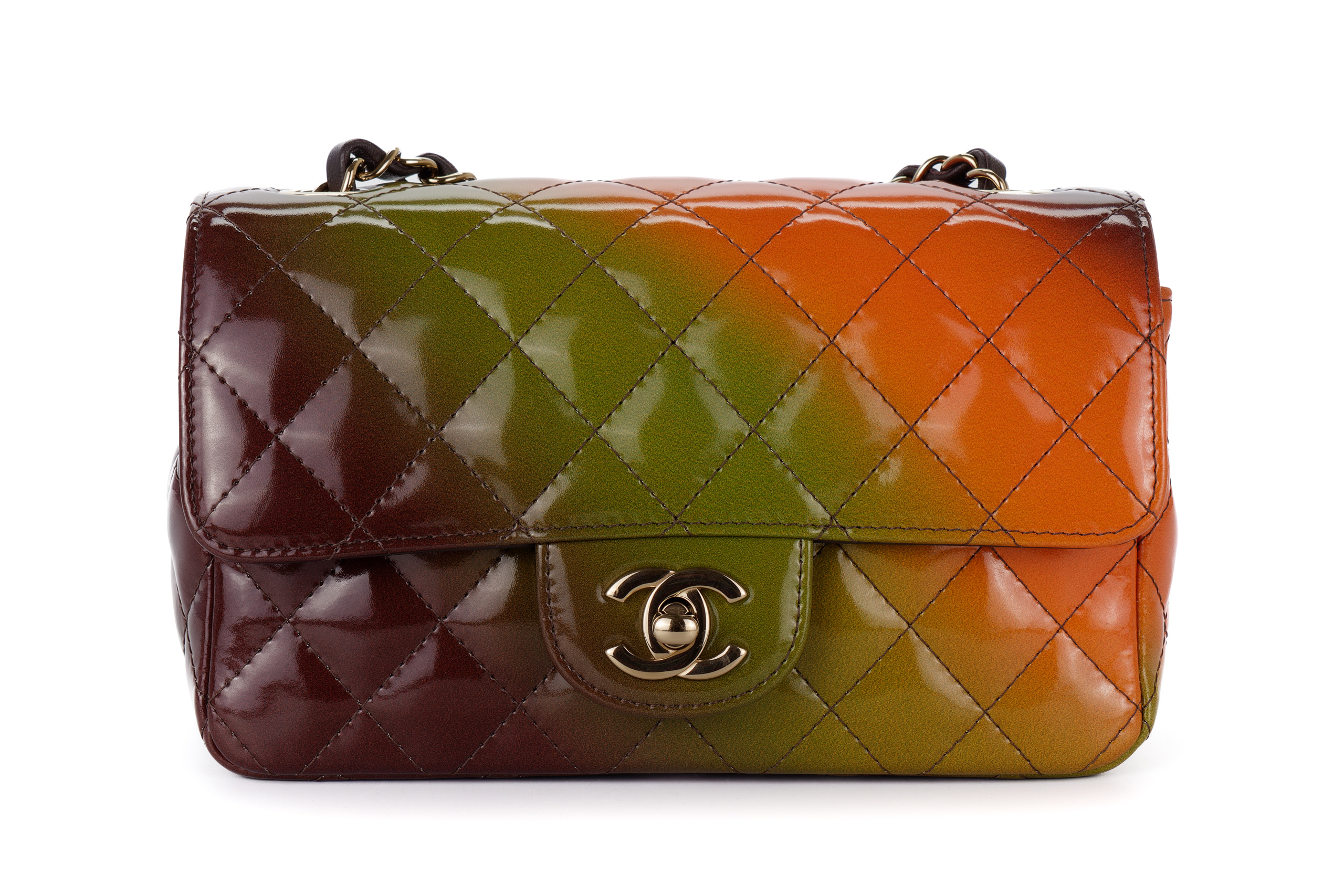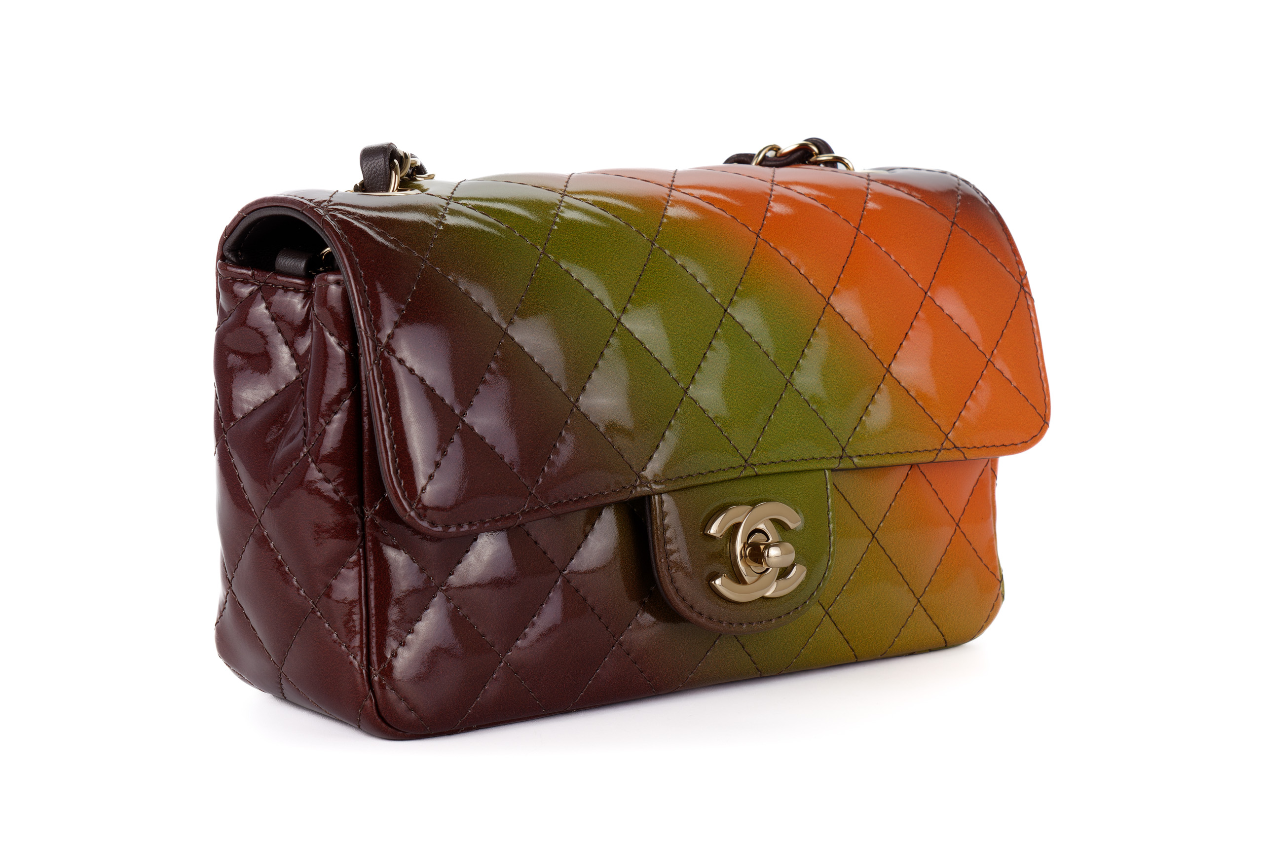 Chanel Mini Rectangular Patent Rainbow Light Gold Hardware / Microchipped 2022 Excellent Pre-Loved condition