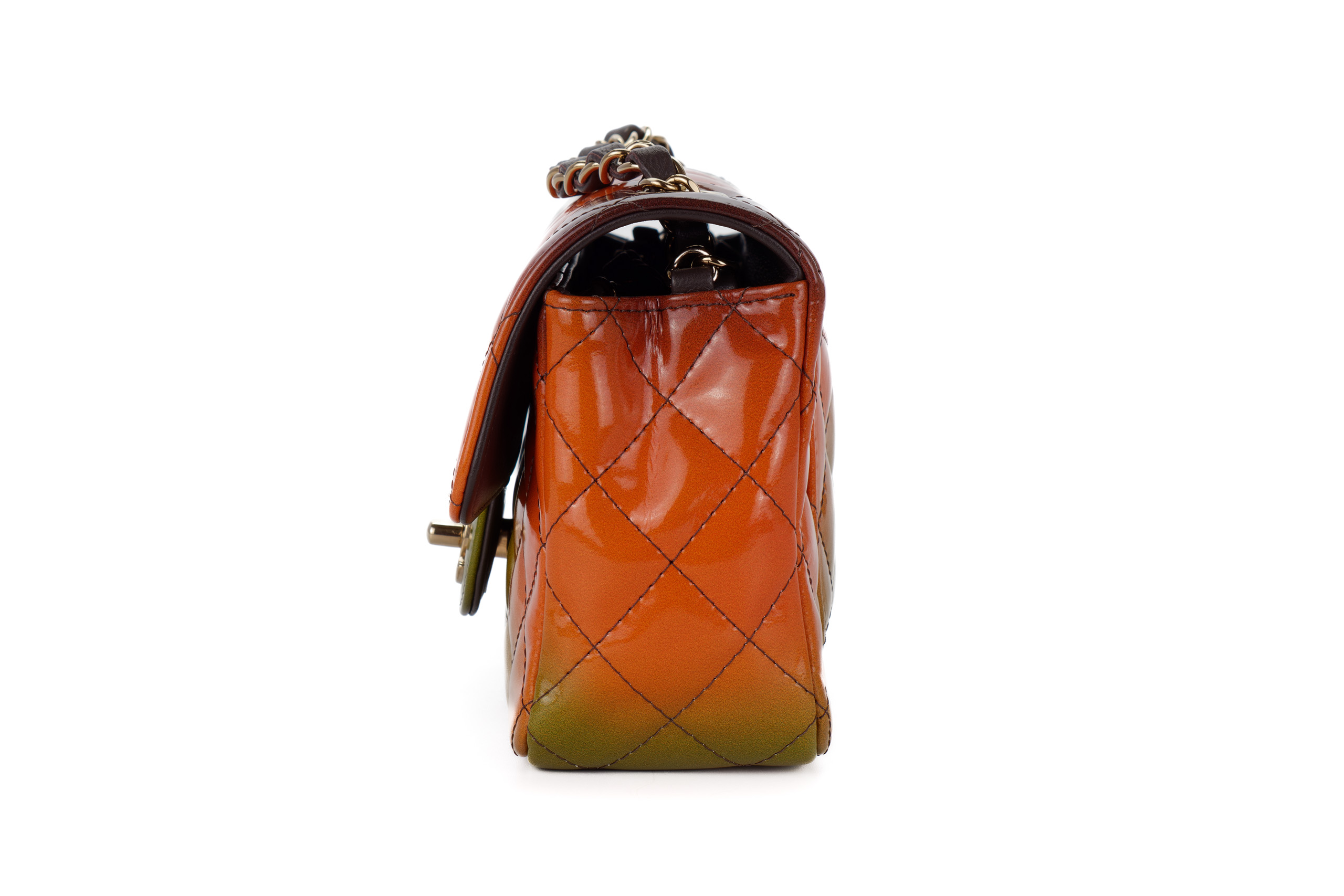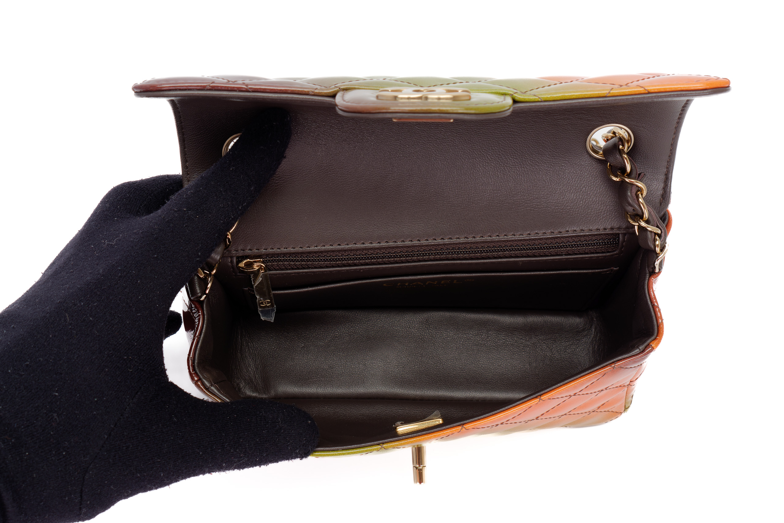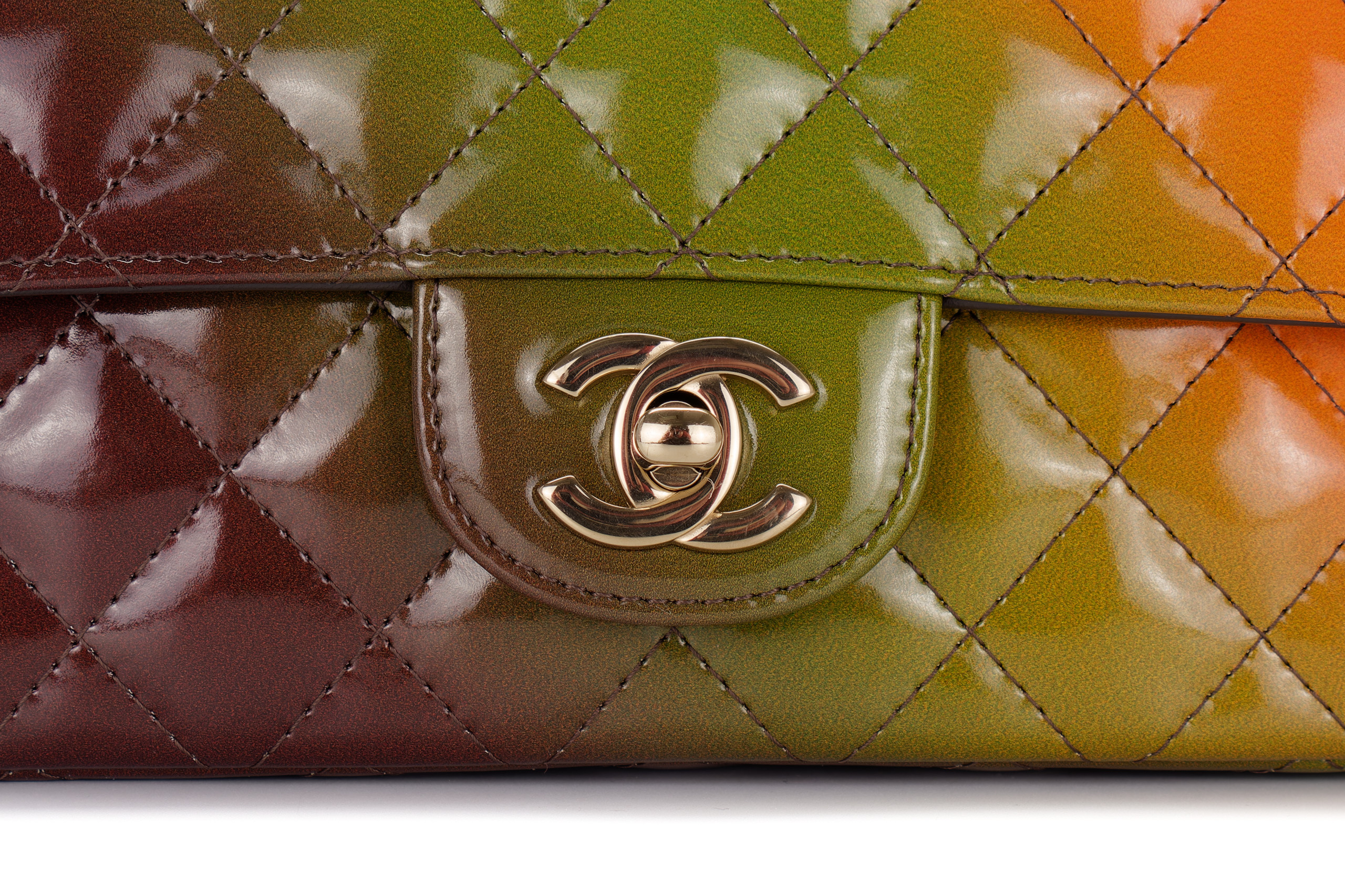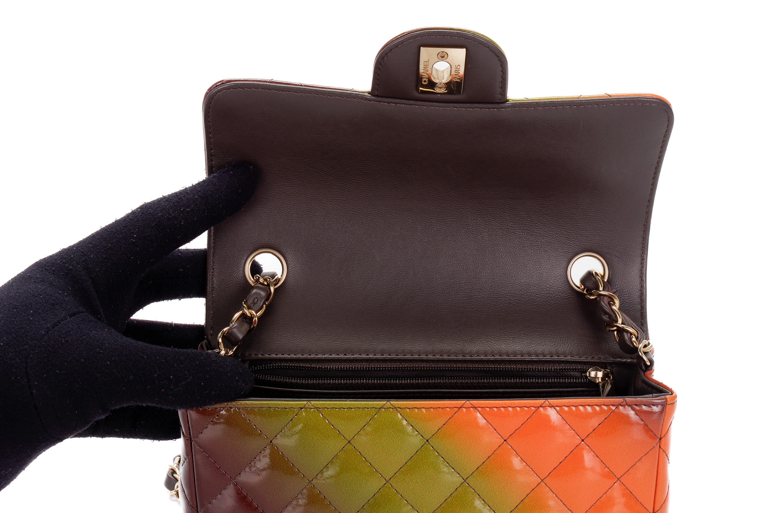 Chanel Mini Rectangular Patent Rainbow Light Gold Hardware / Microchipped 2022 Excellent Pre-Loved condition