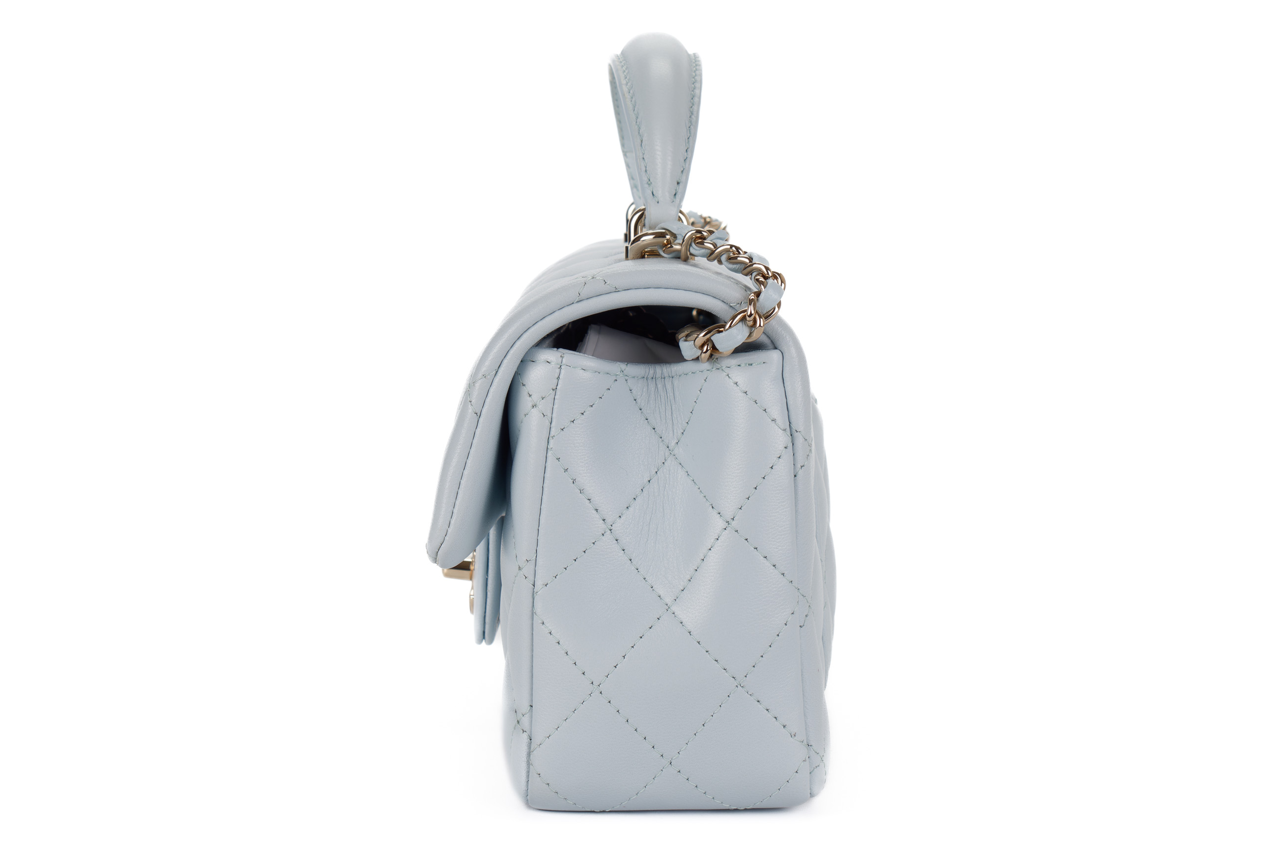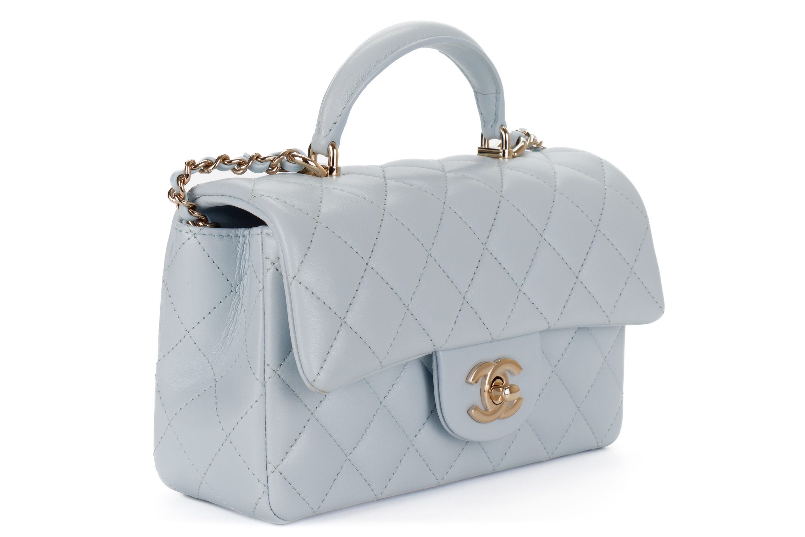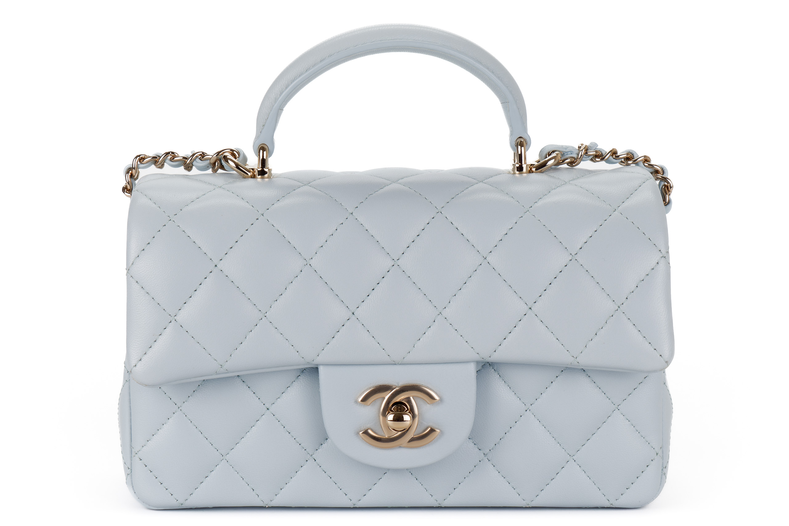 Chanel Mini Rectangular Top Handle Baby Blue Lambskin Light Gold Hardware