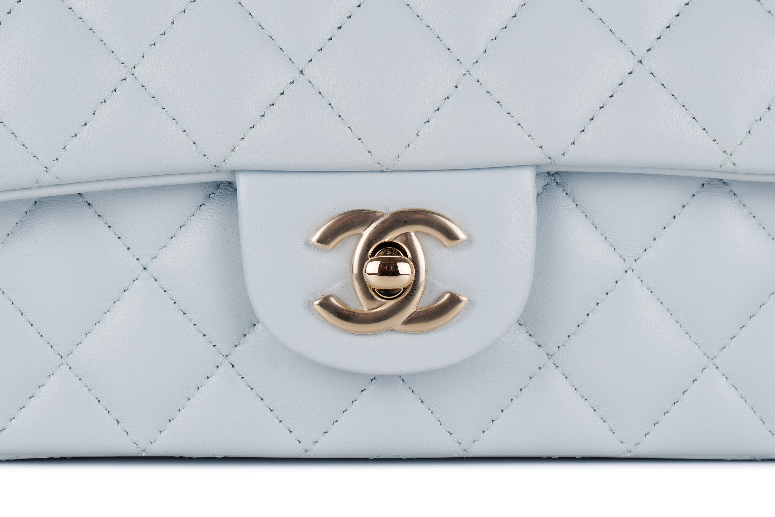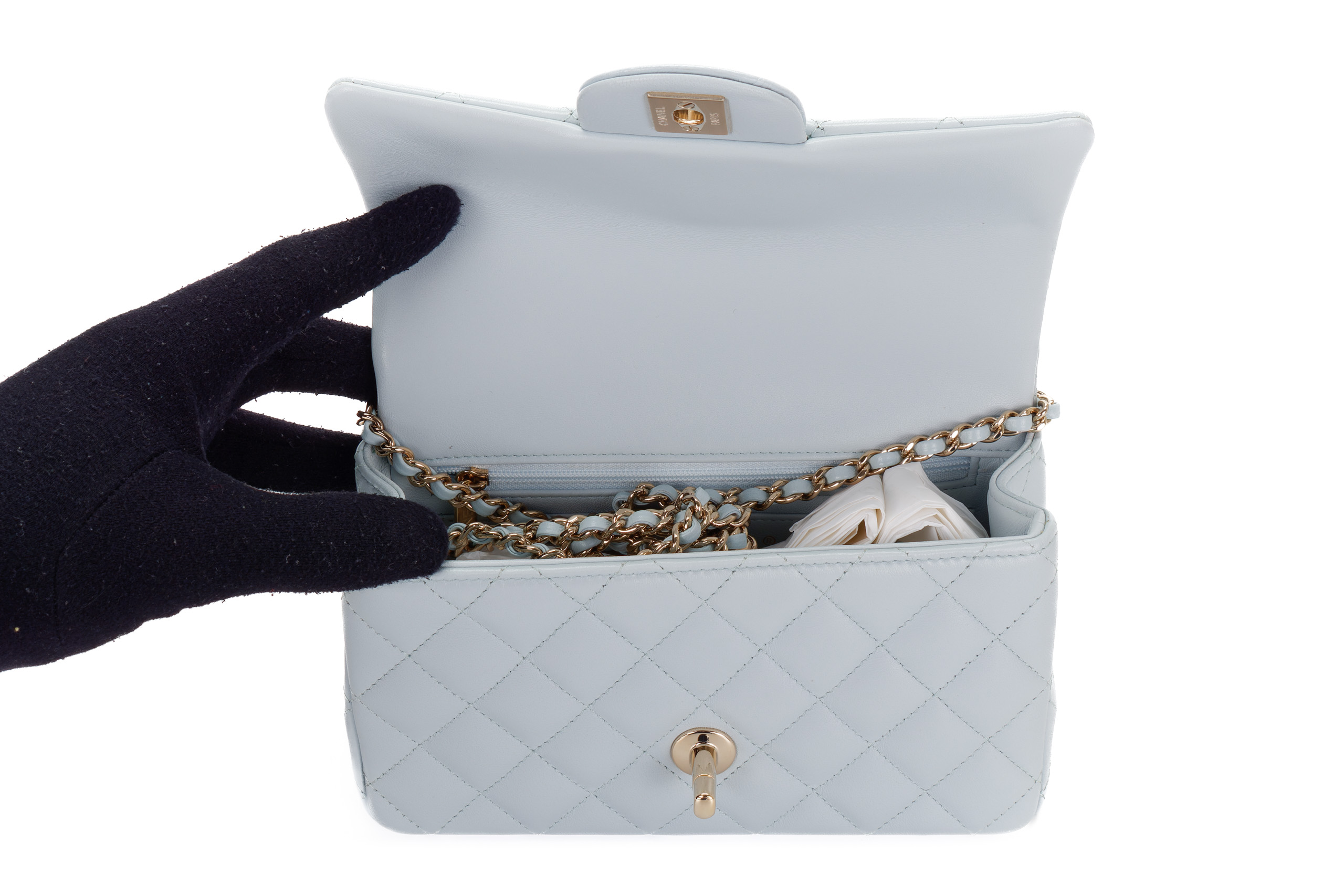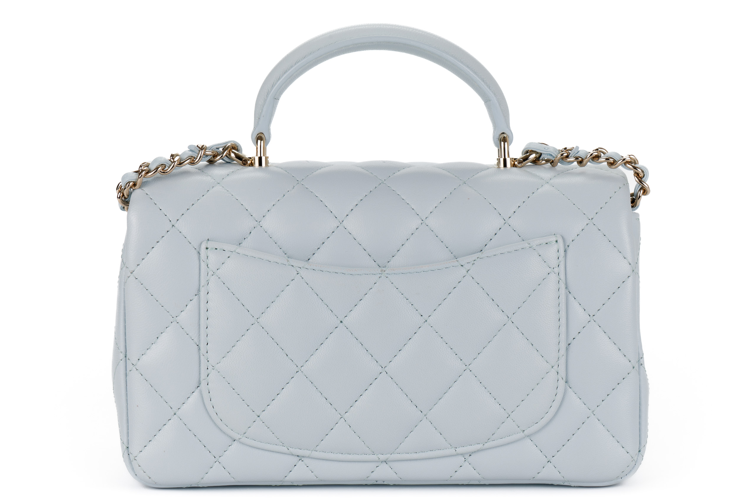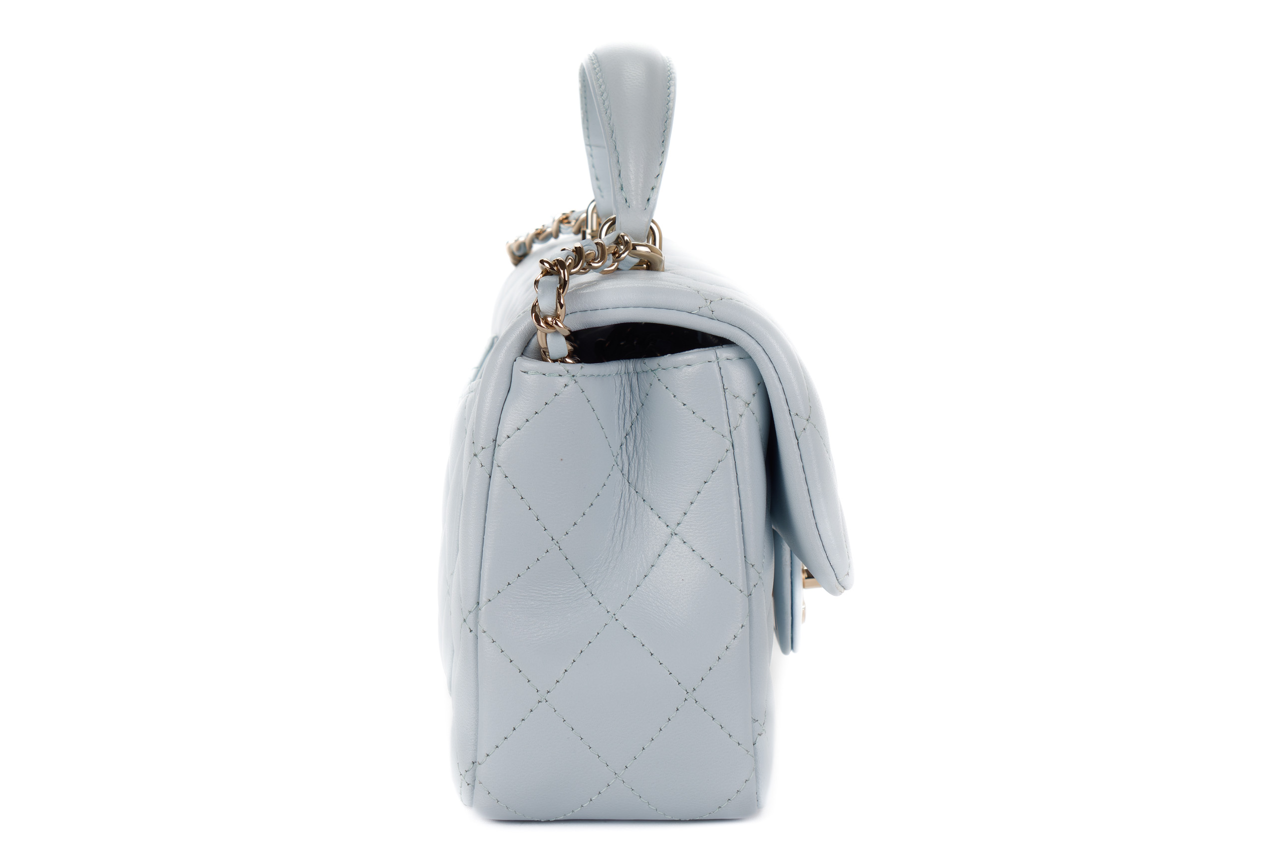 Chanel Mini Rectangular Top Handle Baby Blue Lambskin Light Gold Hardware