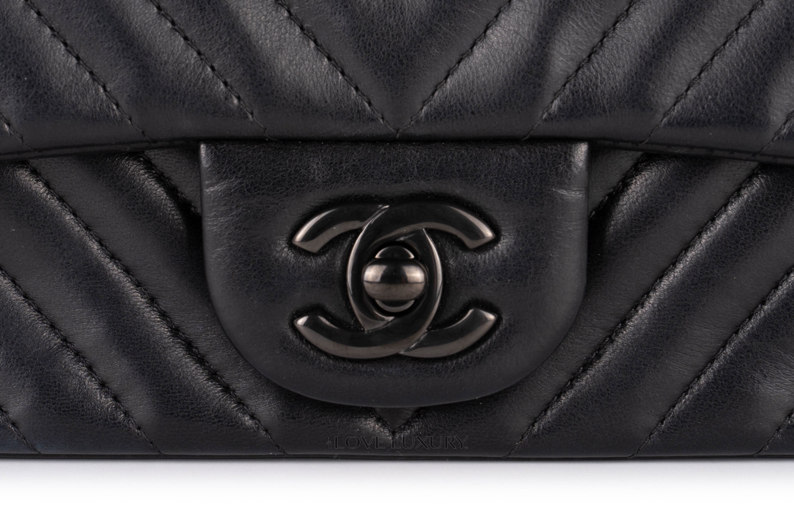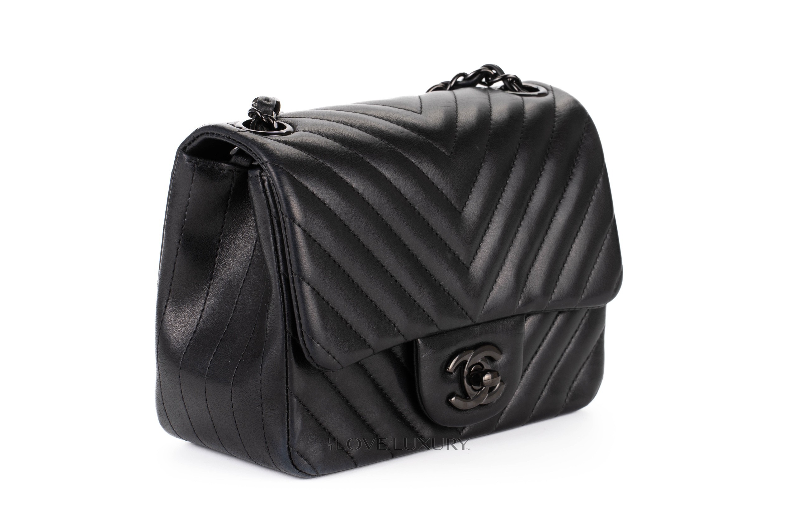 Chanel Mini Square Flap Back Chevron So Black