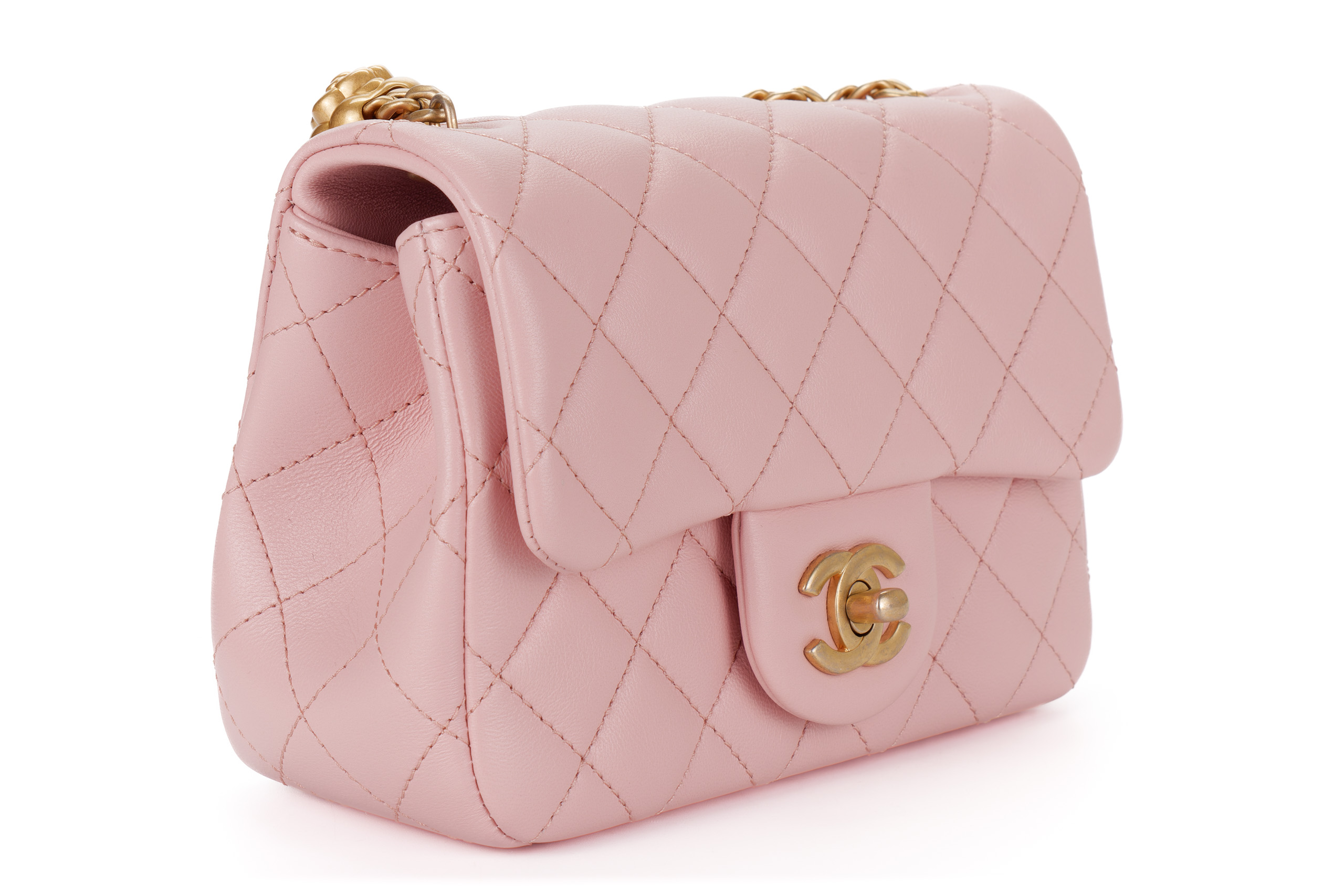 Chanel Pink Mini Square Flap Gold Hardware / Microchipped 2022 Box Fresh