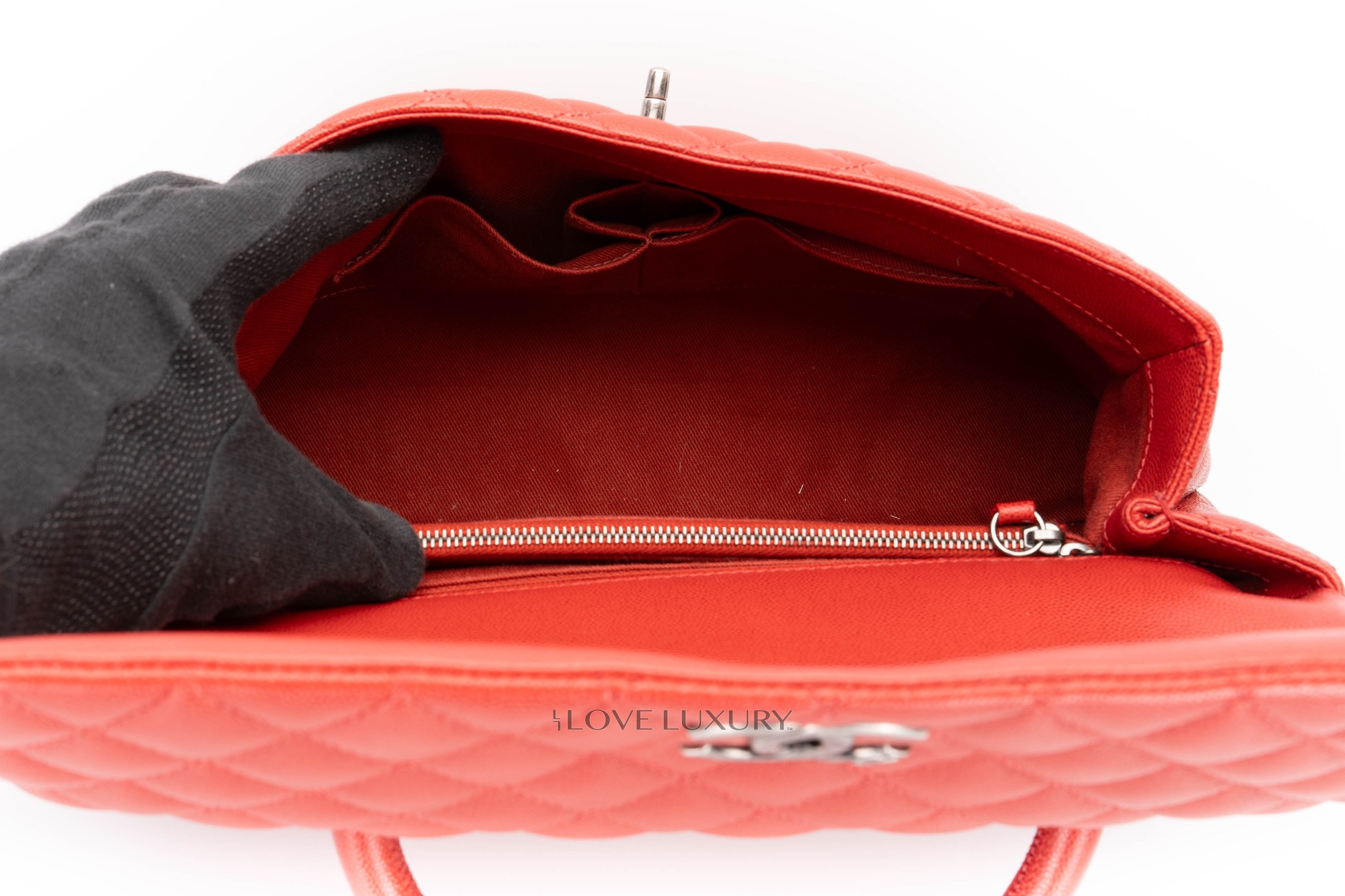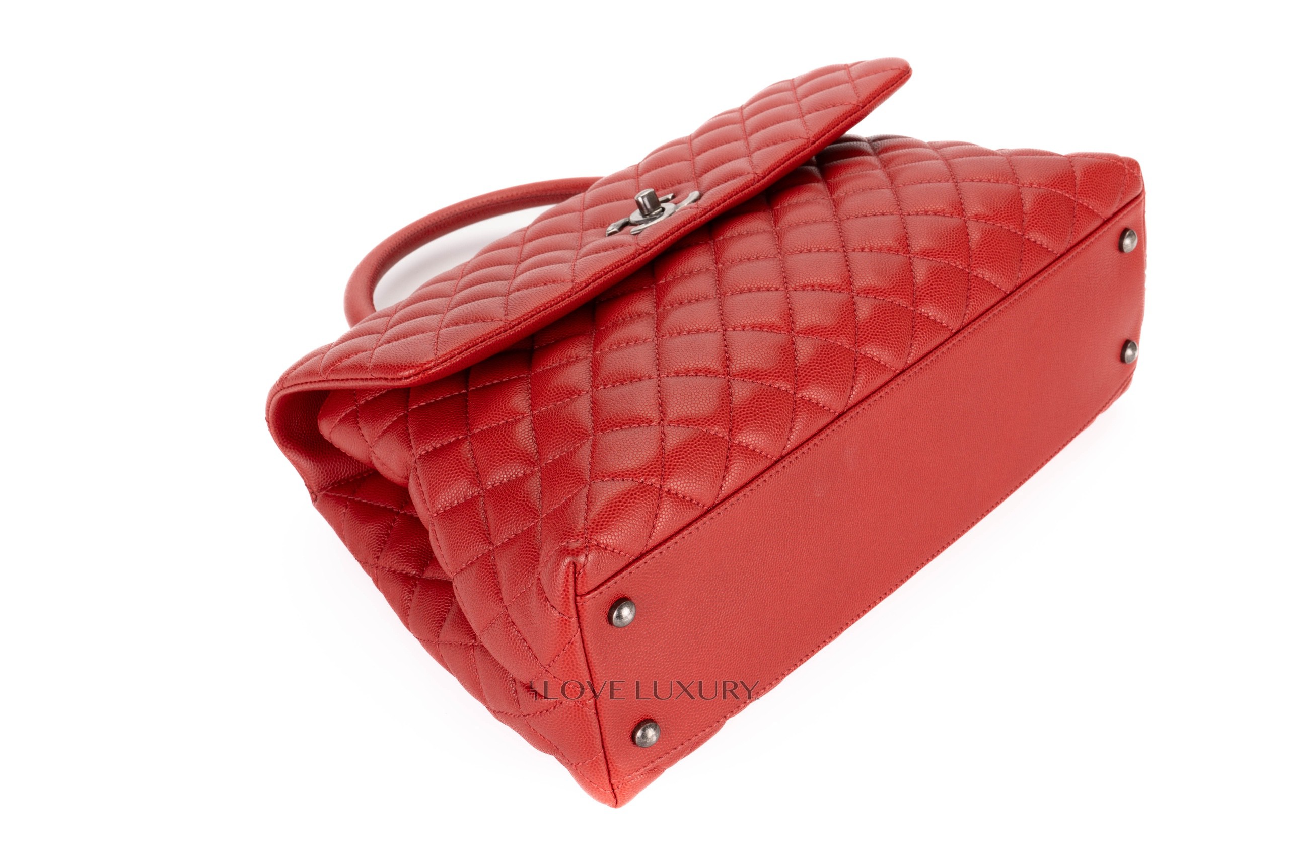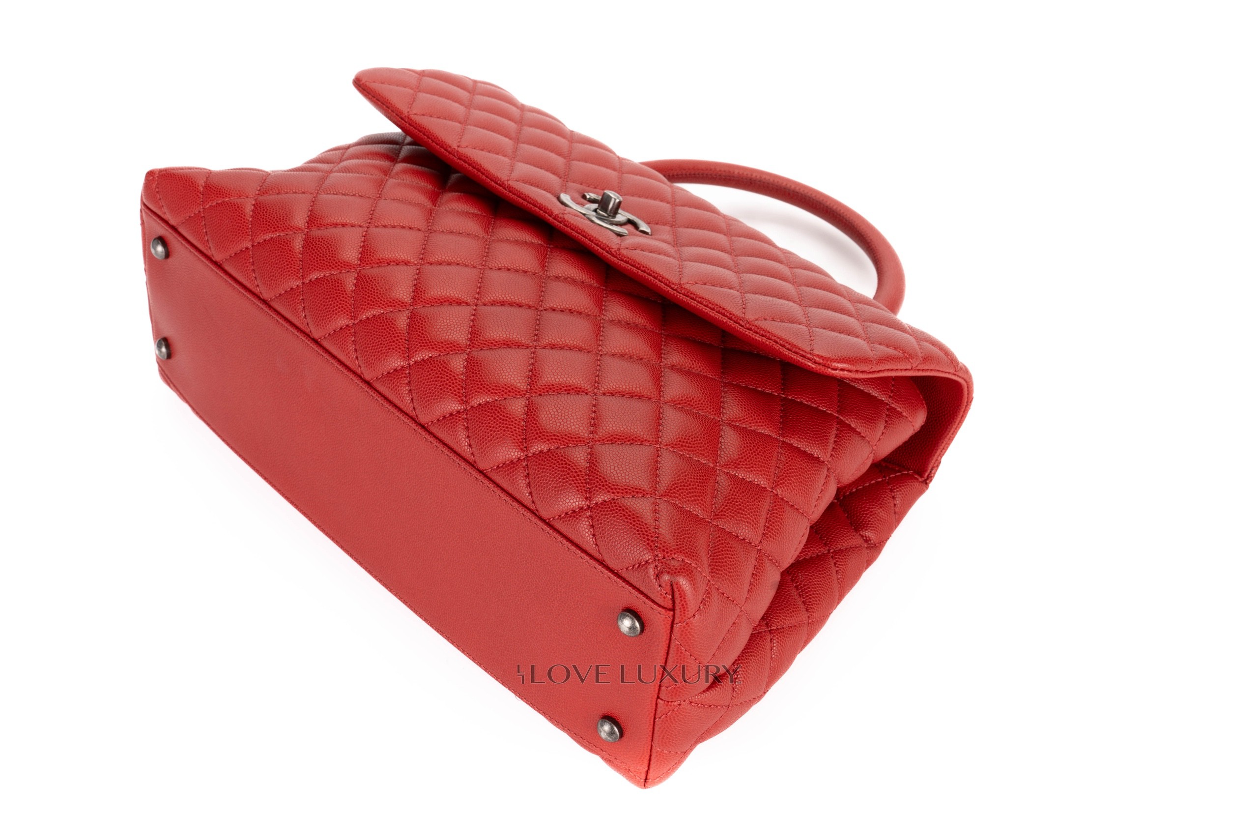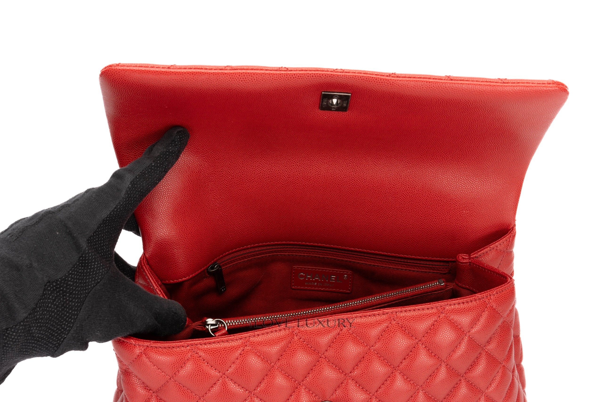Chanel Red Quilted Caviar Coco Handle Medium Aged Silver Hardware / 23 series 2016-17 Pre-Loved condition