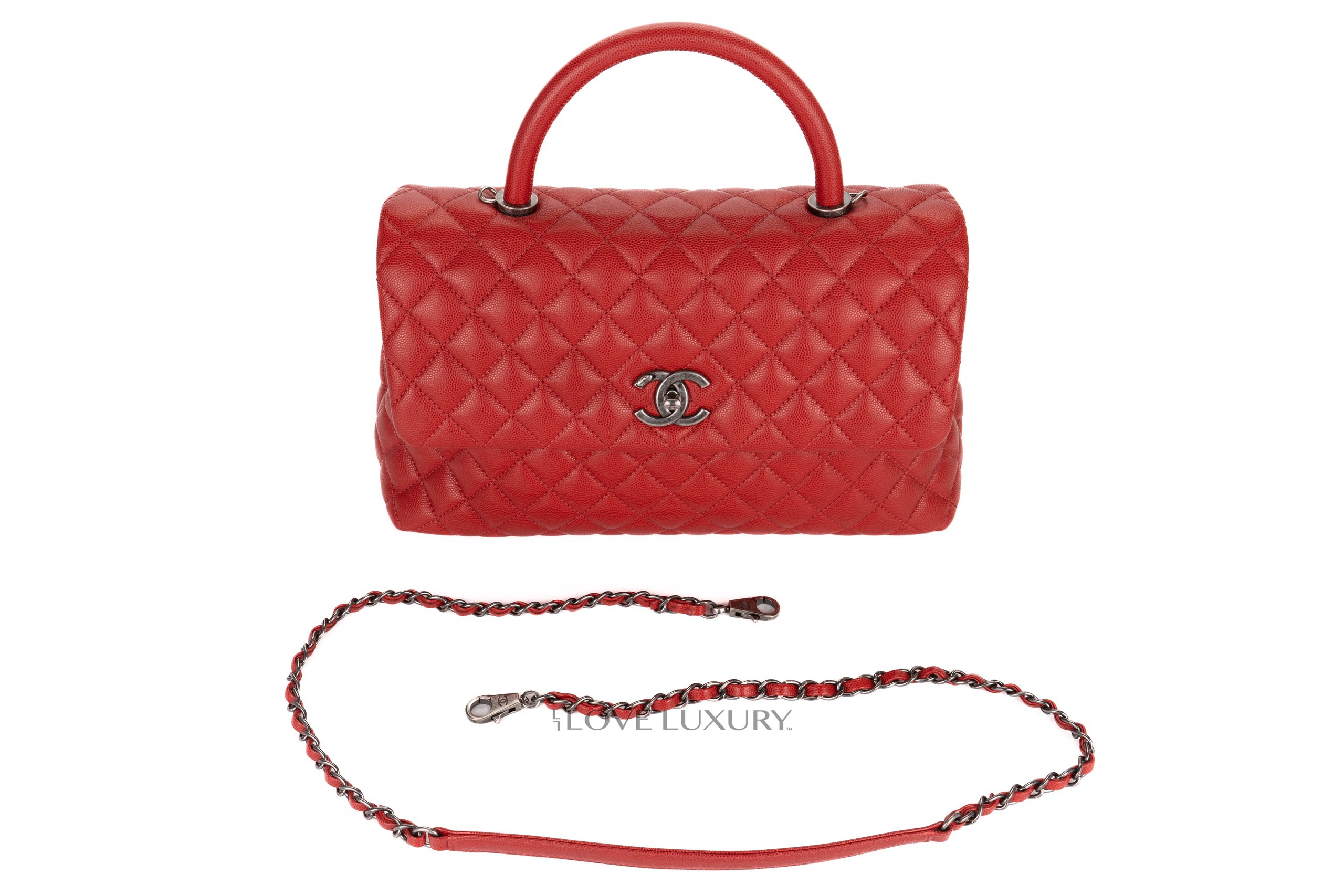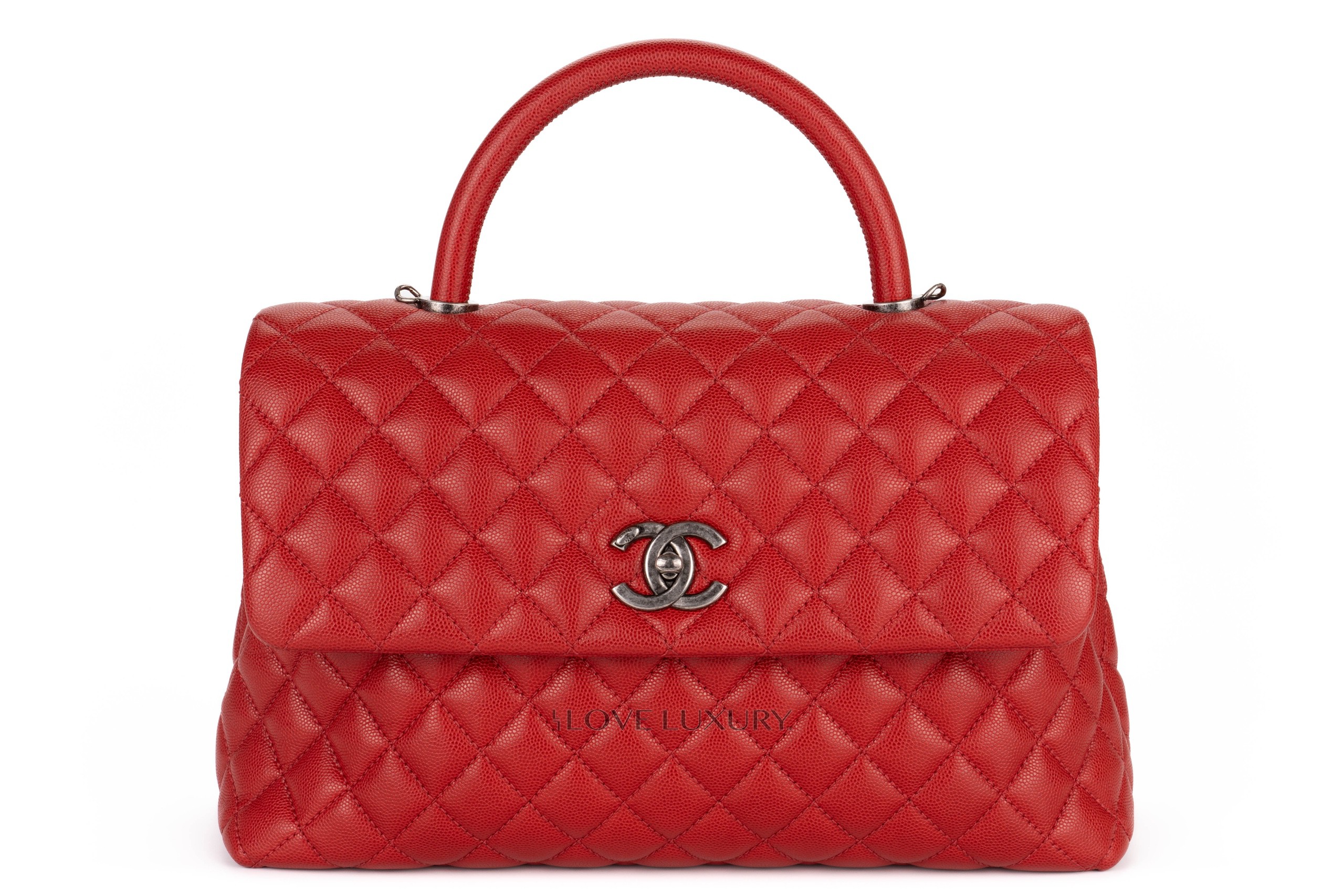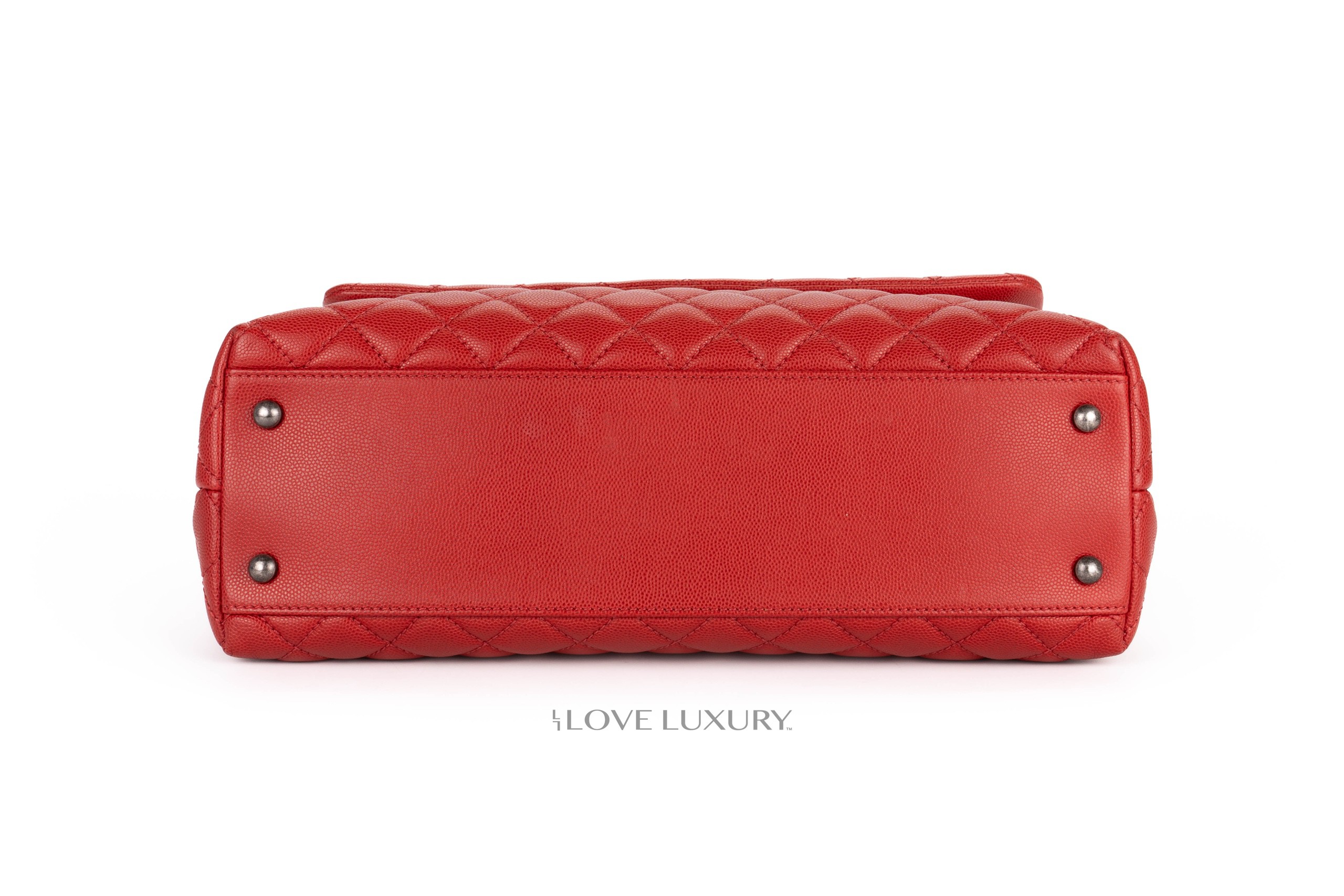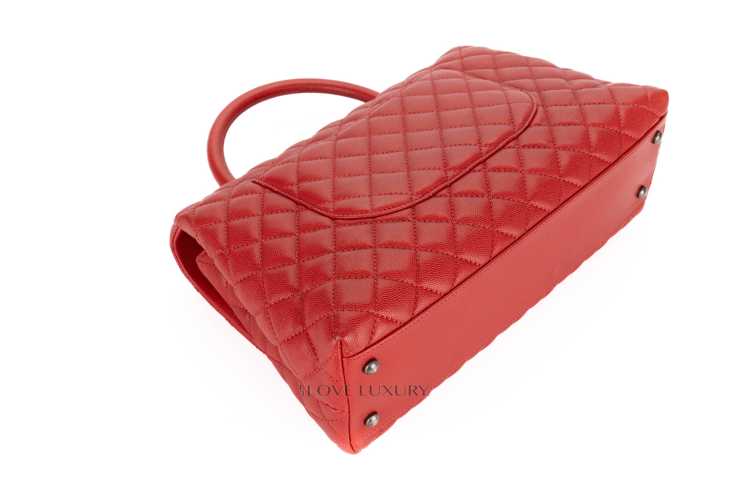 Chanel Red Quilted Caviar Coco Handle Medium Aged Silver Hardware / 23 series 2016-17 Pre-Loved condition