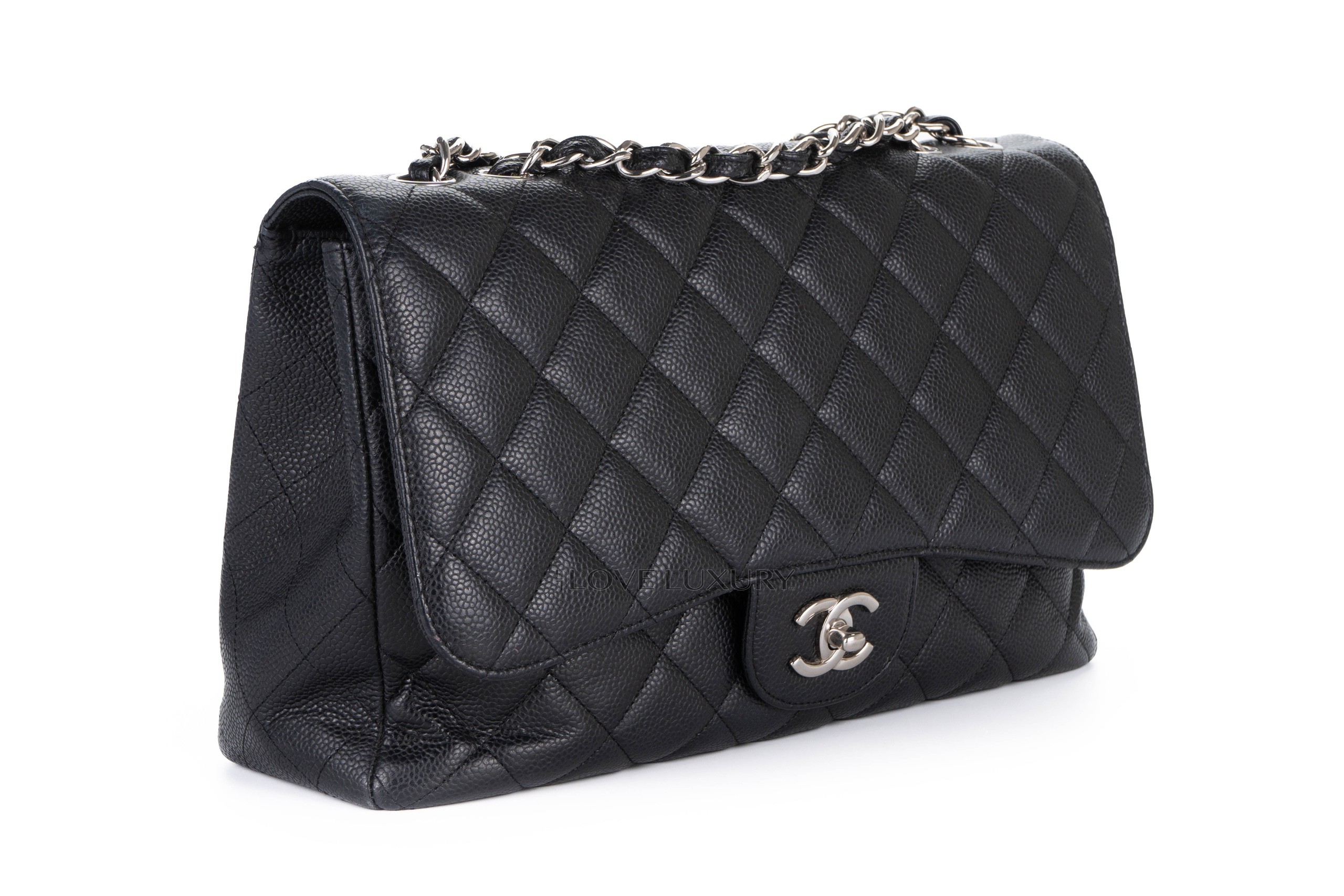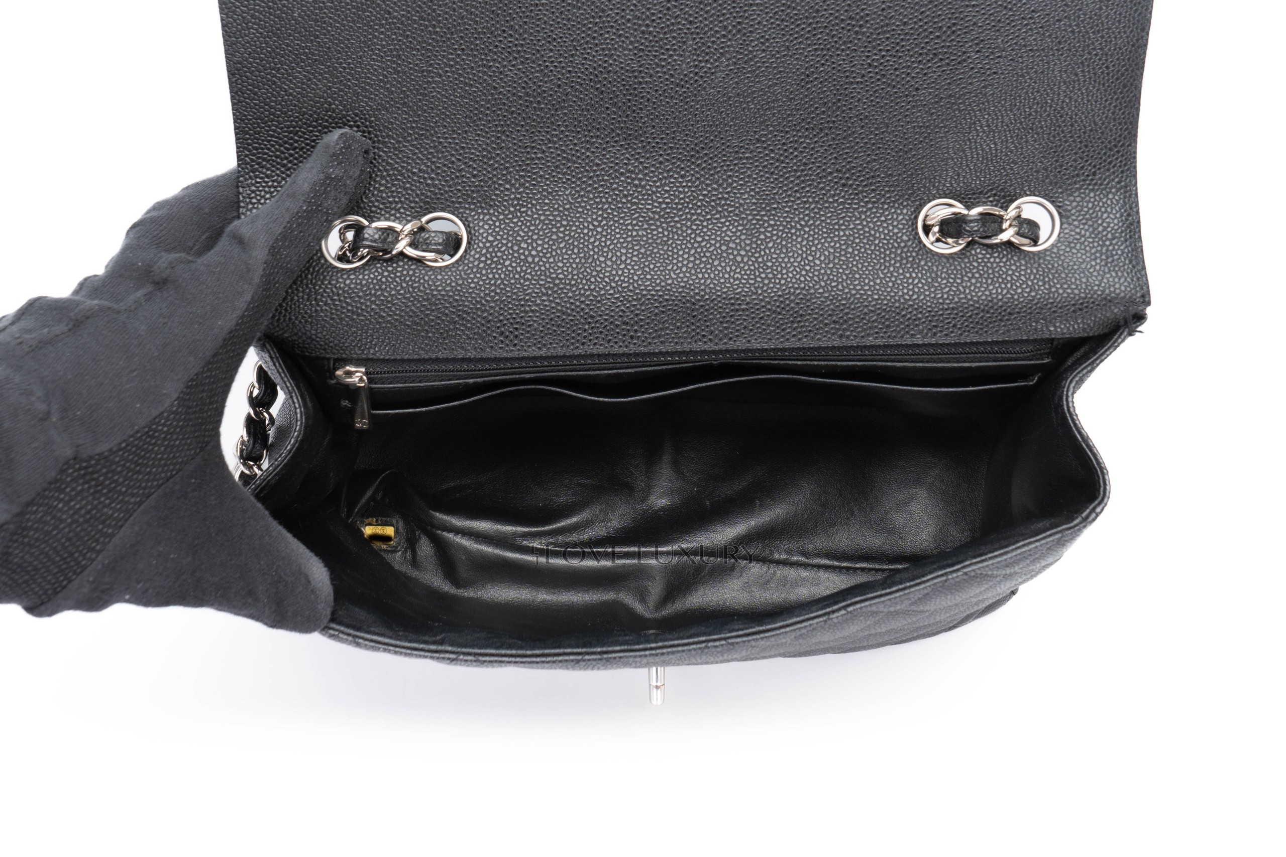 Chanel Single Flap Caviar Black Silver Hardware / 13 series 2009-10 Pre-Loved condition