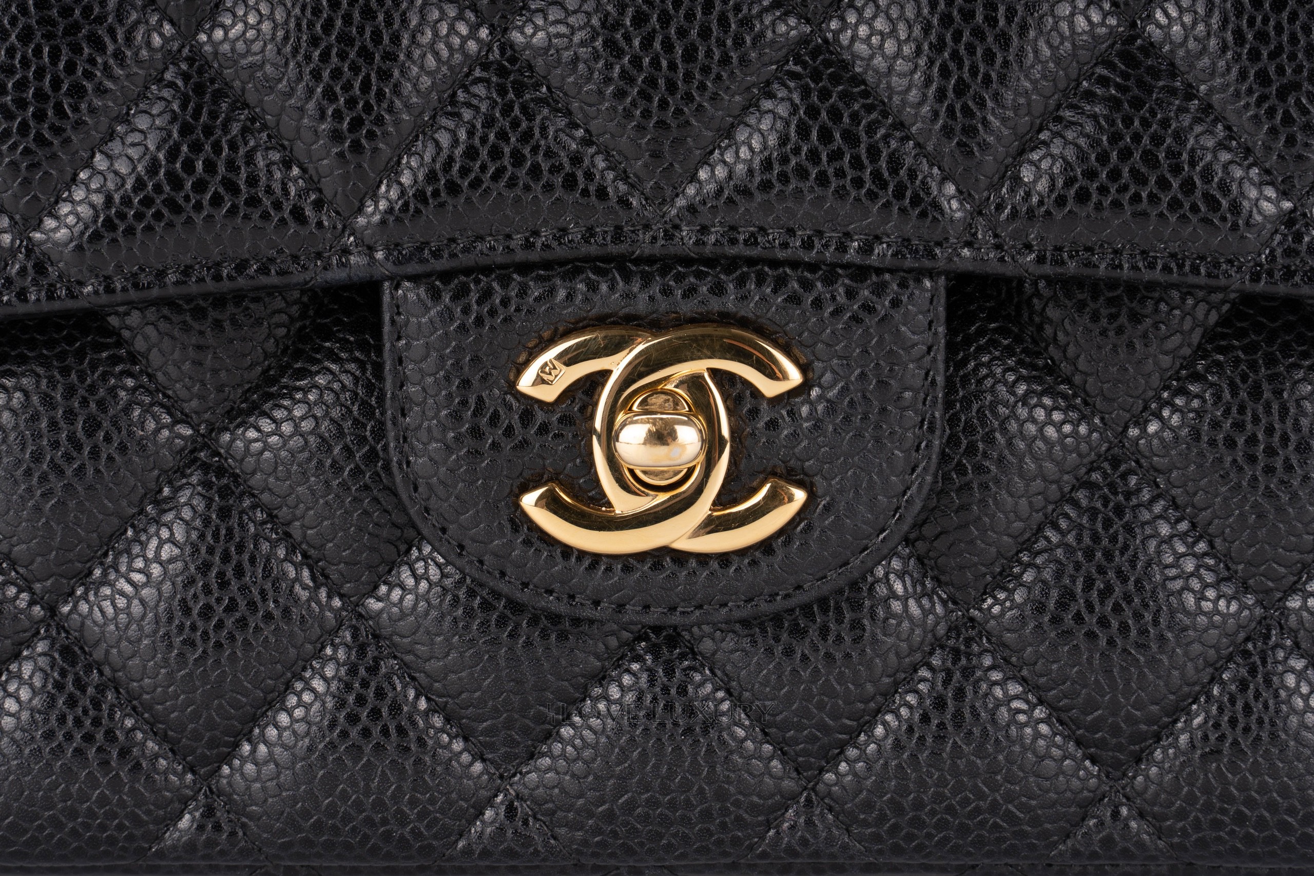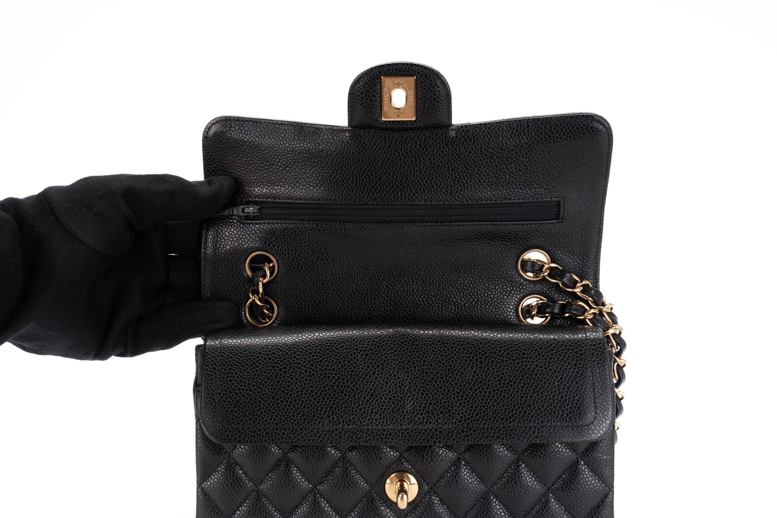 Chanel Small Classic Flap Caviar Gold Hardware with Black Interior Limited Edition / 16 2008 Very Good Pre-Loved Condition.