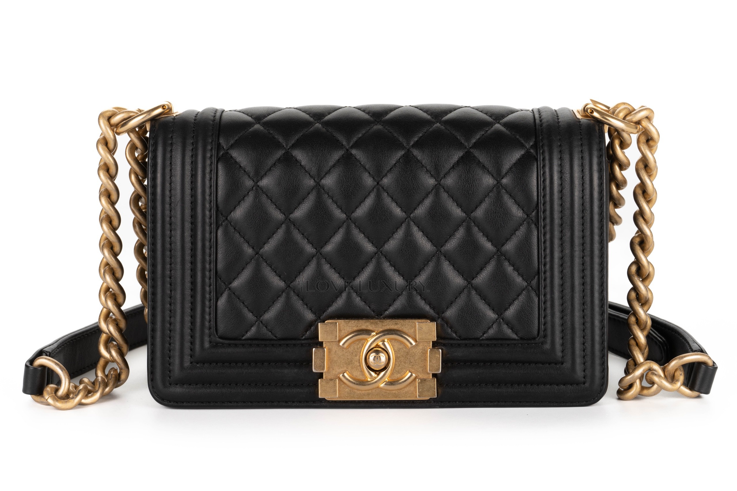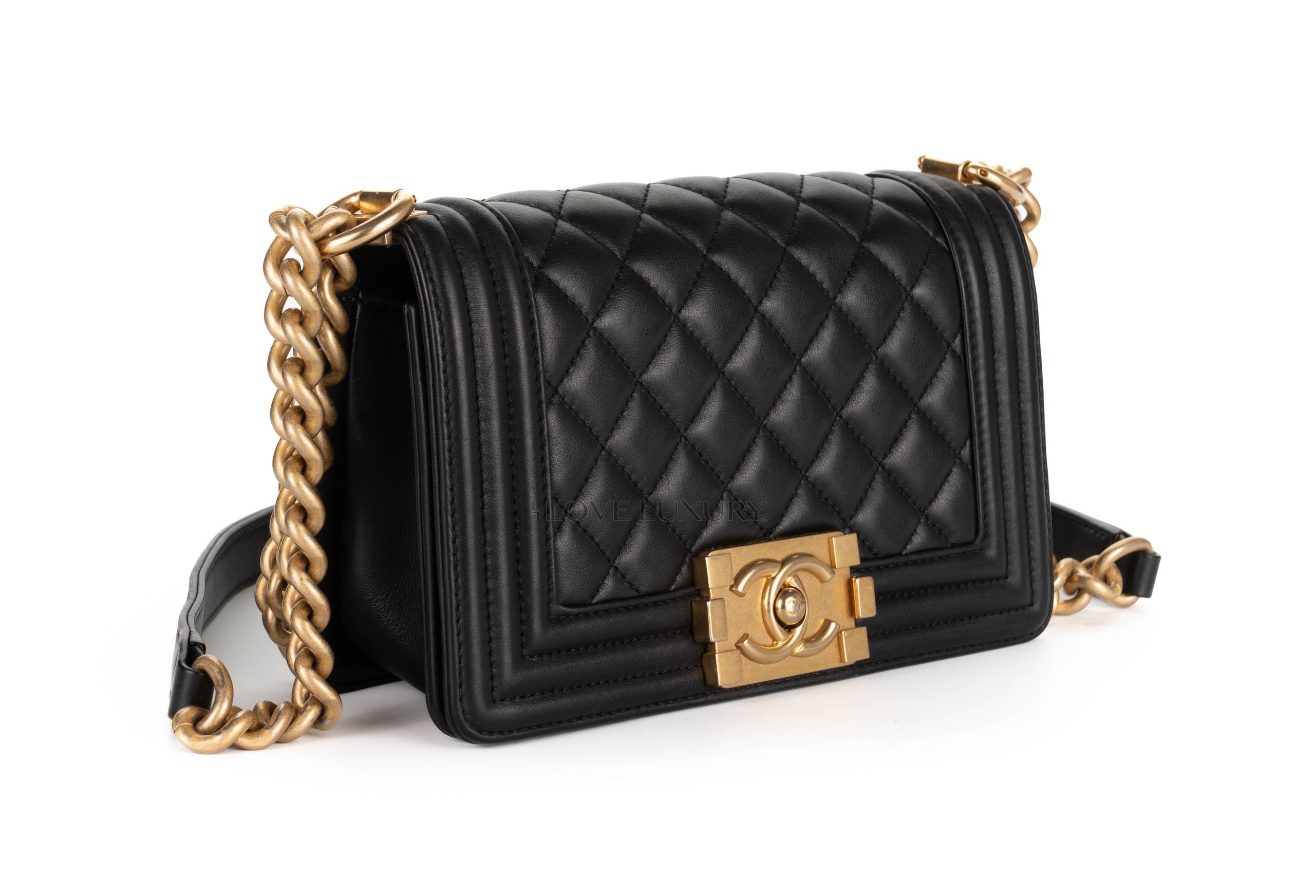 Chanel Small Boy Bag Black Lambskin Gold Hardware