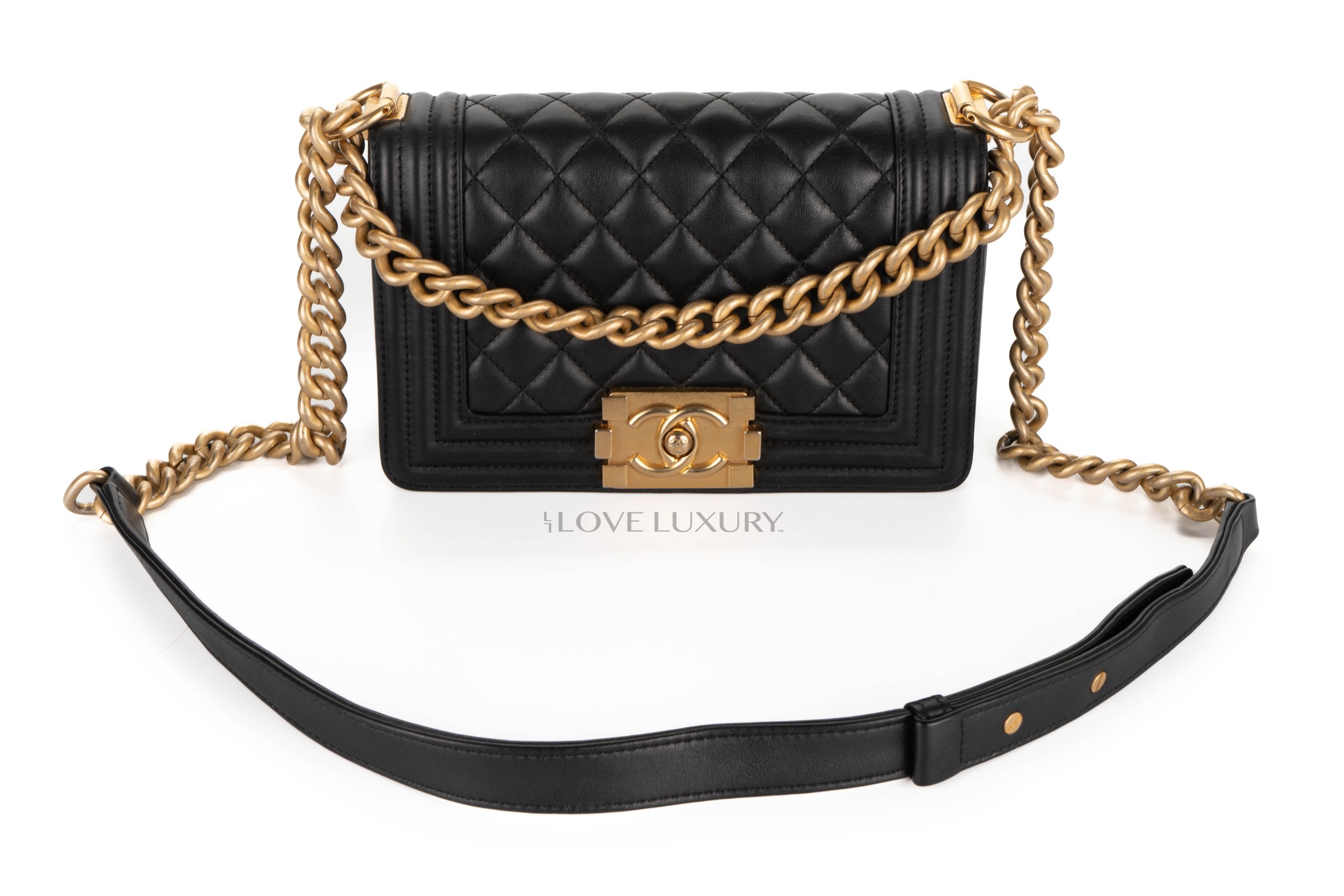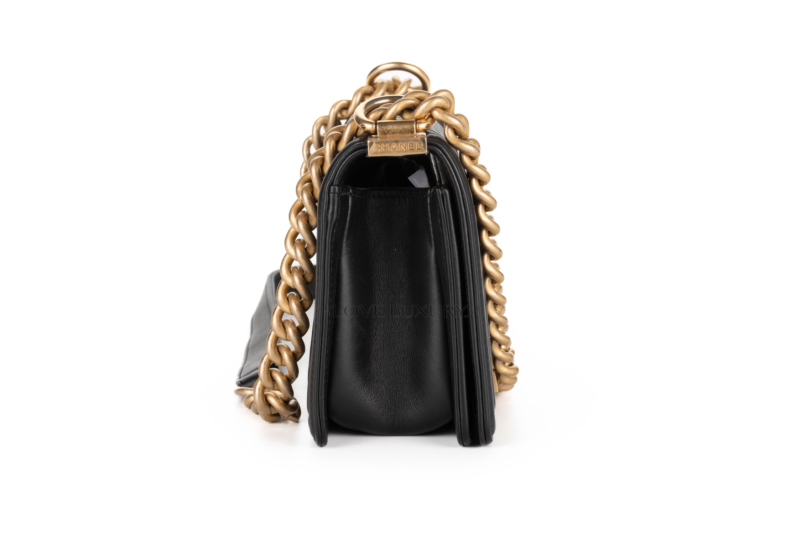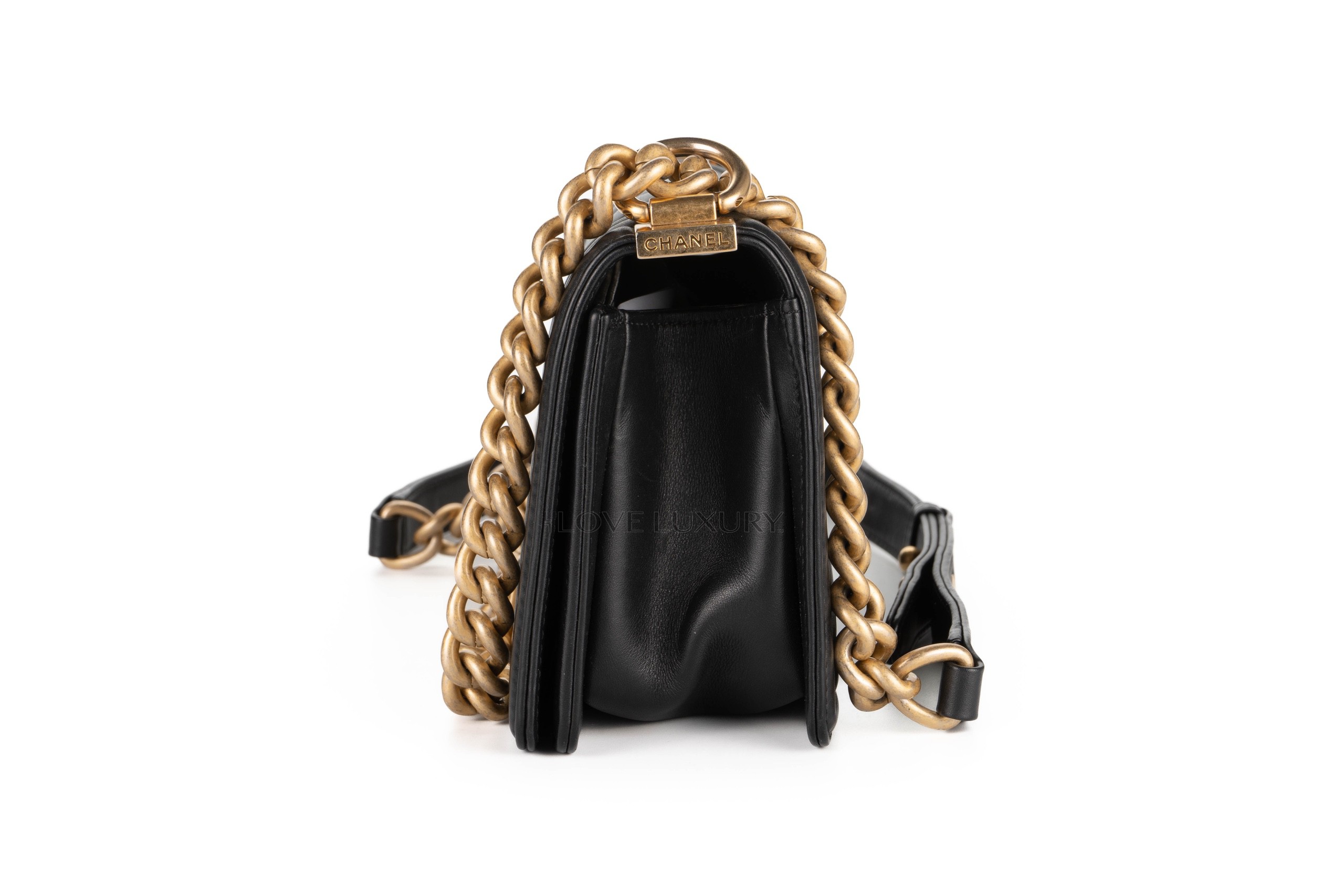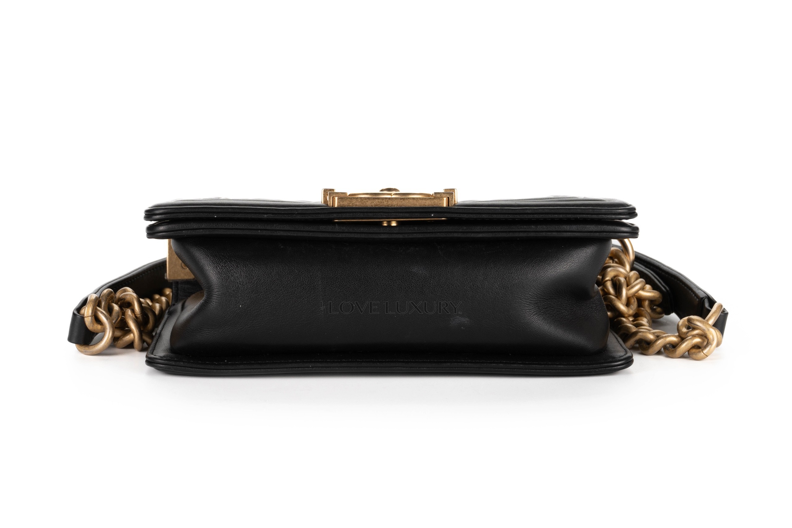 Chanel Small Boy Bag Black Lambskin Gold Hardware / 2021 microchipped Pre-Loved condition