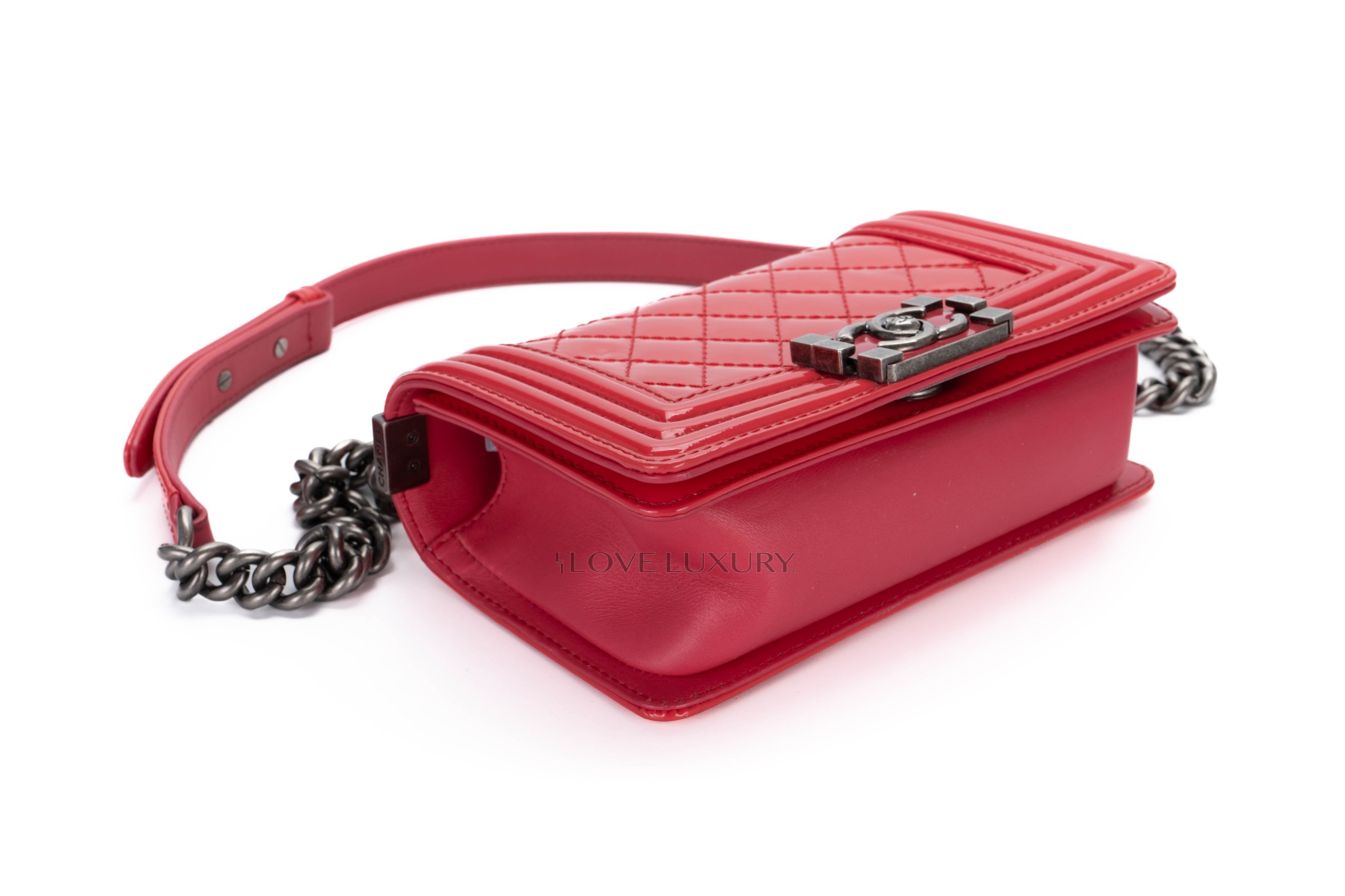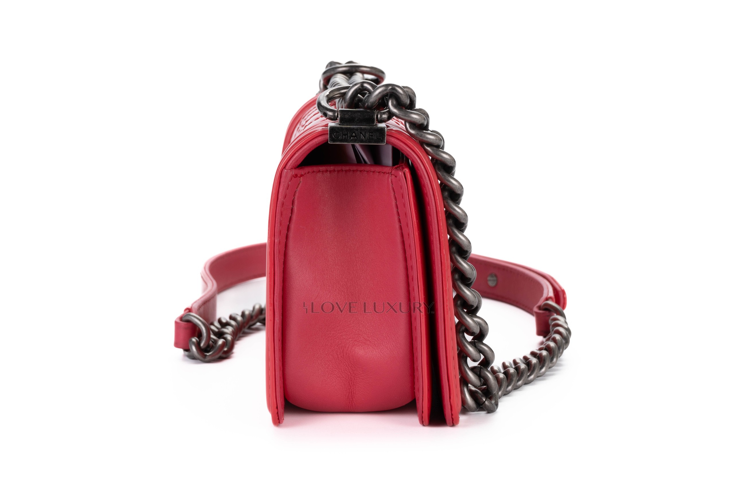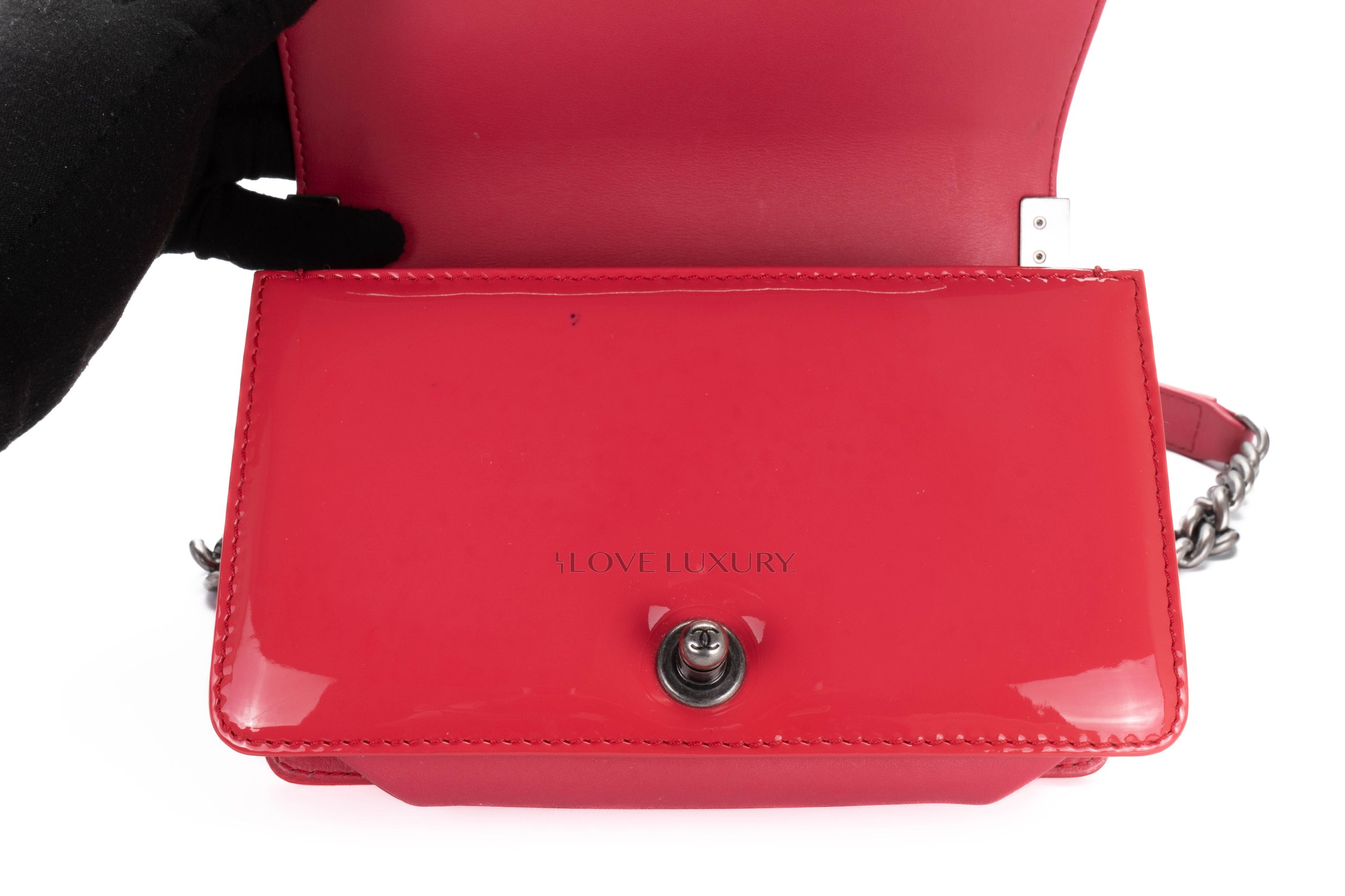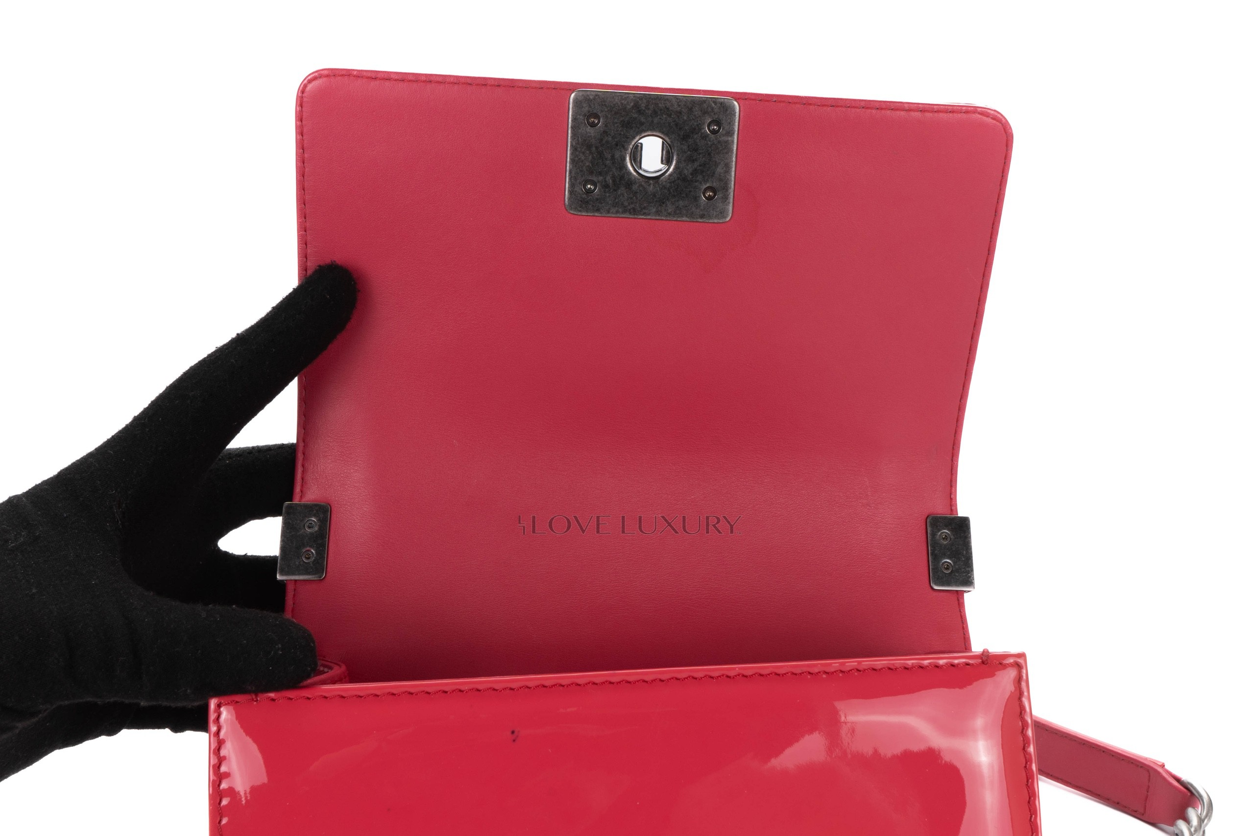 Chanel Small Boy Bag Pink Patent Silver Hardware / 17 series 2012-13 Pre-Loved condition