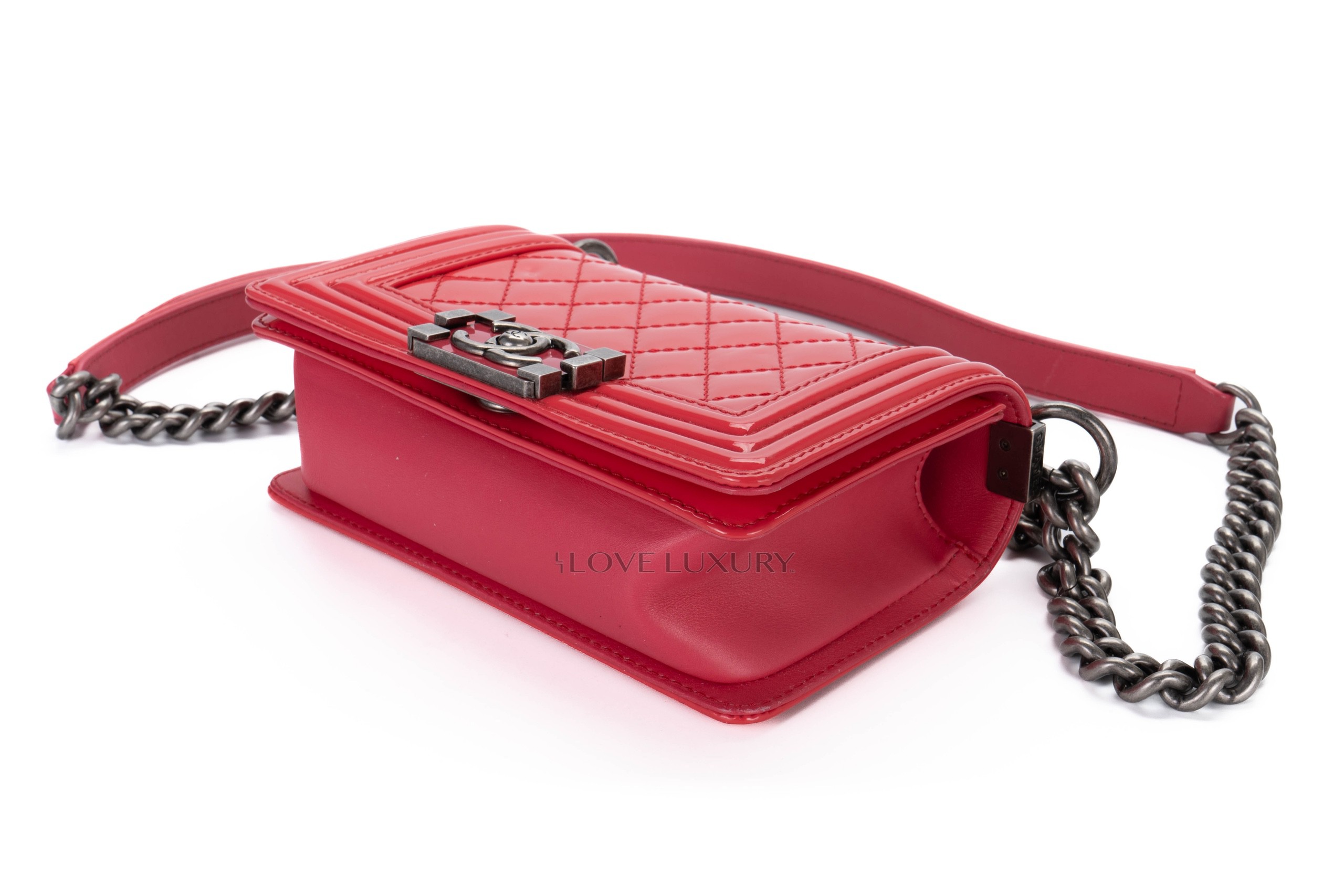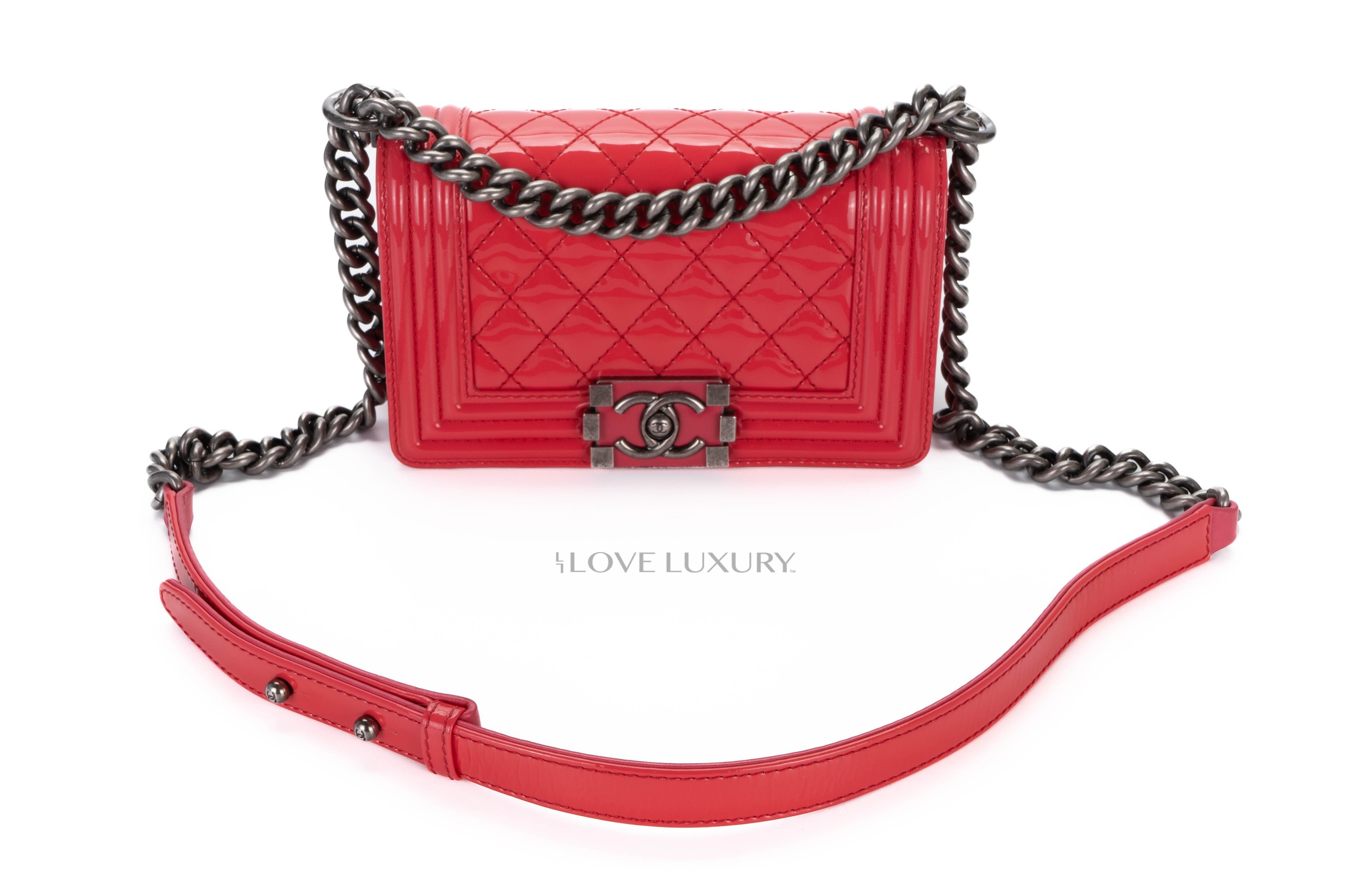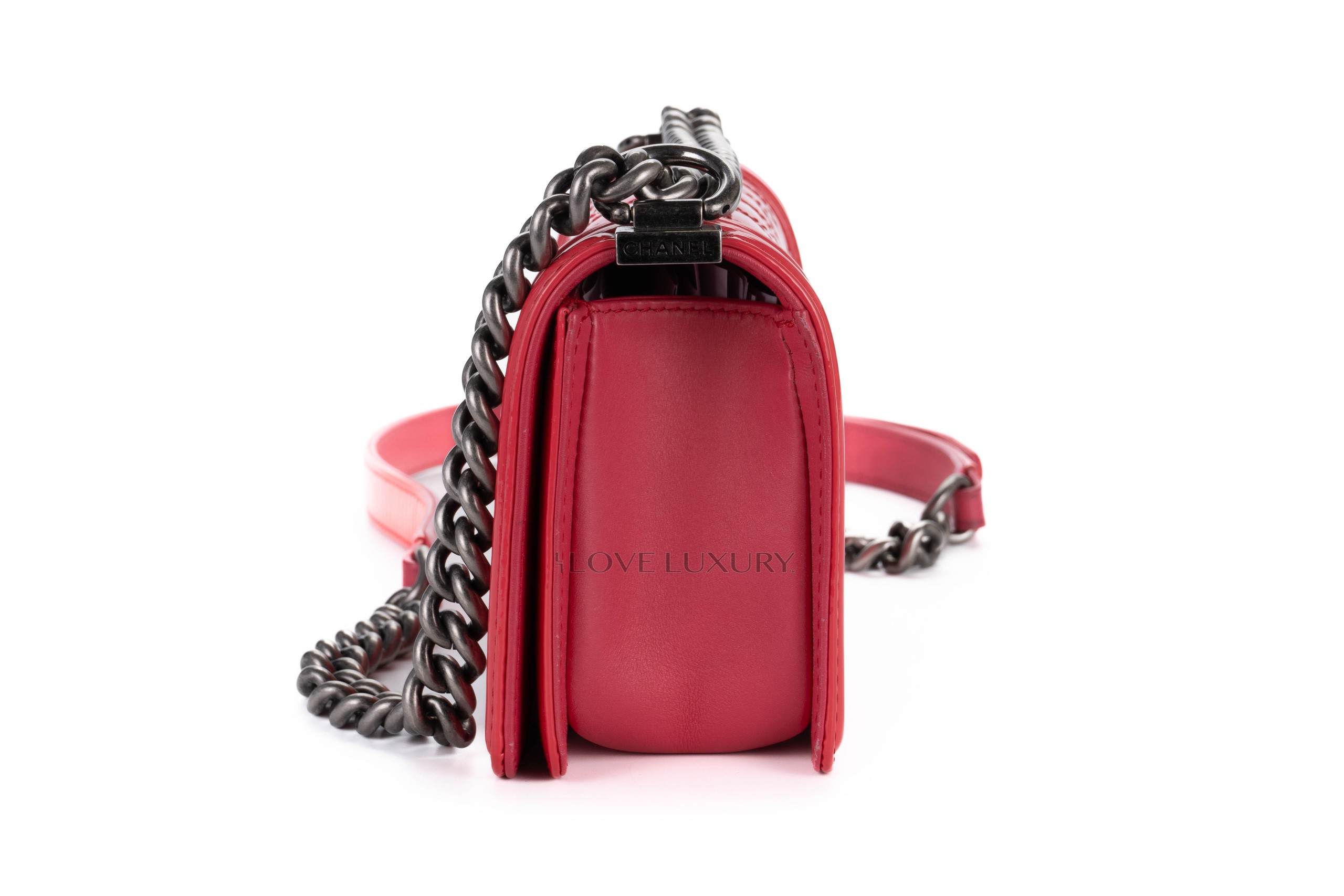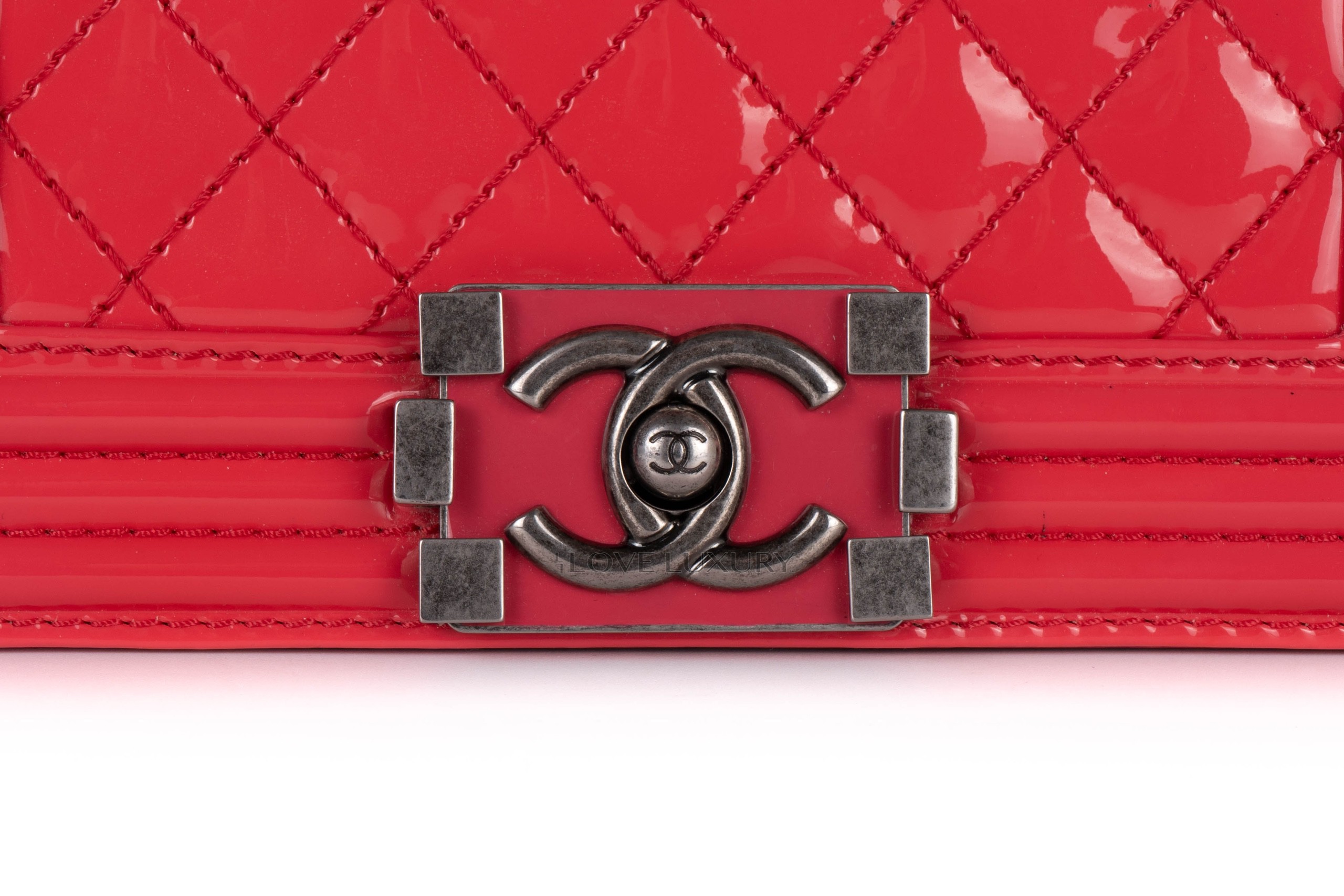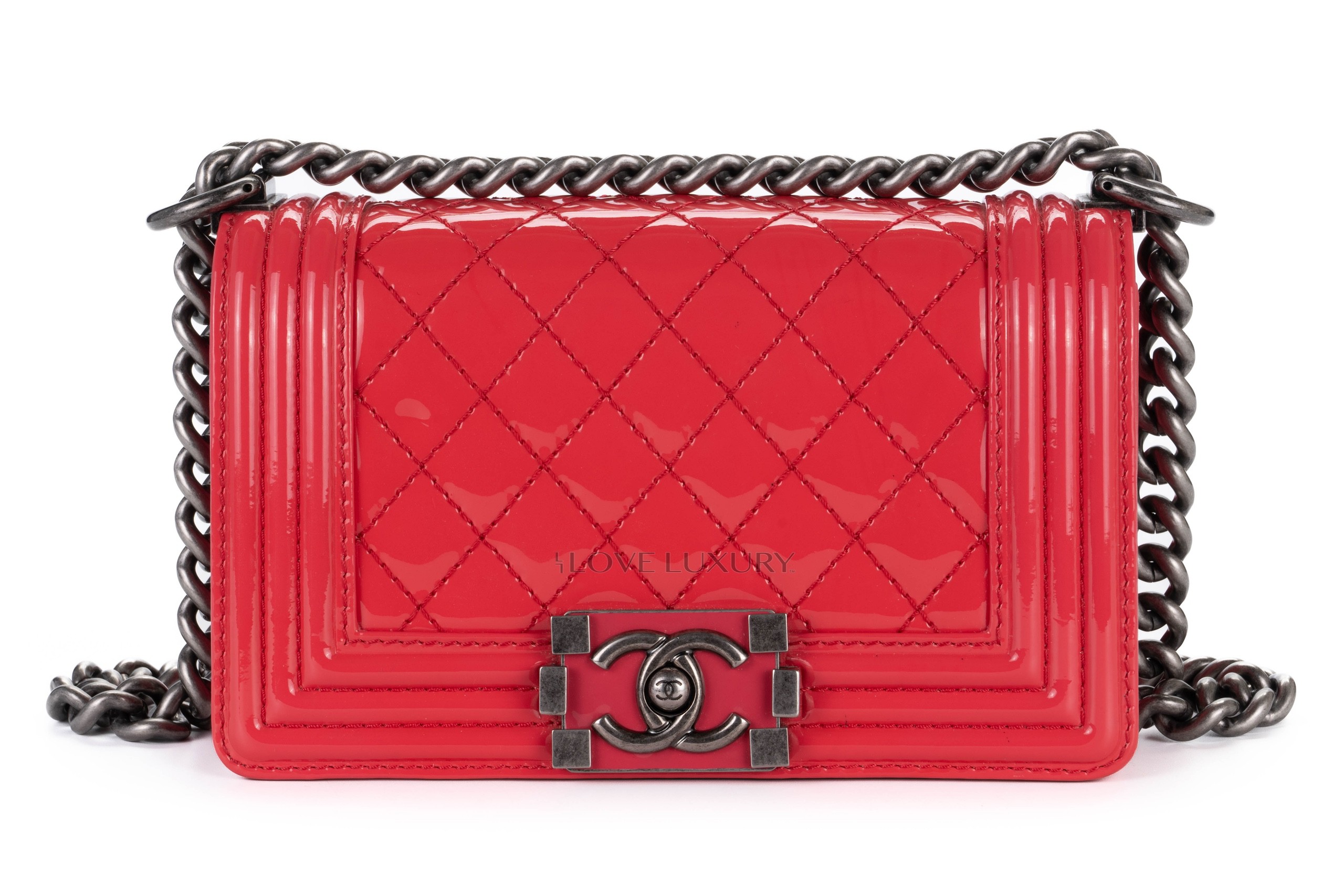 Chanel Small Boy Bag Pink Patent Silver Hardware / 17 series 2012-13 Pre-Loved condition