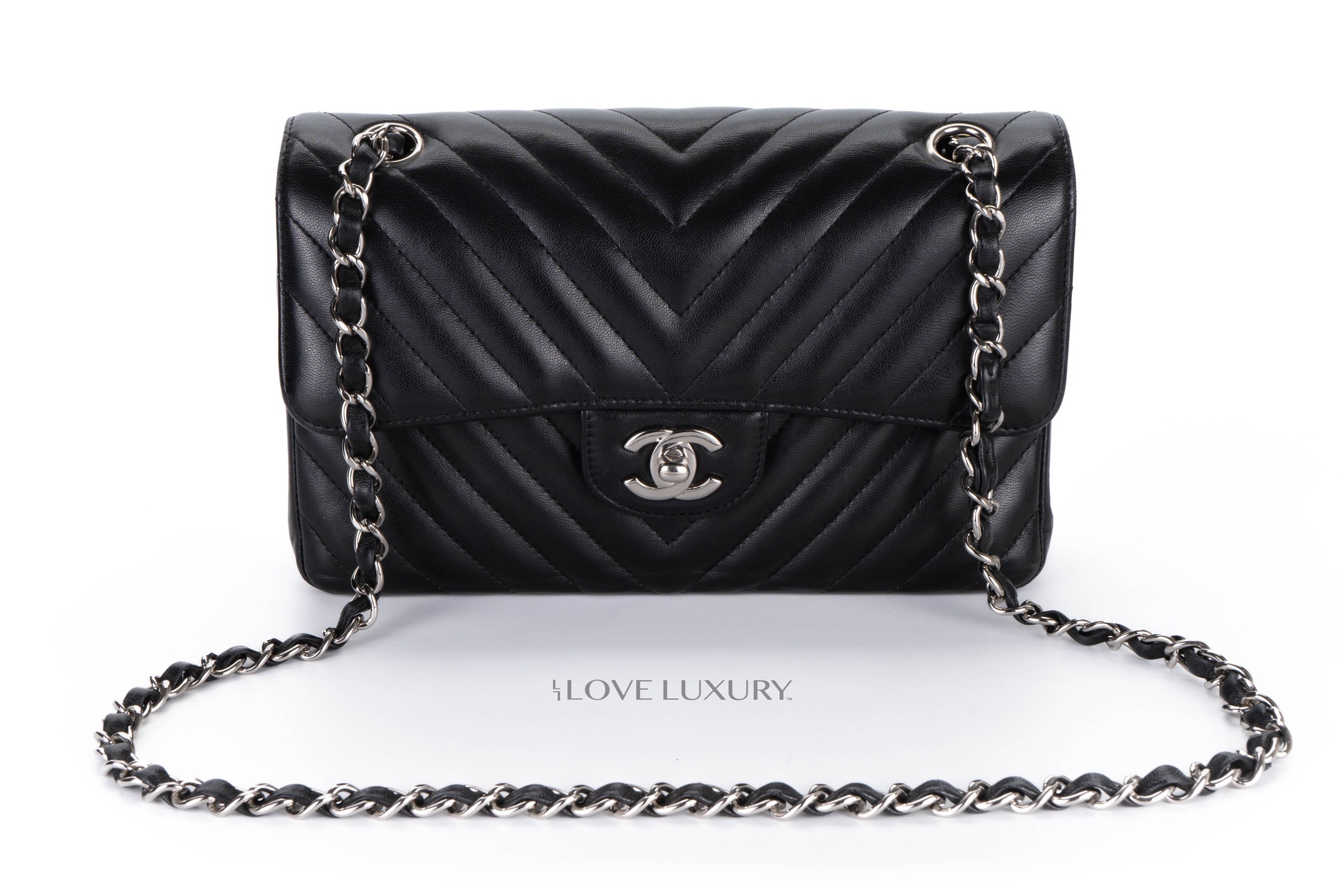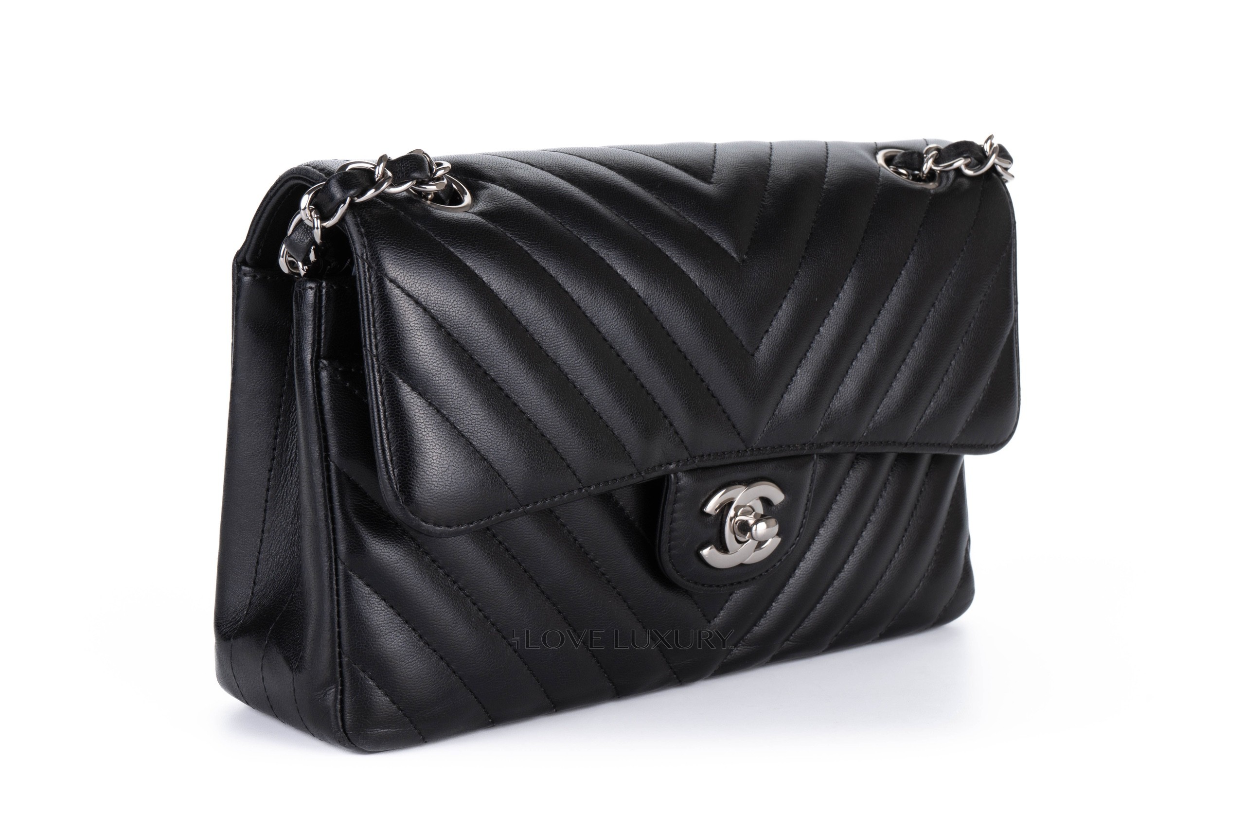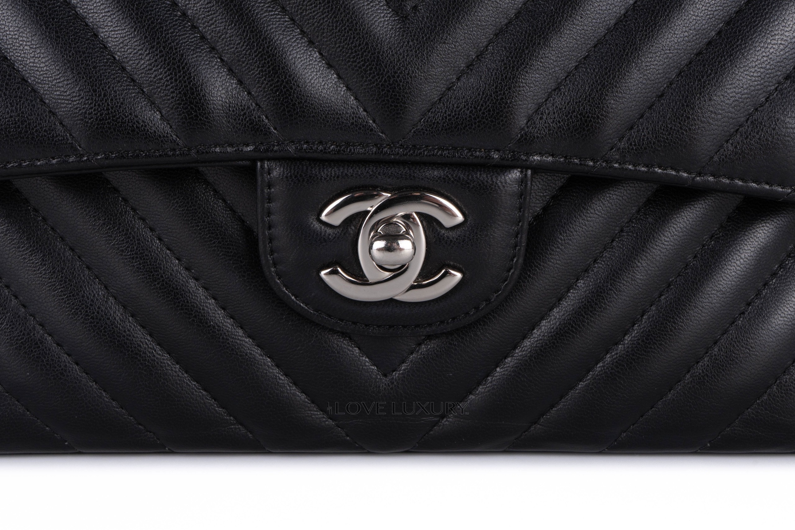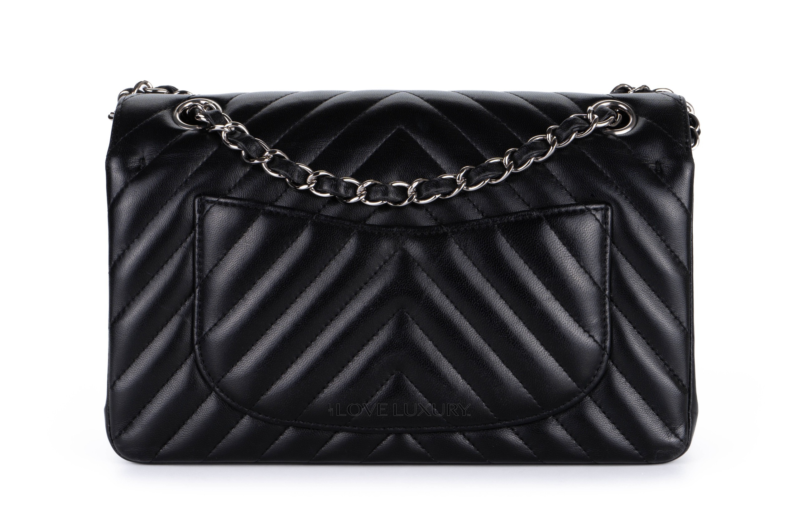 Chanel Small Chevron Classic Flap Black Lambskin Silver Hardware