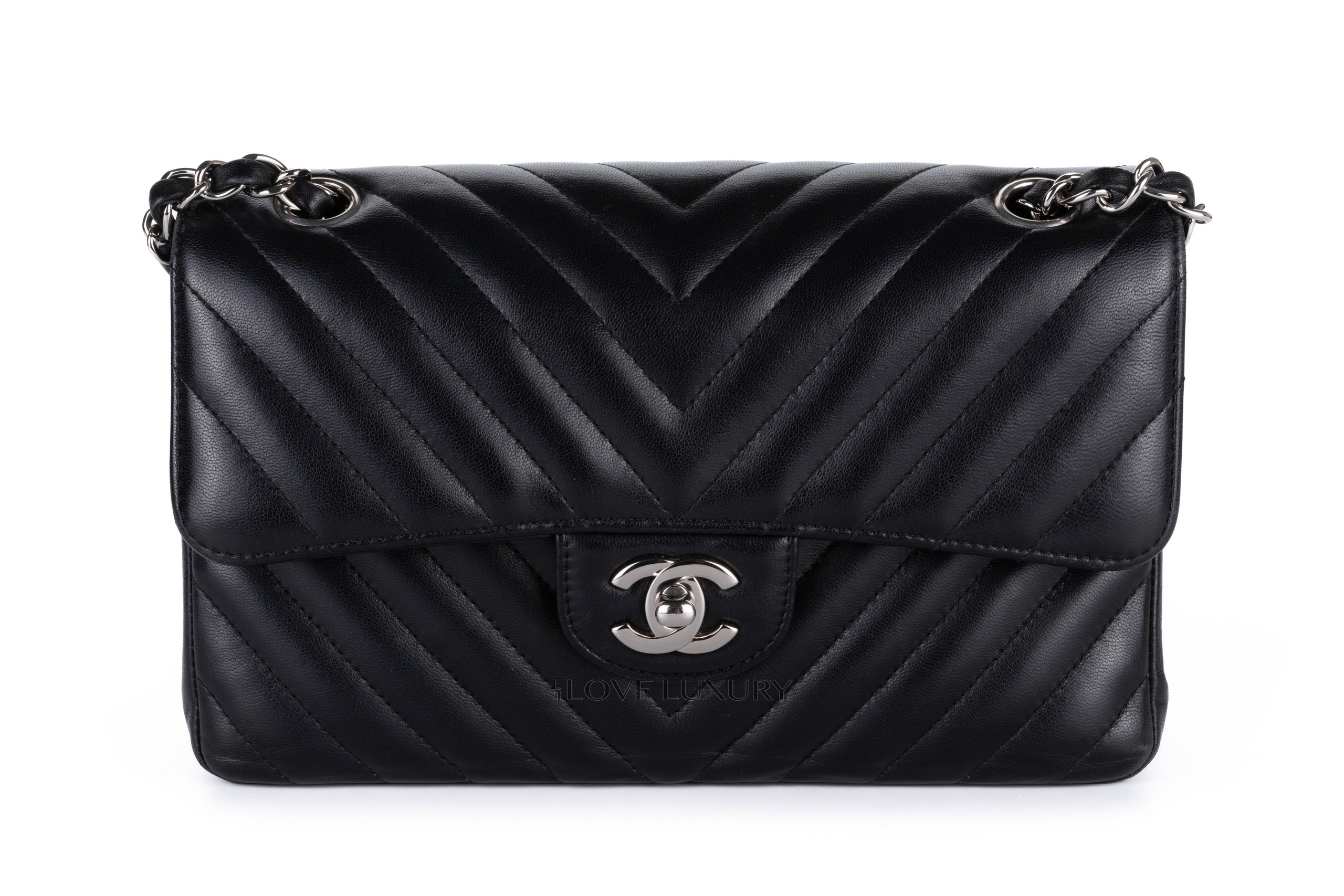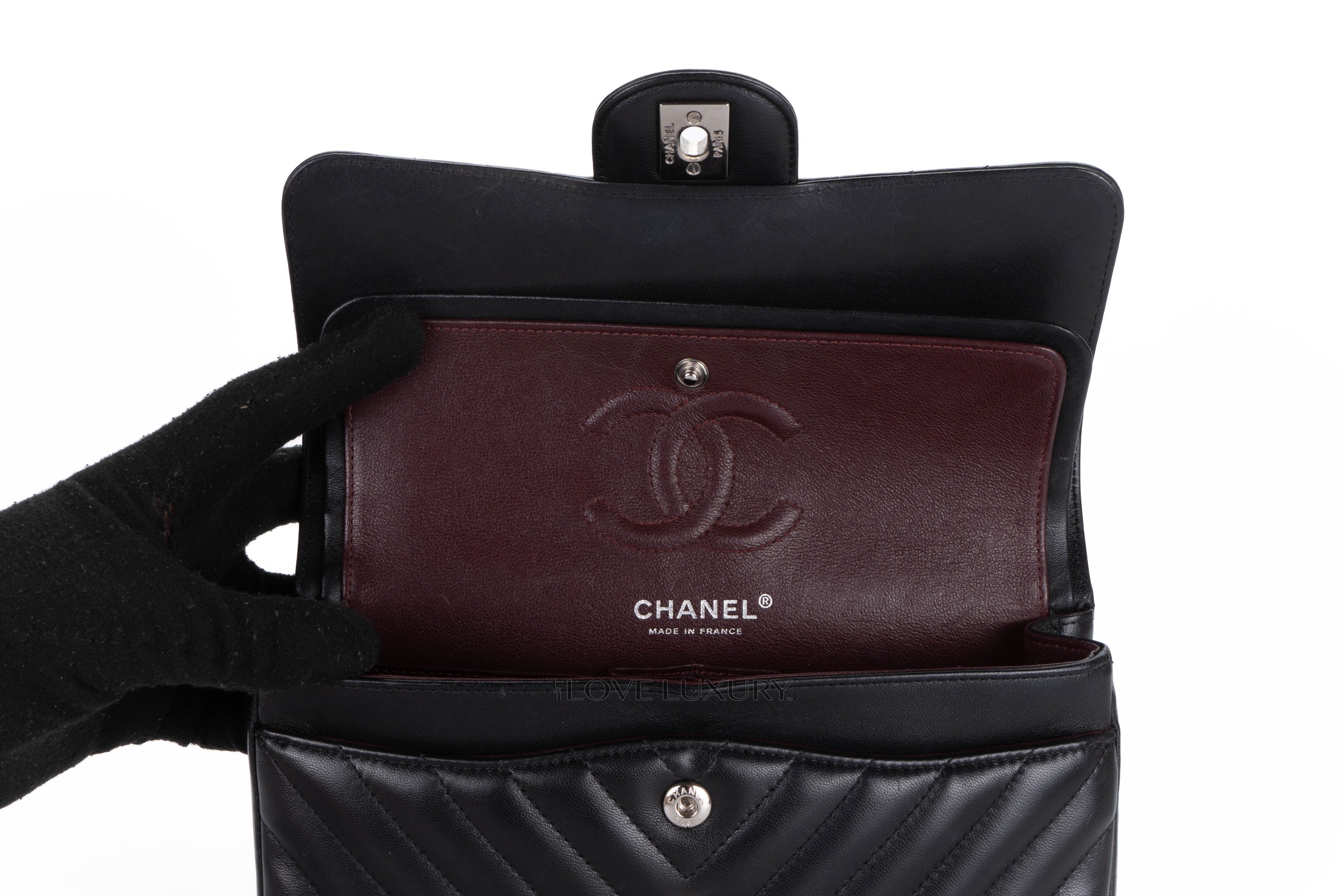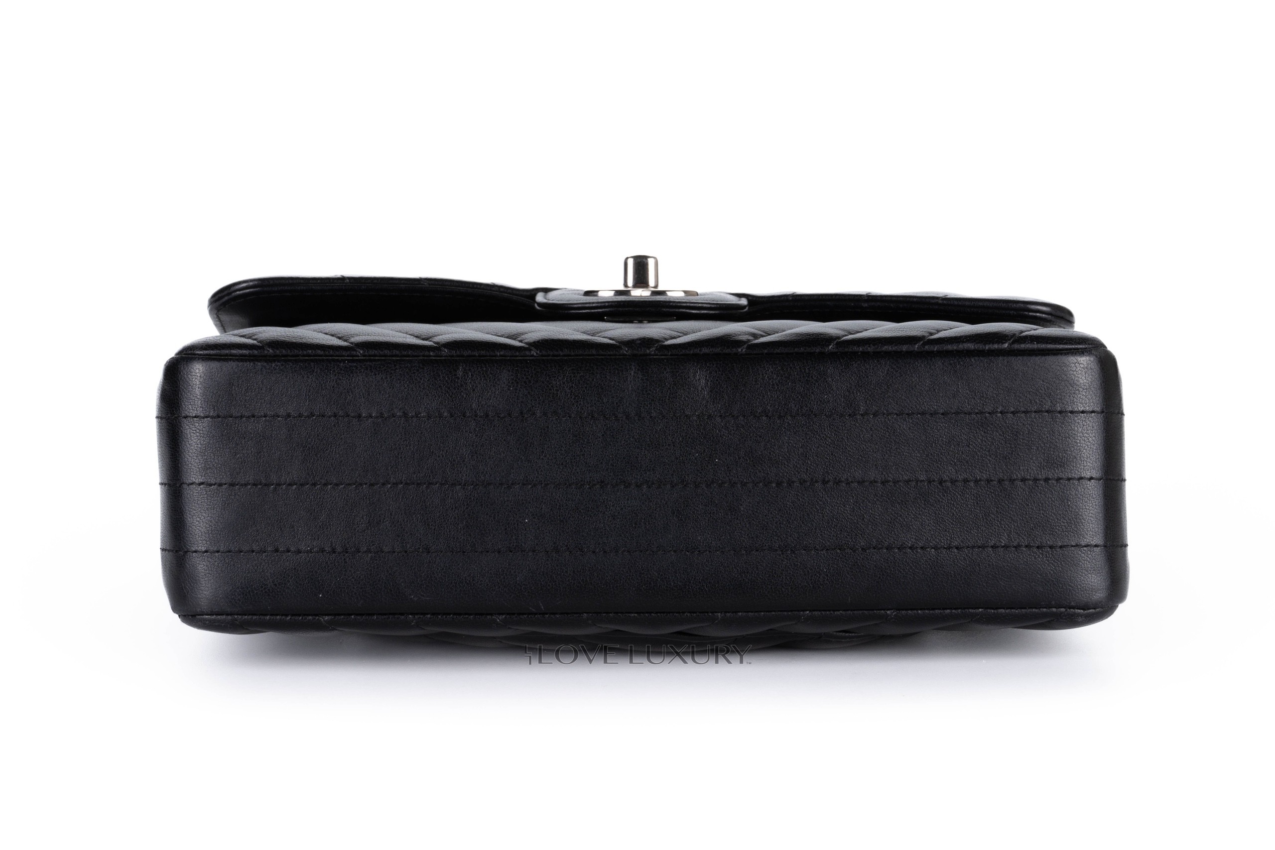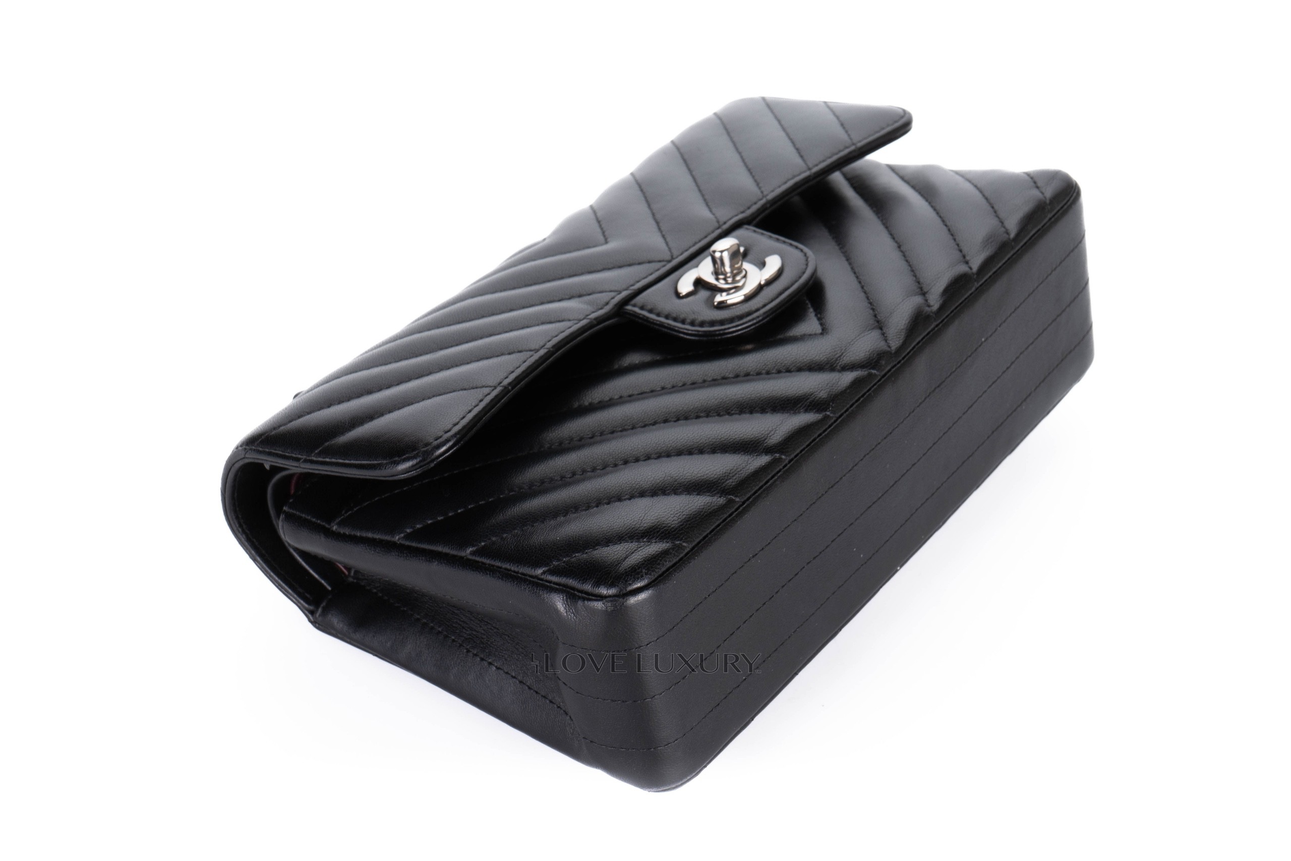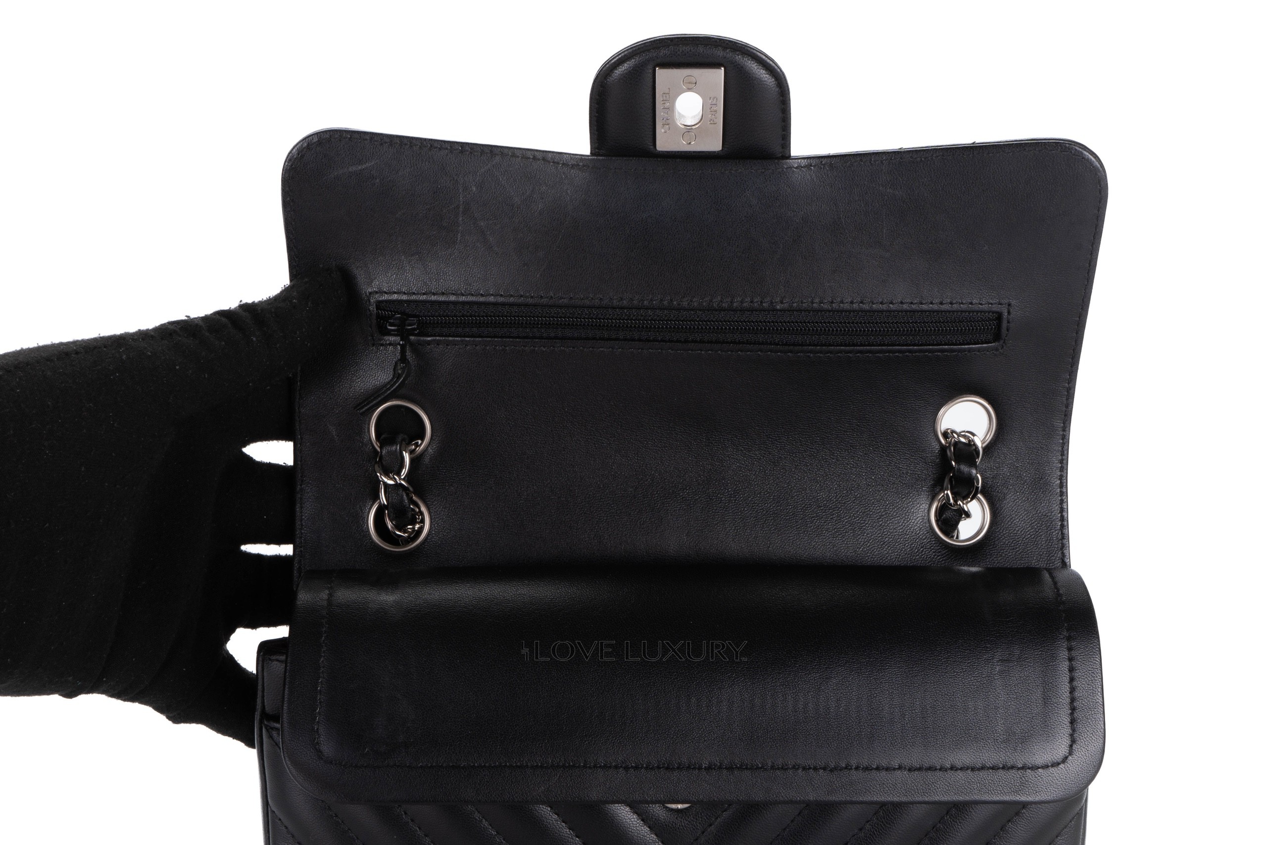 Chanel Small Chevron Classic Flap Black Lambskin Silver Hardware