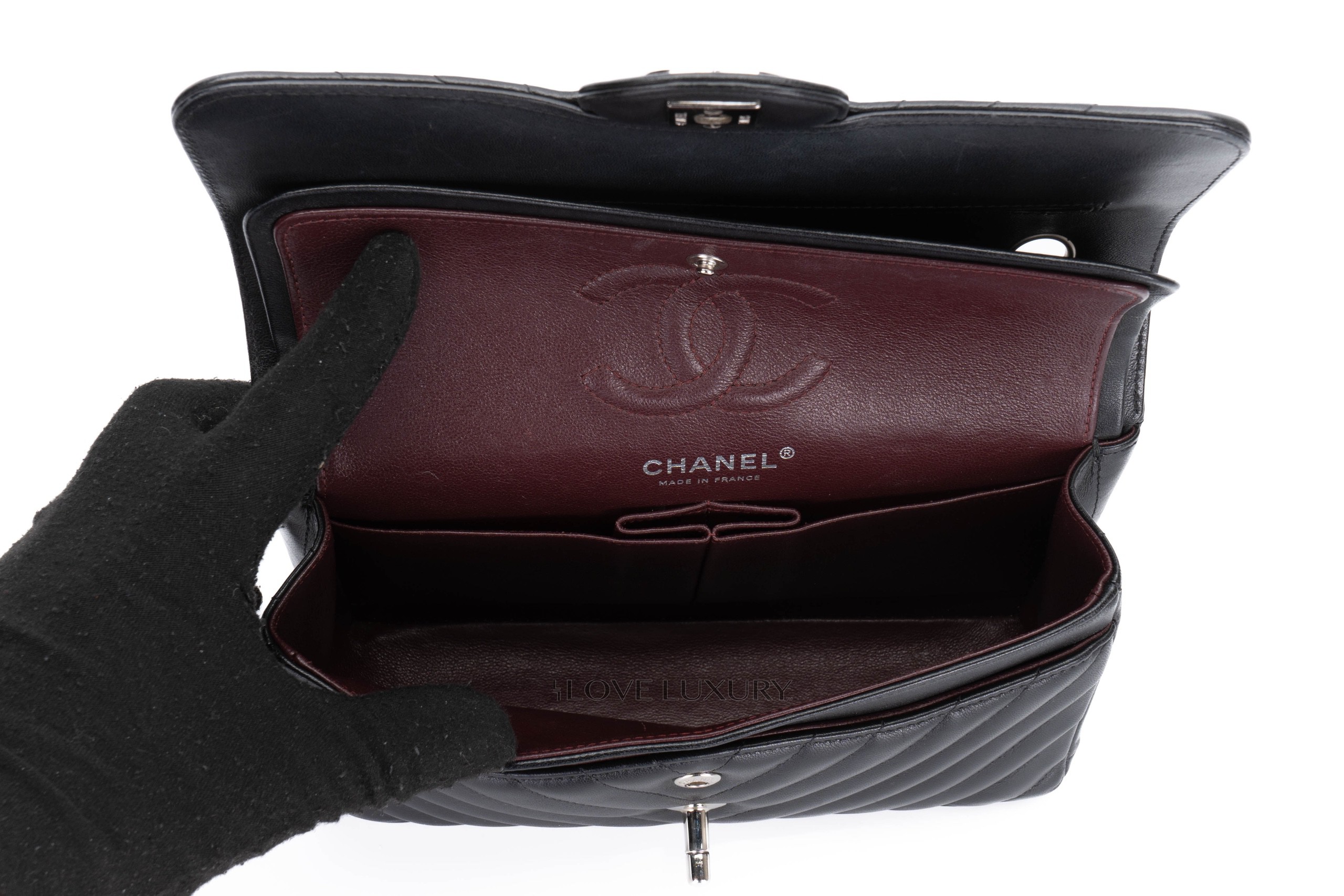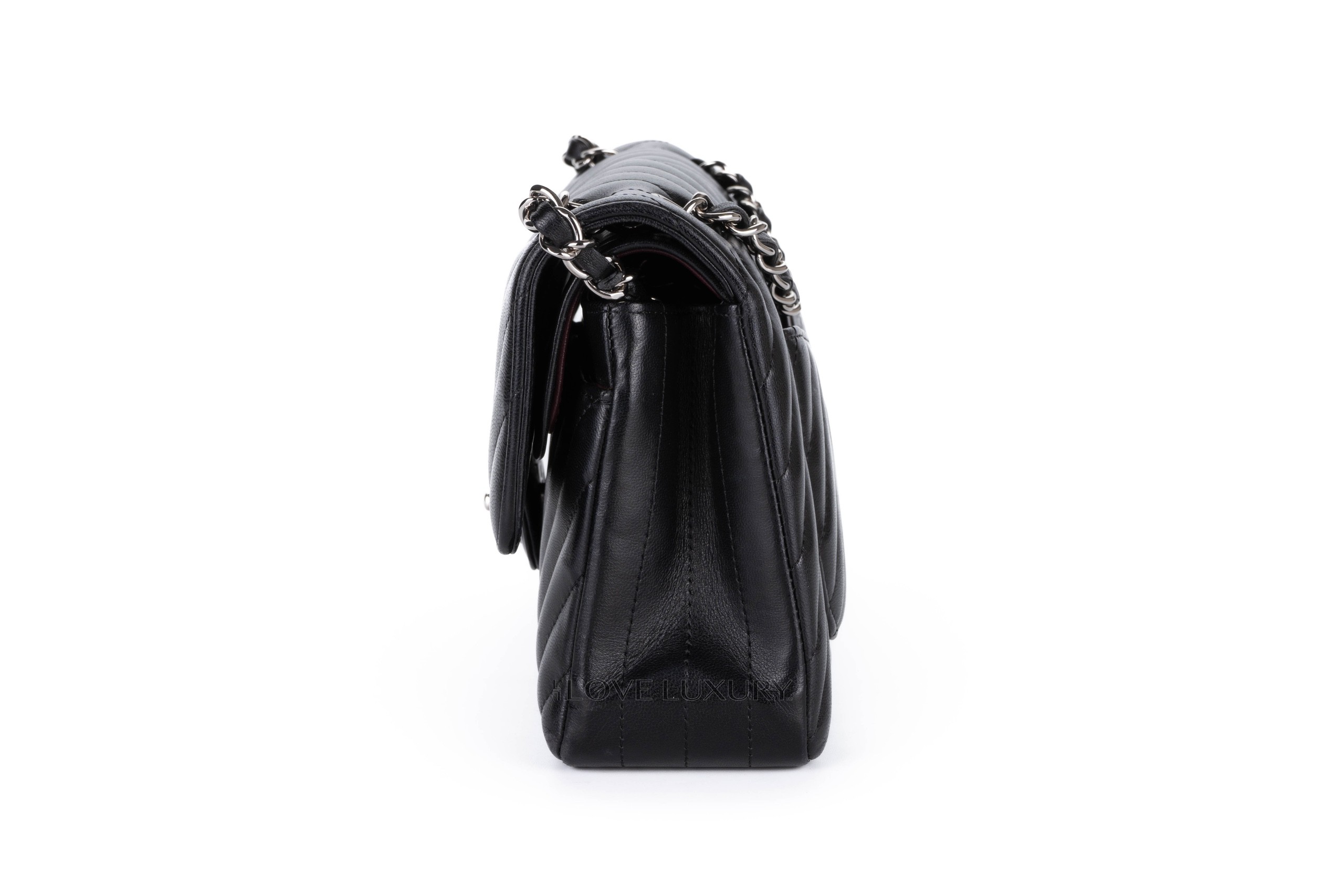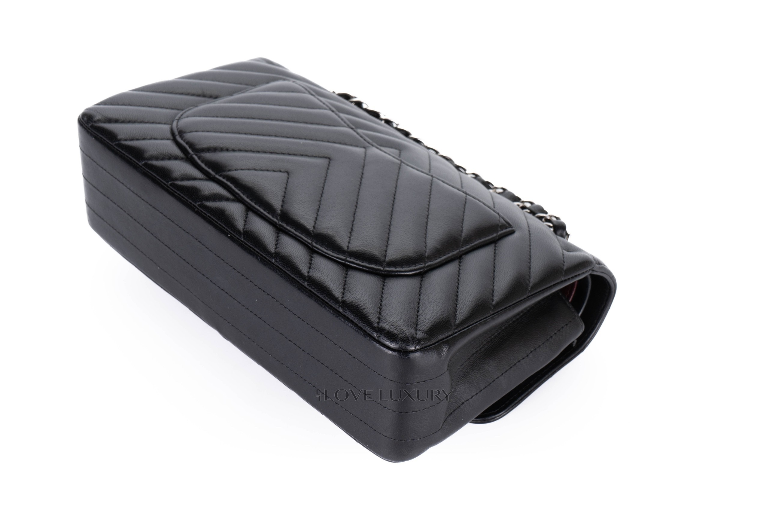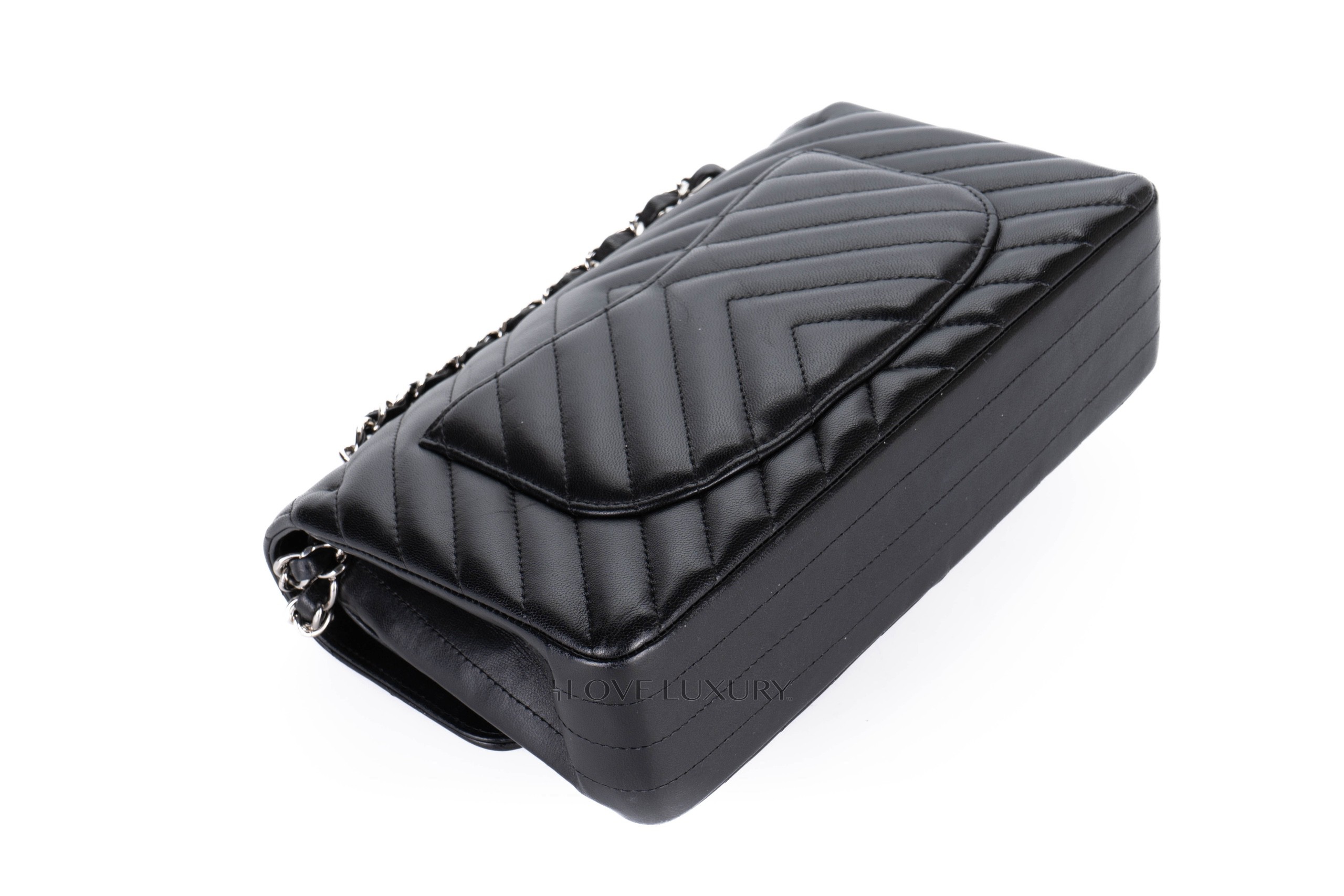 Chanel Small Chevron Classic Flap Black Lambskin Silver Hardware