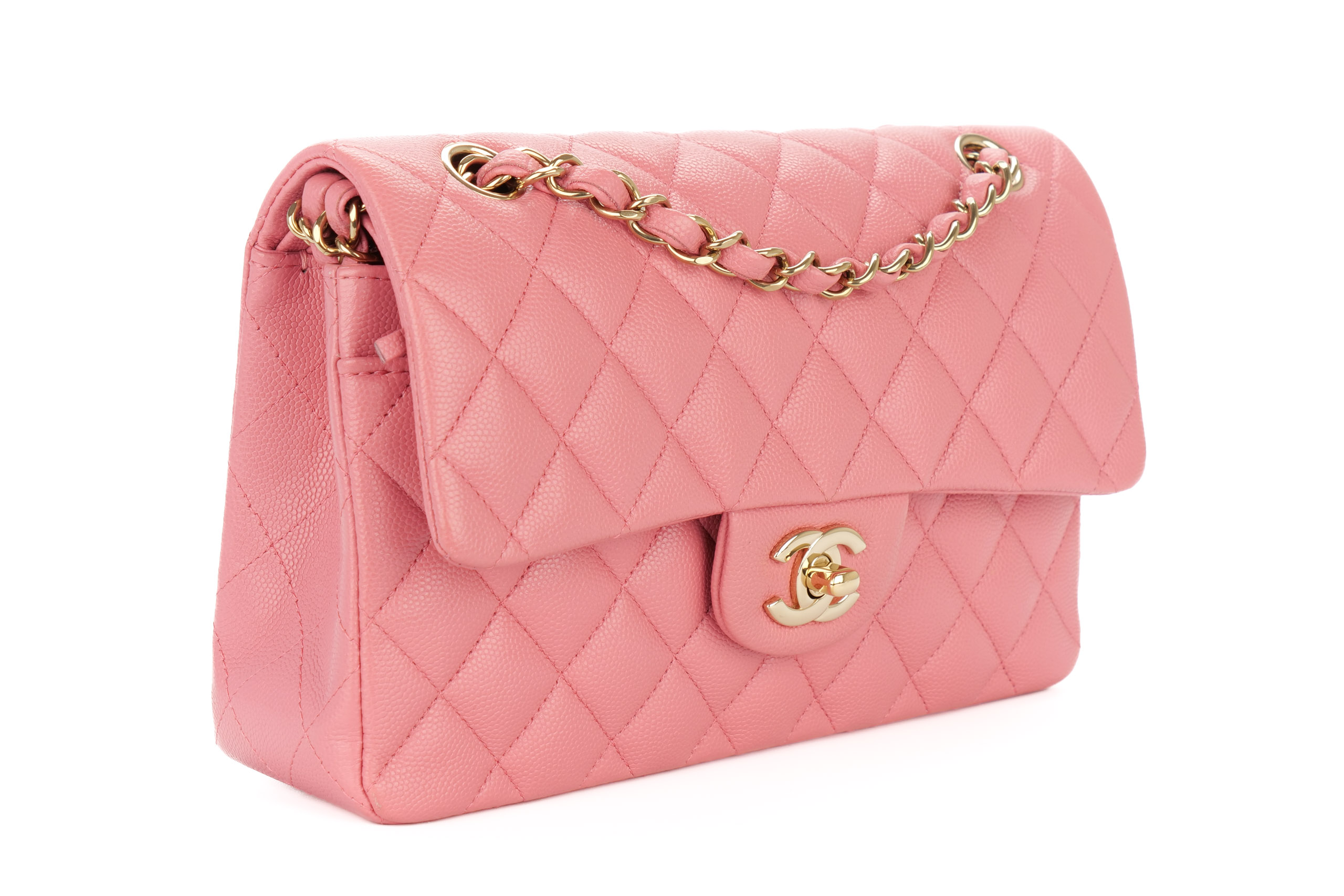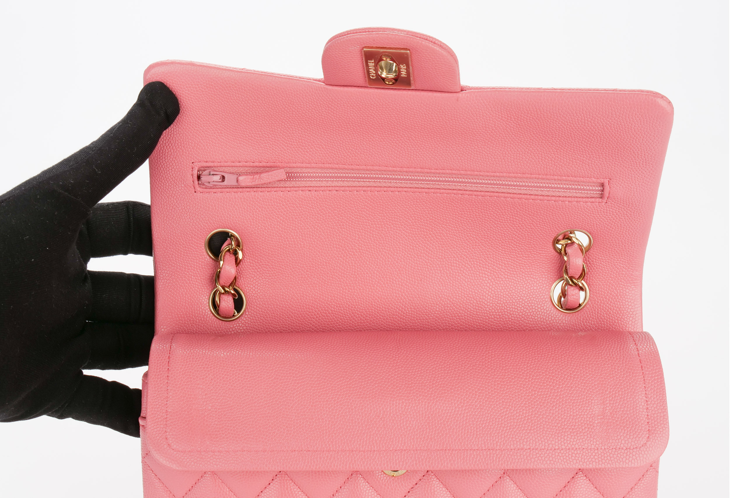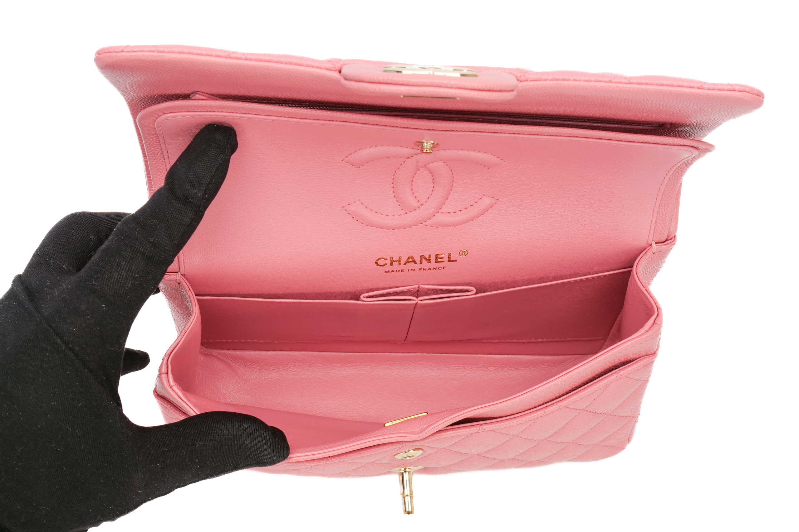 Chanel Small Classic Double Flap Pink Caviar Champagne Hardware / Microchipped 2022, Preloved