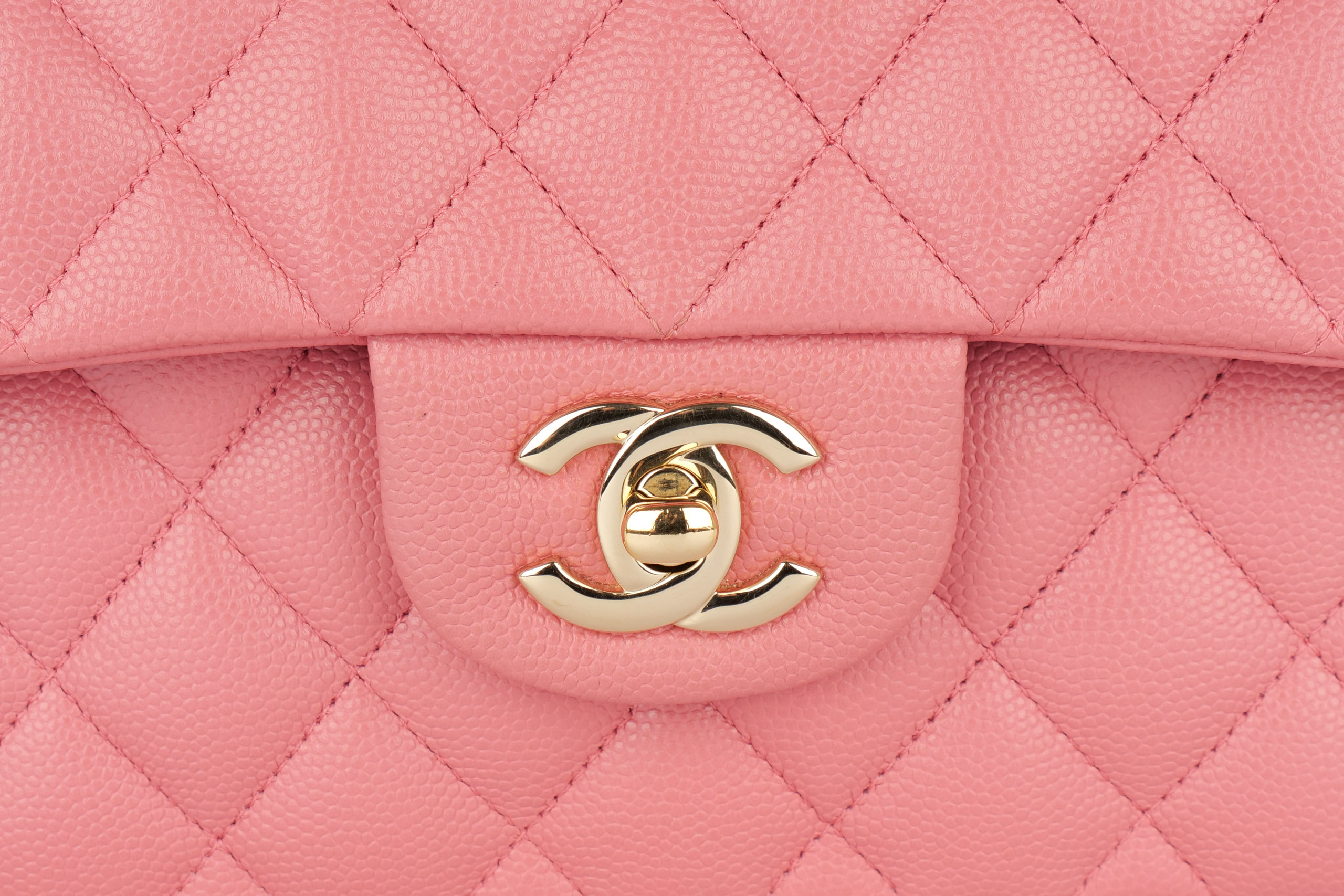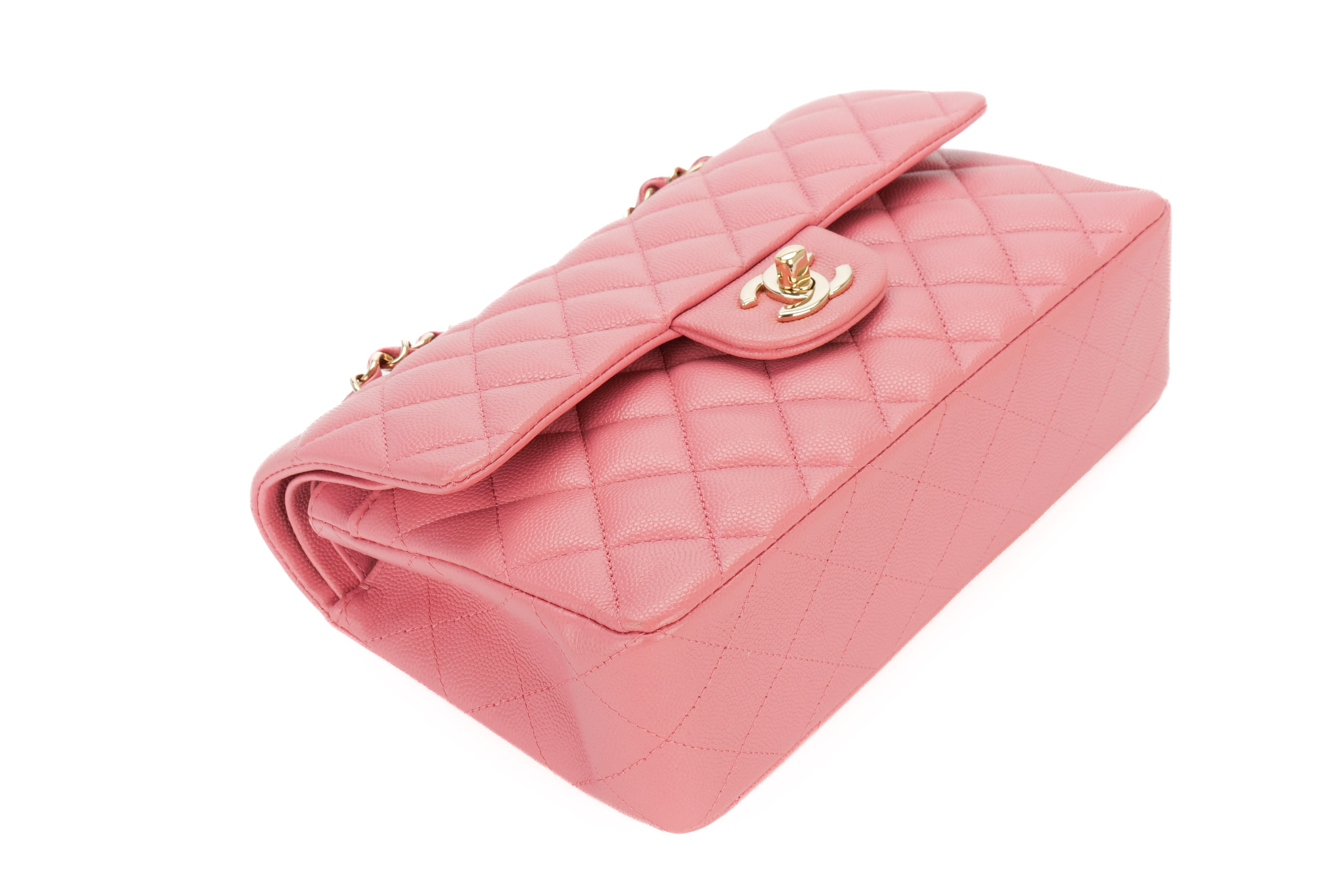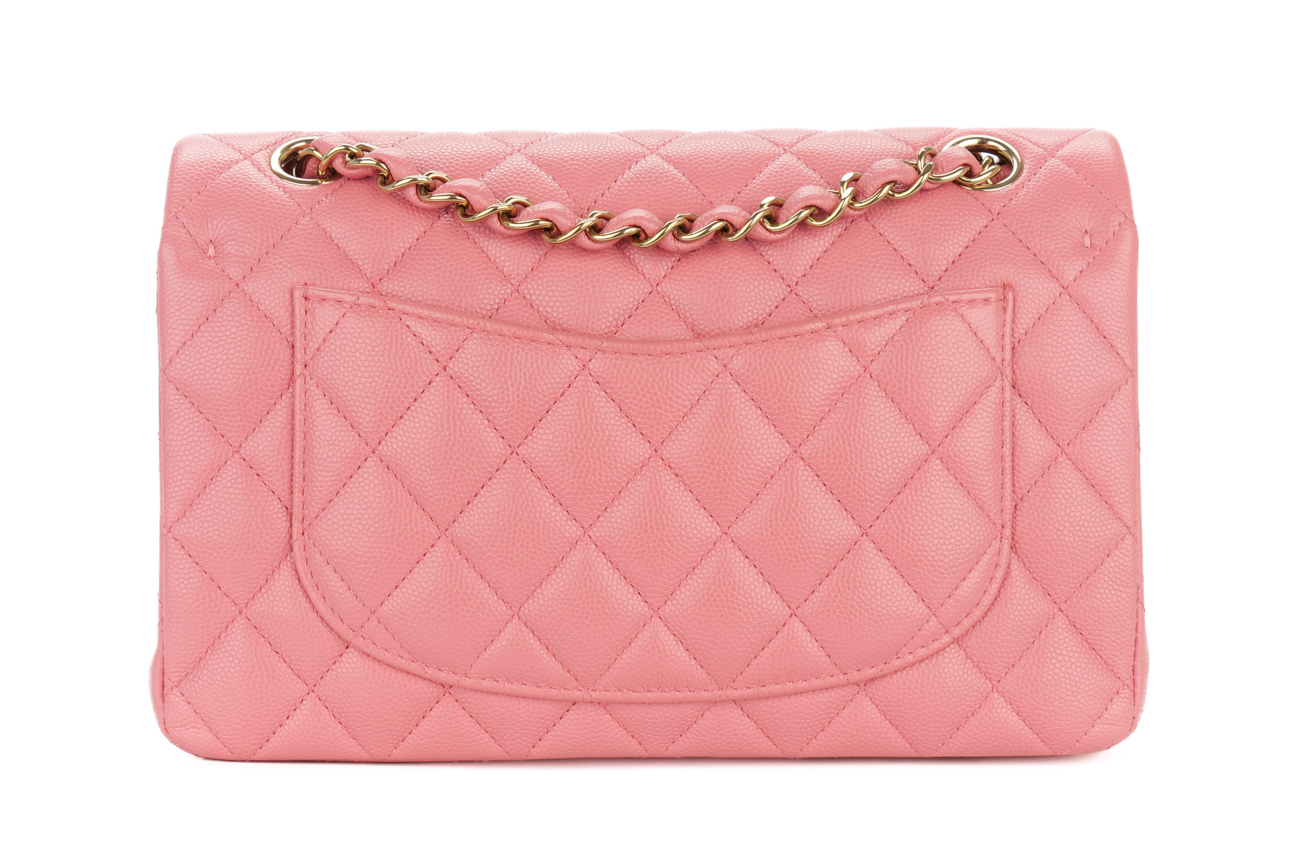 Chanel Small Classic Double Flap Pink Caviar Champagne Hardware / Microchipped 2022, Preloved
