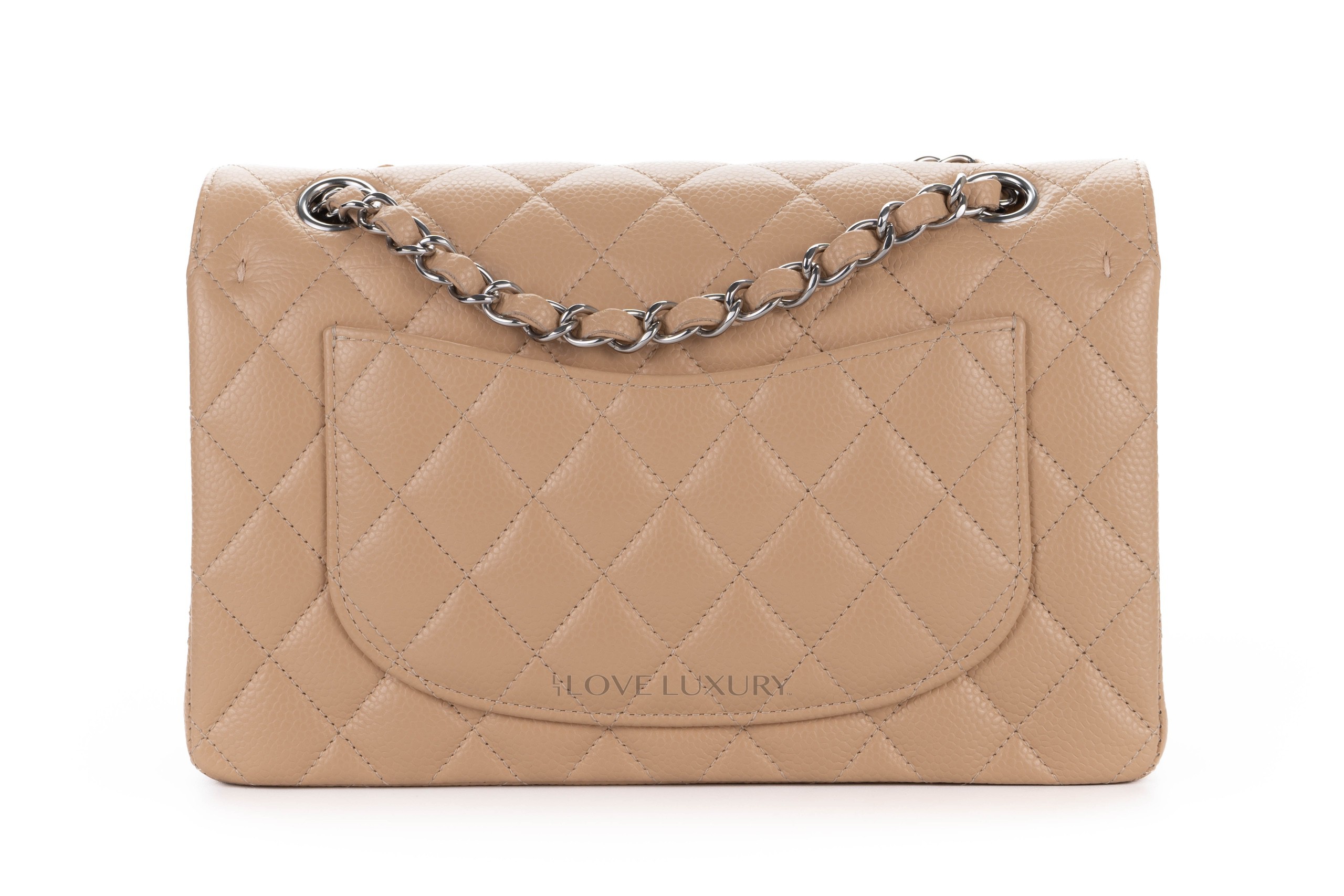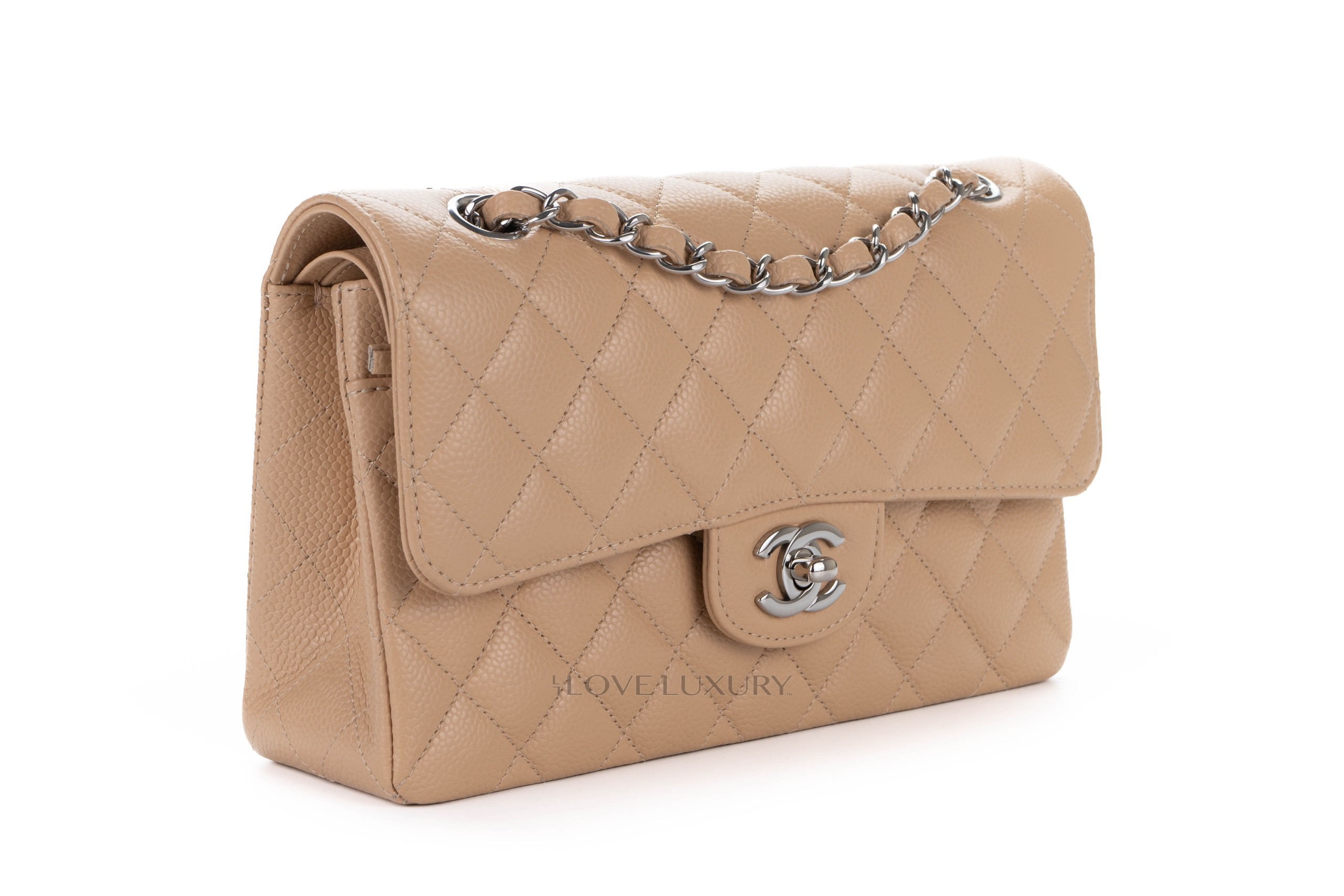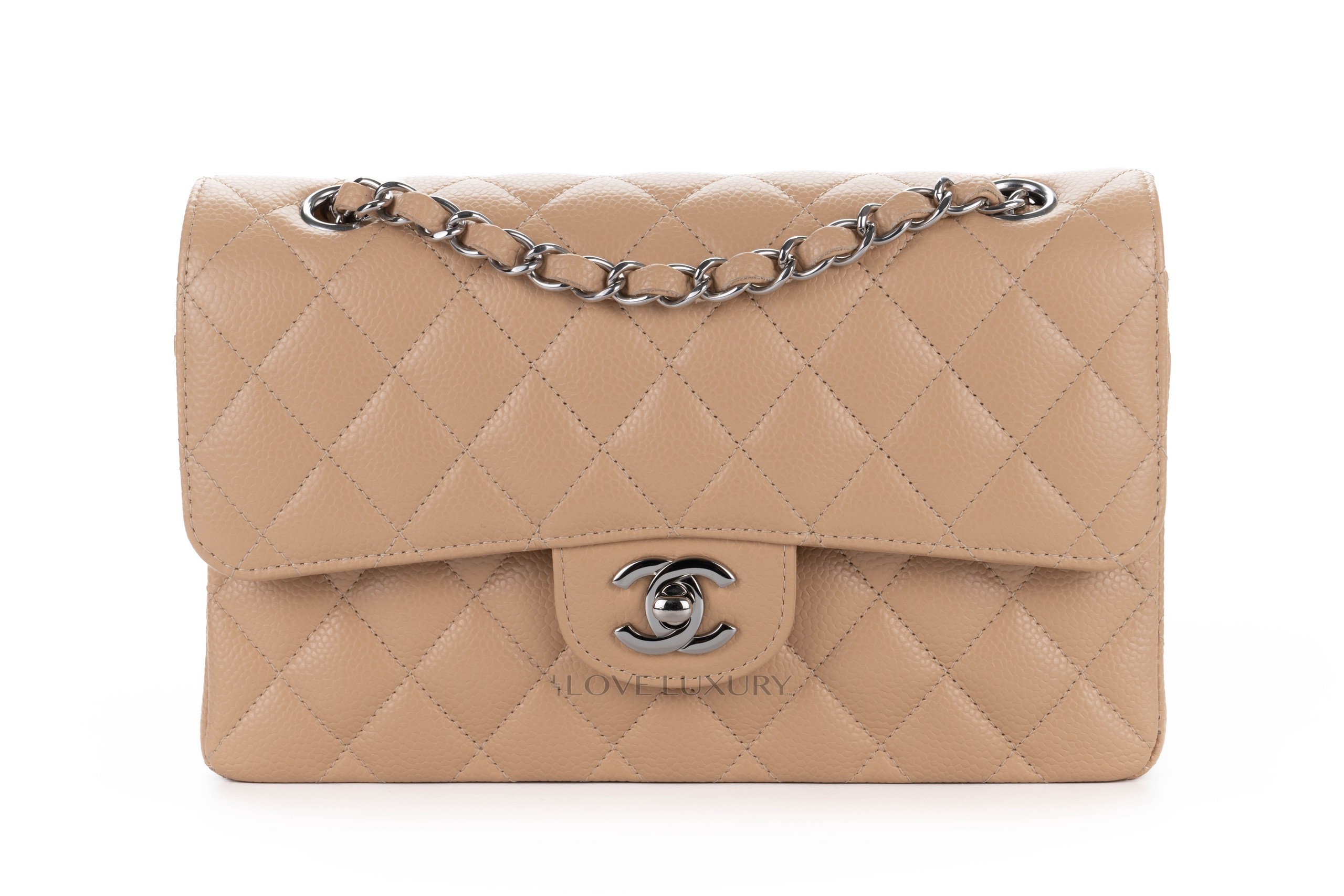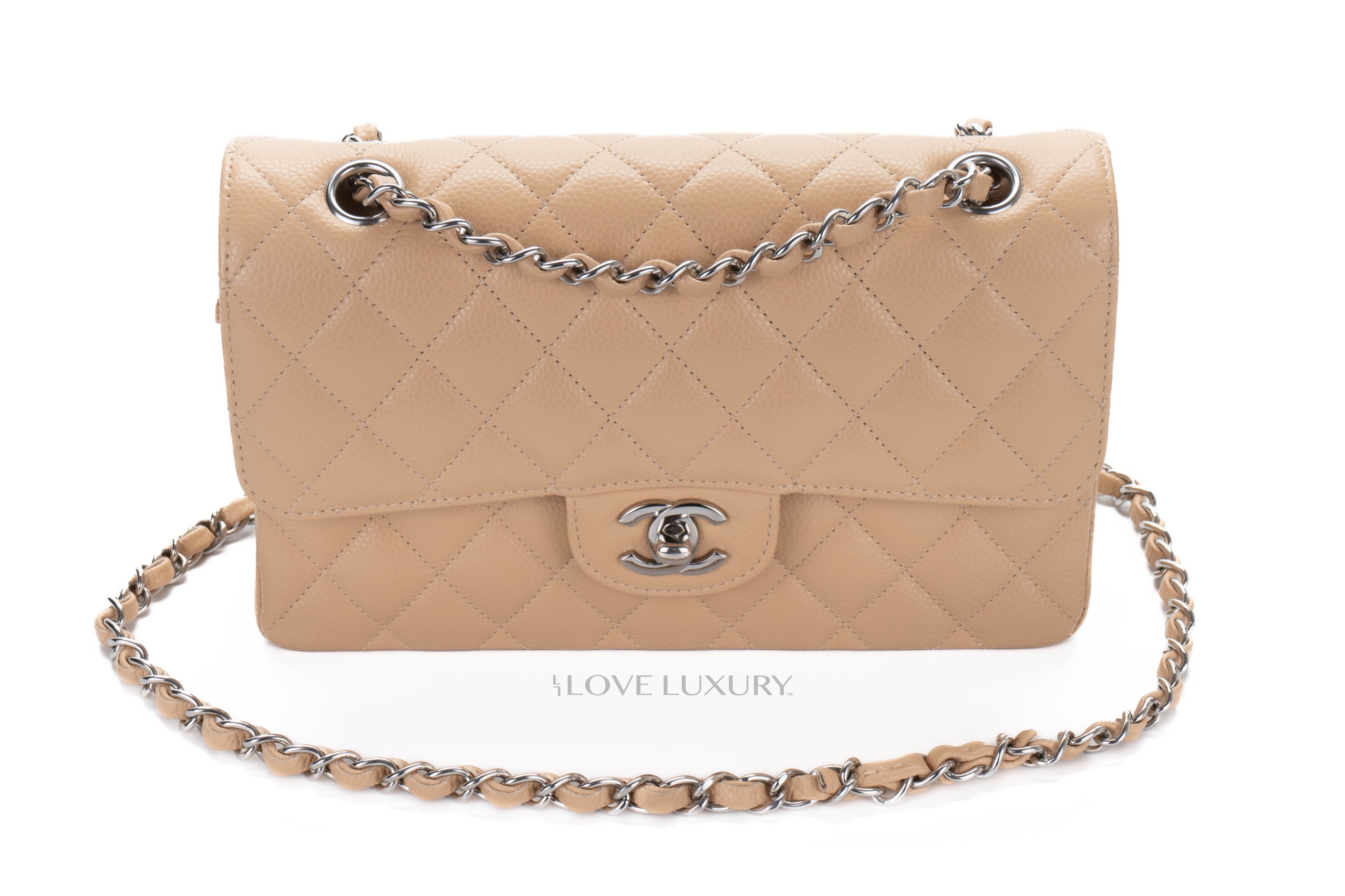 Chanel Small Classic Flap Beige Claire Caviar Silver Hardware / Microchiopped 2022 Box Fresh condition