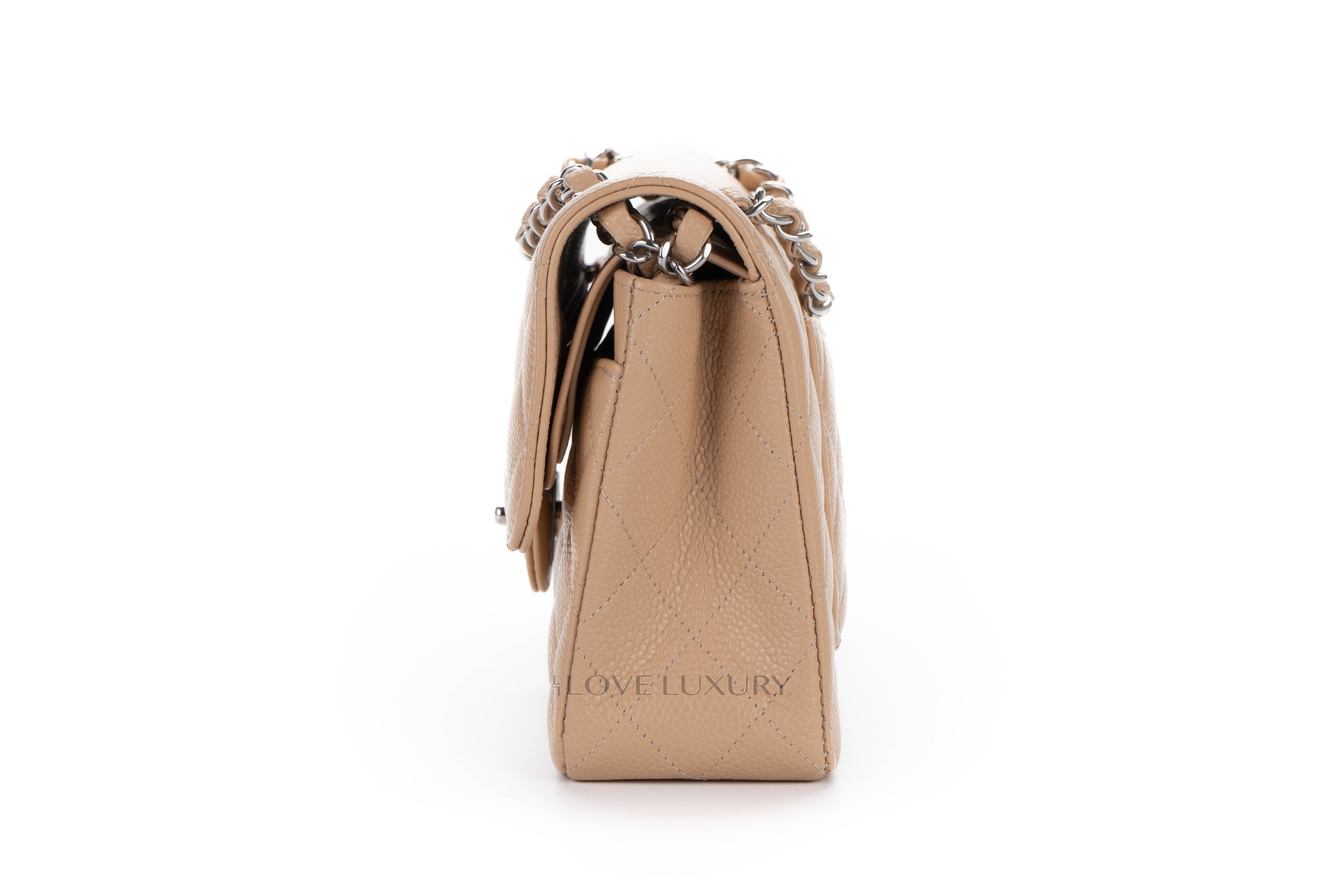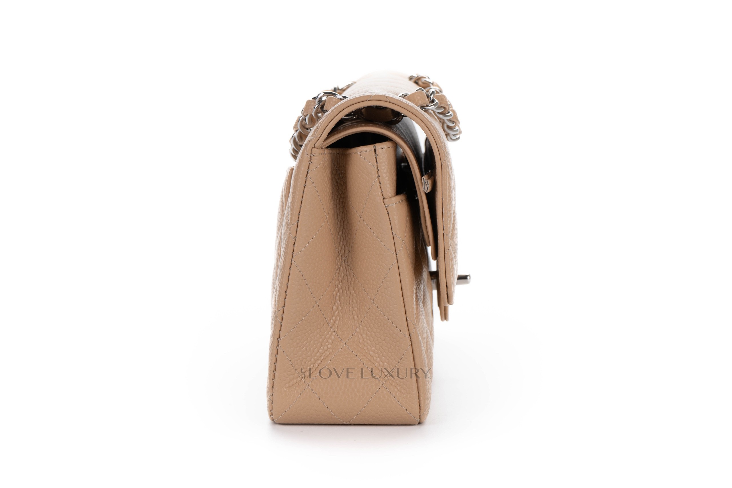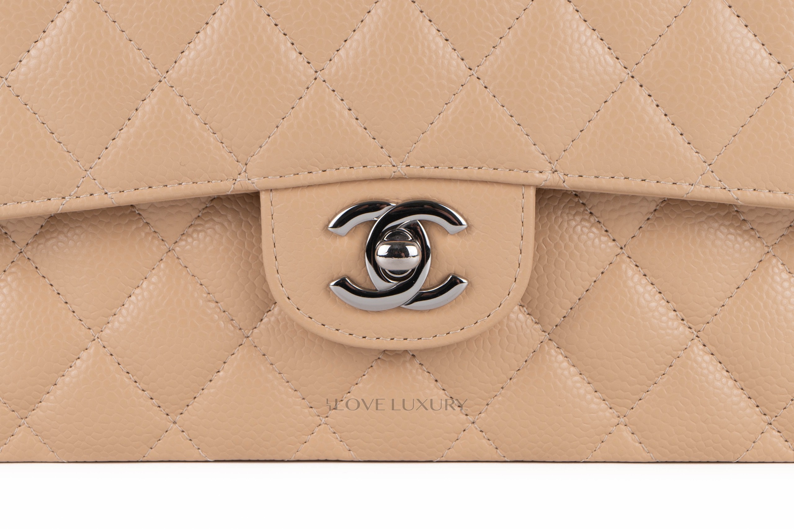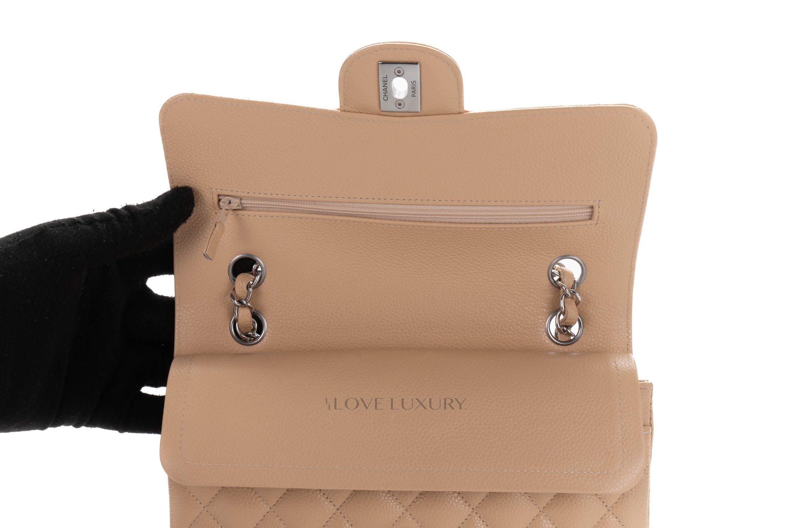 Chanel Small Classic Flap Beige Claire Caviar Silver Hardware / Microchiopped 2022 Box Fresh condition