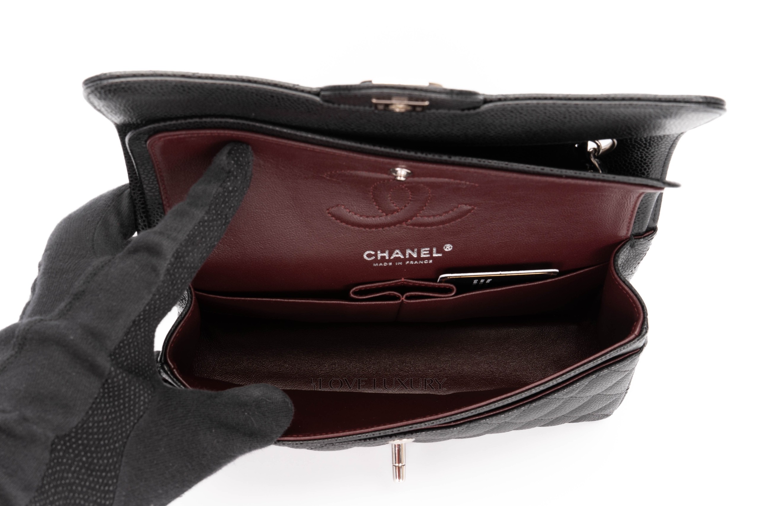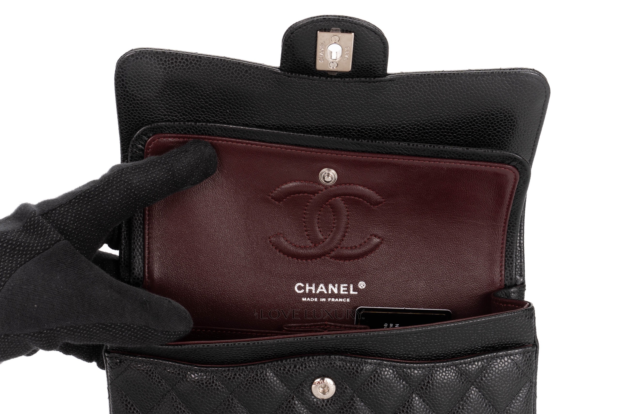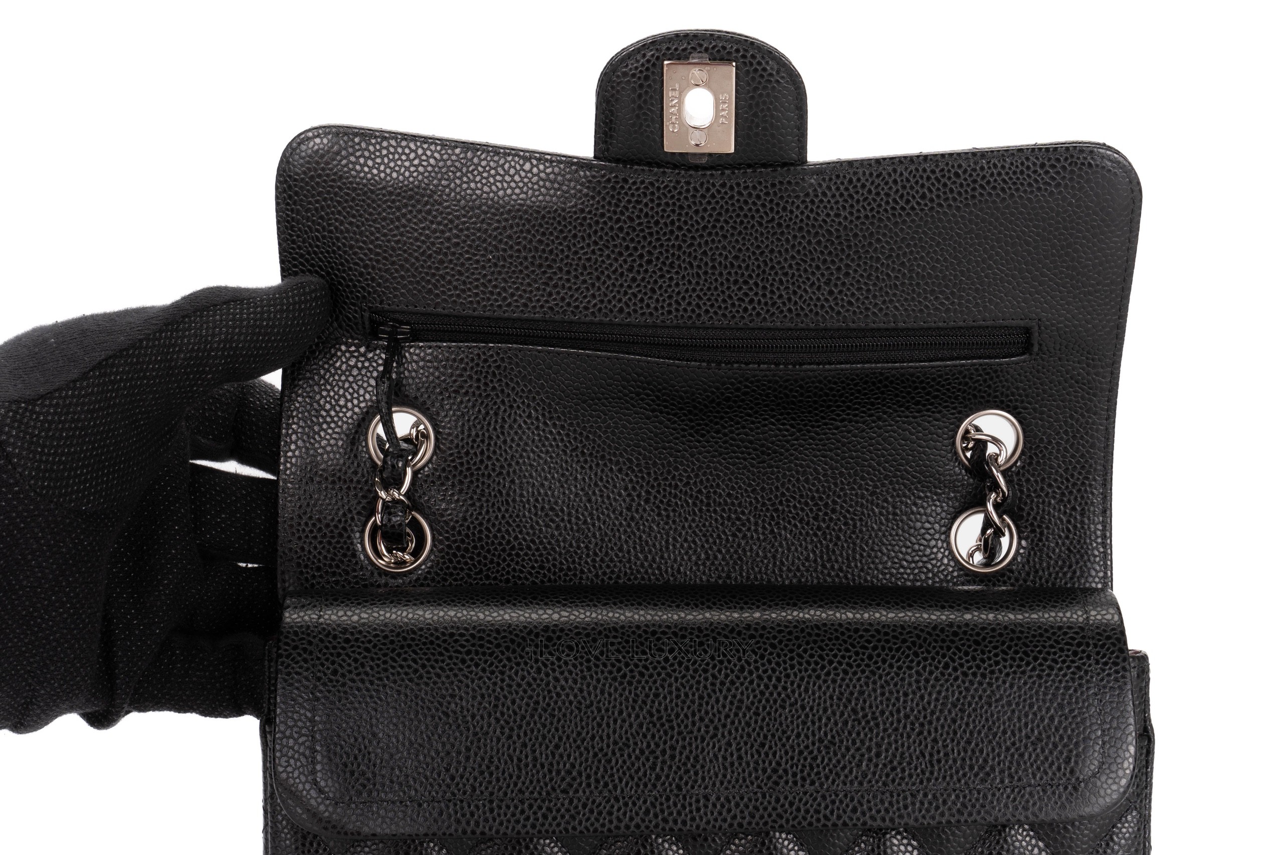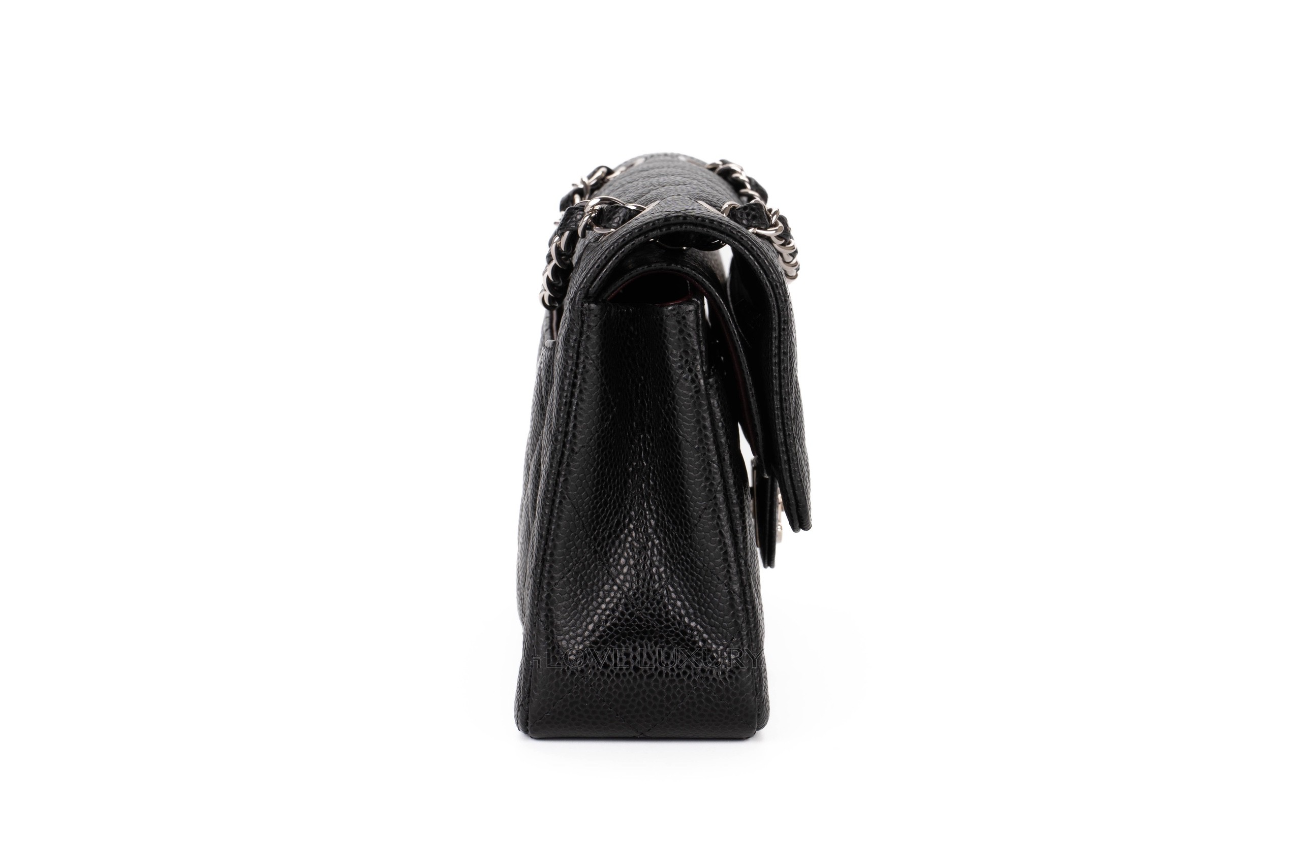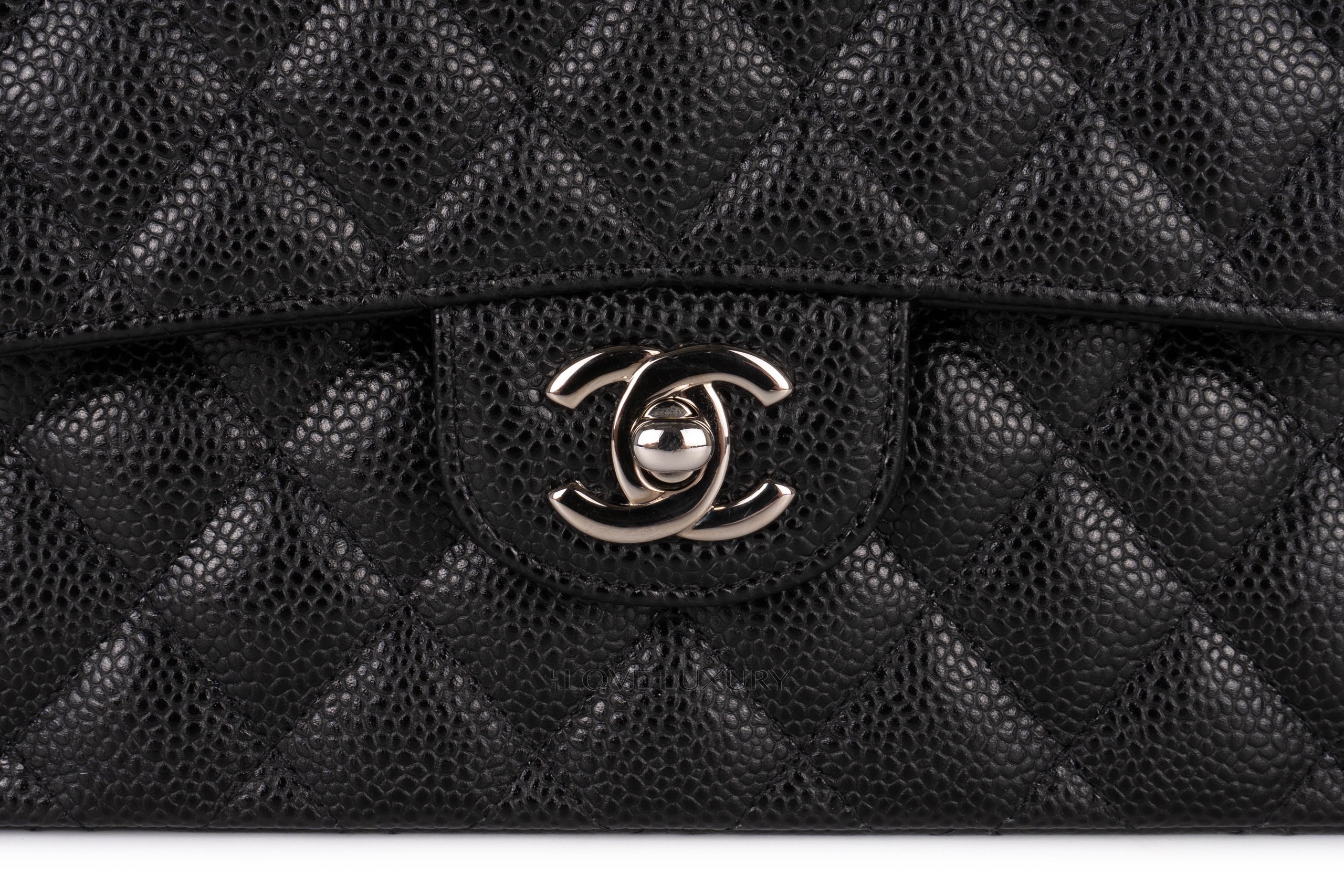 Chanel small classic flap is our most purchased bag here at Love Luxury. The model we have in this listing is crafted from black caviar, which lends itself to being a robust and hardwaring leather. The hardware on this model is shiny silver. This bag is in excellent pre-loved condition there are no signs of use on the corners and miniscule marks on the hardware. This is a micro chipped bag which means it doesnt come with the black card. Comes as a full set with authentication