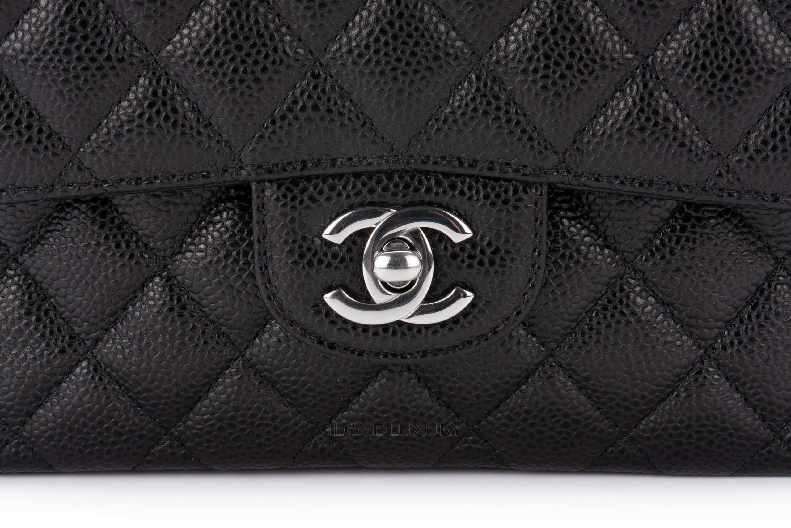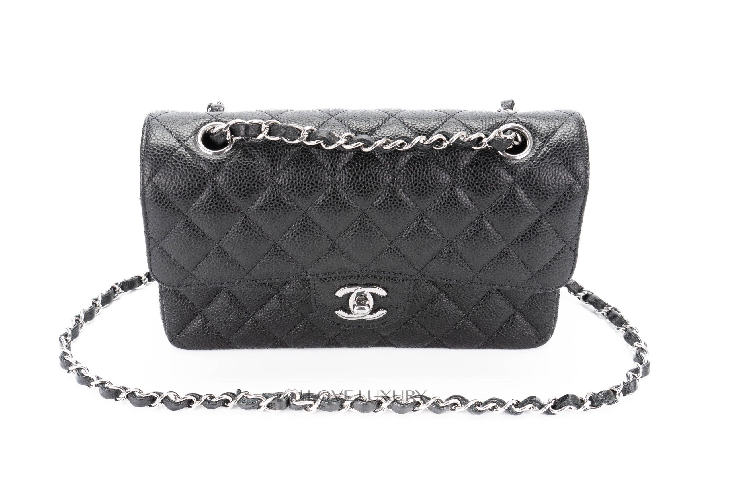 Chanel Small Classic Flap Caviar Black Silver Hardware / Excellent Pre-Loved condition.