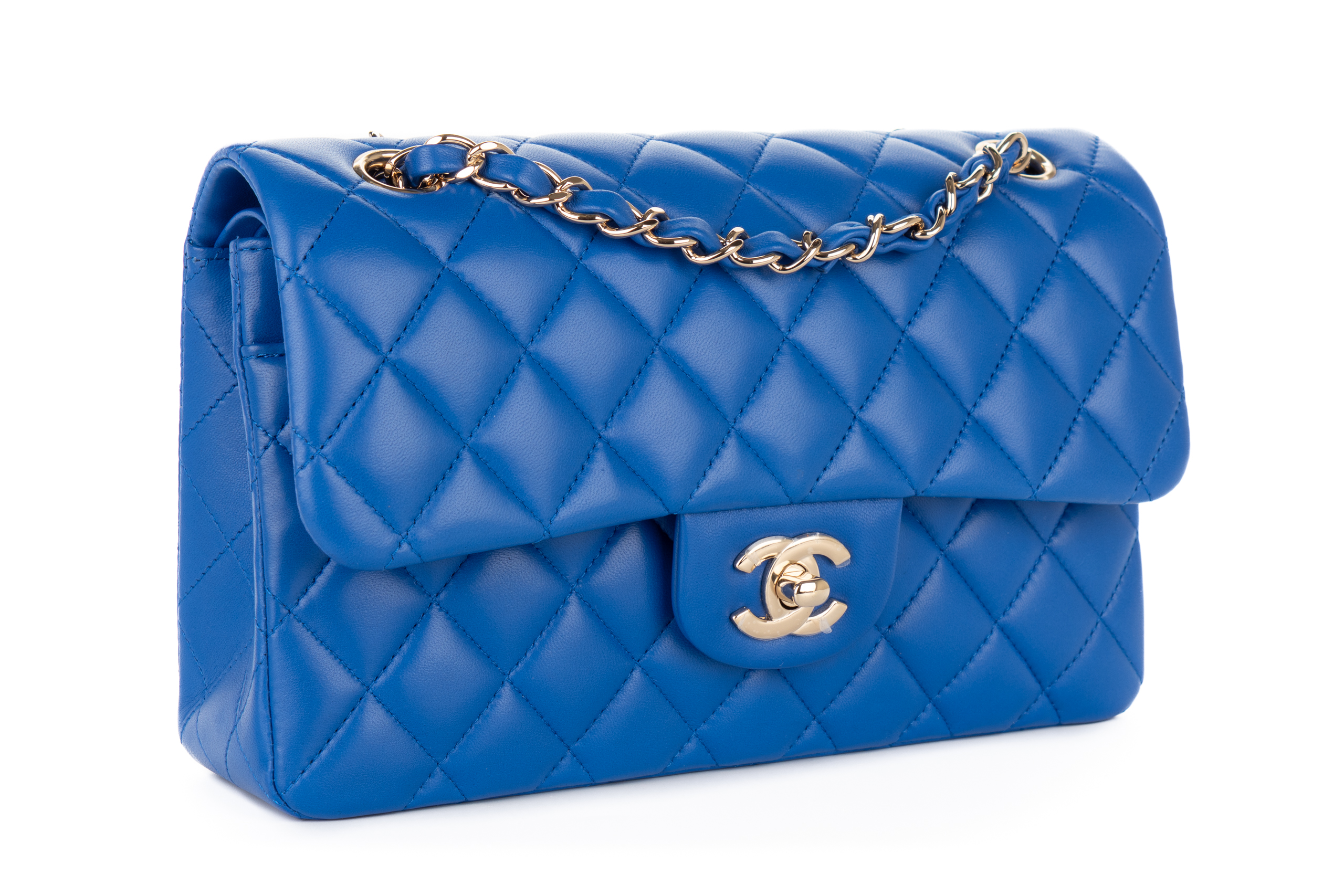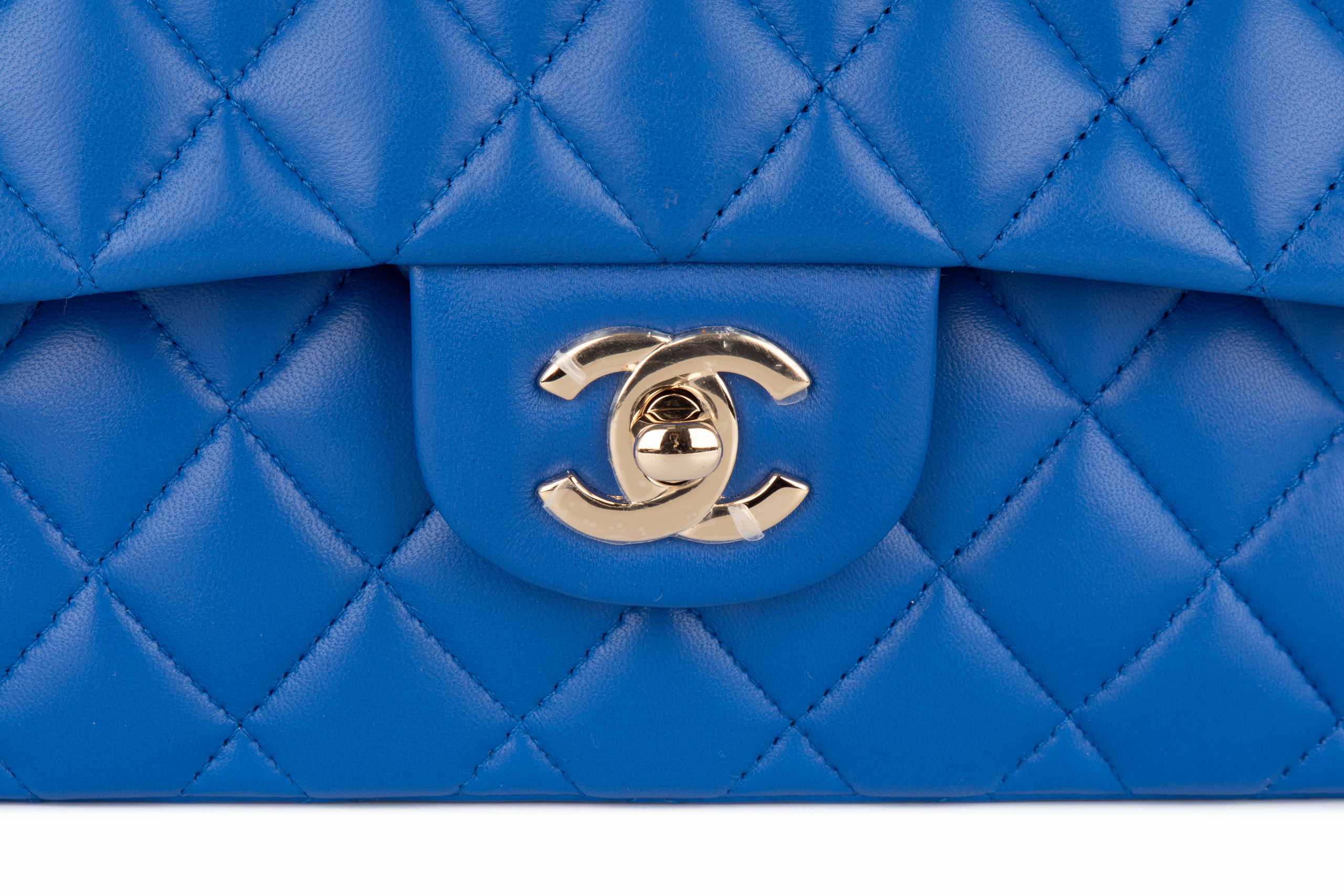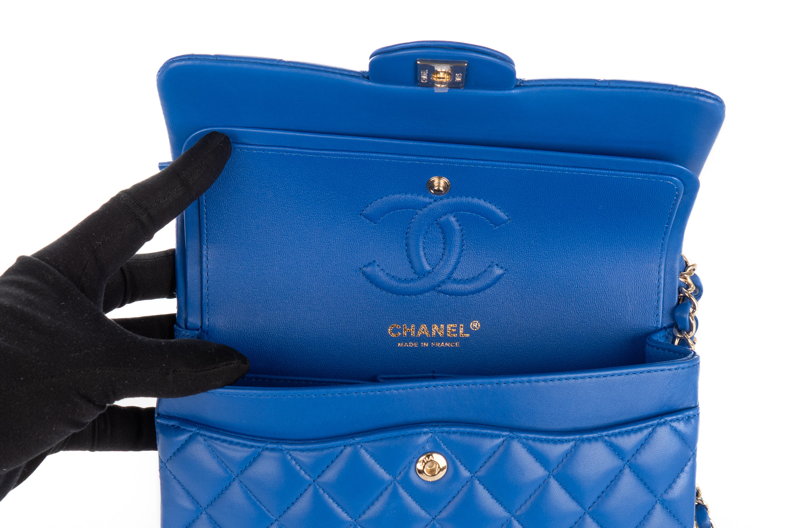 Chanel Small Double Classic Flap Blue Lambskin Champane Hardware / 31 Series 2021, Unworn