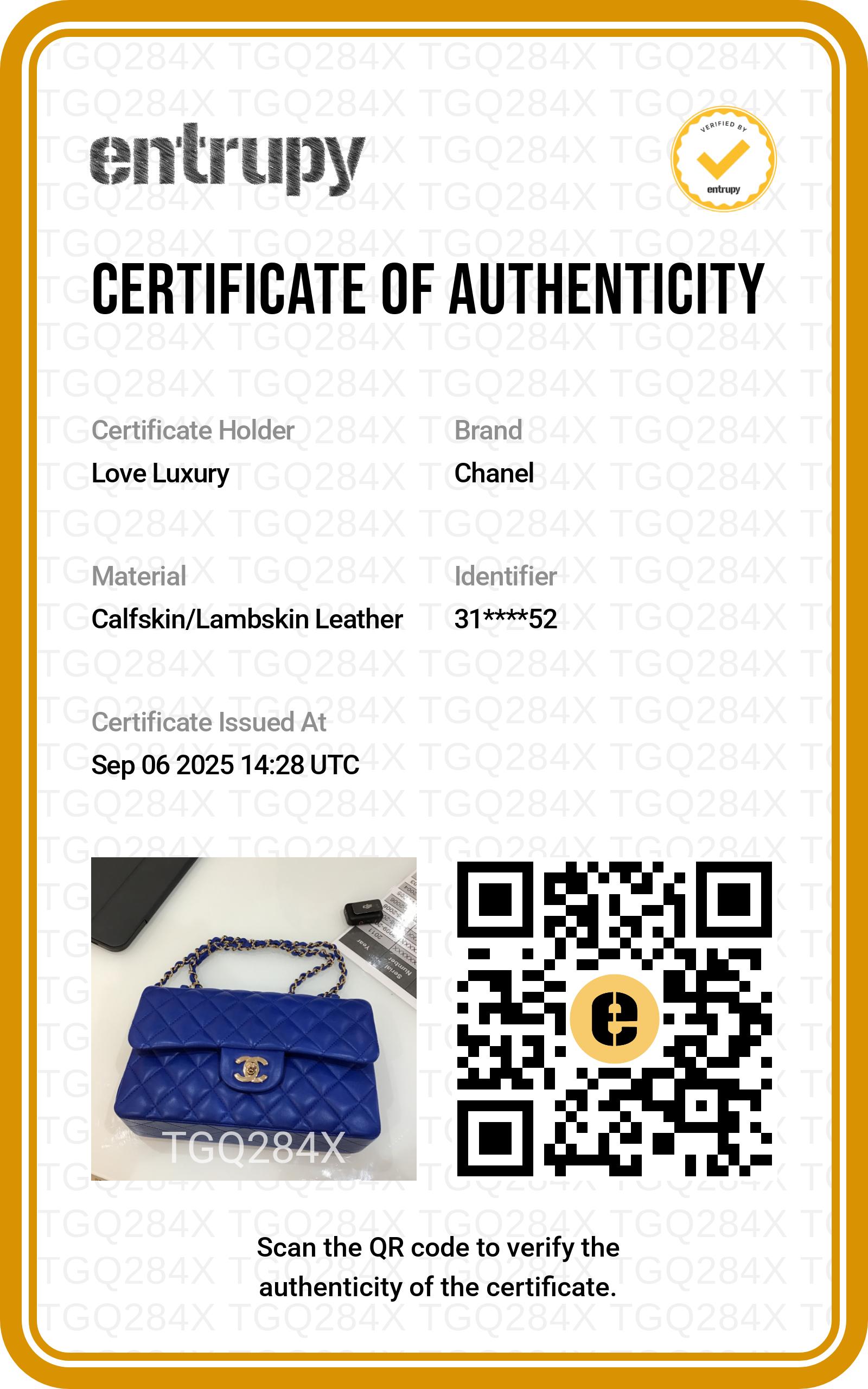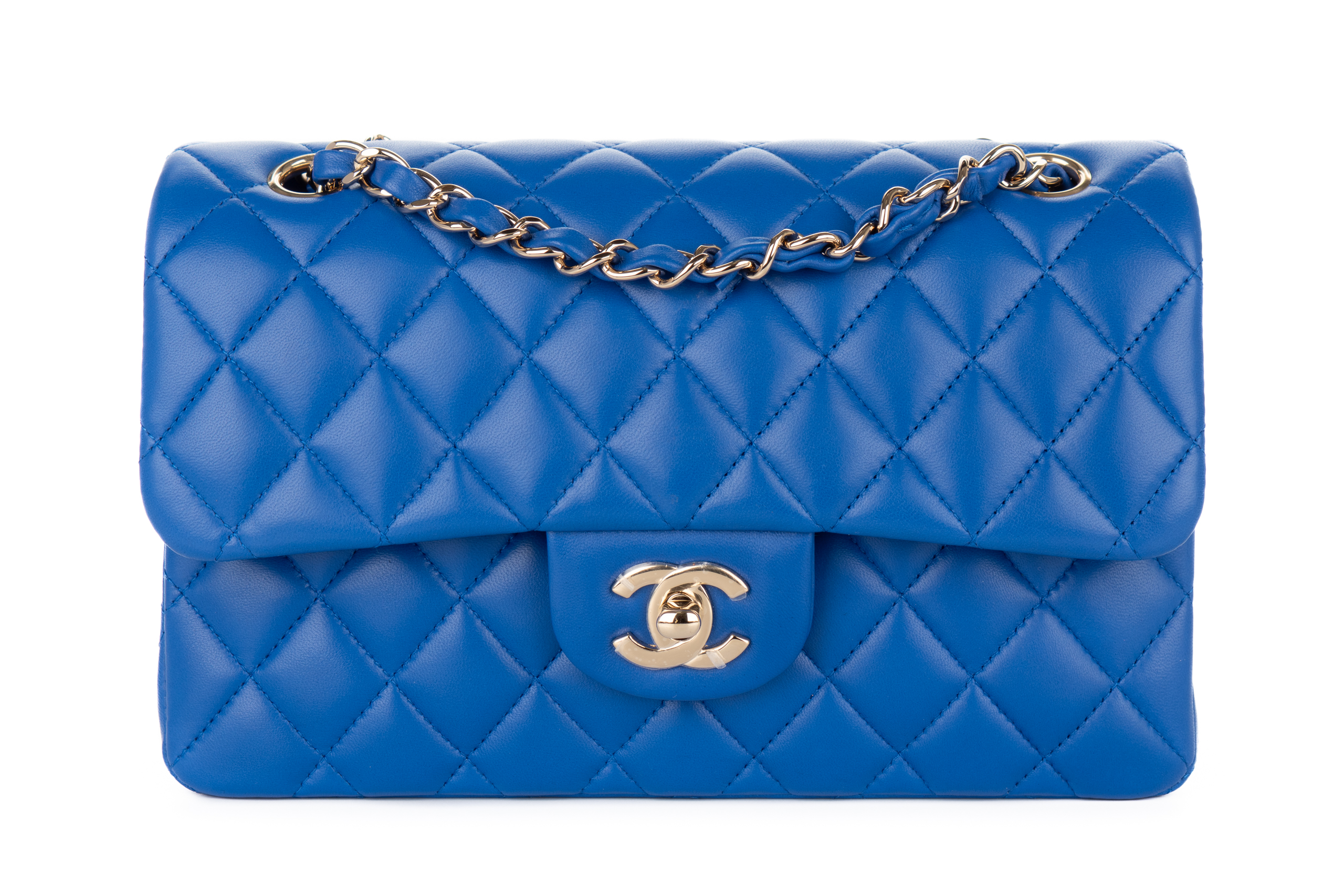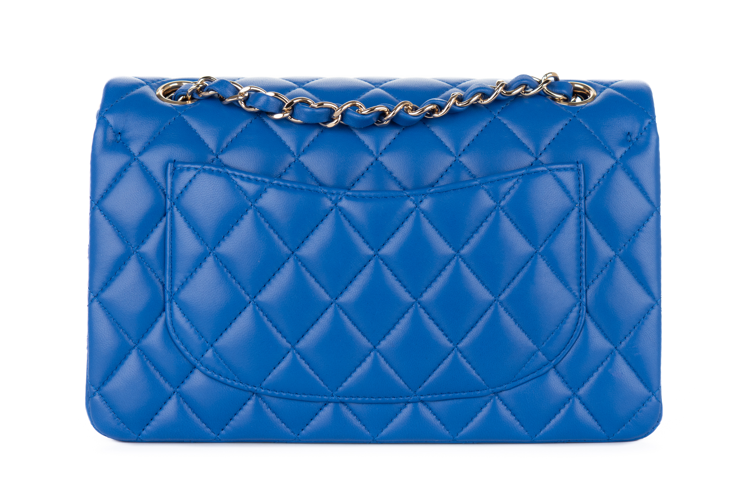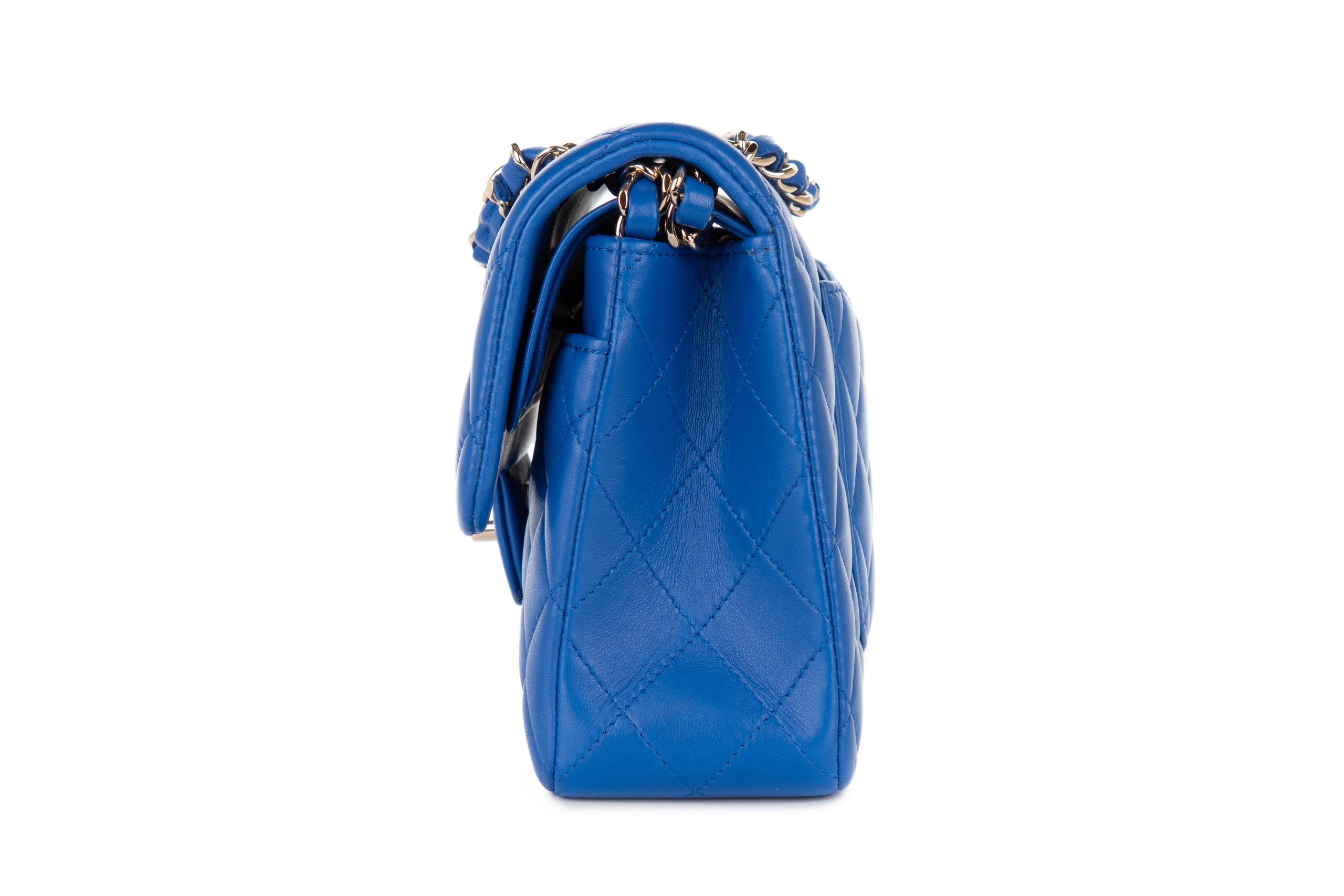 Chanel Small Double Classic Flap Blue Lambskin Champane Hardware / 31 Series 2021, Unworn