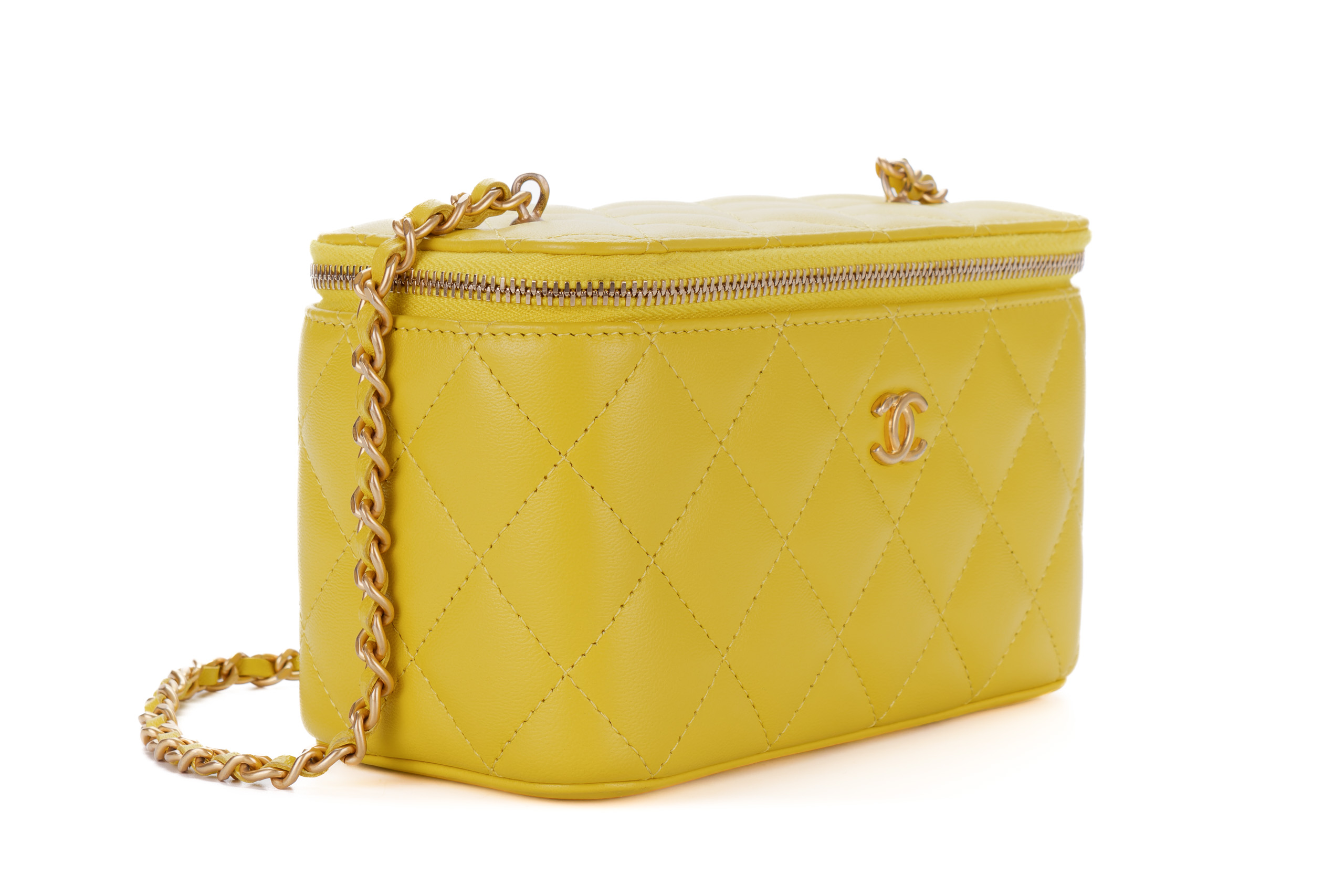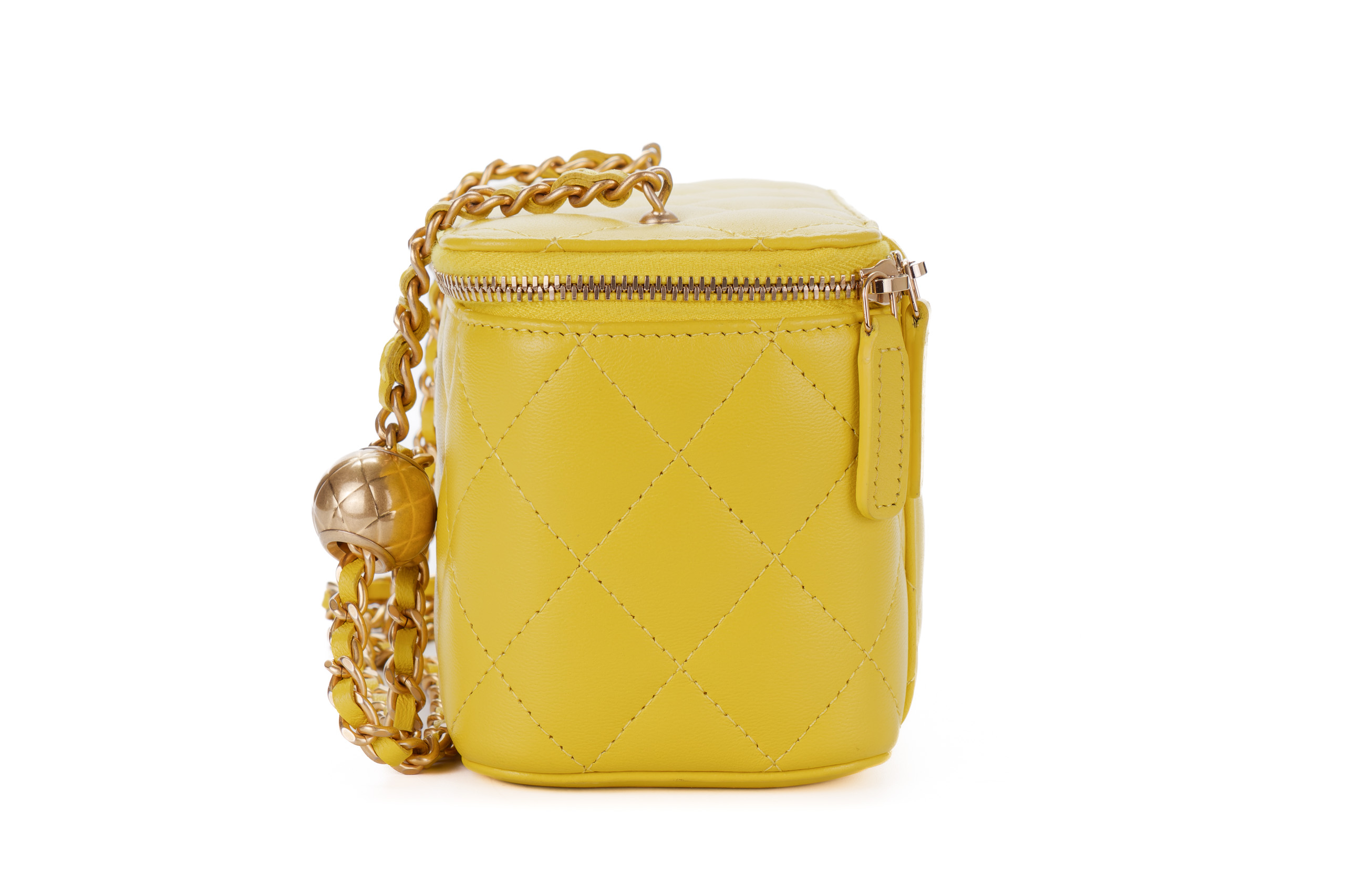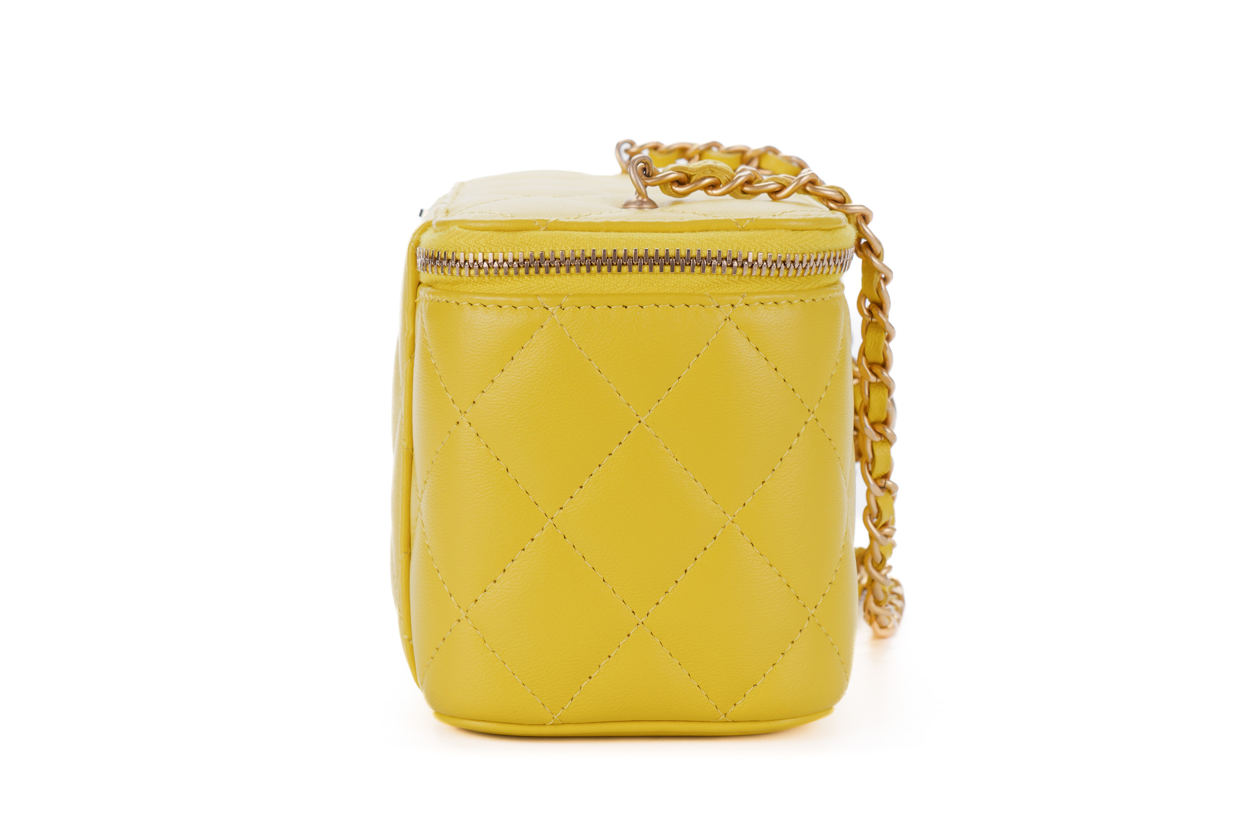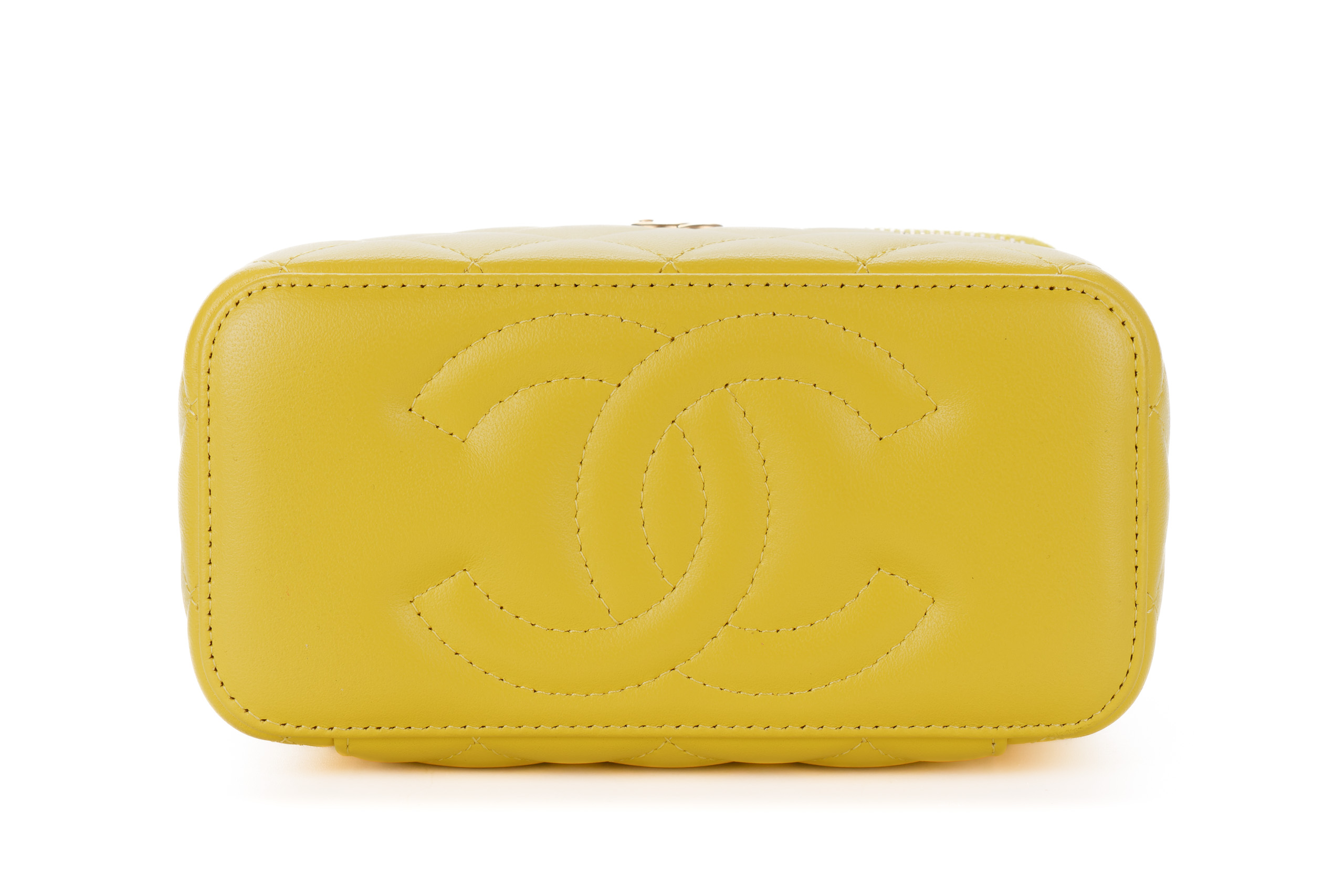Chanel Small Yellow Lambskin Quilted Vanity Crossbody Gold Hardware / Microchipped 2023 Excellent Pre-Loved