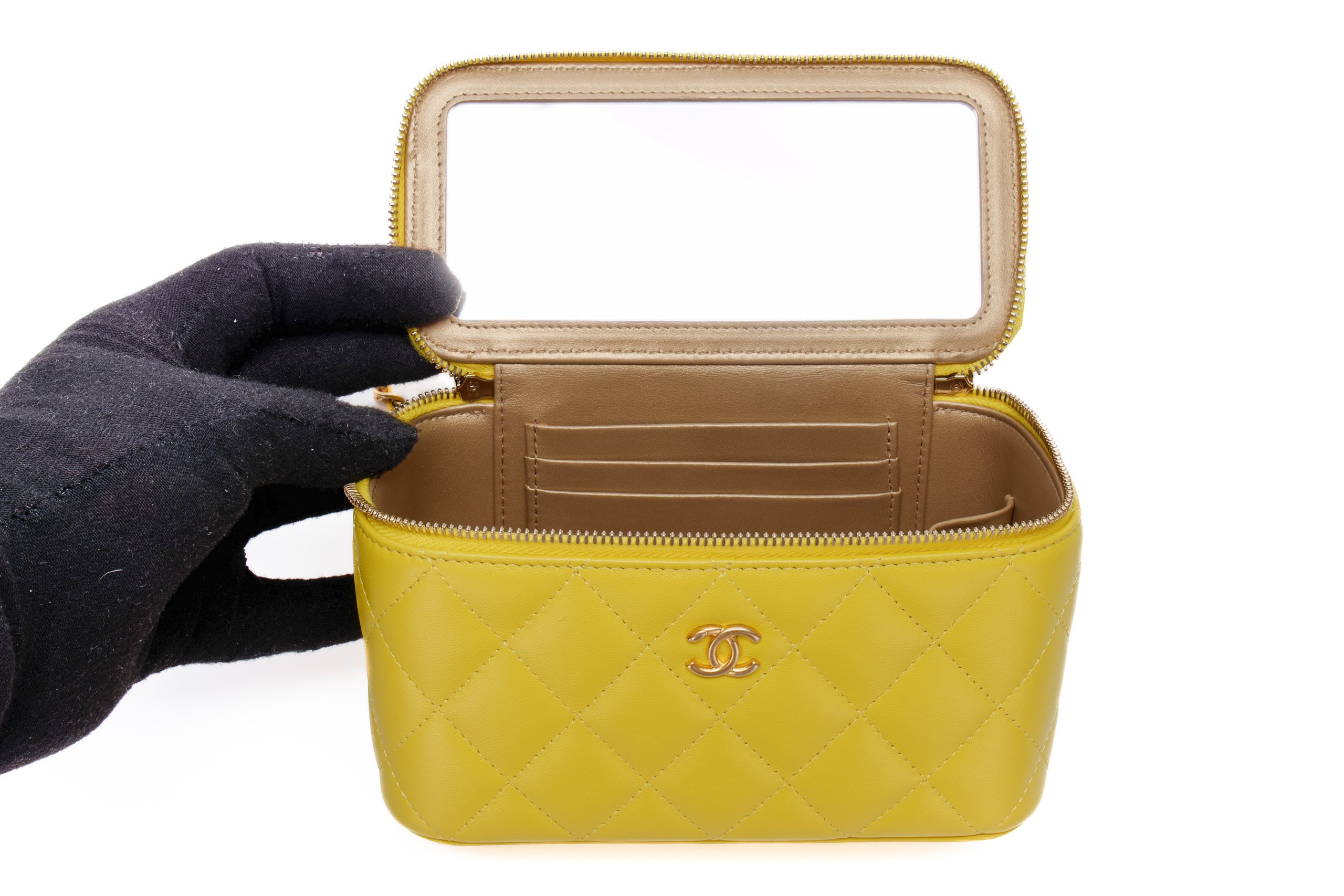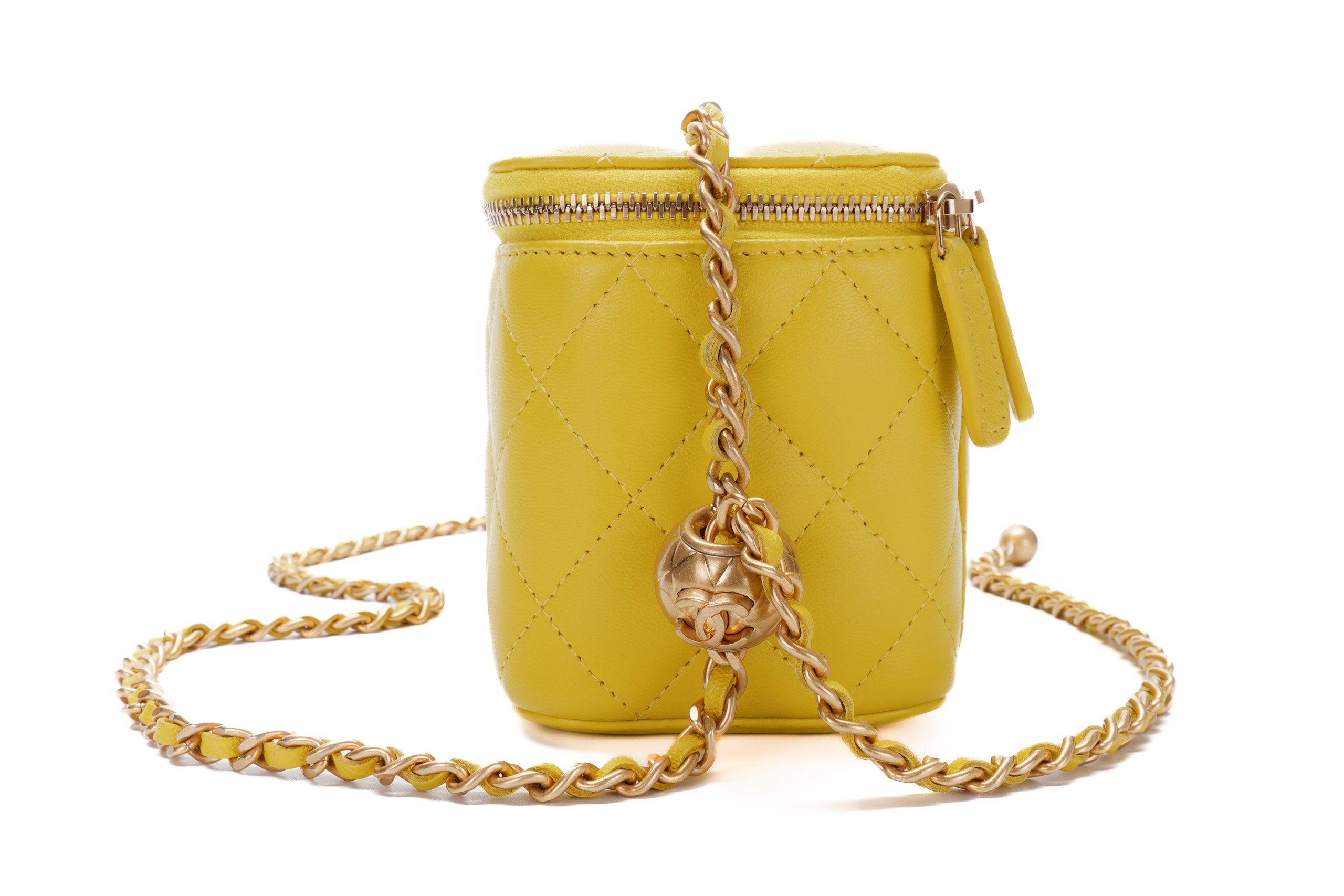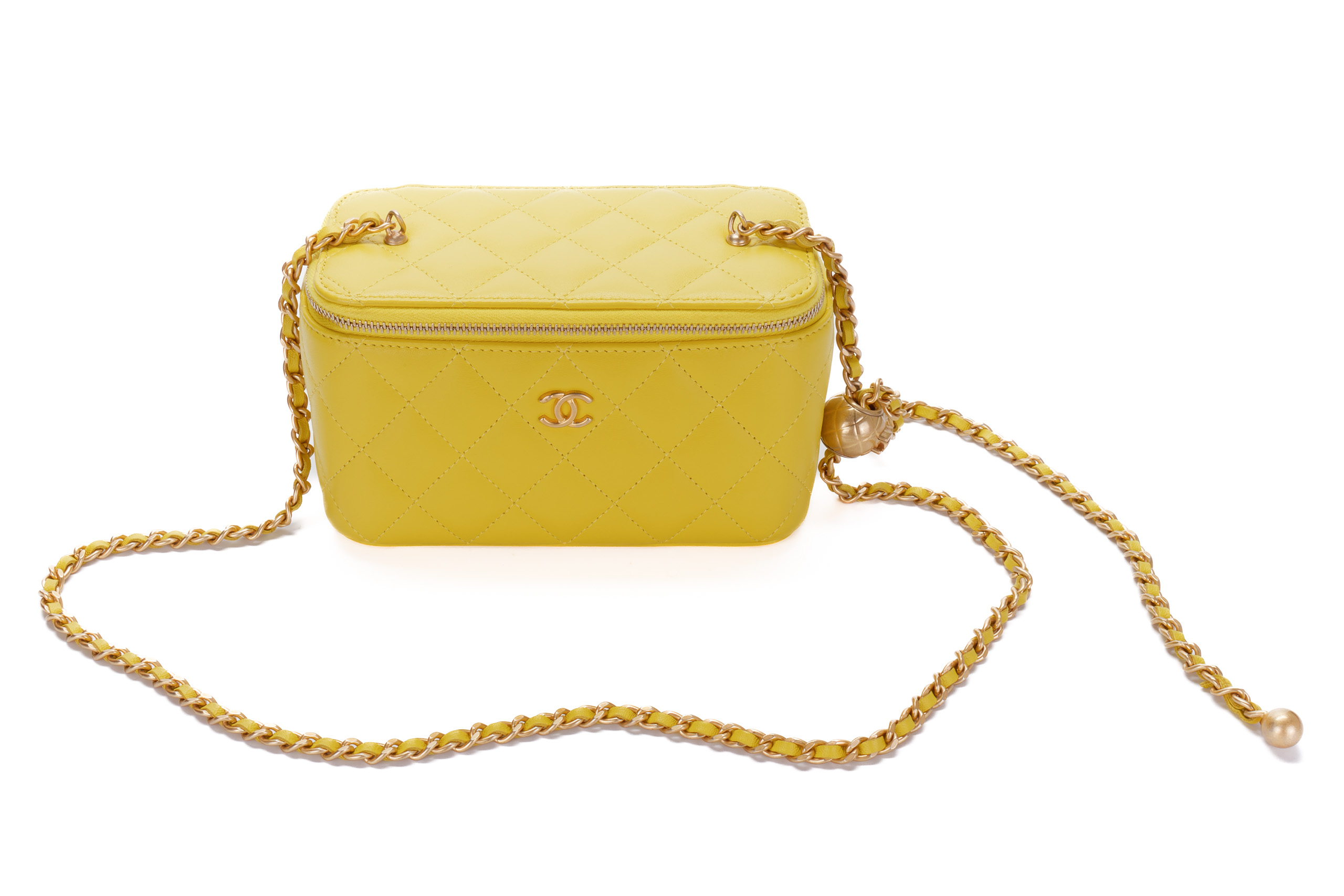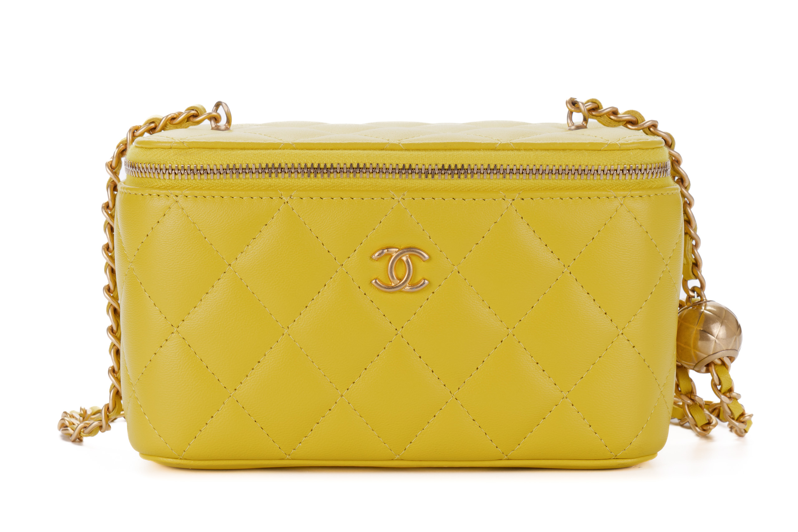 Chanel Small Yellow Lambskin Quilted Vanity Crossbody Gold Hardware / Microchipped 2023 Excellent Pre-Loved