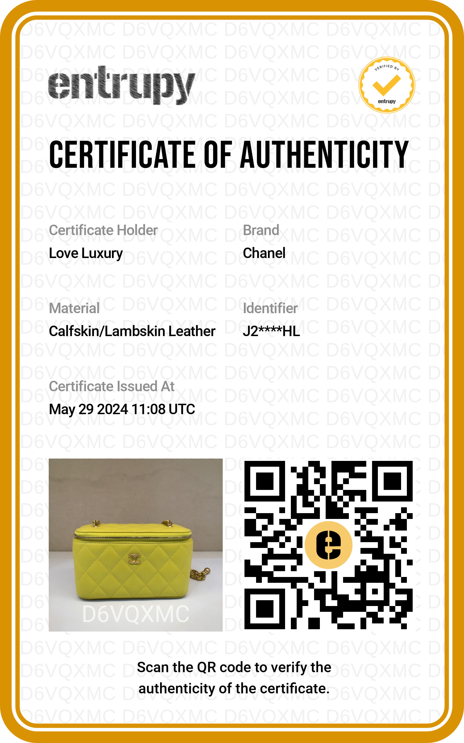 All online orders purchased via our e-shop, please forward 2 forms of ID to our email orders@loveluxury.co.uk, these should be one valid photo ID and one utility bill or bank statement dated in the last month, when this is received we will ship your item.