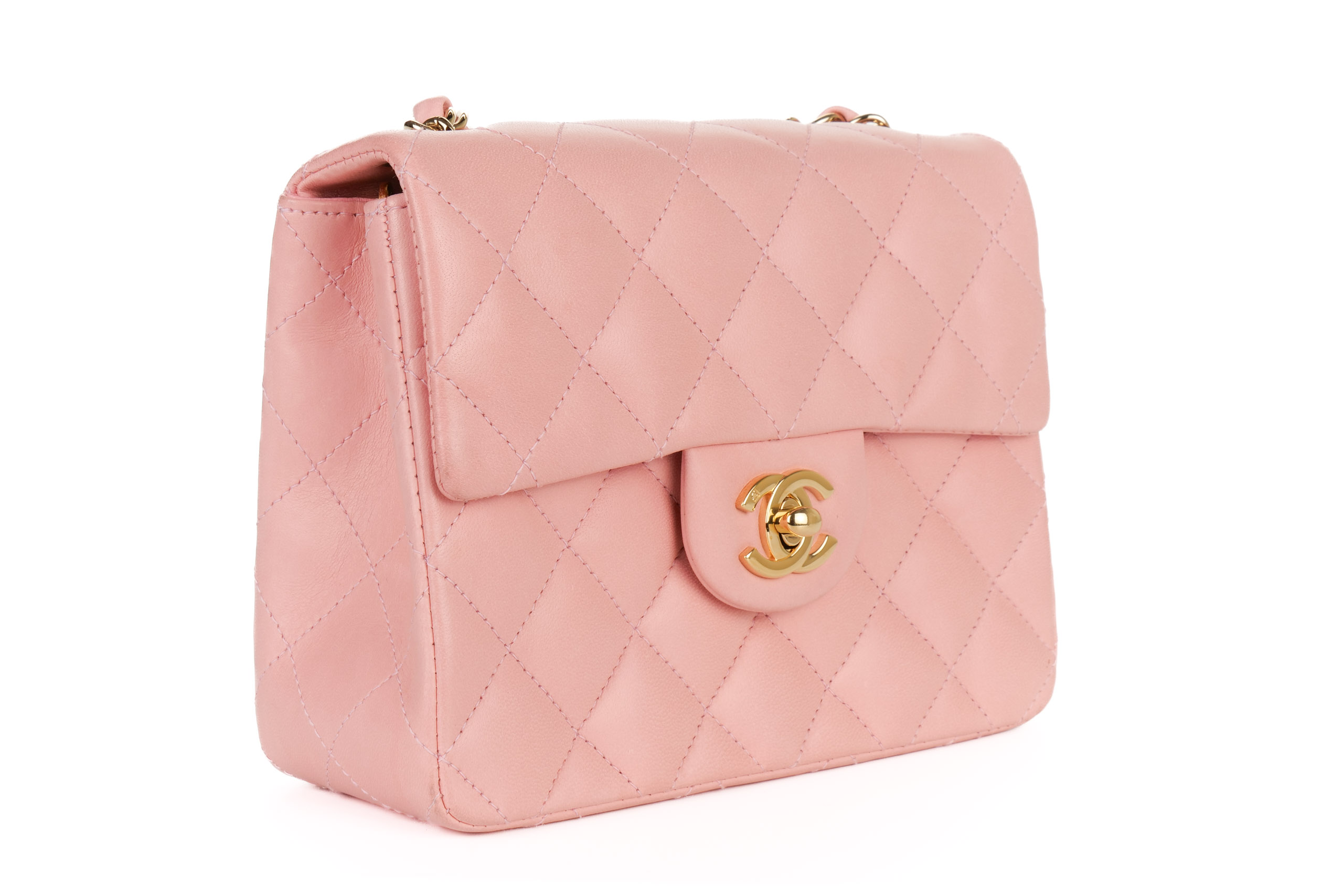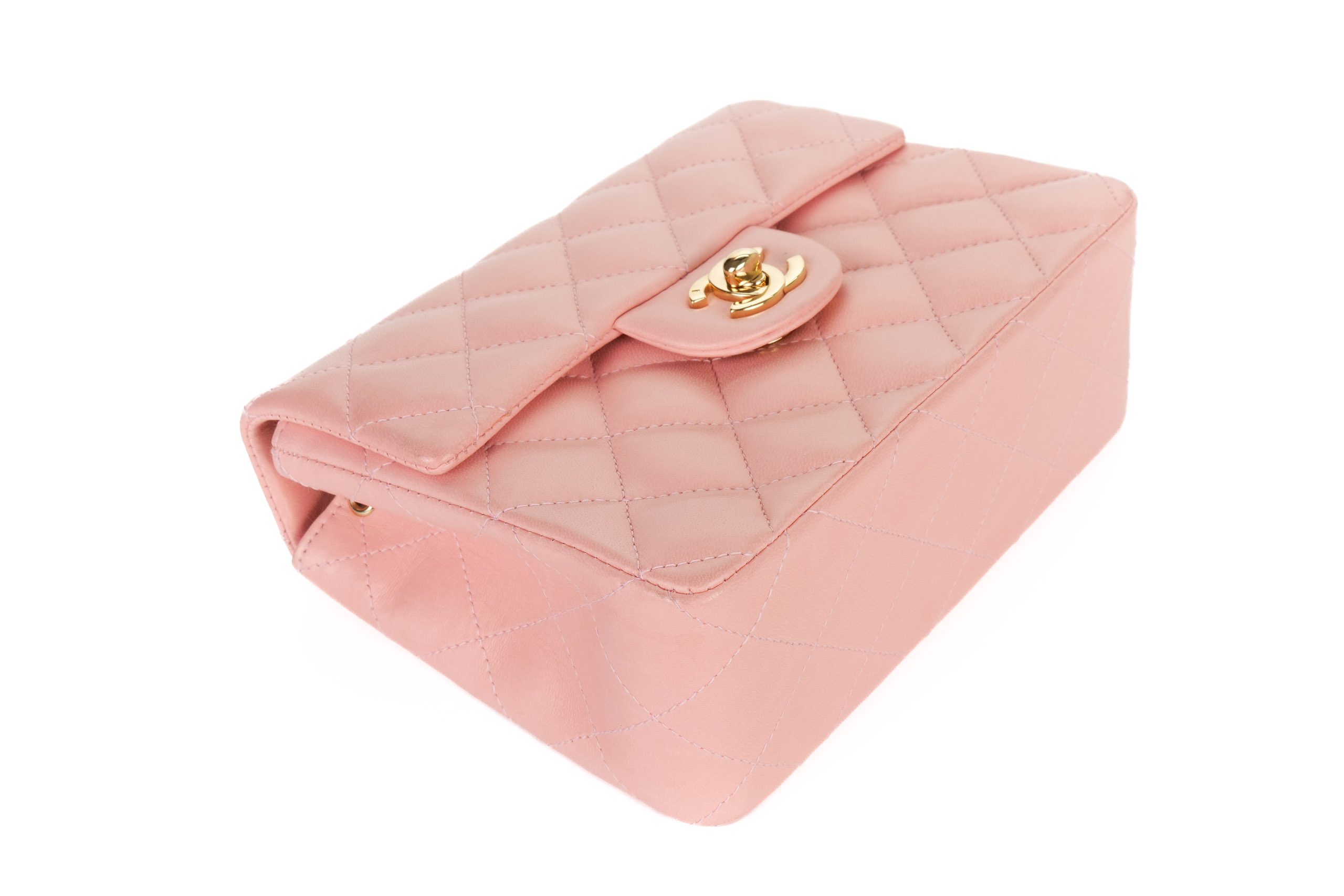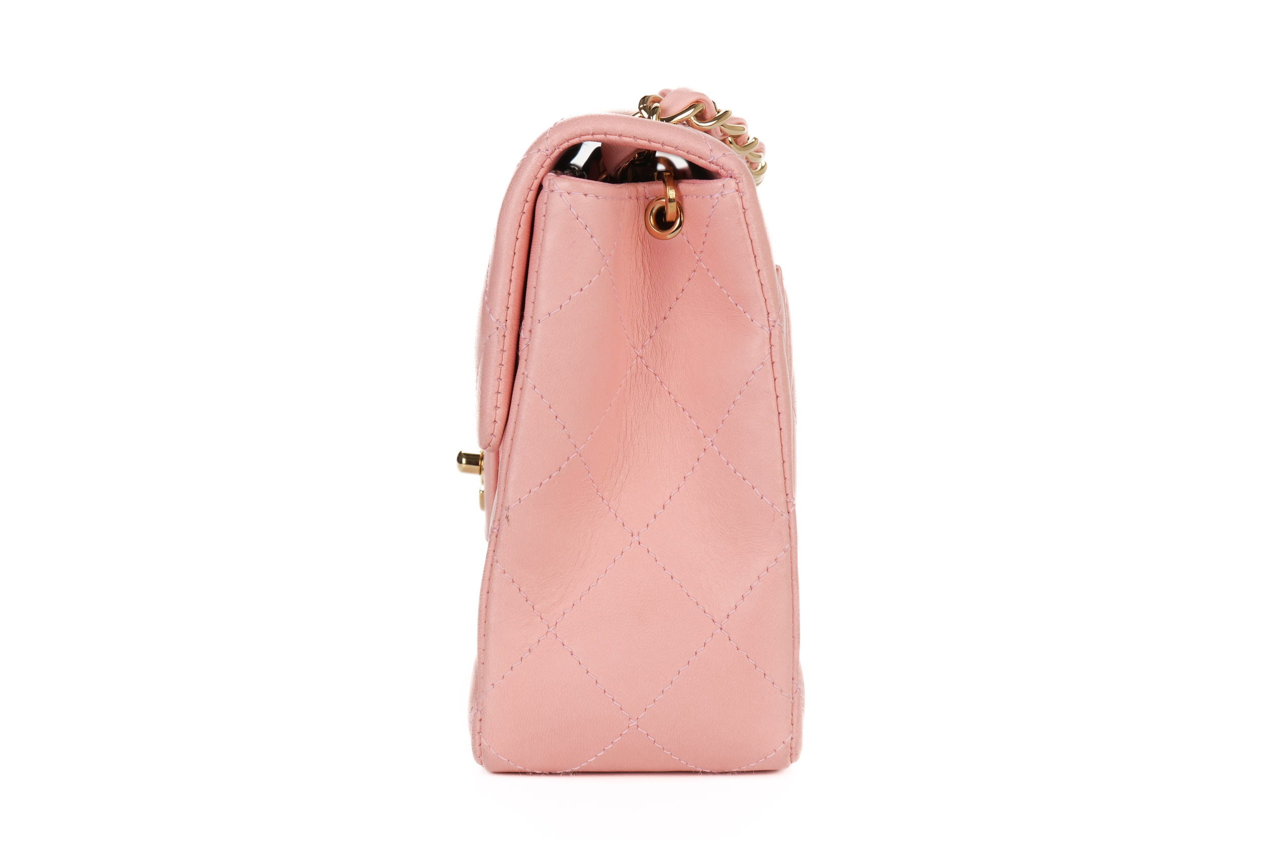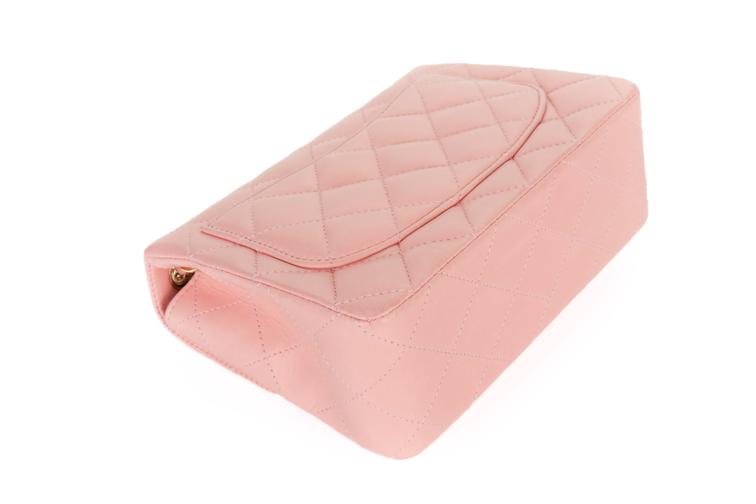 Chanel Square Classic Flap Pink Lambskin Quilted Flap Gold Hardware