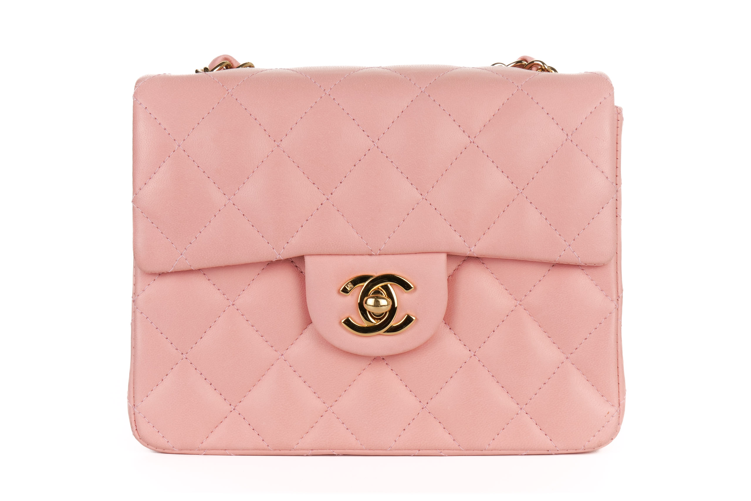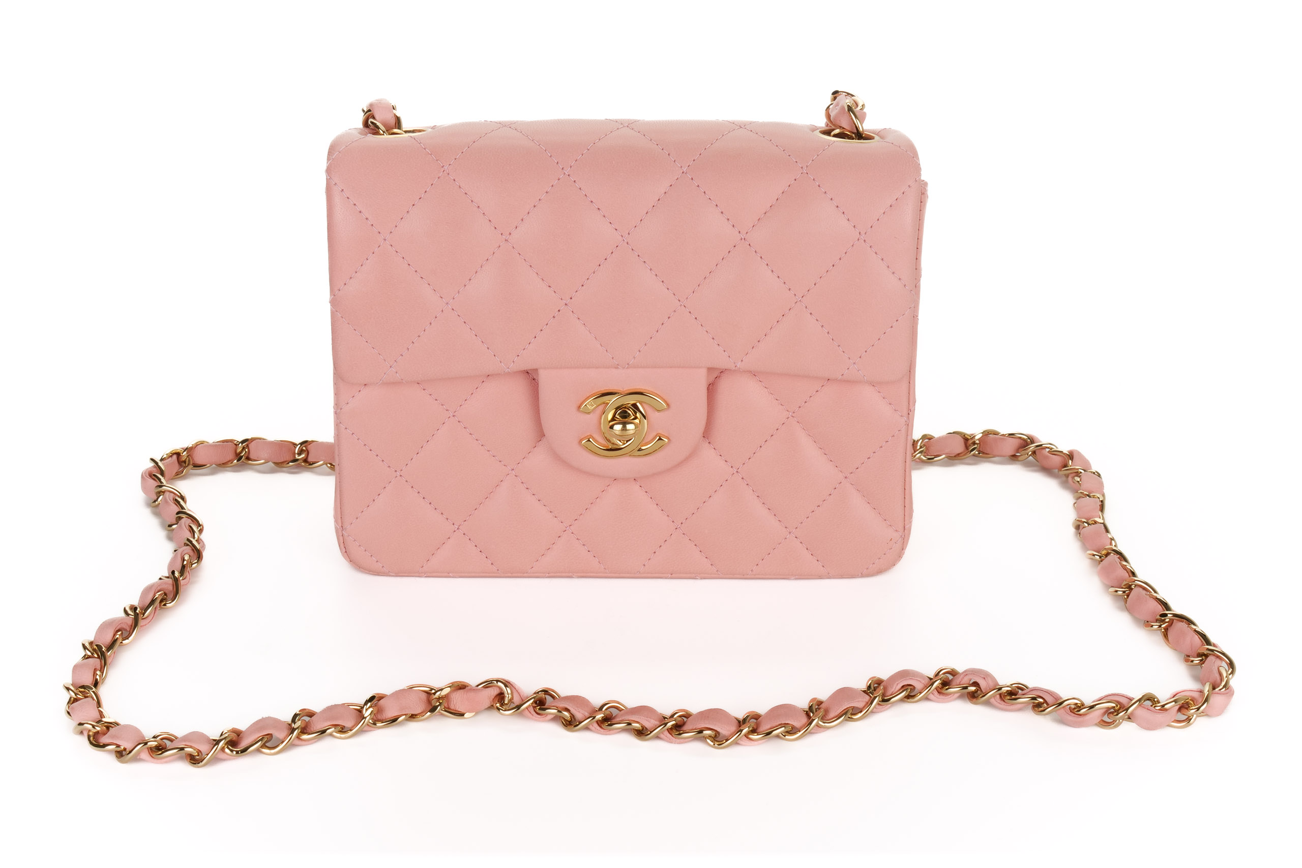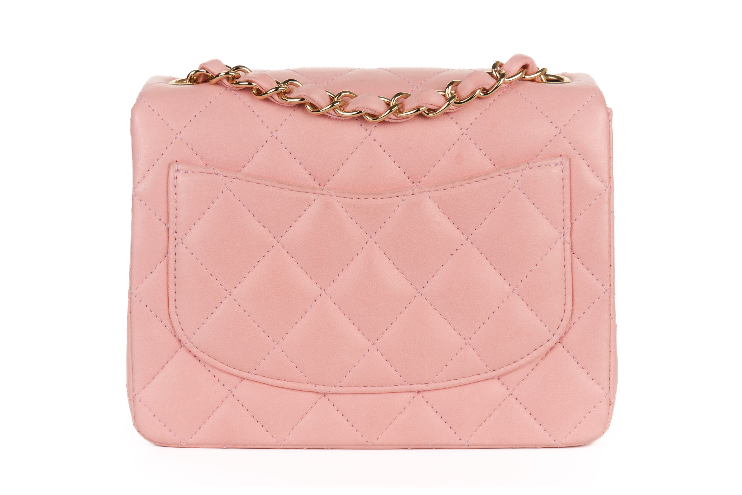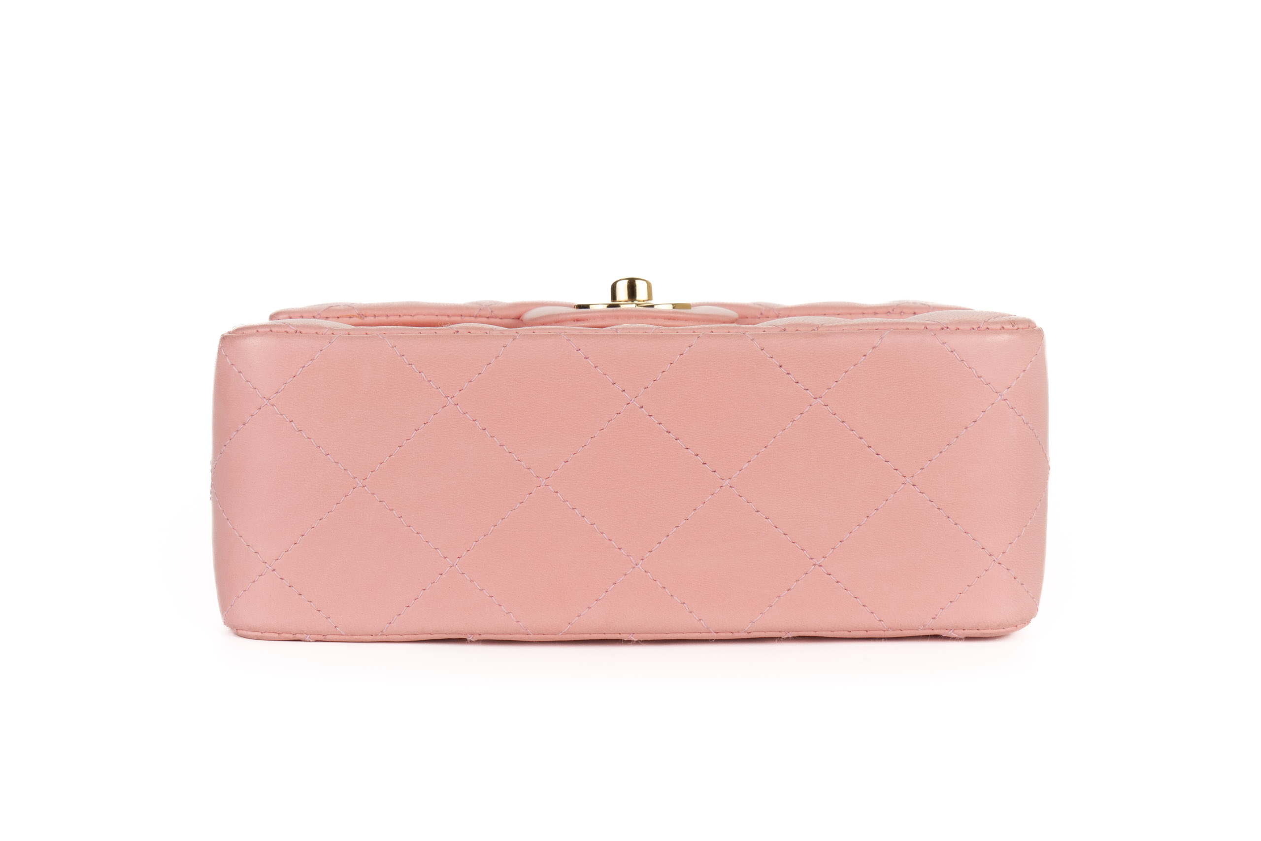 Chanel Square Classic Flap Pink Lambskin Quilted Flap Gold Hardware