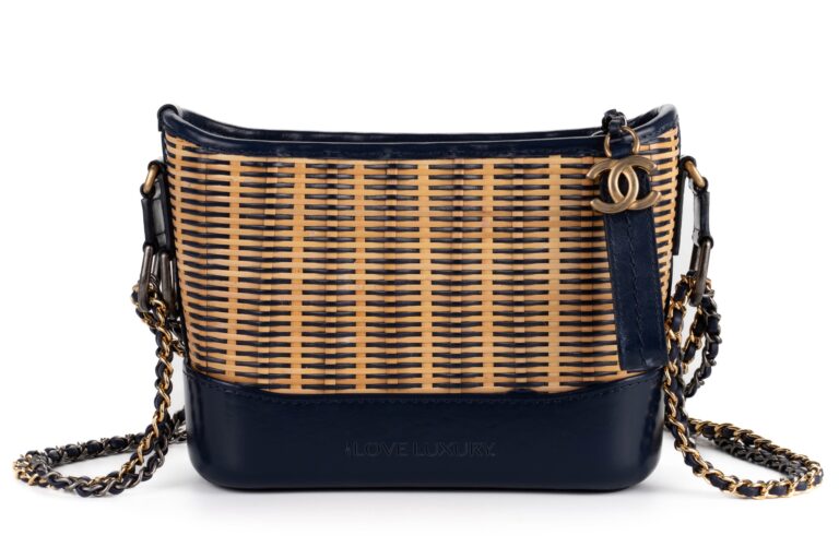 Chanel Rattan Calfskin Small Hobo Beige and Navy Blue Gabrielle Mixed Hardware