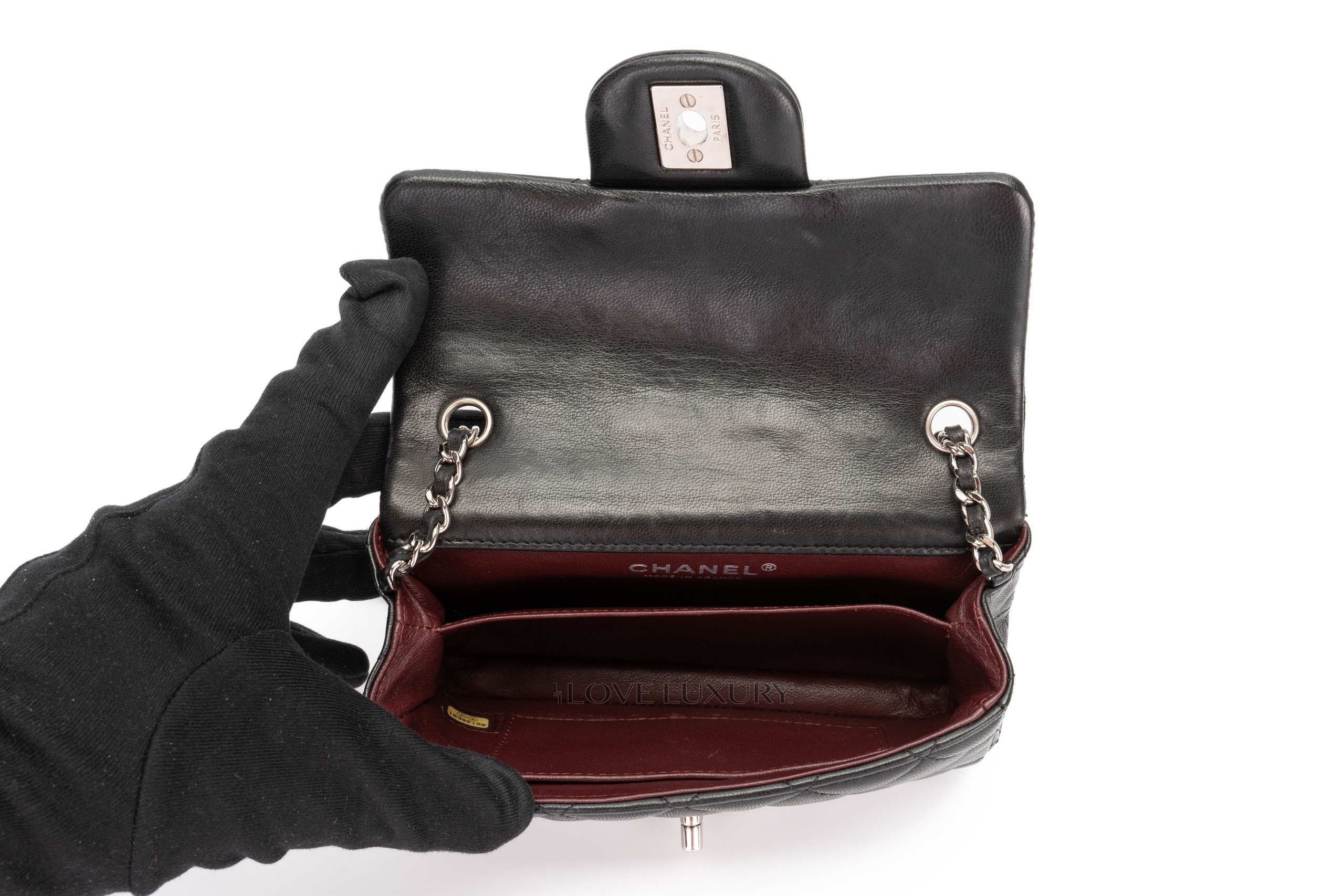 The Chanel Ultra Mini is the smallest of the classic flap bags, featuring a single flap and cc turn lock. Crafted from the finest black lambskin featuring shiny silver hardware. The external of this bag is in excellent pre-loved condition. This is a 16 series bag from 2012, this size is no longer made. This bag comes with dustbag and authentication.