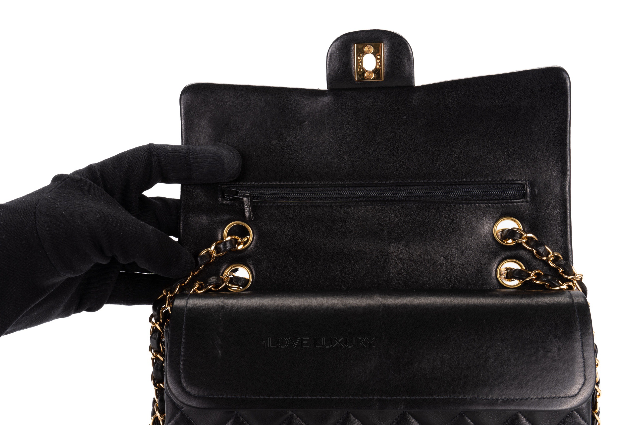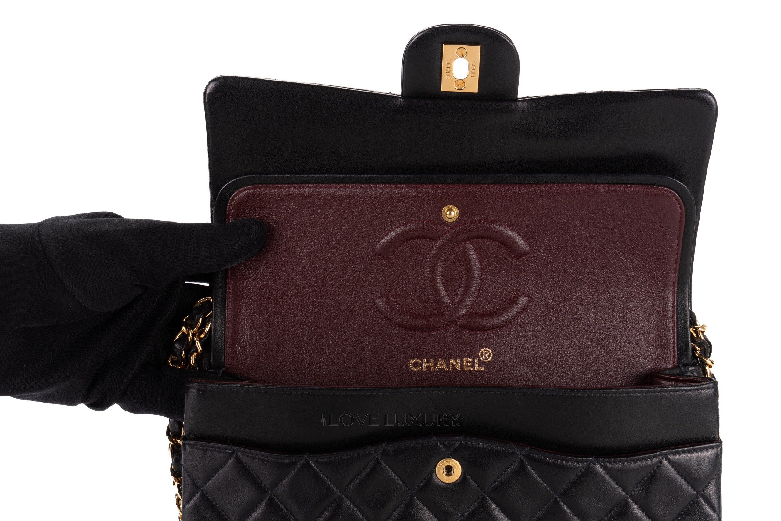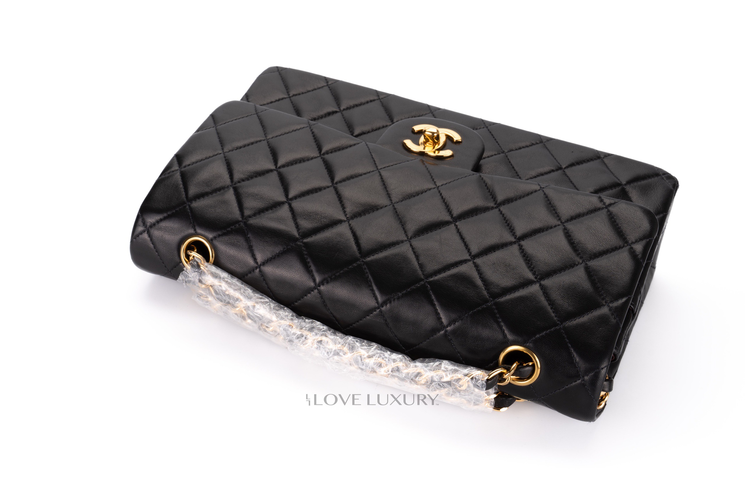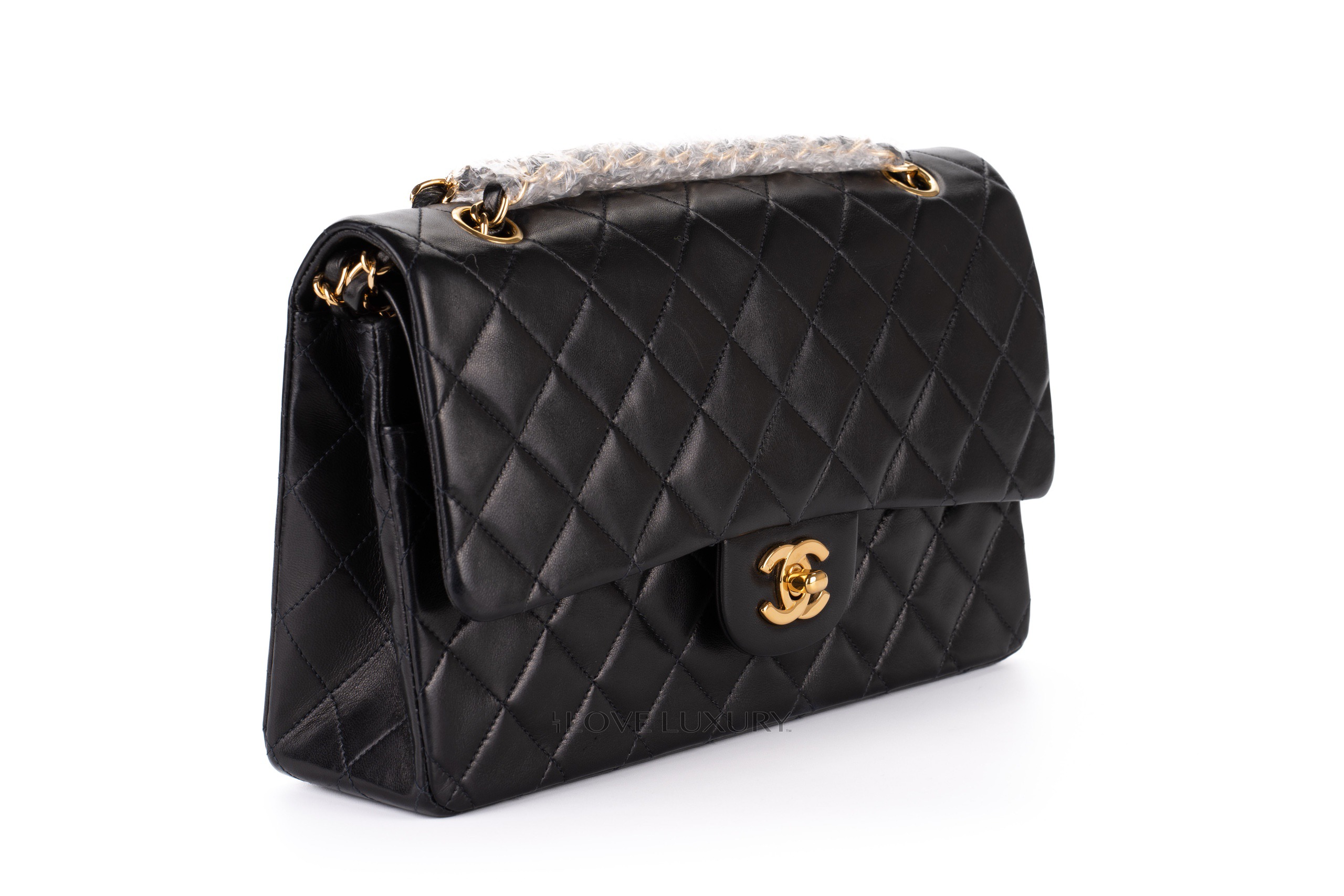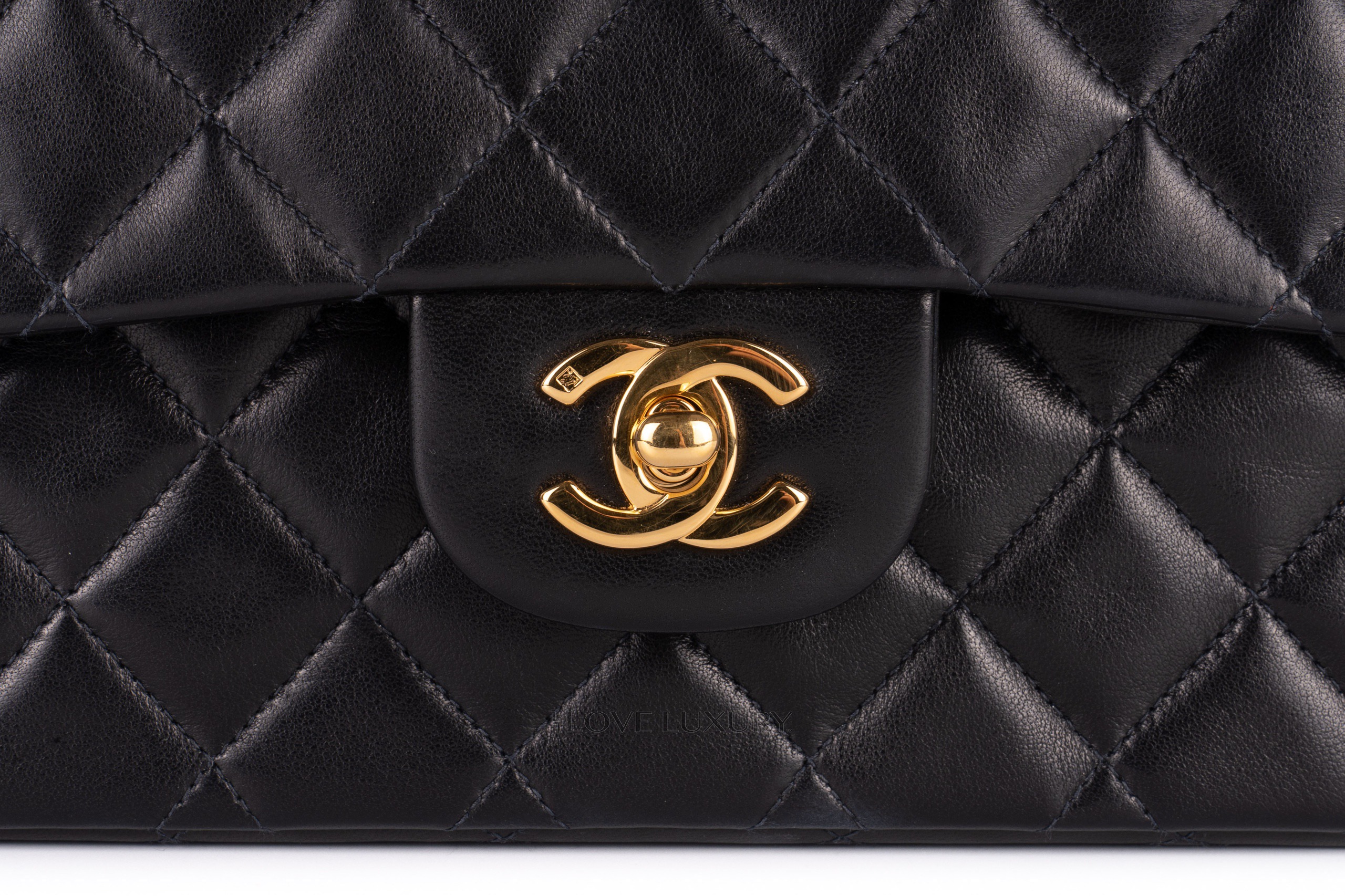 Chanel Medium Classic Flap Black Lambskin Gold Hardware / 5 series 1997-1999 Good Pre-Loved condition