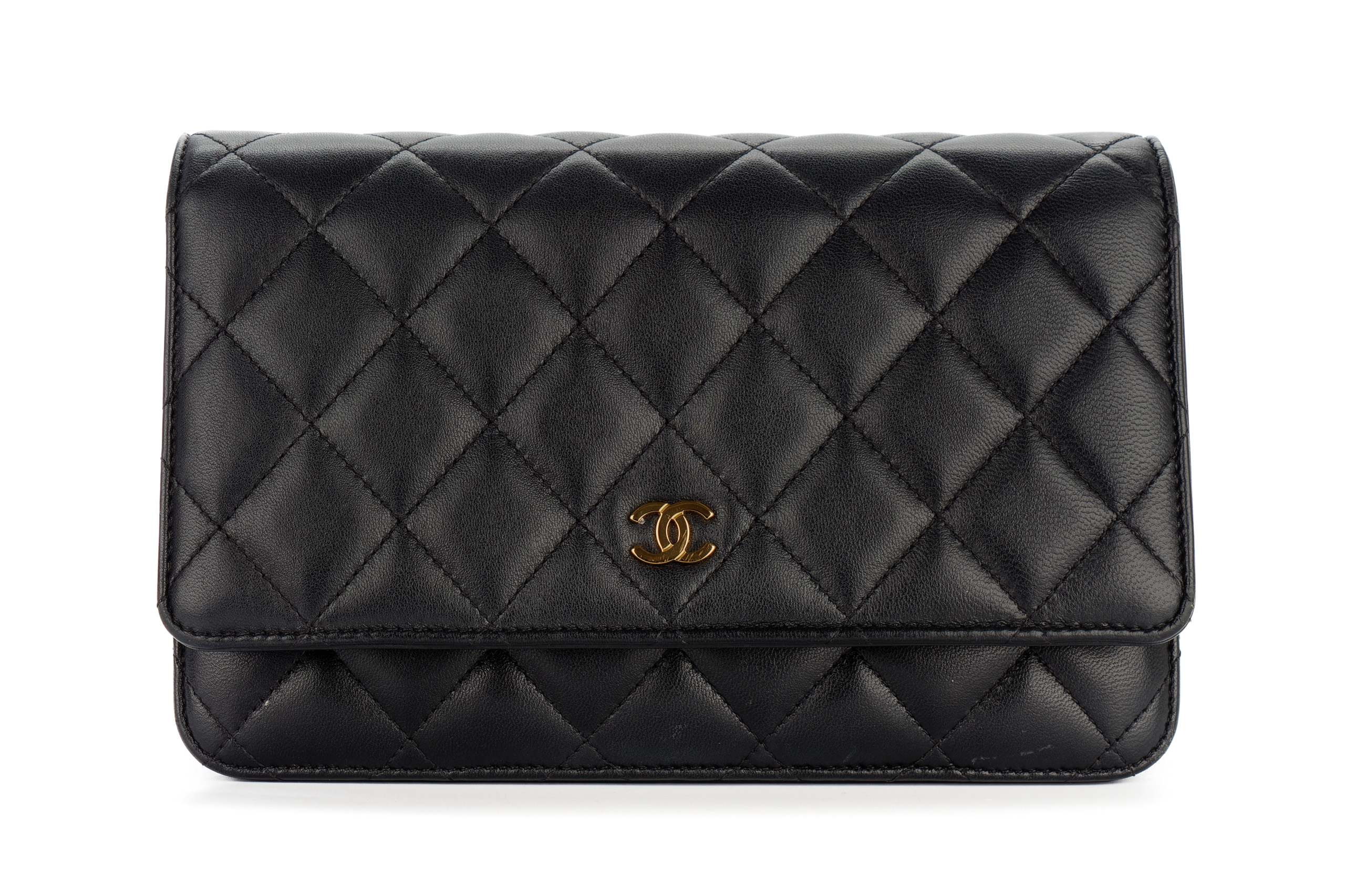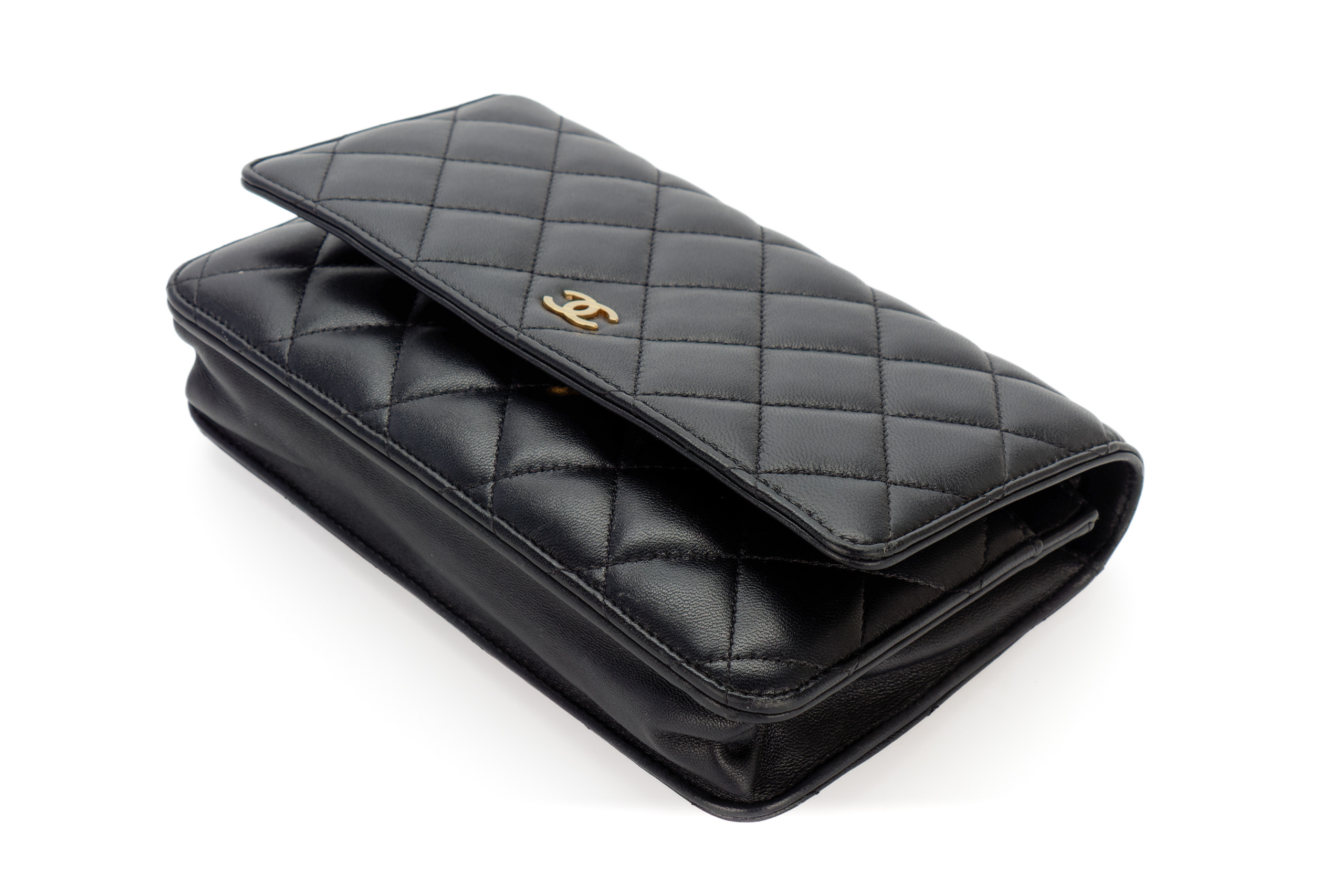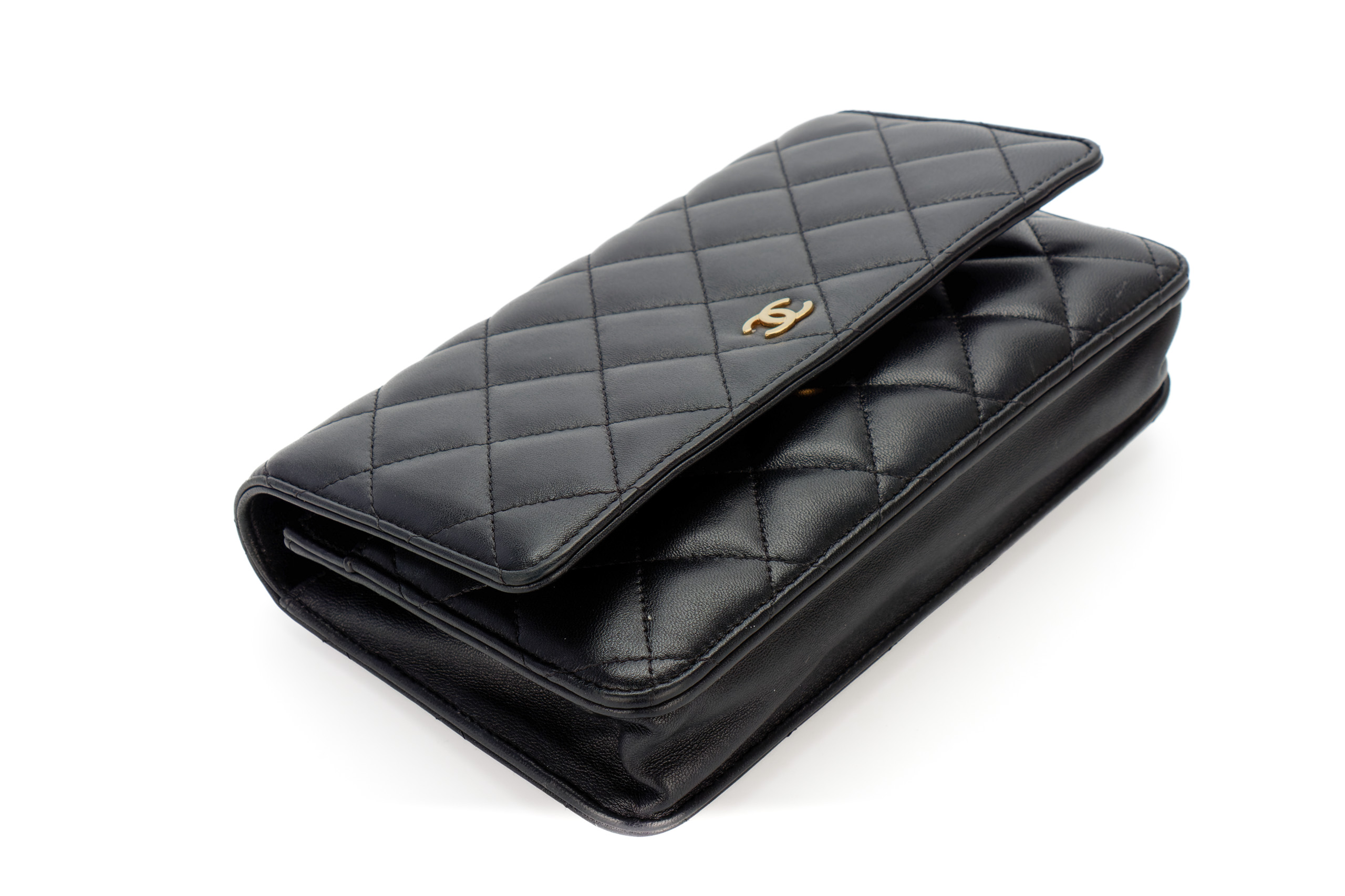 Chanel Wallet On Chain Black Lambskin Gold Hardware / Microchiped, Preloved