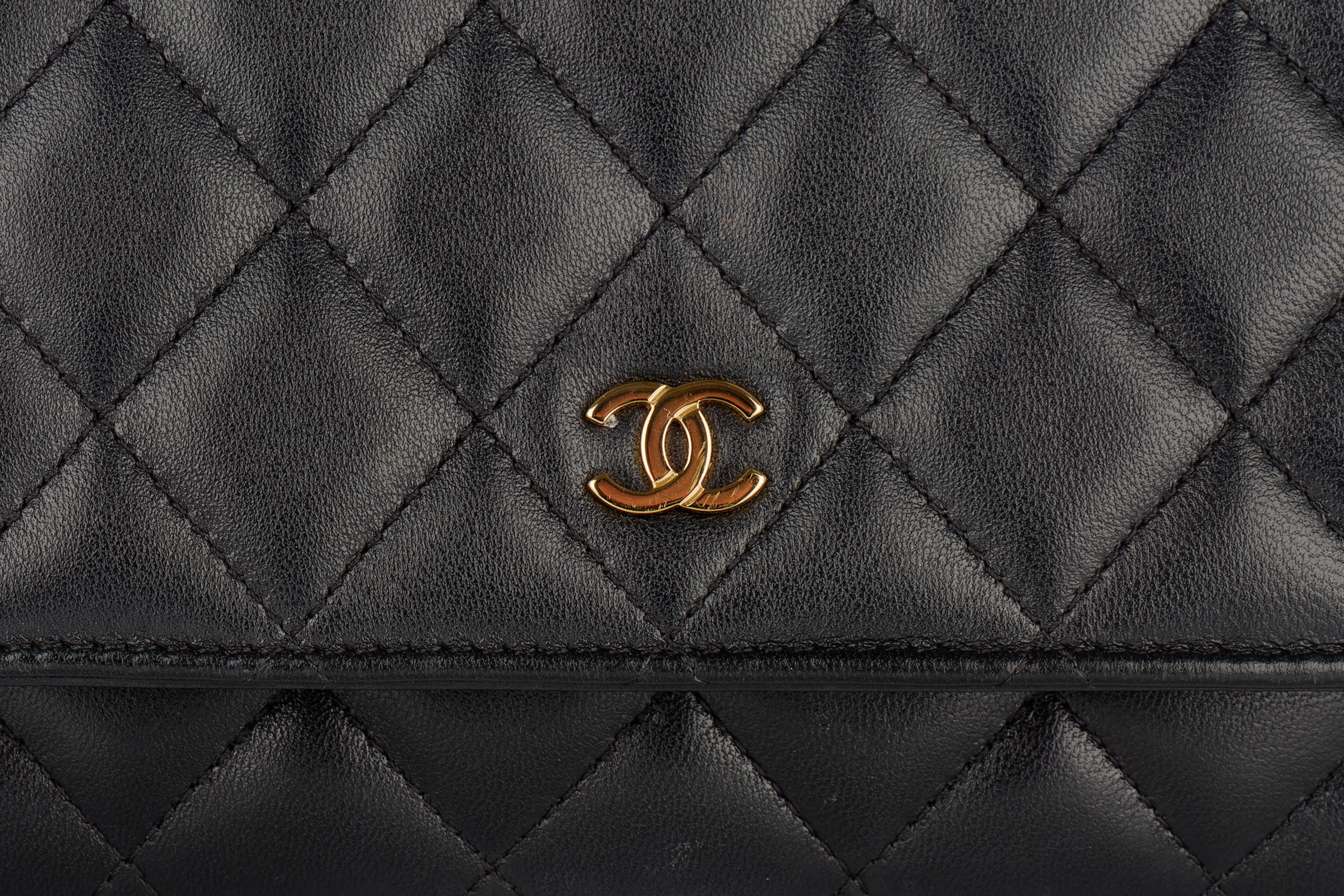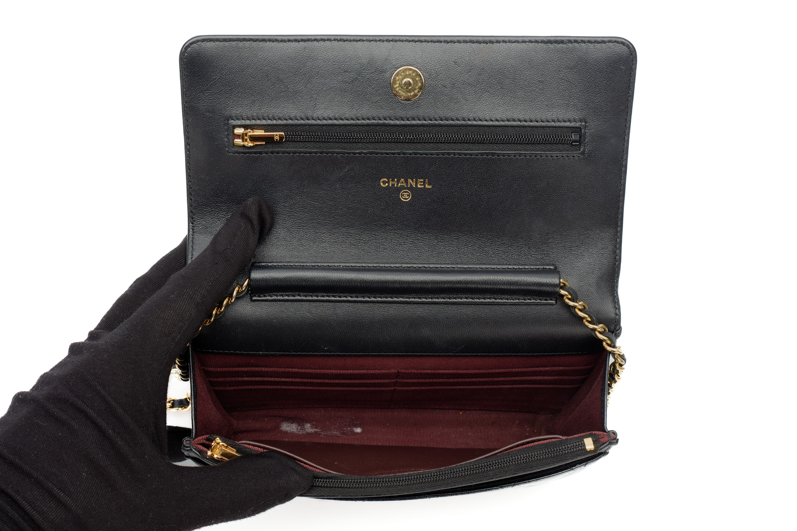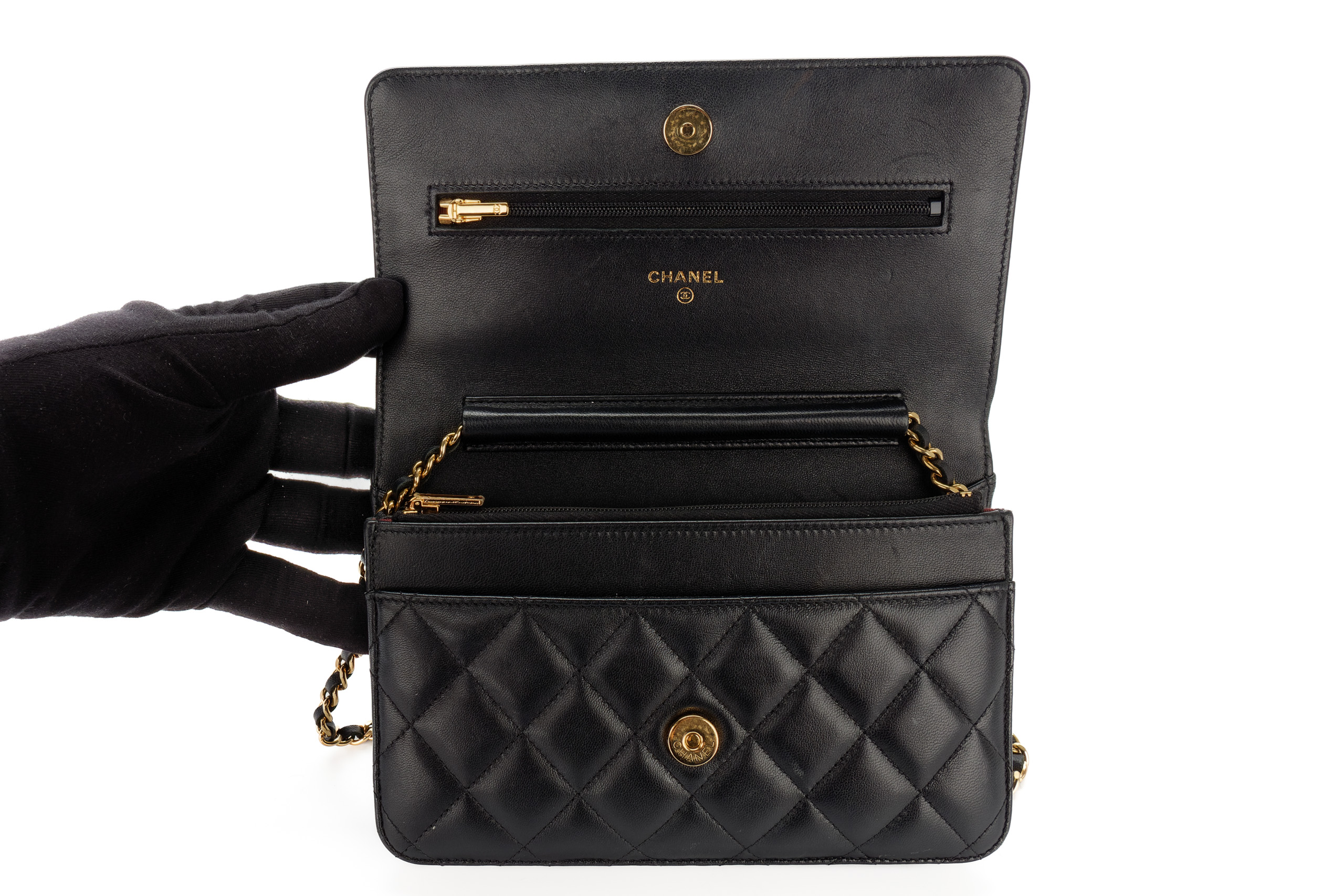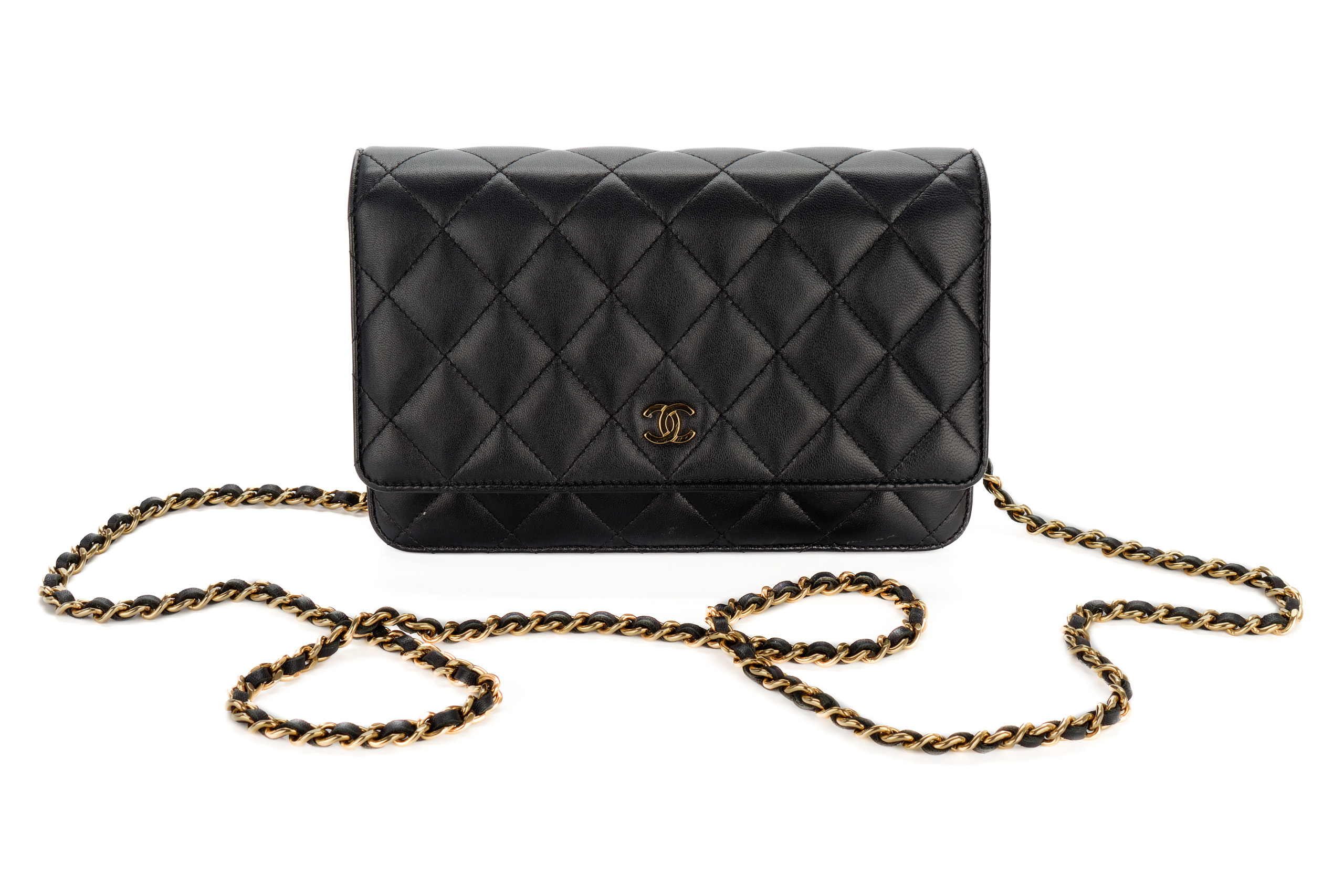 Chanel Wallet On Chain Black Lambskin Gold Hardware / Microchiped, Preloved