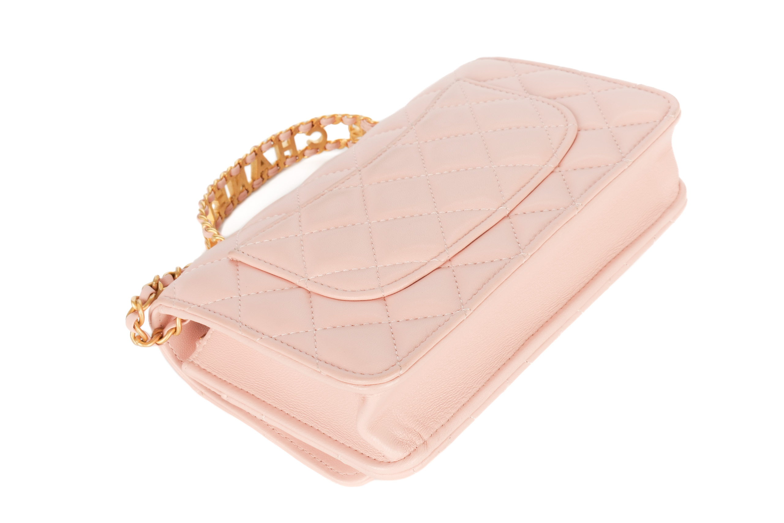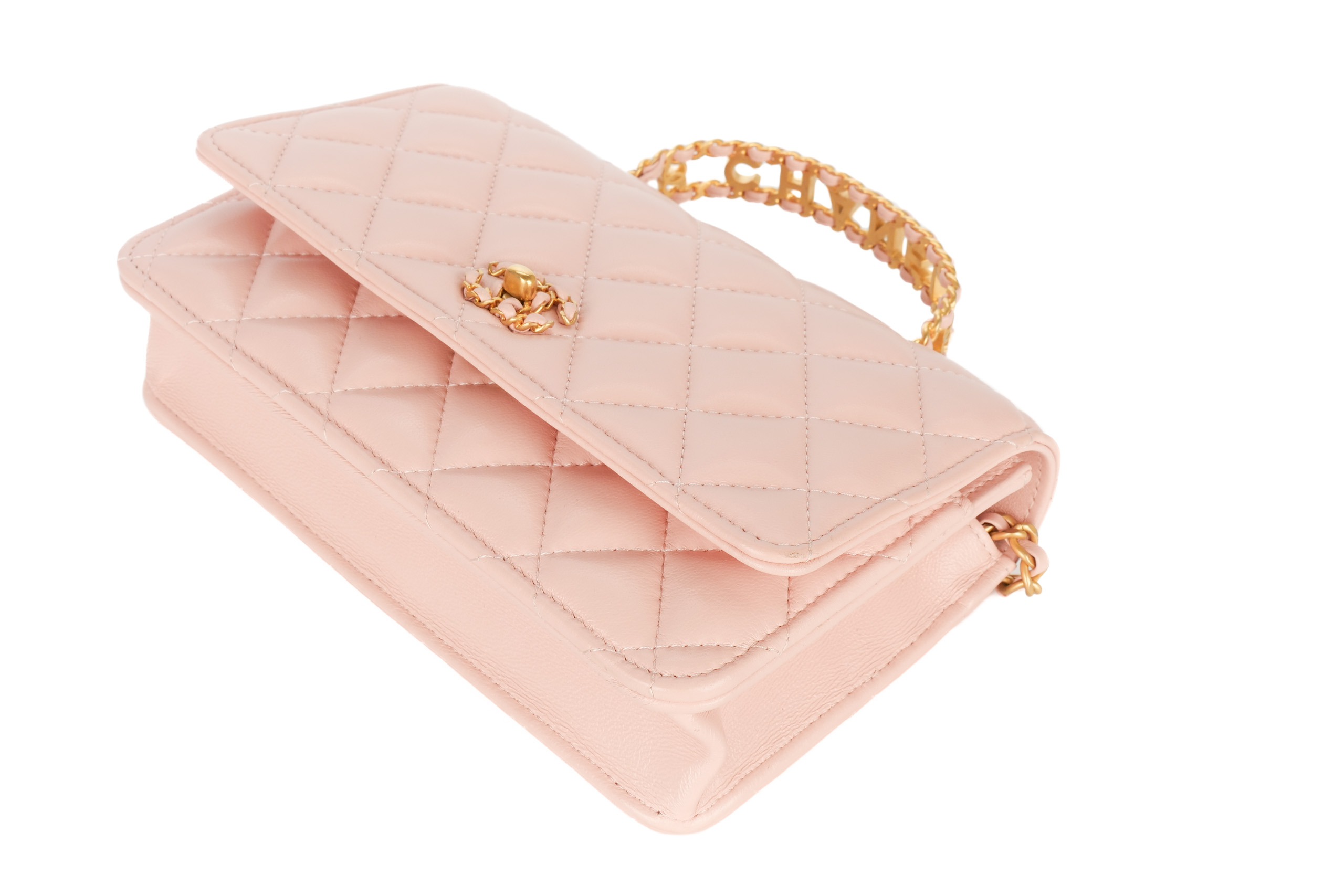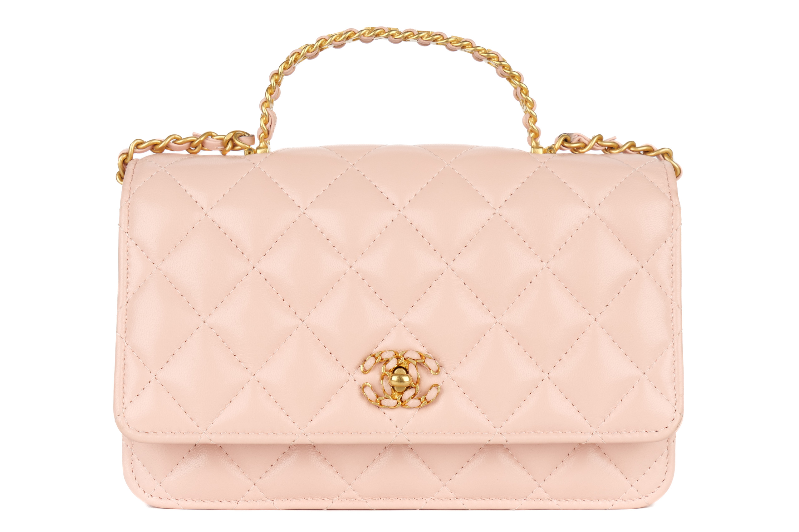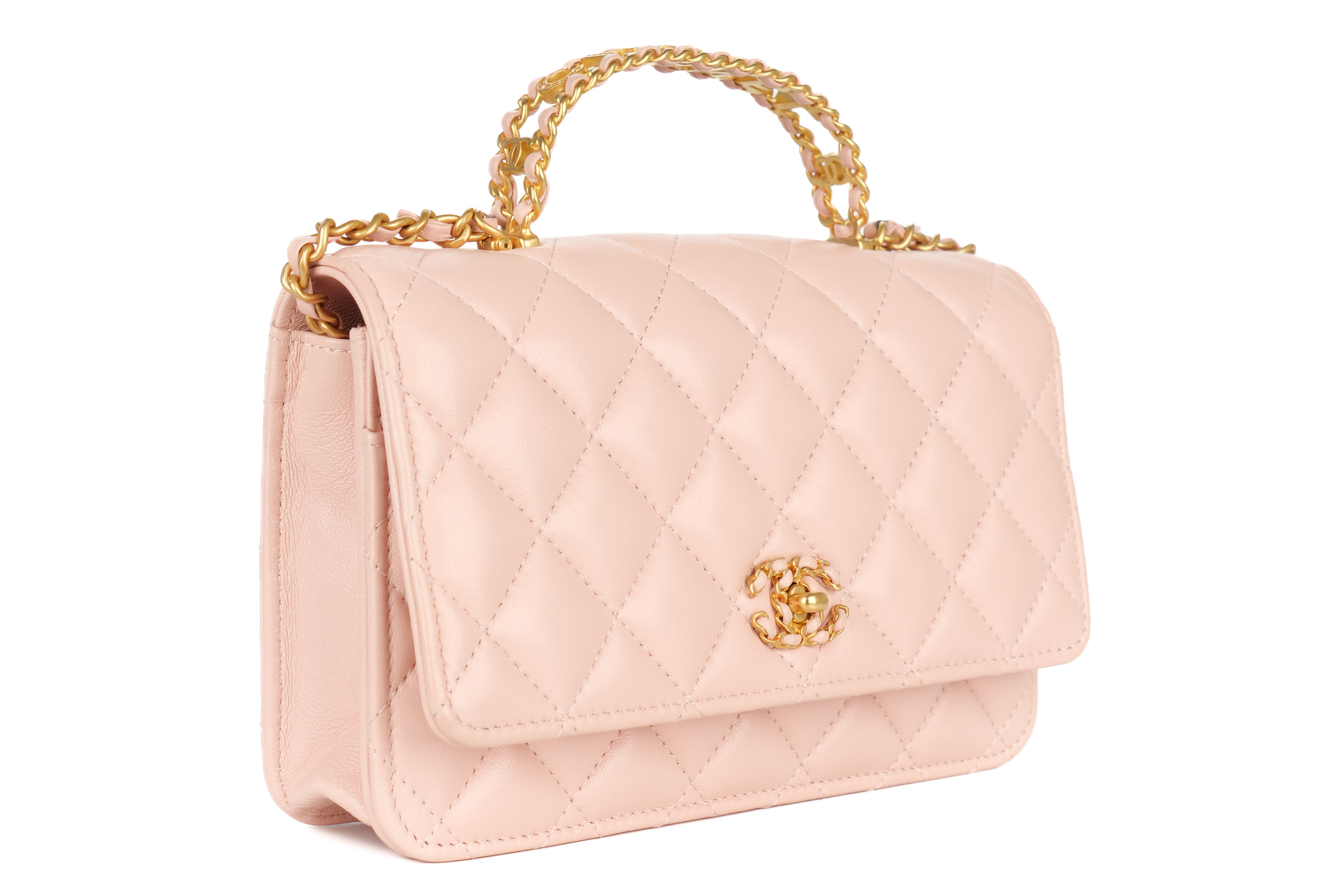 Chanel Wallet On Chain Top Handle Light Pink Lambskin Gold Hardware / Microchipped, Excellent Preloved