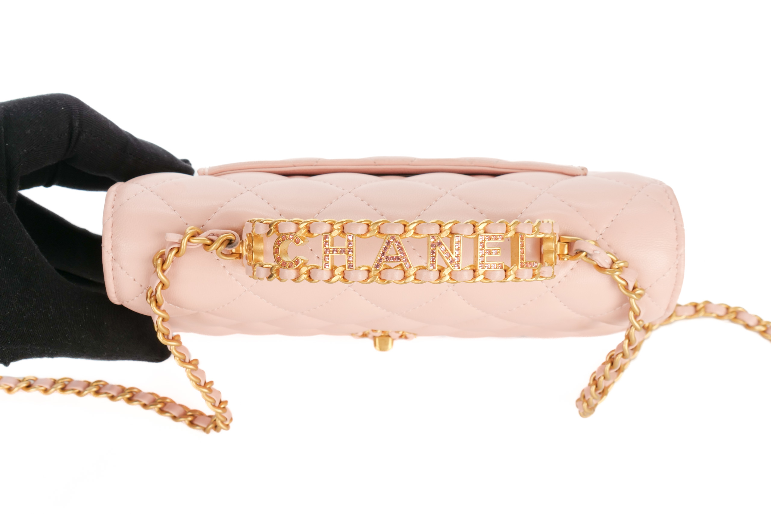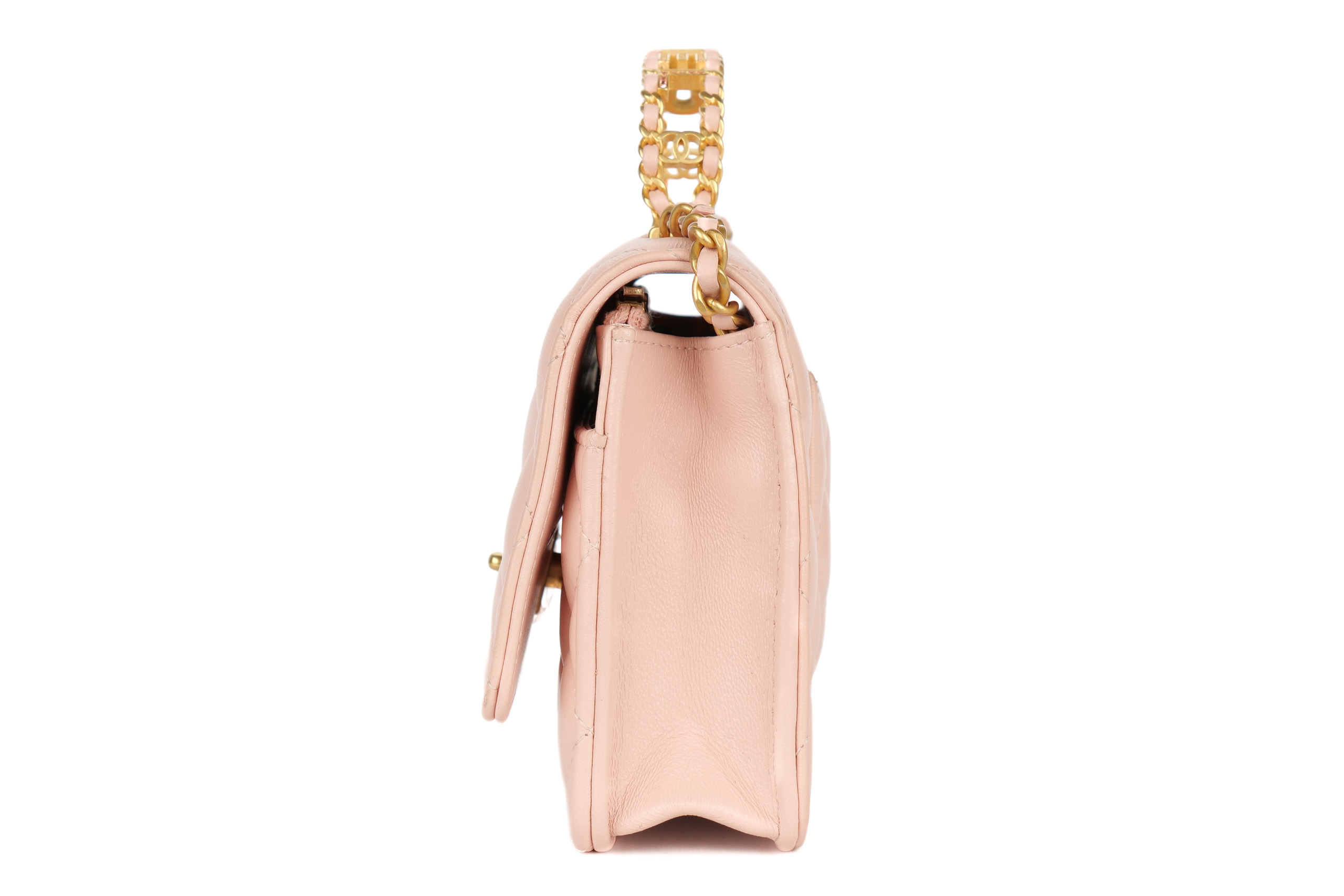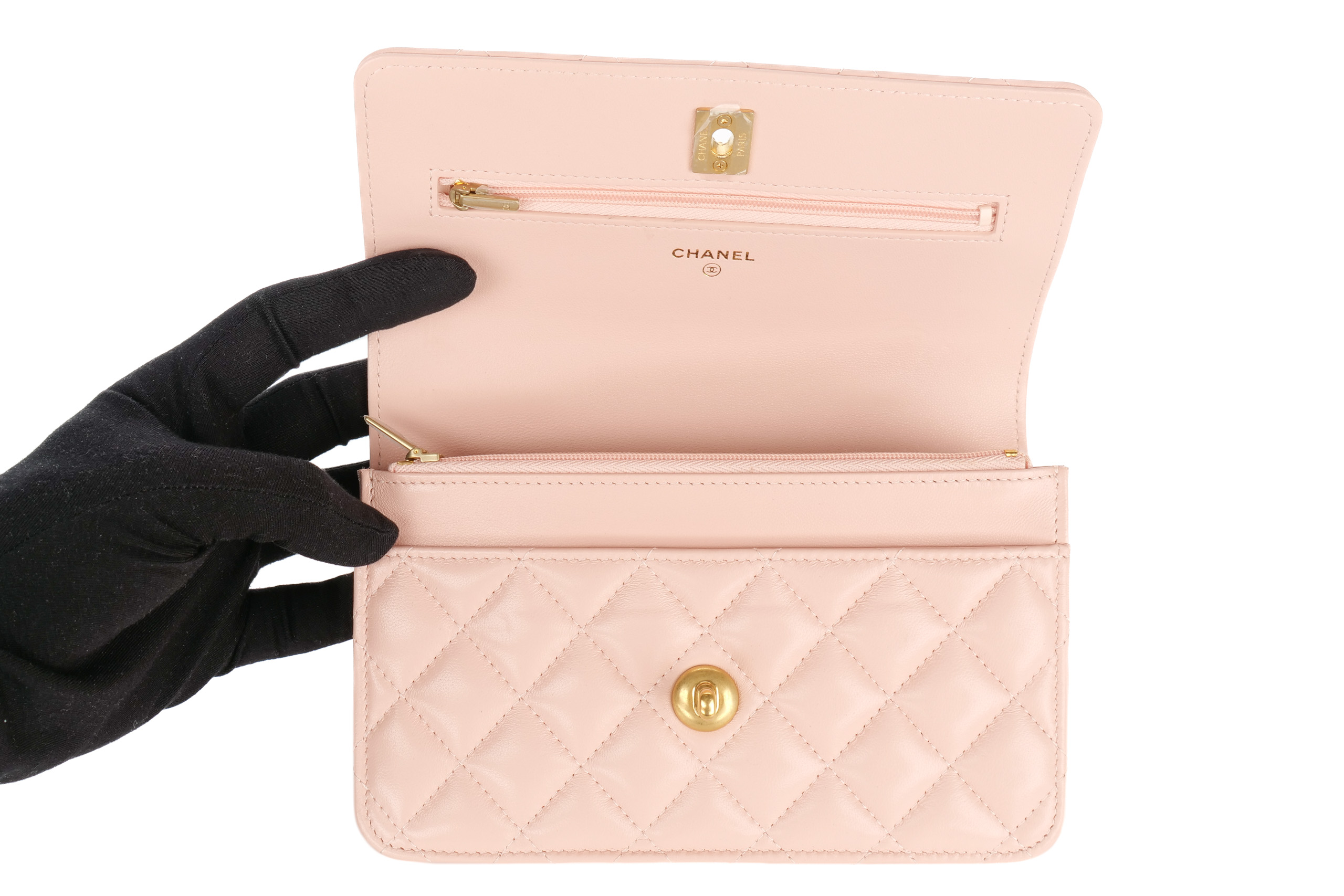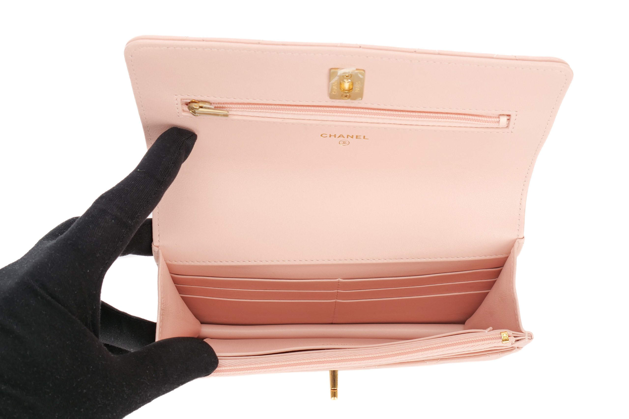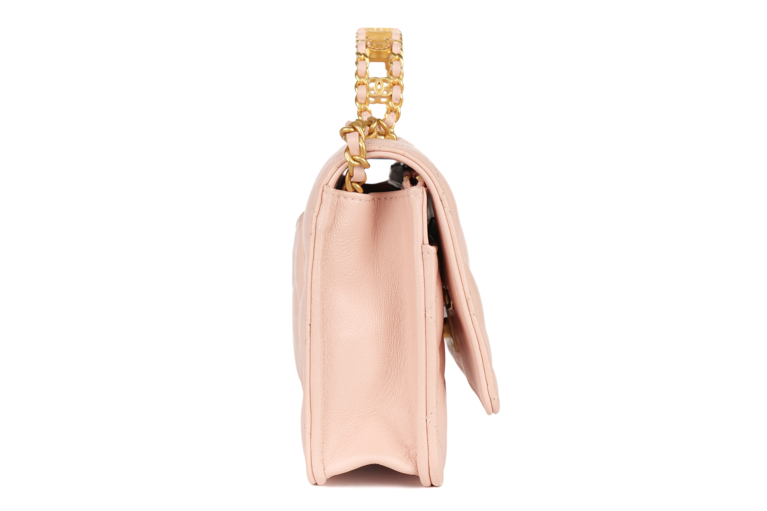 Chanel Wallet On Chain Top Handle Light Pink Lambskin Gold Hardware / Microchipped, Excellent Preloved