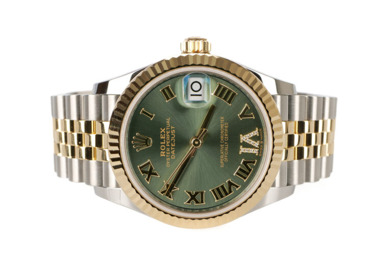 Rolex DateJust 31 Olive Green and Diamond Dial Two Tone Yellow Gold and Steel Flutted Bezel Jubille Bracelet 278273