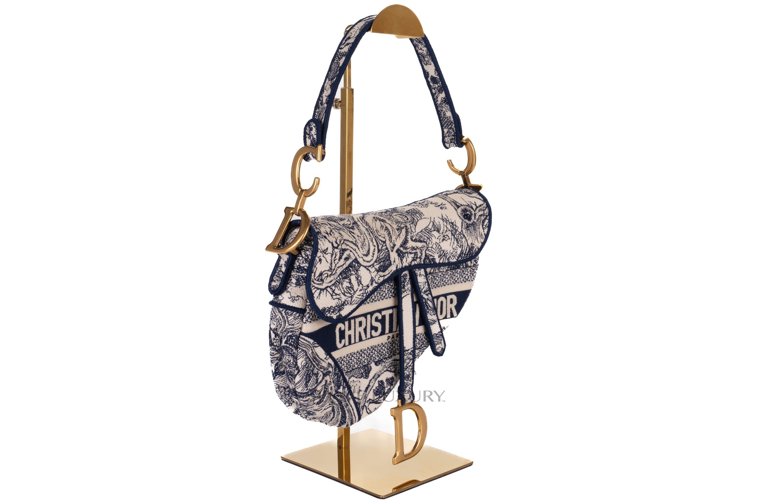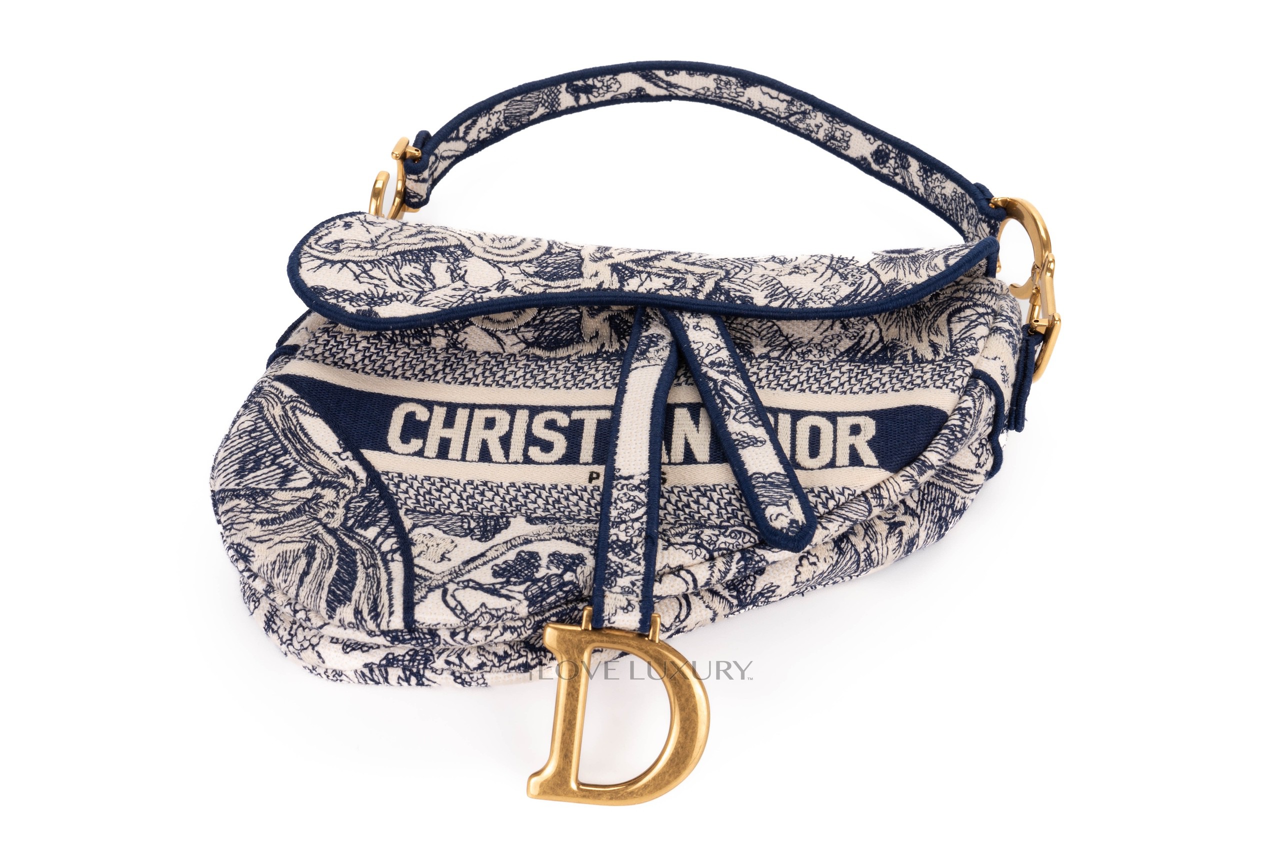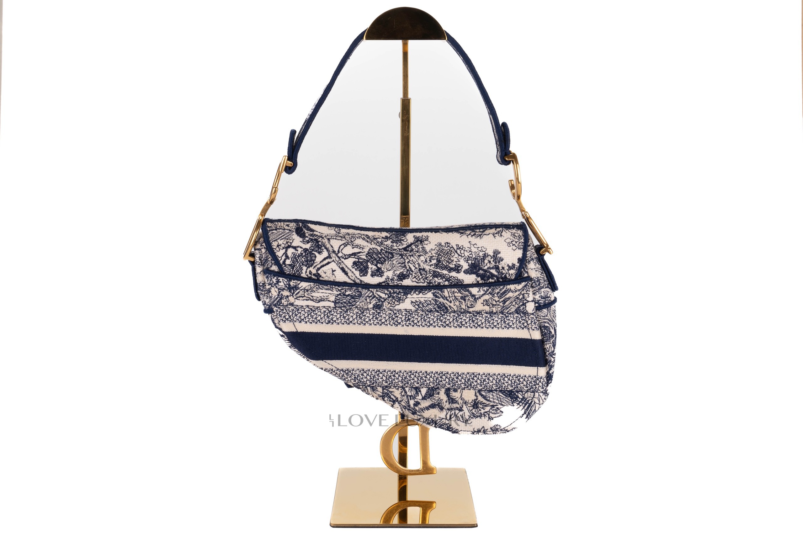 Dior Saddle Mini Saddle bags are a cute and modern take on the classic saddle bag, the saddle style is an equestrian take on a handbag. This bag is crafted from oblique canvas with navy blue leather trims and gold hardware. This bag is in a preloved condition.