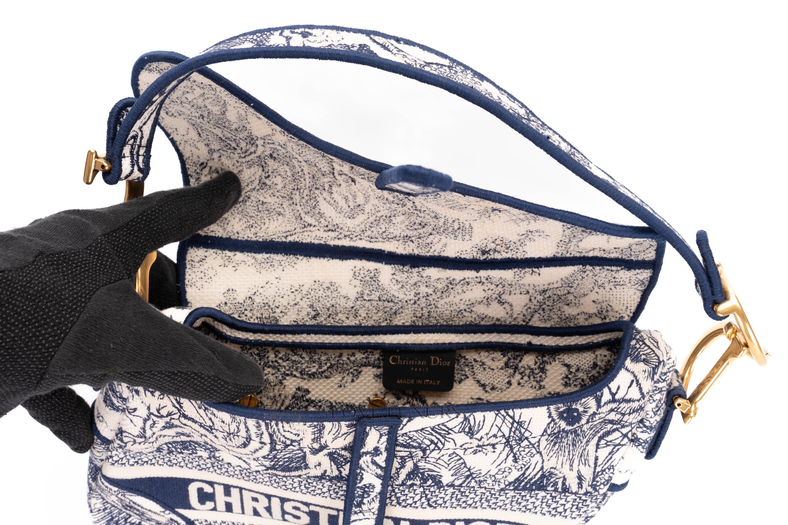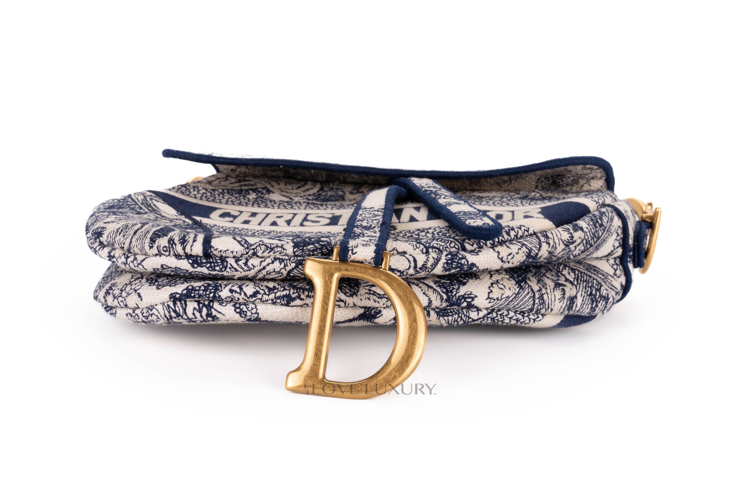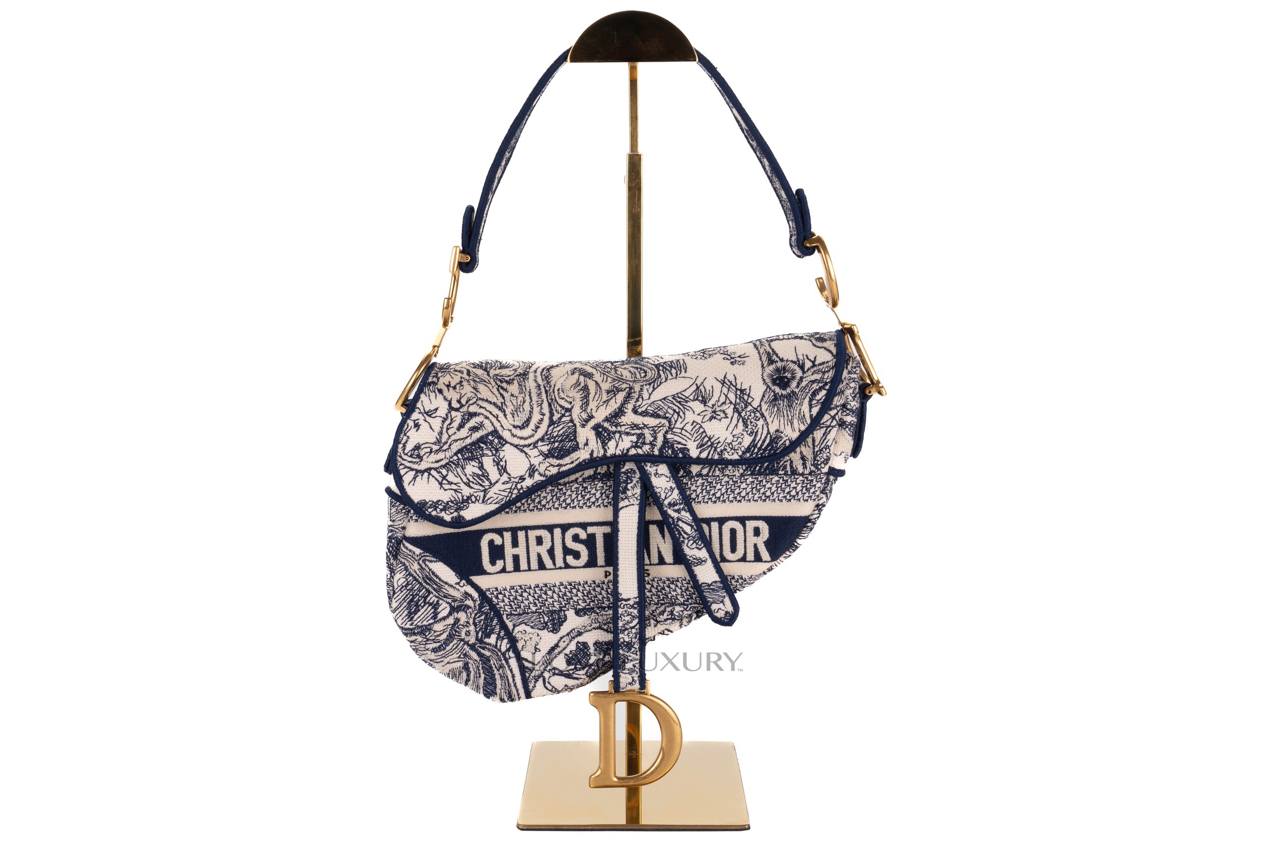 Dior Saddle Mini Saddle bags are a cute and modern take on the classic saddle bag, the saddle style is an equestrian take on a handbag. This bag is crafted from oblique canvas with navy blue leather trims and gold hardware. This bag is in a preloved condition.