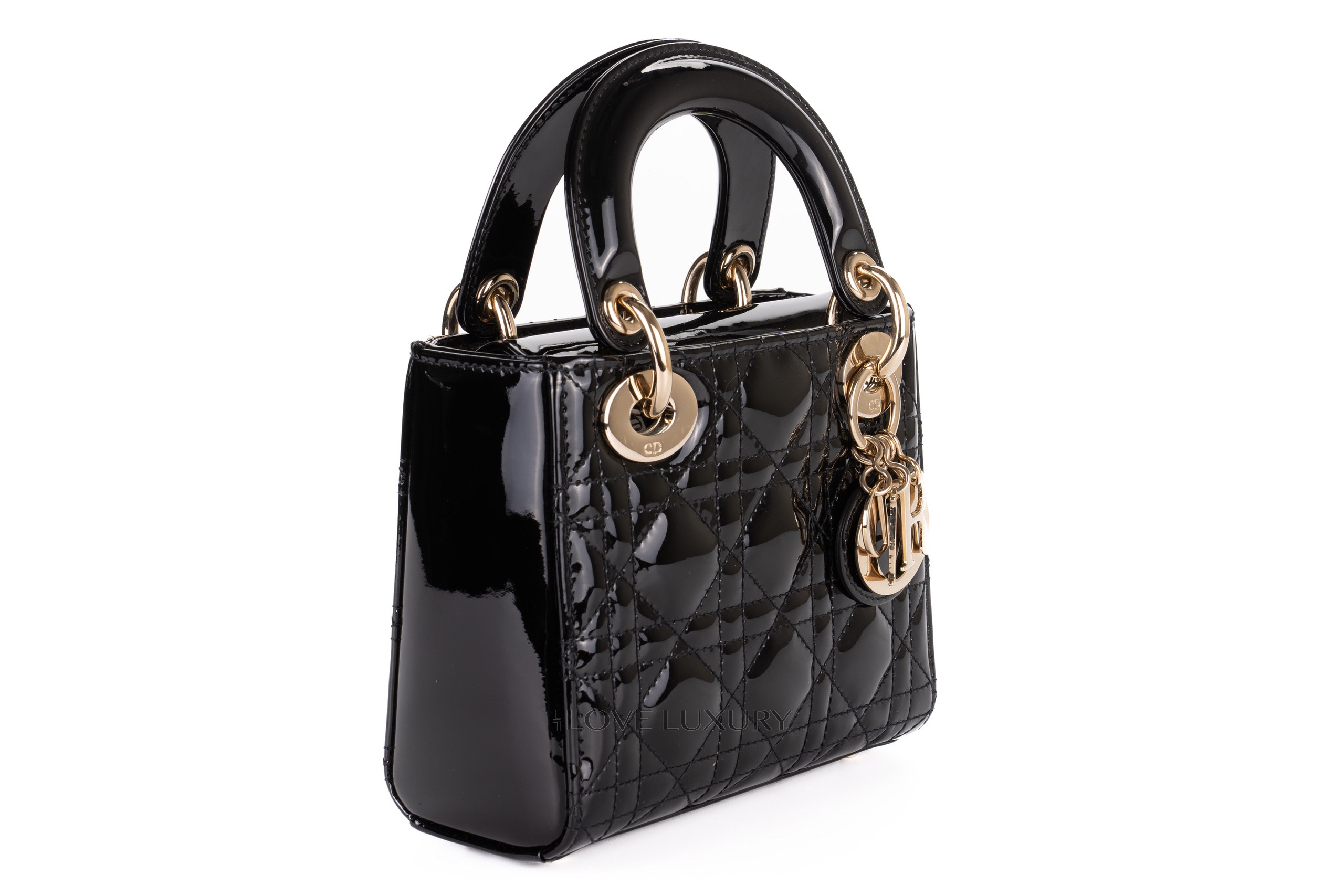 Dior Mini Lady Dior Black Patent Light Gold Hardware / 2021 Excellent Pre-Loved condition Mini Lady Dior Lipstick Pink / 2012 Very Good Pre-Loved.