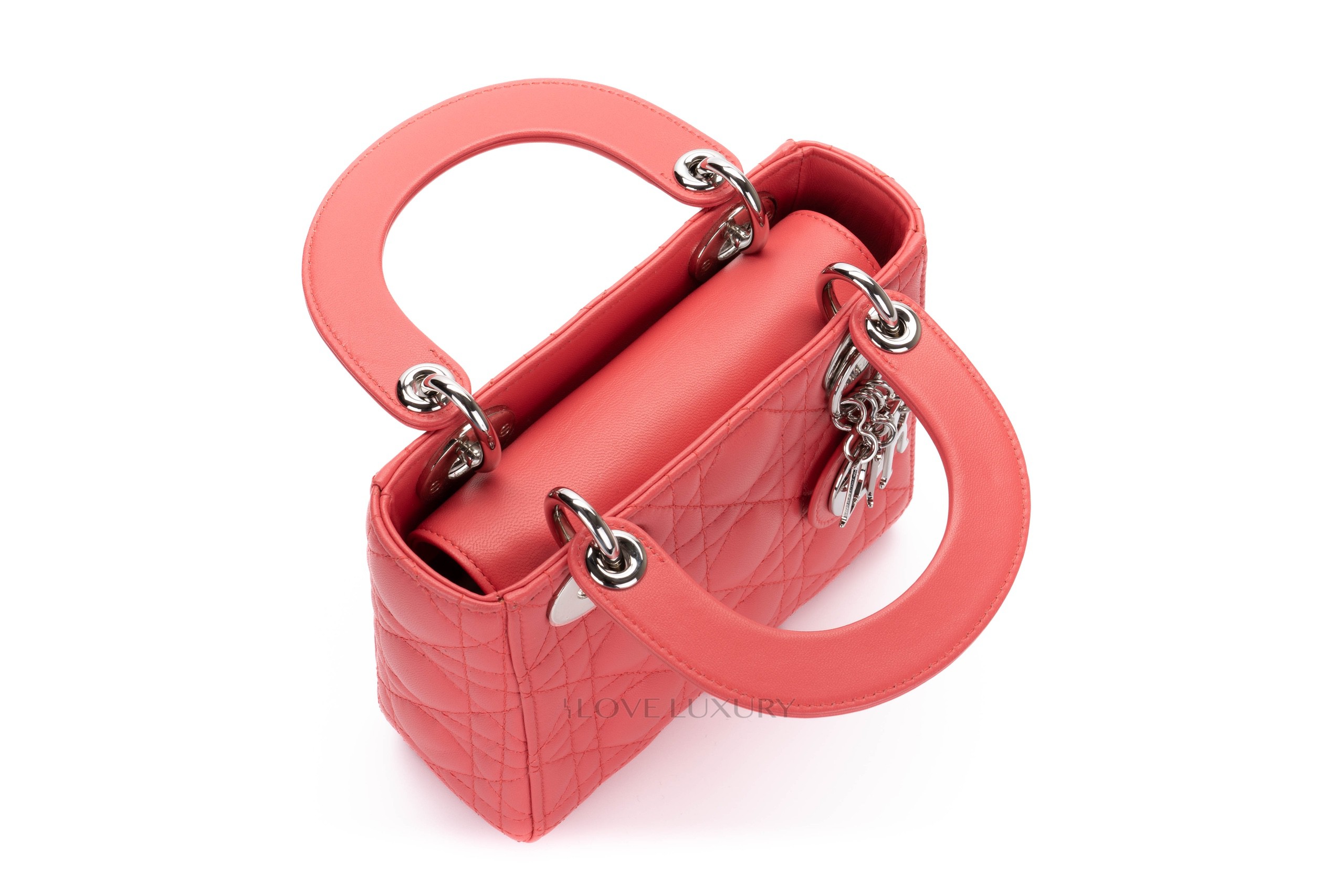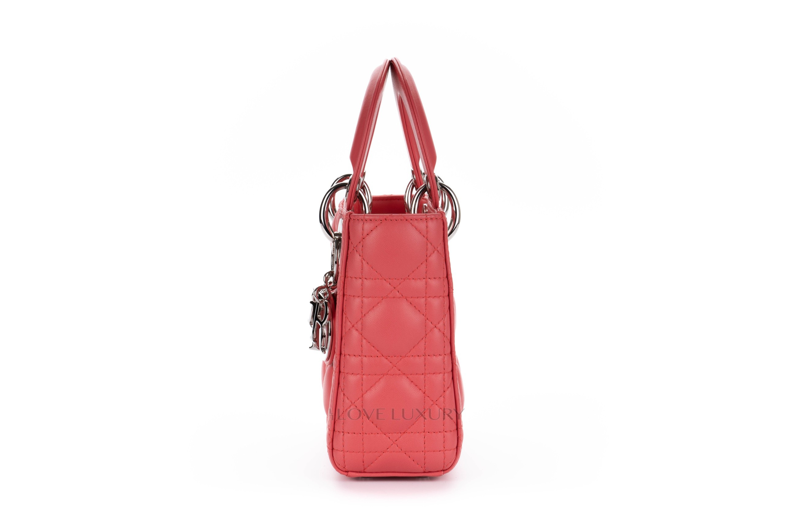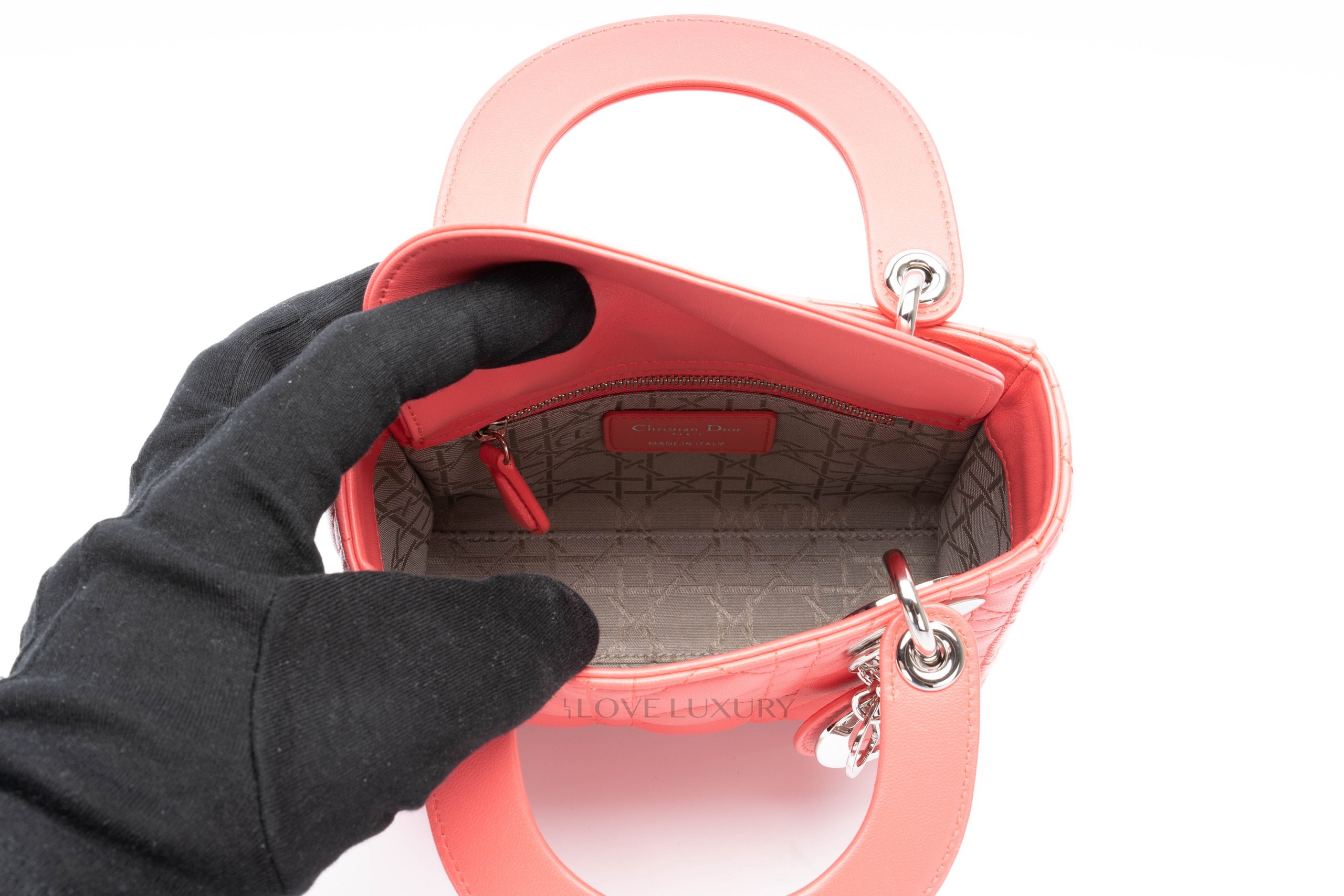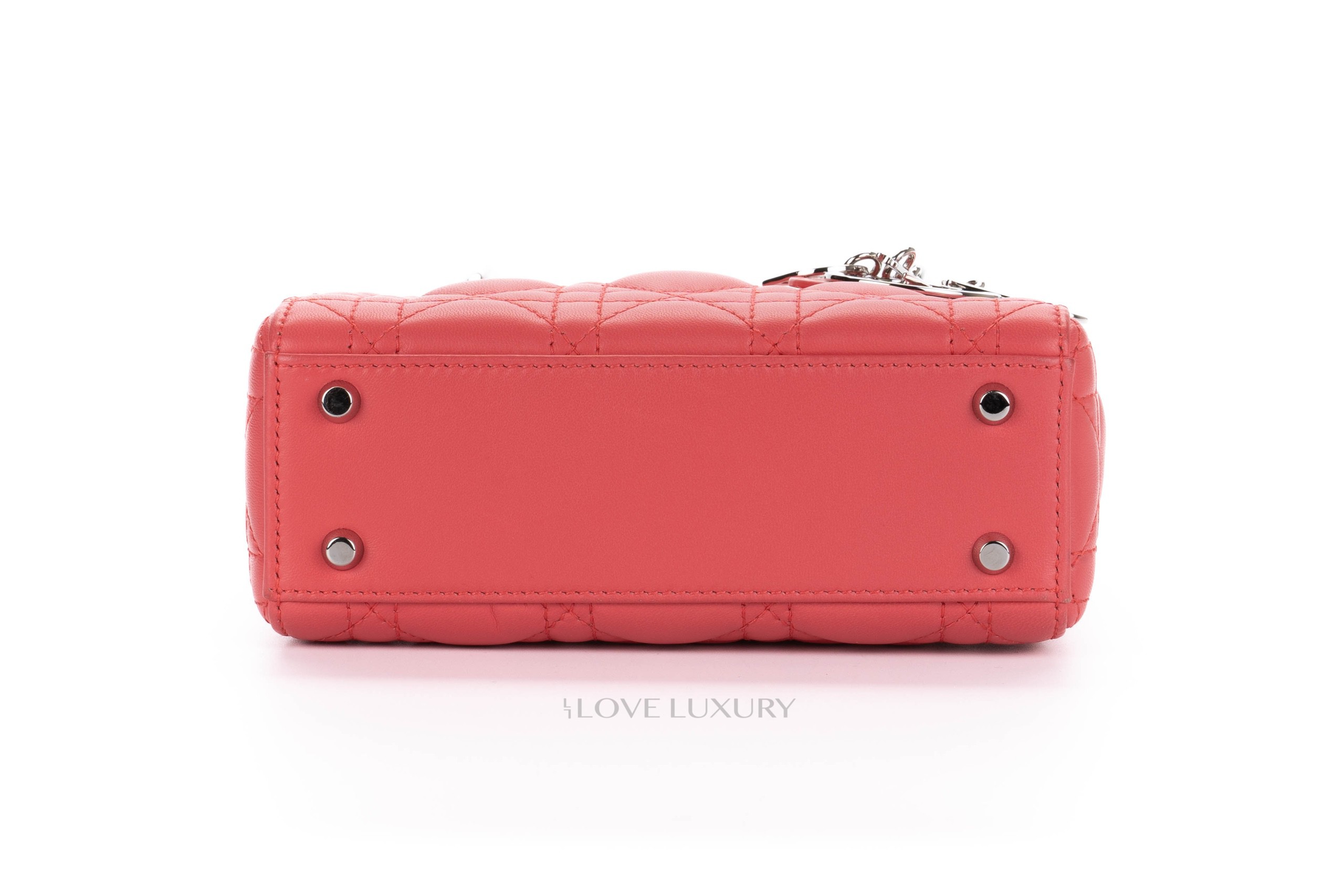 This Mini Lady Dior is from 2012 therefore it comes with the leather shoulder strap rather than the chain of the newer models. The bag is crafted from the finest Italian lambskin leather enhanced with the stiched cannage motif so well known from Dior. This bag has light signs of use on all 4 corners of the top and bottom of the bag however this is very minimal, the hardware is mostly stickered and the feet show some light scratching as does the DIOR charm. Internally there is a few dots of black only. The handles and strap are in lovely condition however there is a small blavk mark on the strap approx 1cm long. This bag comes with strap, dustbag, card and authentication.