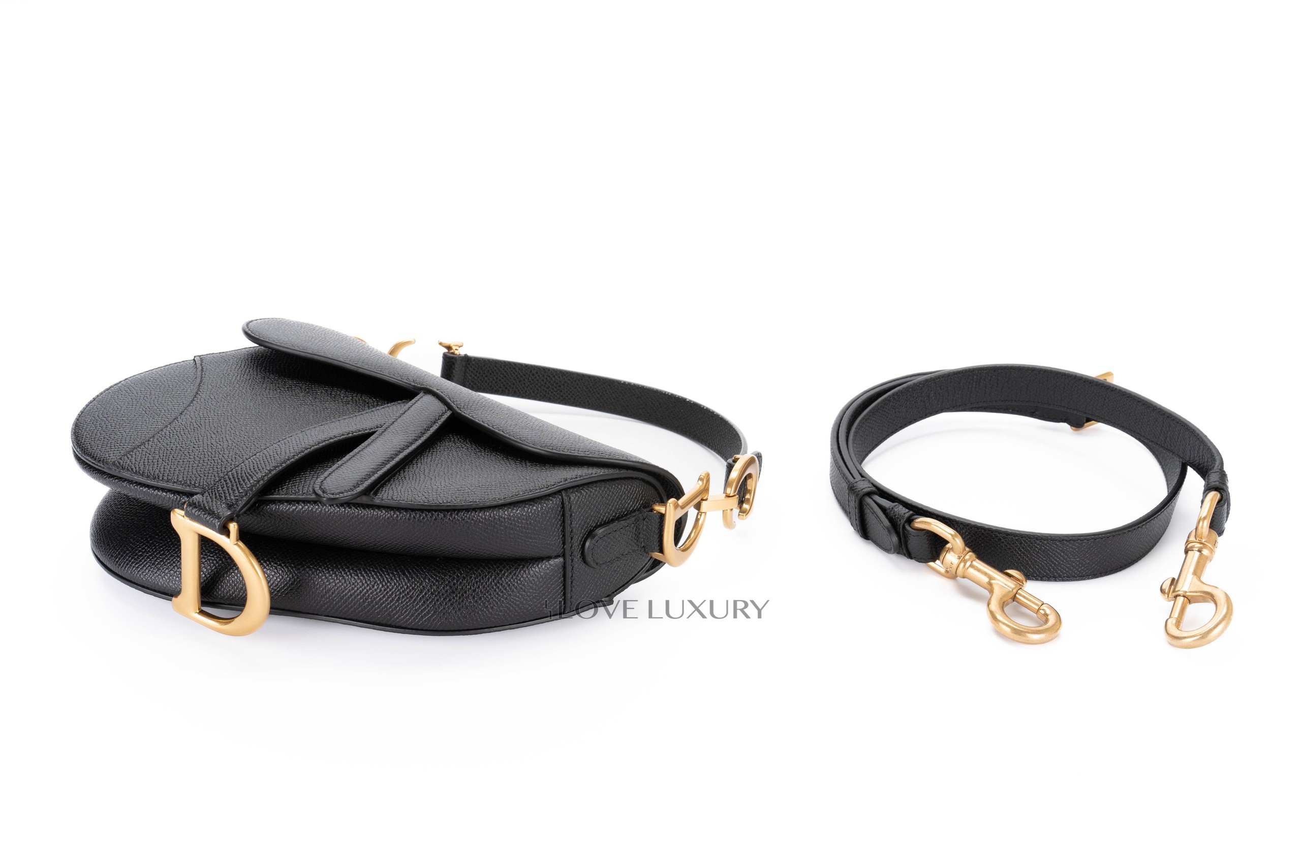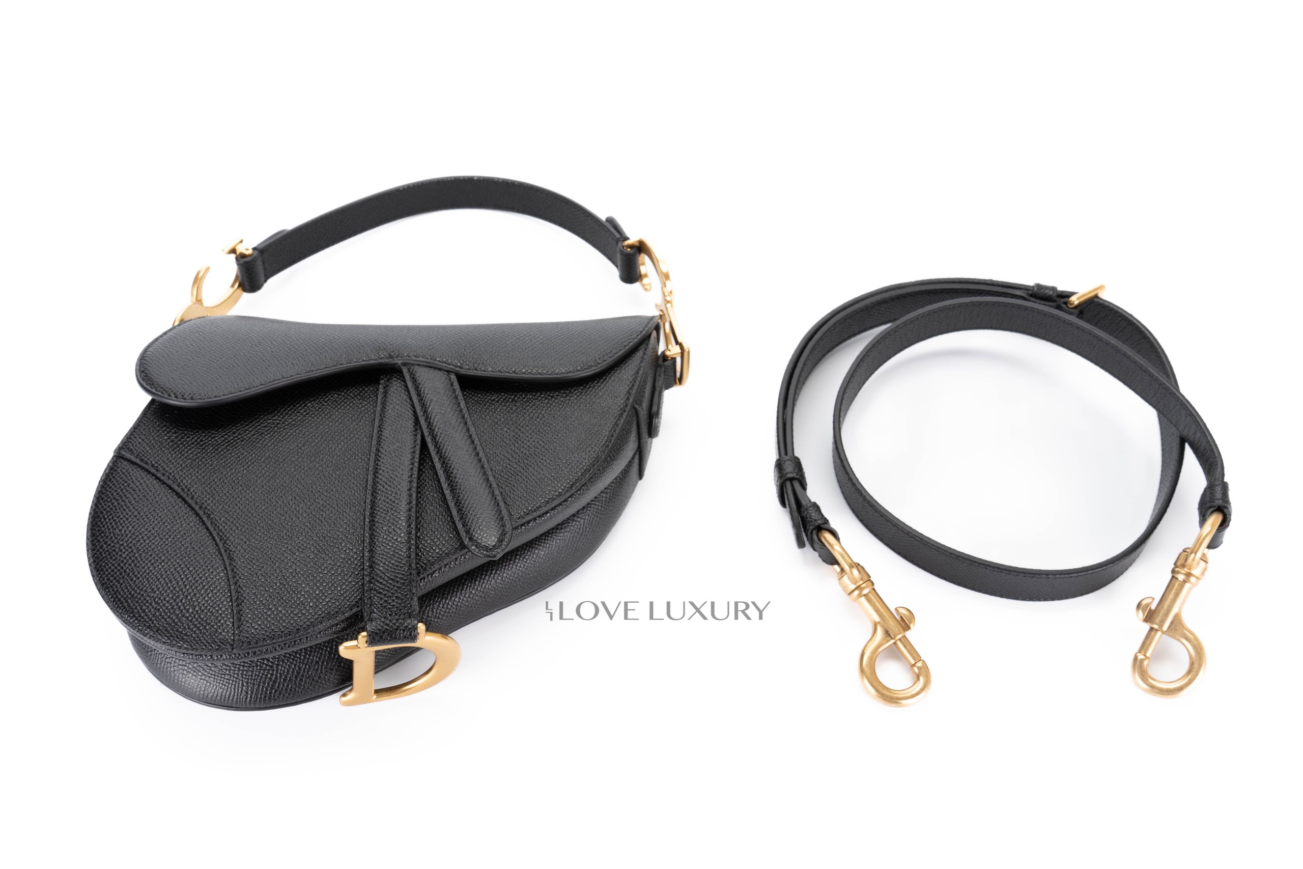 Dior Mini Saddle Bag with strap Black Grained Calfskin / 2022 Box Fresh.