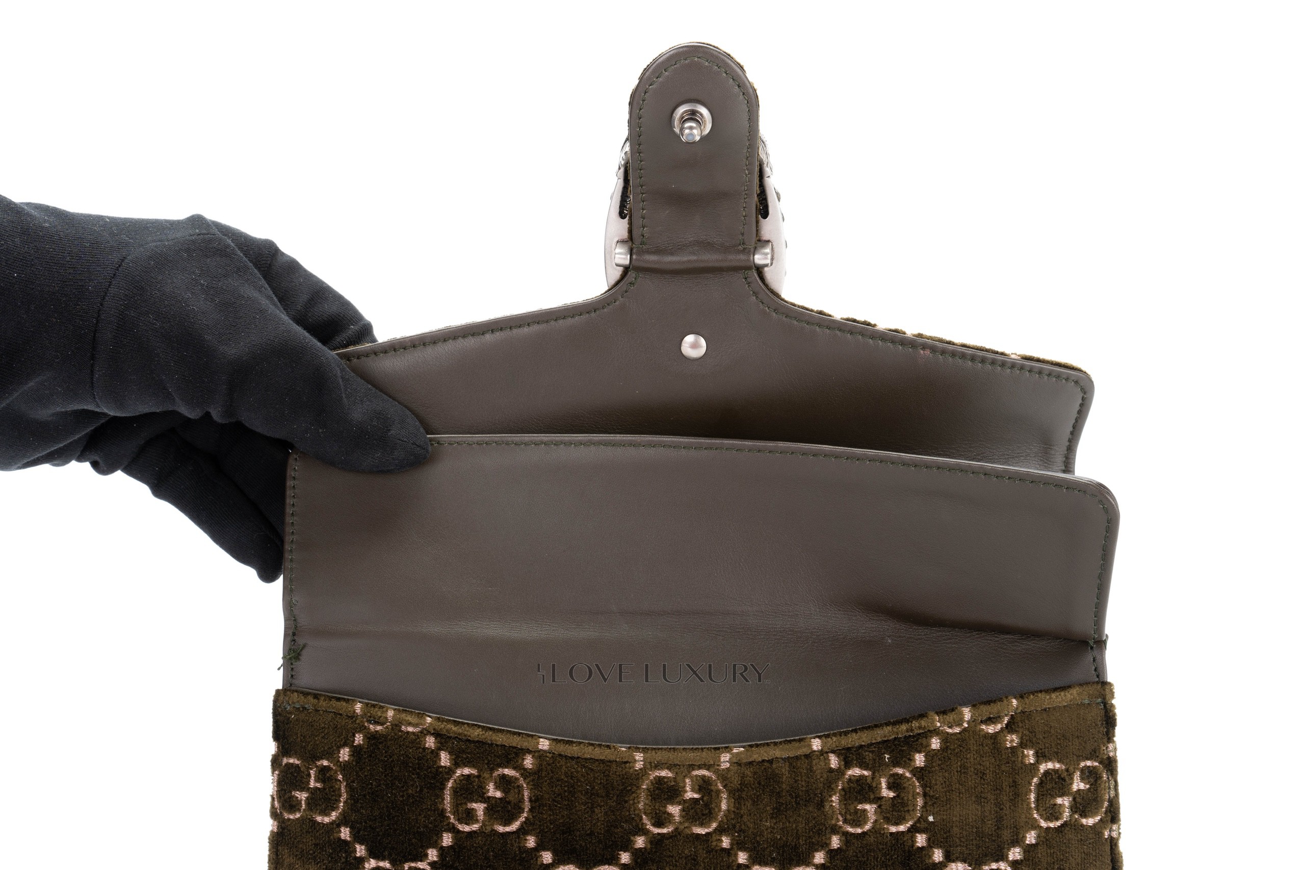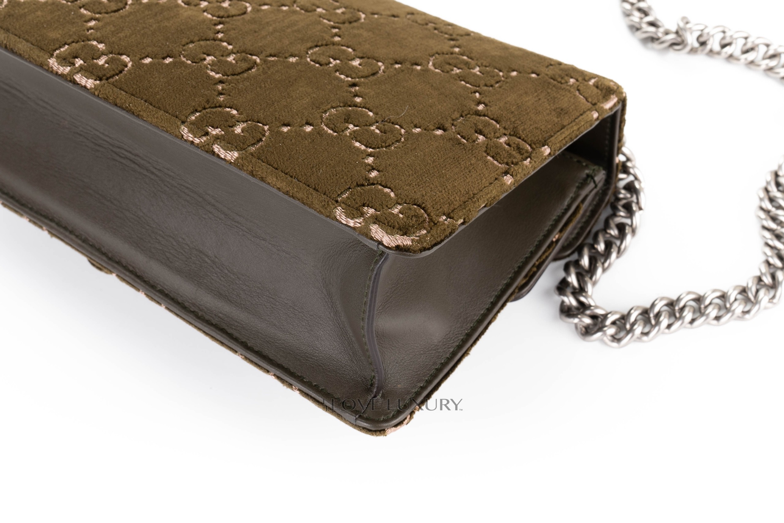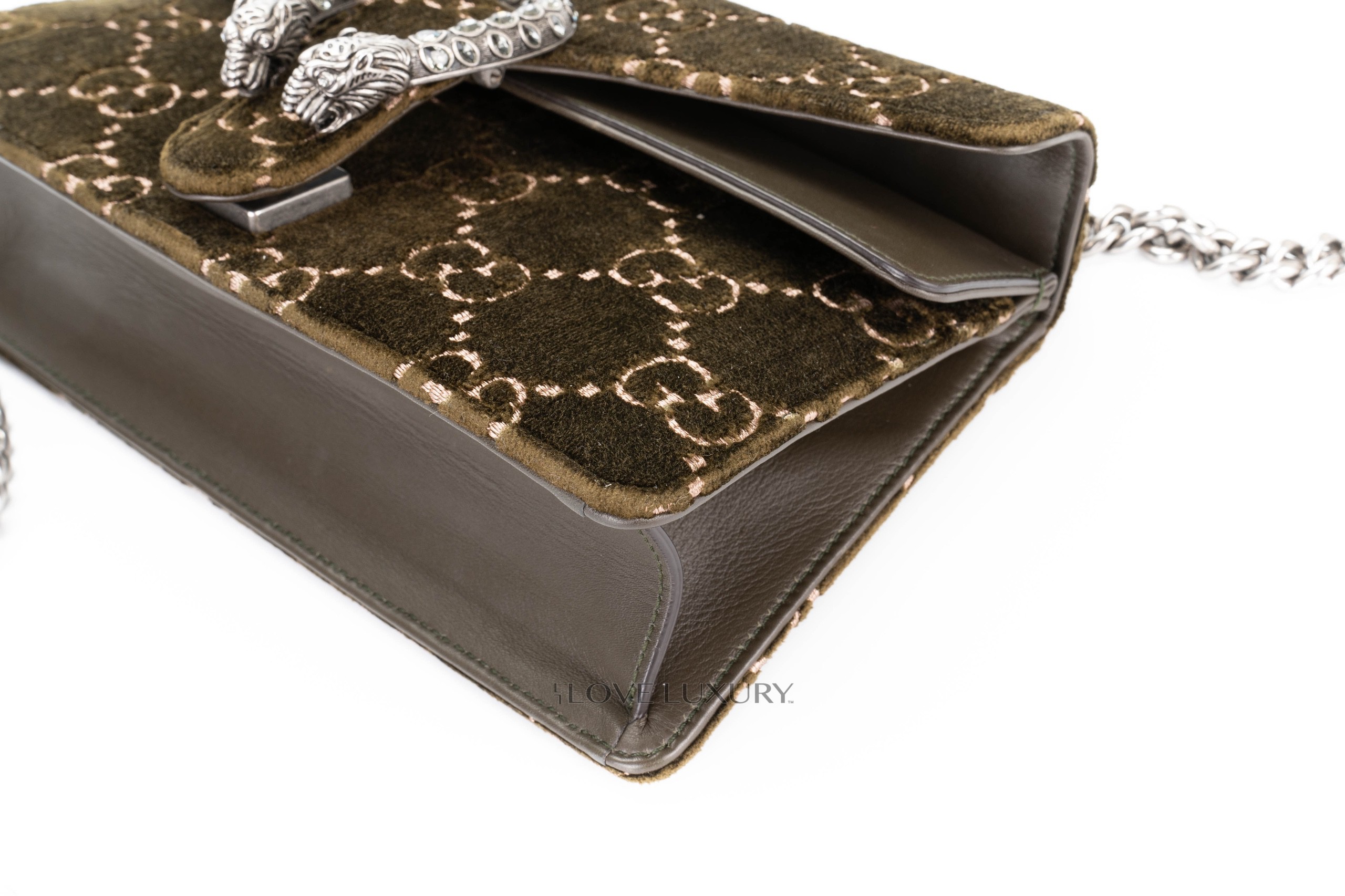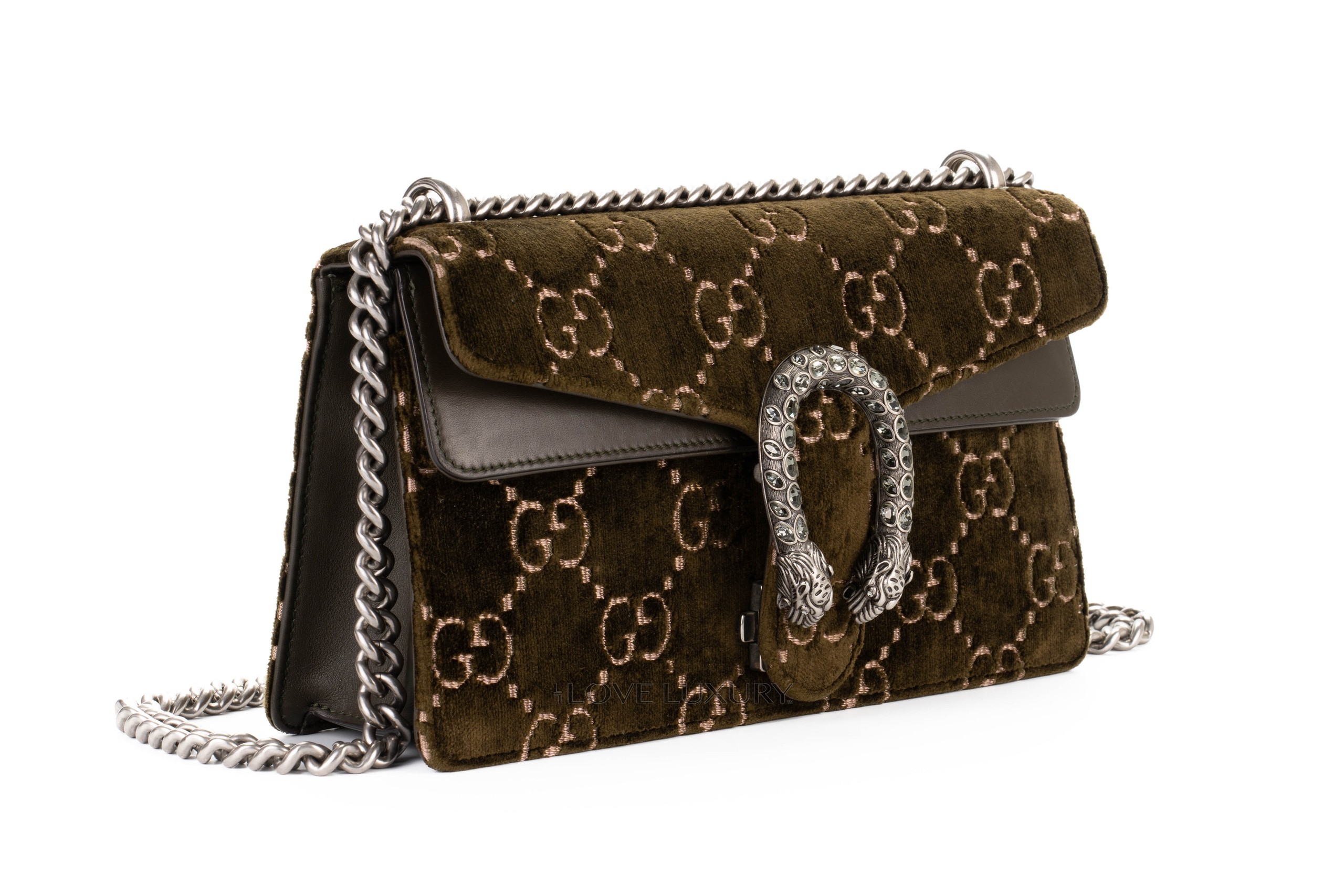 Gucci Dionysus Small Dark Green GG Print Velvet Shoulder Bag